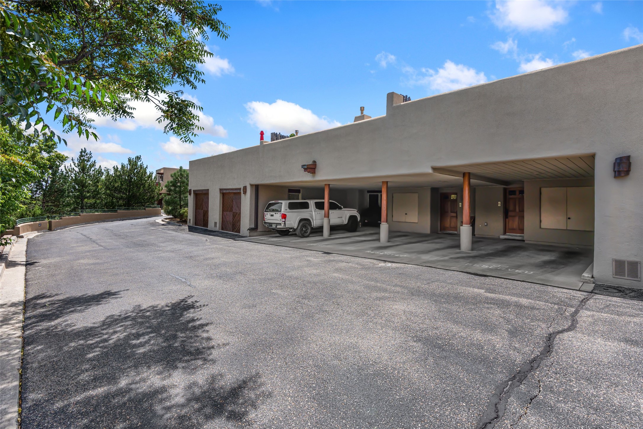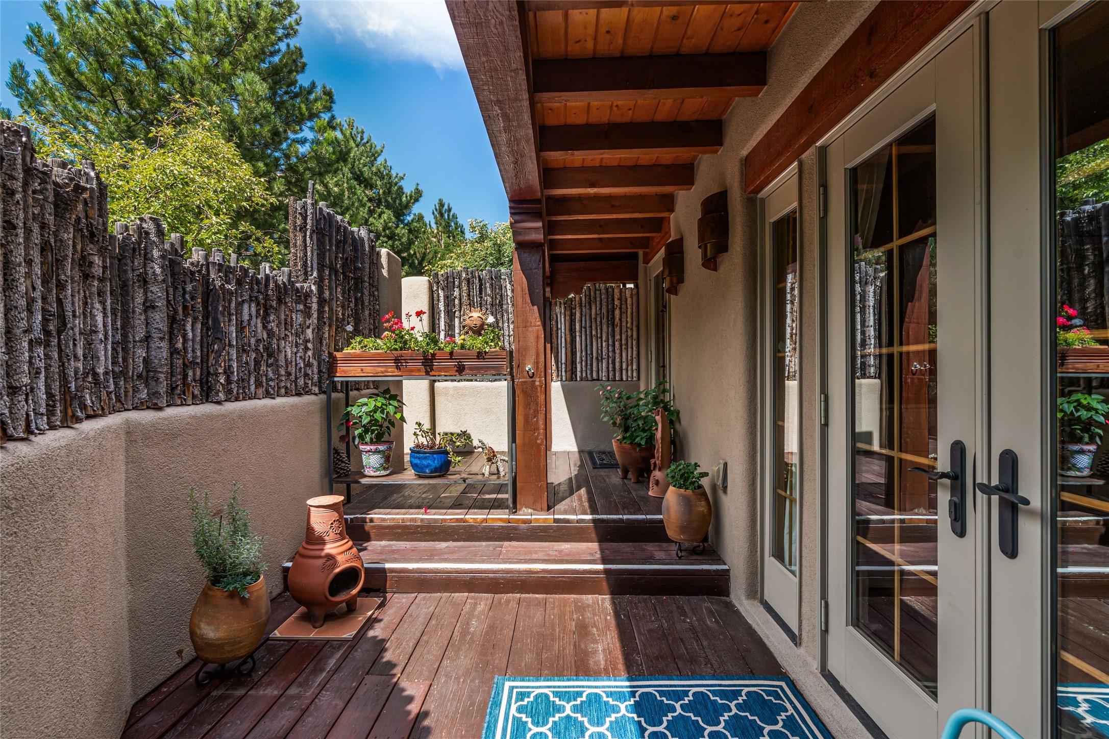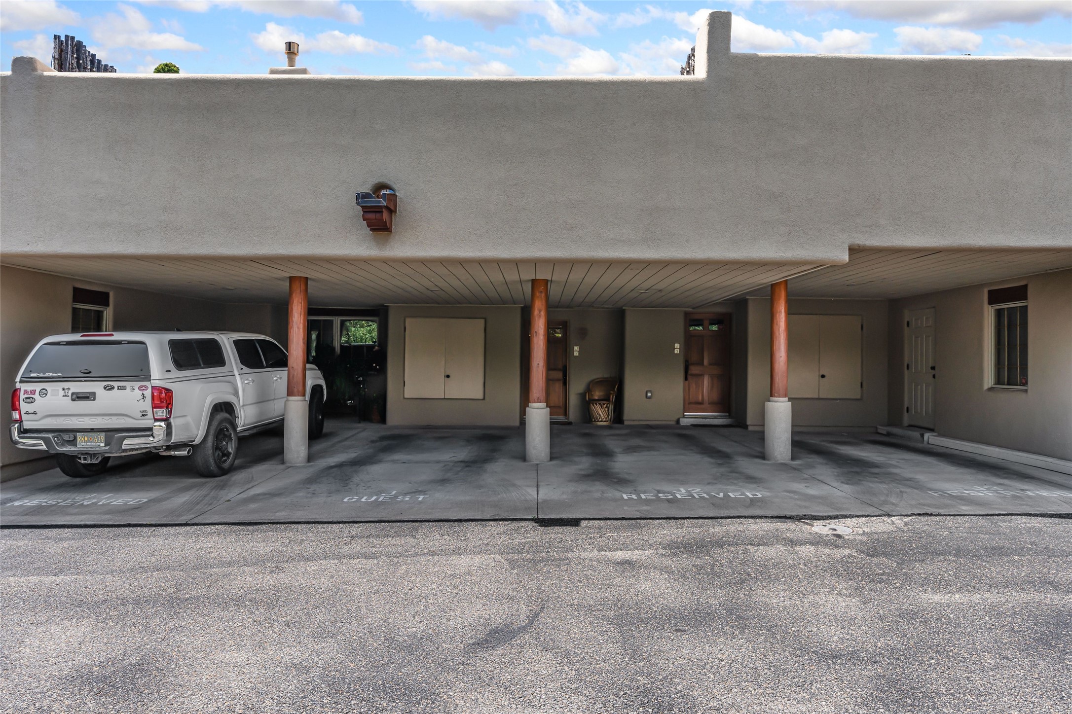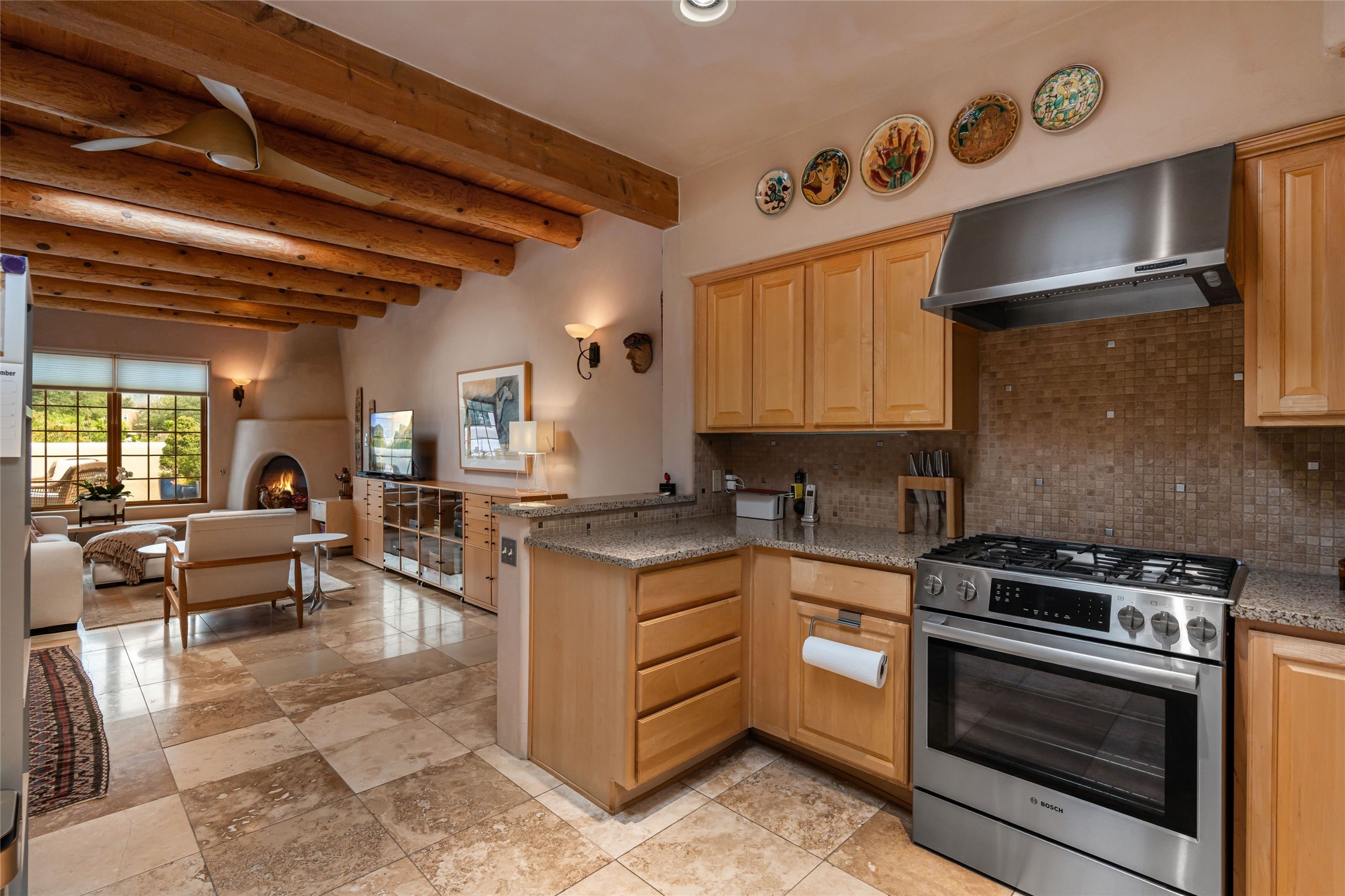 Step into this lovely two bed, three bath home in the highly coveted Rosario Hill Compound. Boasting a prime downtown location and a short walk to the Santa Fe Plaza, restaurants, retail shops and museums, inviting living spaces, indoors and out, and spectacular mountain views, this most-desirable home offers both privacy and charm and the ultimate in easy, low-maintenance and convenient living. Taking full advantage of the indoor/outdoor life loved by Santa Feans, this property has three outdoor areas perfect for dining, entertaining or just relaxing. The second level features an open concept, light-filled living and dining area with a kiva fireplace, opening onto a spacious deck offering beautiful mountain views; and a gourmet kitchen with stainless steel appliances and granite countertops, and leading to a private deck. The primary bedroom with ensuite bathroom and direct access to a private patio, a second bedroom and three-quarters bath are on the ground level. This unit also enjoys three parking spaces - a single car garage, a dedicated carport space and designated guest space. The Compound's grounds and exteriors are beautifully maintained and owners enjoy the benefit of having a property manager living on-site. Do not miss this downtown gem, offering the best of Santa Fe living!