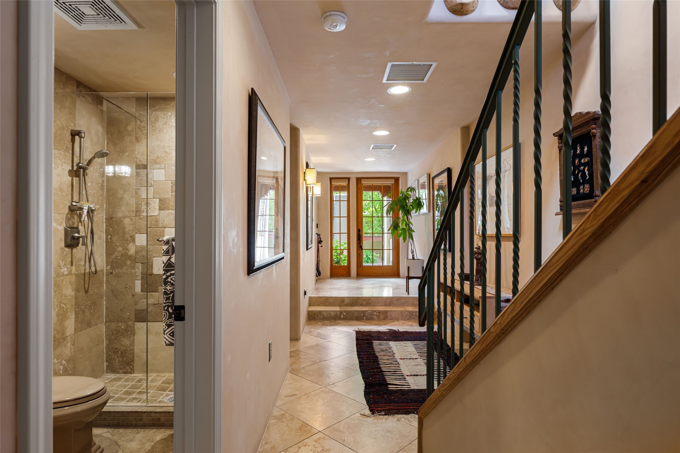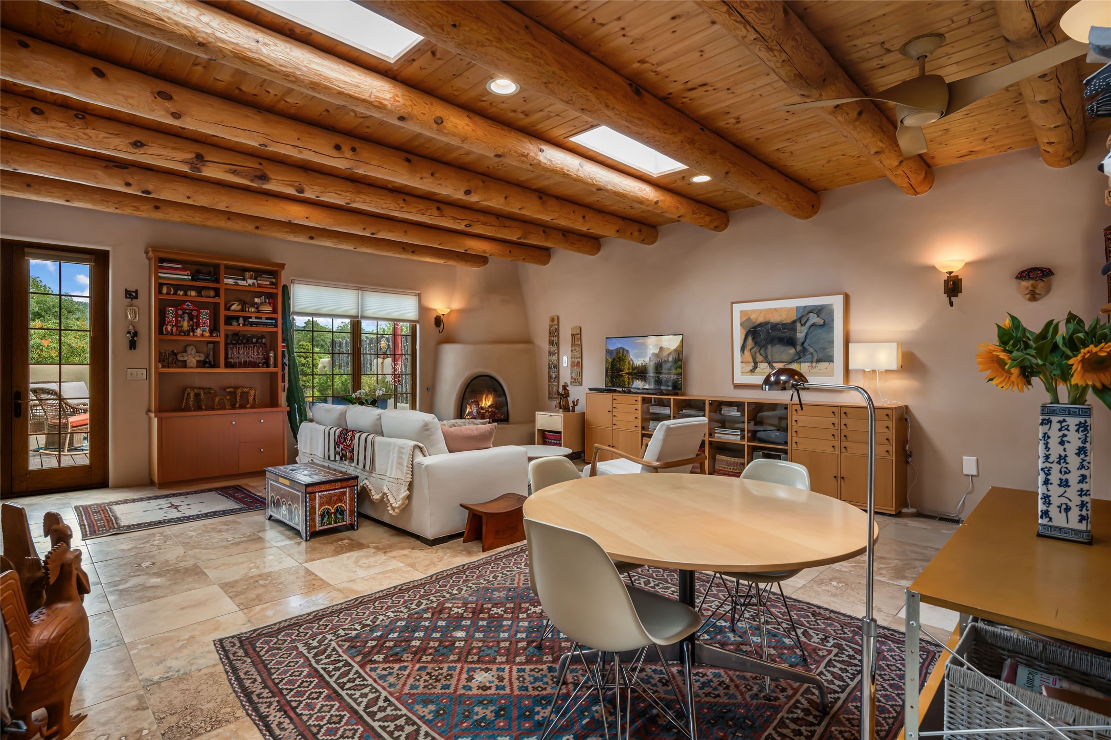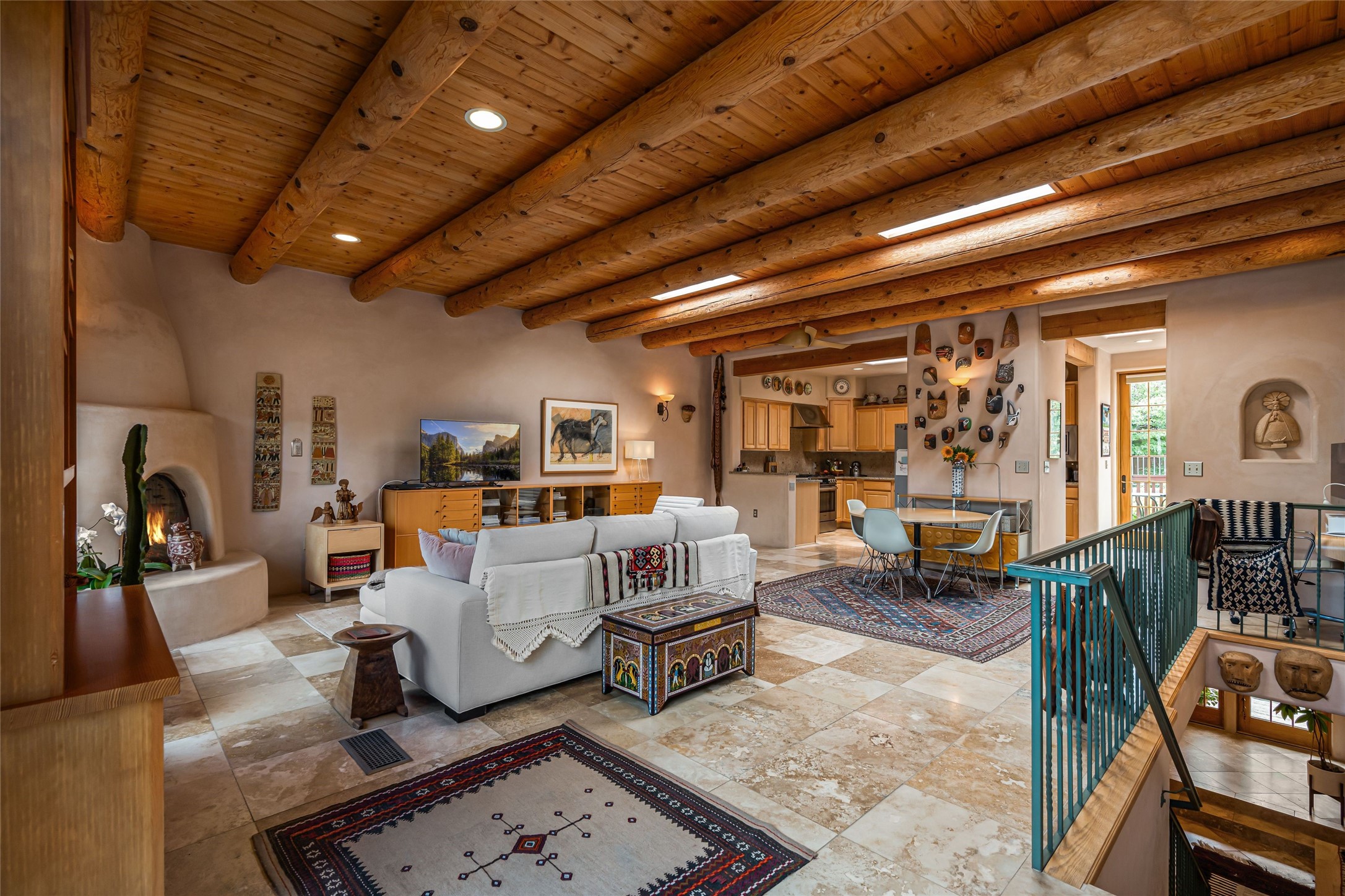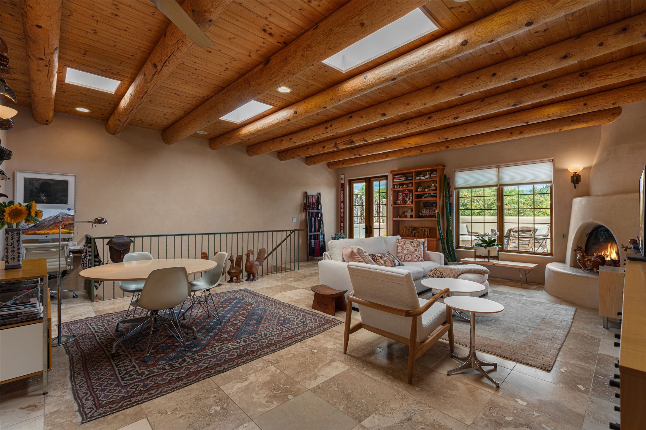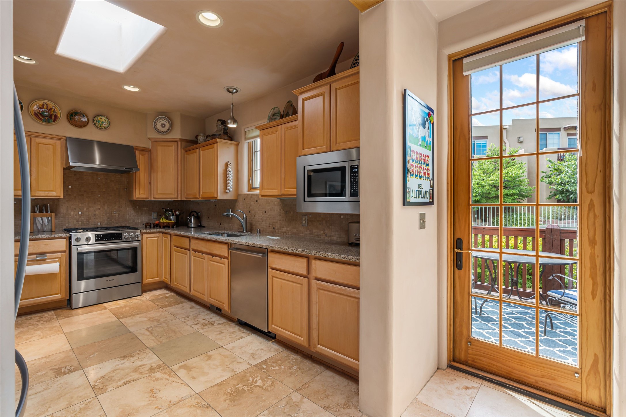 Step into this lovely two bed, three bath home in the highly coveted Rosario Hill Compound. Boasting a prime downtown location and a short walk to the Santa Fe Plaza, restaurants, retail shops and museums, inviting living spaces, indoors and out, and spectacular mountain views, this most-desirable home offers both privacy and charm and the ultimate in easy, low-maintenance and convenient living. Taking full advantage of the indoor/outdoor life loved by Santa Feans, this property has three outdoor areas perfect for dining, entertaining or just relaxing. The second level features an open concept, light-filled living and dining area with a kiva fireplace, opening onto a spacious deck offering beautiful mountain views; and a gourmet kitchen with stainless steel appliances and granite countertops, and leading to a private deck. The primary bedroom with ensuite bathroom and direct access to a private patio, a second bedroom and three-quarters bath are on the ground level. This unit also enjoys three parking spaces - a single car garage, a dedicated carport space and designated guest space. The Compound's grounds and exteriors are beautifully maintained and owners enjoy the benefit of having a property manager living on-site. Do not miss this downtown gem, offering the best of Santa Fe living!