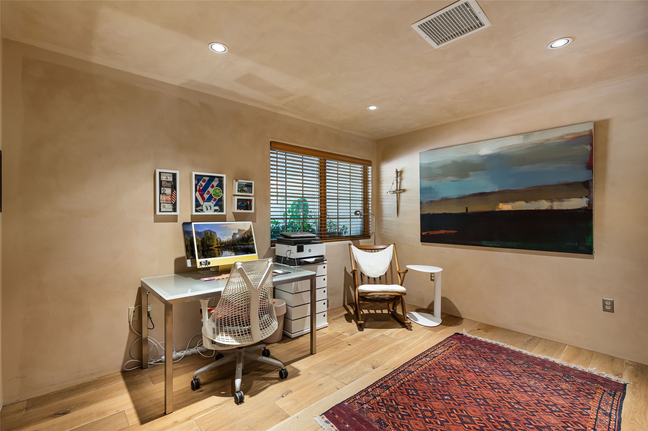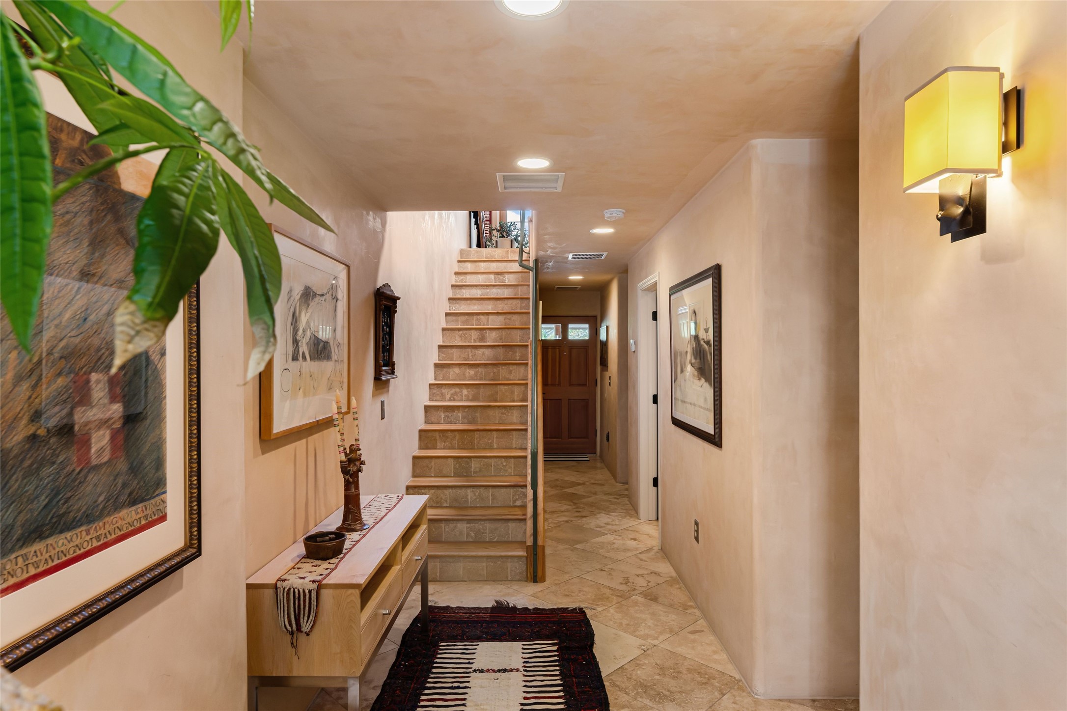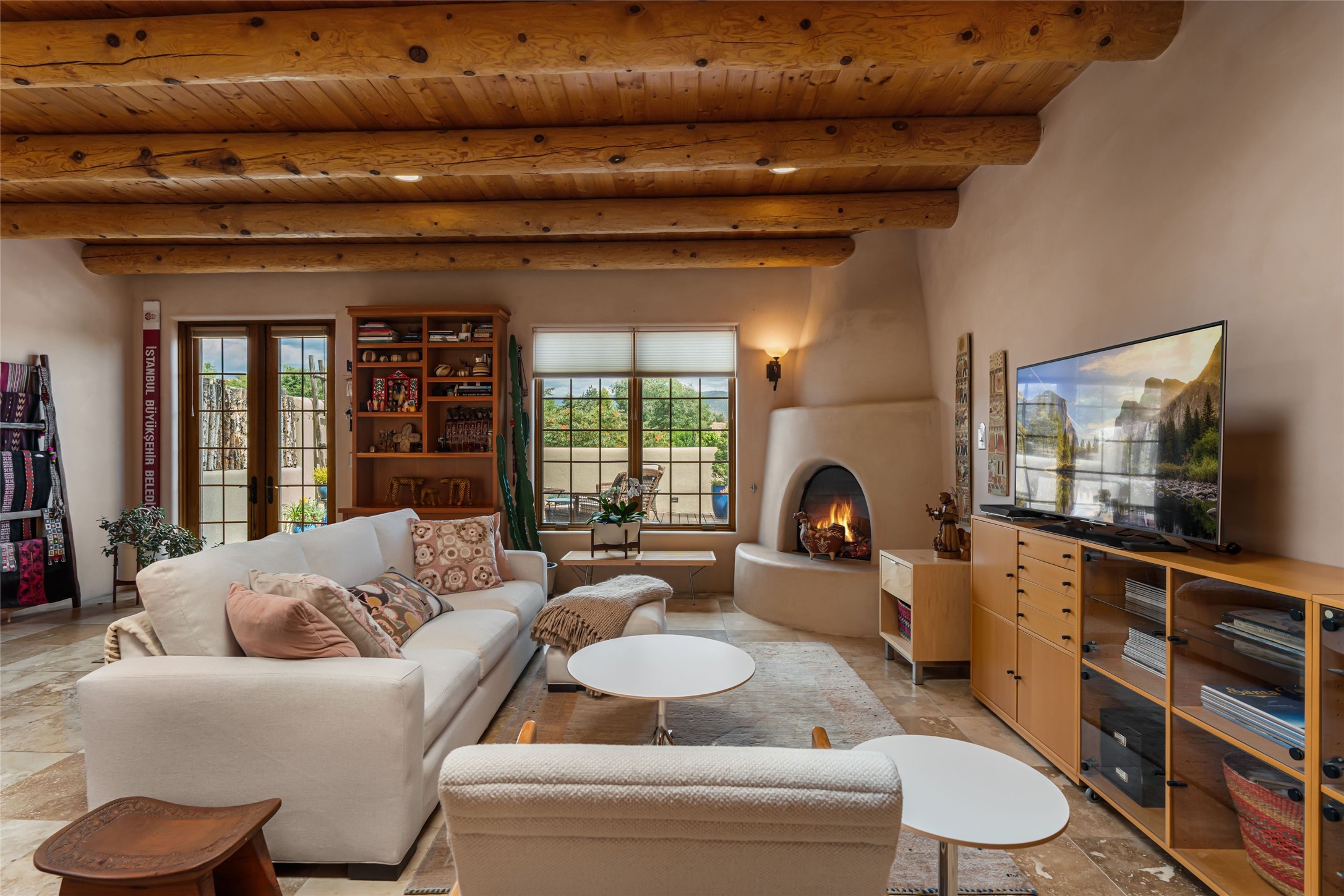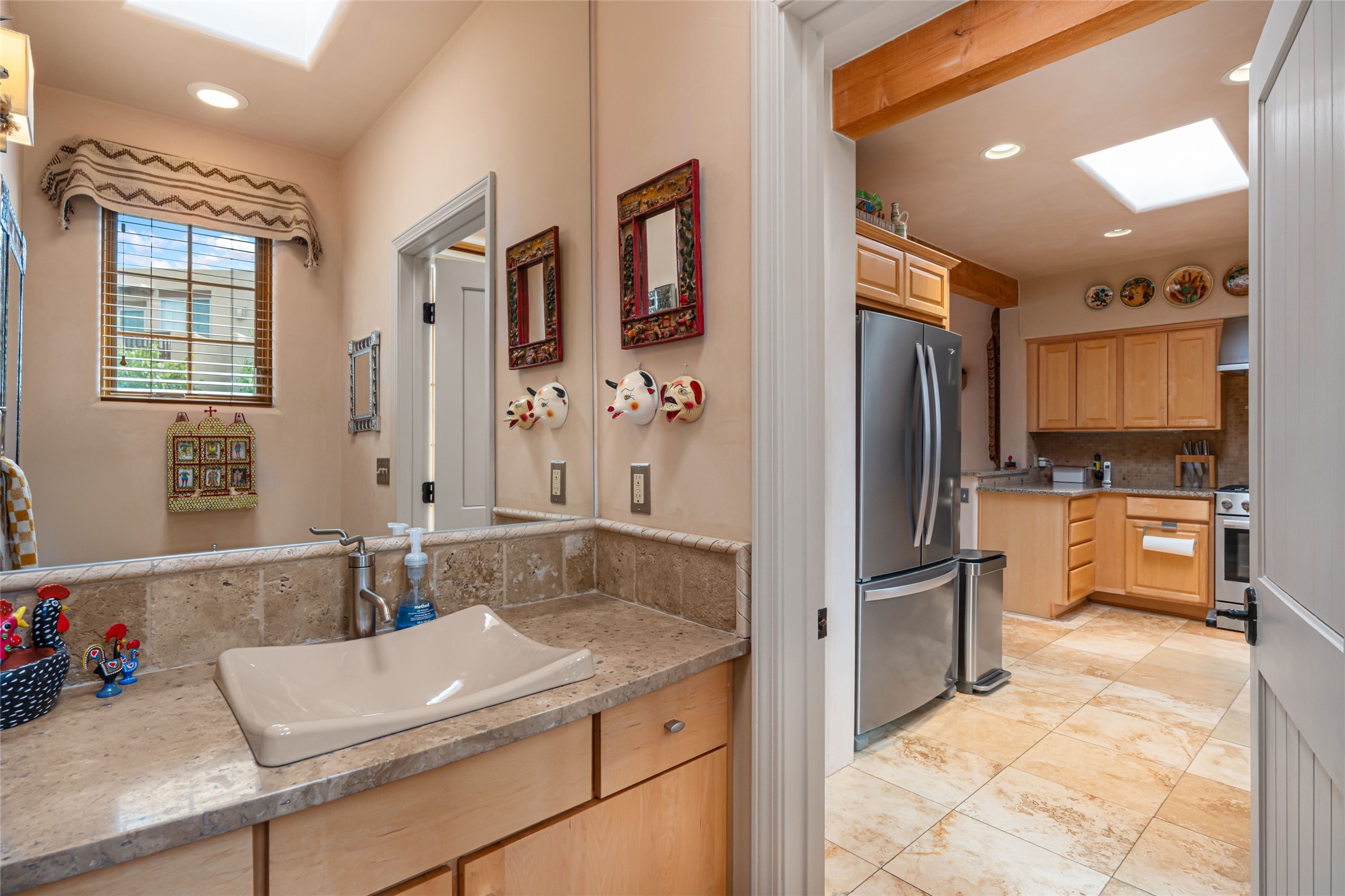 Step into this lovely two bed, three bath home in the highly coveted Rosario Hill Compound. Boasting a prime downtown location and a short walk to the Santa Fe Plaza, restaurants, retail shops and museums, inviting living spaces, indoors and out, and spectacular mountain views, this most-desirable home offers both privacy and charm and the ultimate in easy, low-maintenance and convenient living. Taking full advantage of the indoor/outdoor life loved by Santa Feans, this property has three outdoor areas perfect for dining, entertaining or just relaxing. The second level features an open concept, light-filled living and dining area with a kiva fireplace, opening onto a spacious deck offering beautiful mountain views; and a gourmet kitchen with stainless steel appliances and granite countertops, and leading to a private deck. The primary bedroom with ensuite bathroom and direct access to a private patio, a second bedroom and three-quarters bath are on the ground level. This unit also enjoys three parking spaces - a single car garage, a dedicated carport space and designated guest space. The Compound's grounds and exteriors are beautifully maintained and owners enjoy the benefit of having a property manager living on-site. Do not miss this downtown gem, offering the best of Santa Fe living!