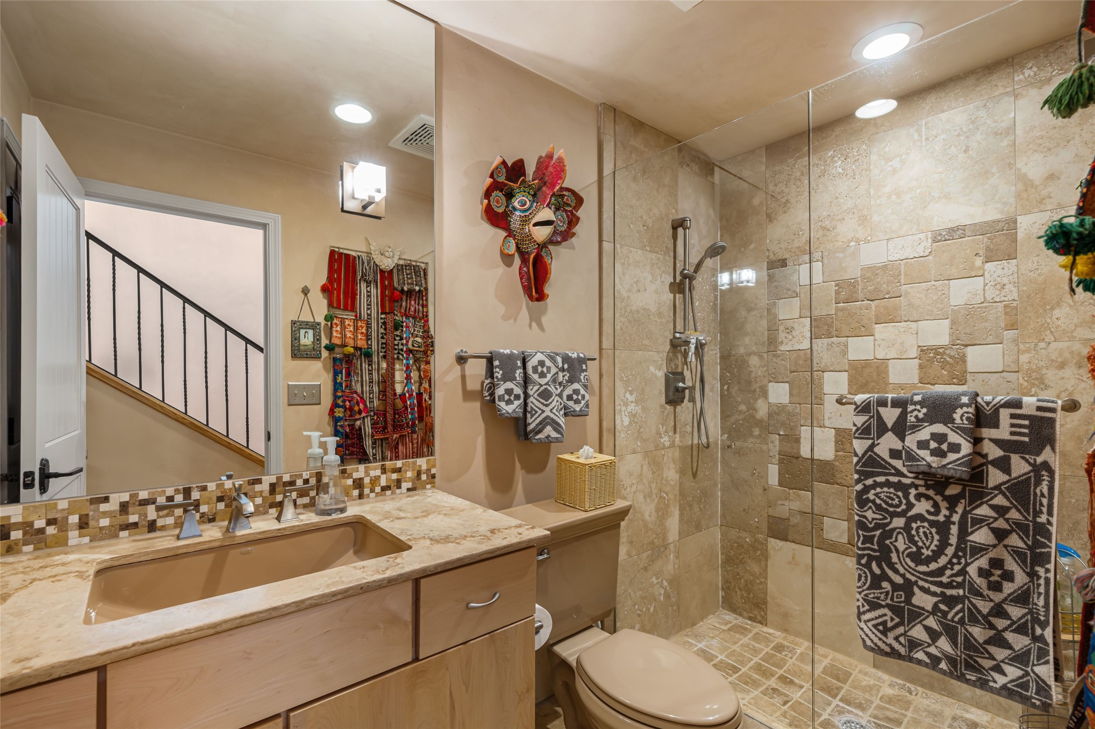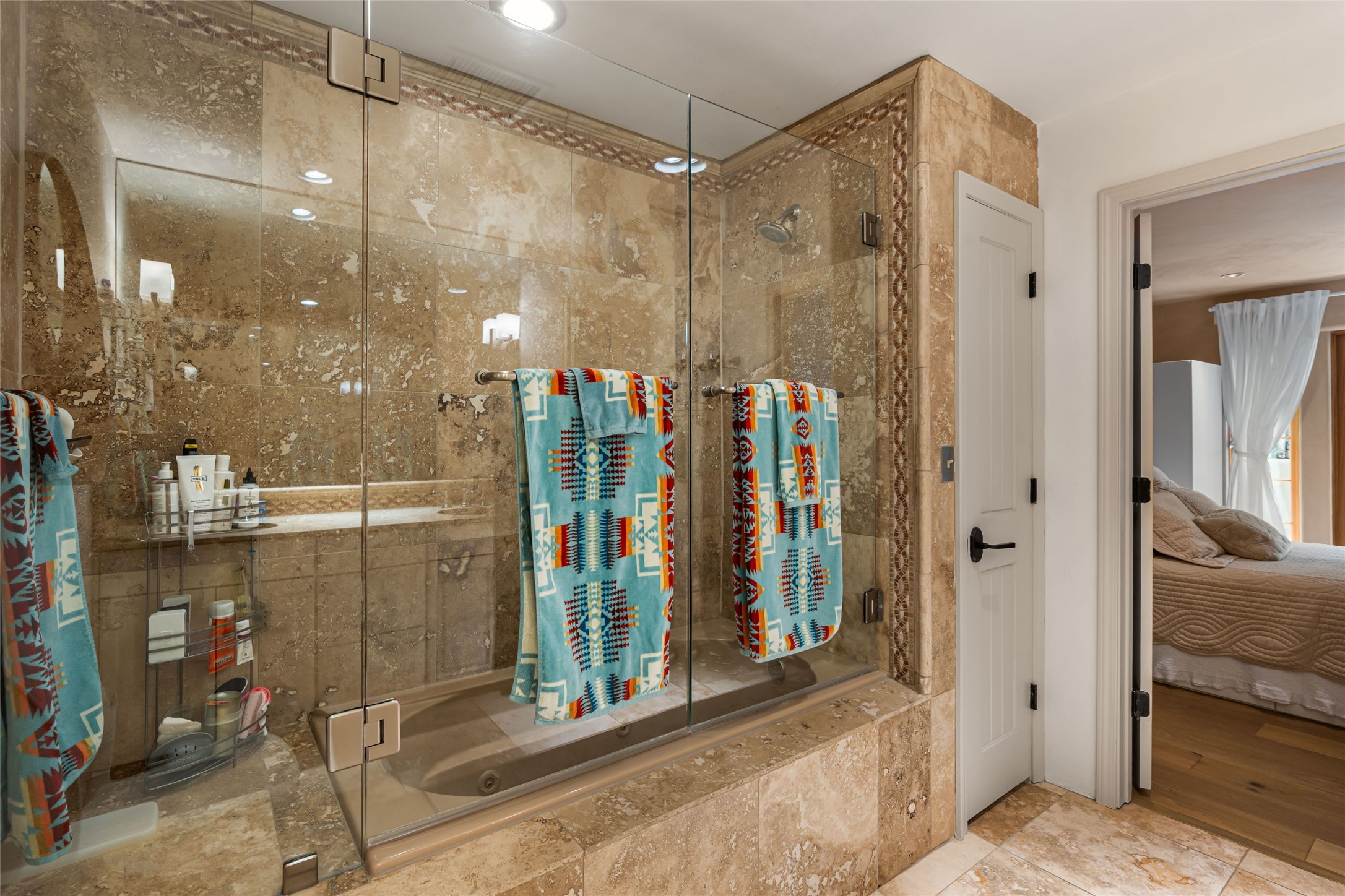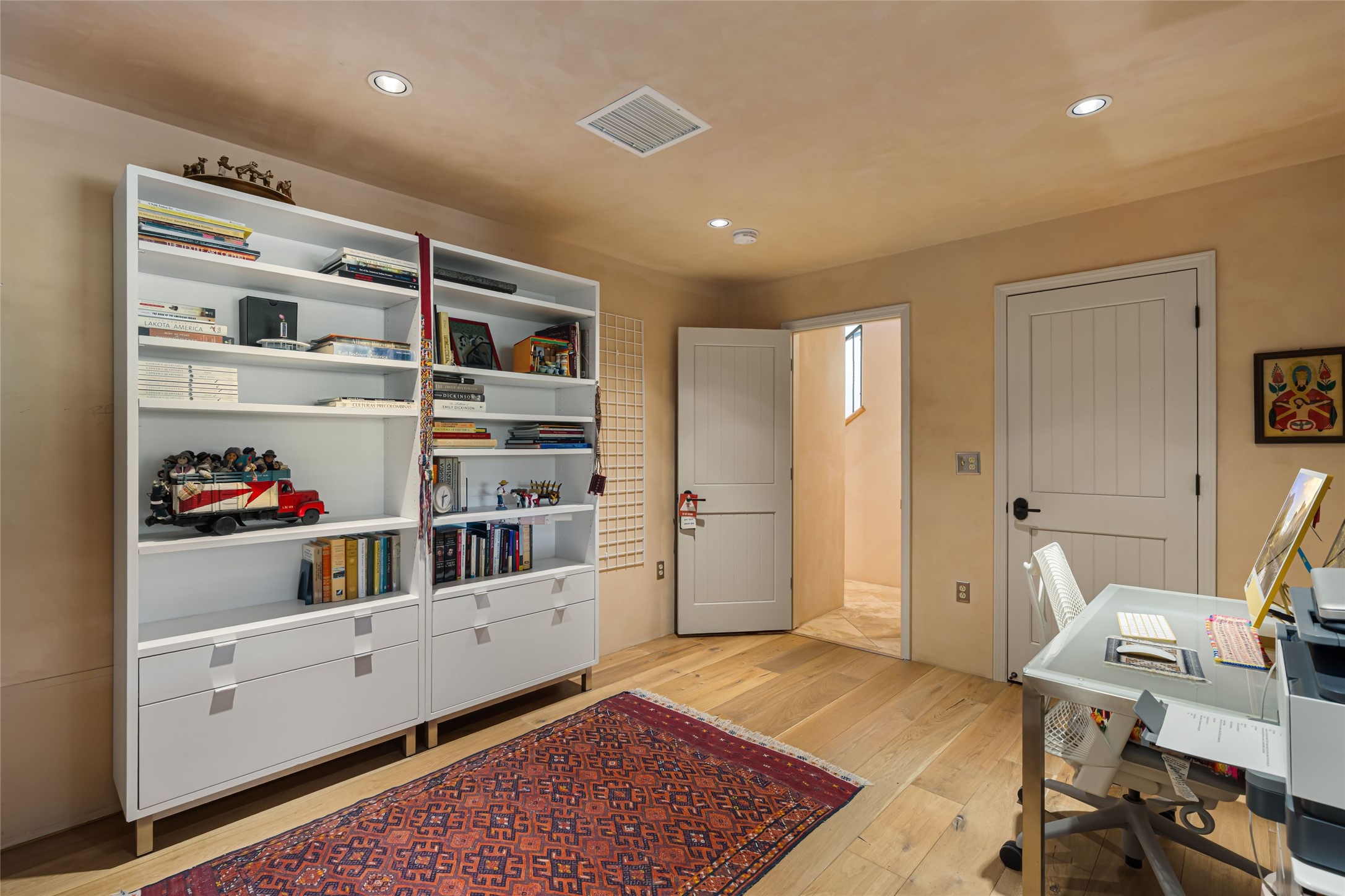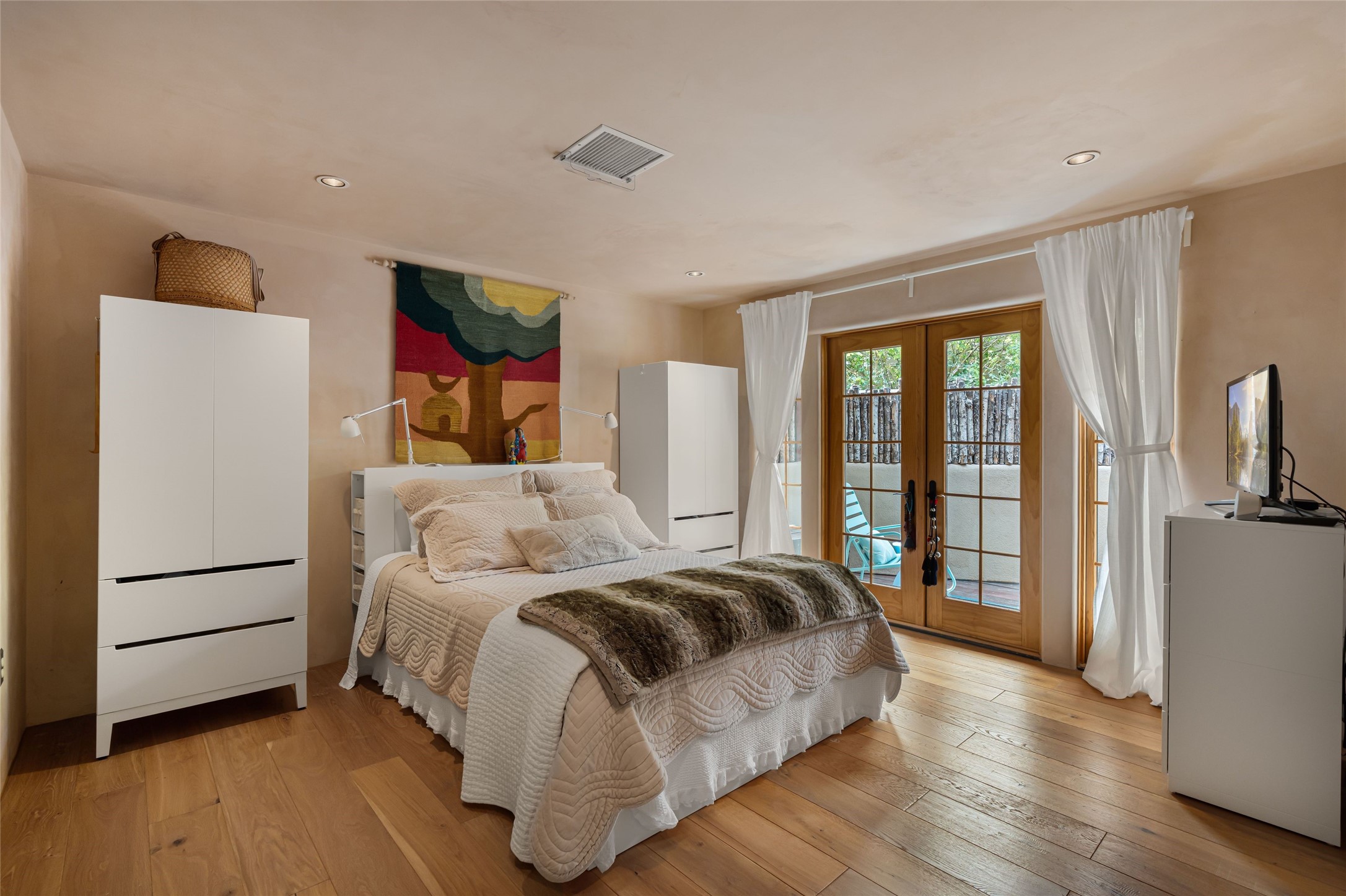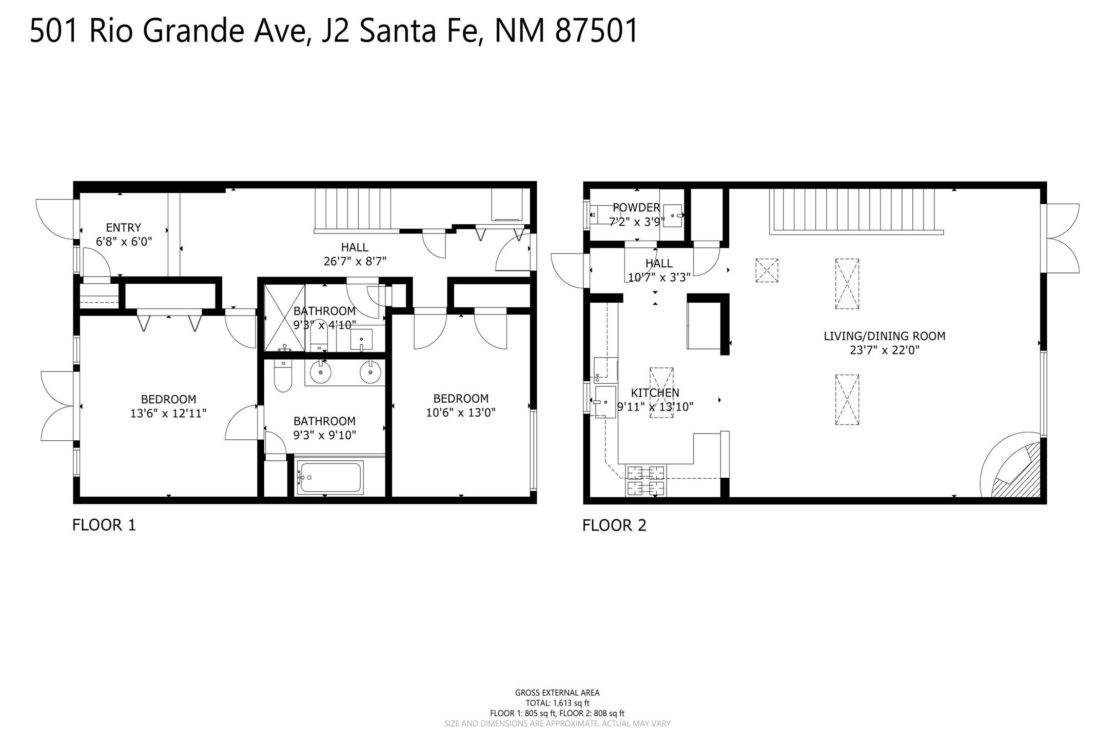 Step into this lovely two bed, three bath home in the highly coveted Rosario Hill Compound. Boasting a prime downtown location and a short walk to the Santa Fe Plaza, restaurants, retail shops and museums, inviting living spaces, indoors and out, and spectacular mountain views, this most-desirable home offers both privacy and charm and the ultimate in easy, low-maintenance and convenient living. Taking full advantage of the indoor/outdoor life loved by Santa Feans, this property has three outdoor areas perfect for dining, entertaining or just relaxing. The second level features an open concept, light-filled living and dining area with a kiva fireplace, opening onto a spacious deck offering beautiful mountain views; and a gourmet kitchen with stainless steel appliances and granite countertops, and leading to a private deck. The primary bedroom with ensuite bathroom and direct access to a private patio, a second bedroom and three-quarters bath are on the ground level. This unit also enjoys three parking spaces - a single car garage, a dedicated carport space and designated guest space. The Compound's grounds and exteriors are beautifully maintained and owners enjoy the benefit of having a property manager living on-site. Do not miss this downtown gem, offering the best of Santa Fe living!