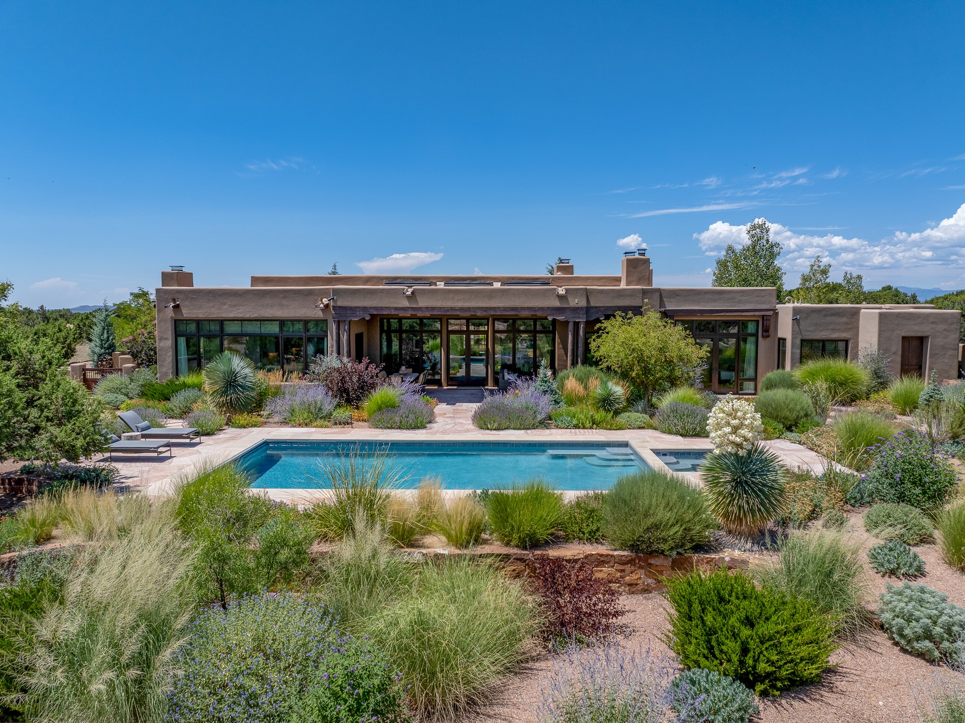 Rarely does a home achieve such a perfect balance of style, quality, natural beauty, and thoughtful design--but 20 Picacho Peak does so with ease. Set on five+ private acres off Wildhorse, this 4,800-square-foot masterpiece by Woods Design Builders offers 3 spacious, private bedrooms, five bathrooms, two dedicated offices, and exceptional indoor-outdoor living. From the primary suite and main living areas, panoramic Sangre de Cristo views create a constant backdrop, while the resort-style backyard--with its stunning in-ground pool, spa, and lush landscaping--invites year-round enjoyment.Completed in 2016 with meticulous attention to detail, the home features warm wood floors and beams, abundant natural light, and a layout that blends openness with intimate spaces. The chef's kitchen is equipped with Miele and Sub-Zero appliances, elegant Taj Mahal quartzite countertops, and a versatile wet bar seamlessly connecting to the living room. A casual den just off the kitchen offers an inviting retreat, while the adjacent great room and open dining area are ideal for entertaining. The primary suite is a true sanctuary, complete with a kiva fireplace, private portal access, a beautifully remodeled spa bath, and a grand walk-in closet. A second kiva graces the adjoining library/office--perfect for quiet work or reading by the fire. Guest quarters are thoughtfully separated, offering generous bedrooms, a private den, and comfort for family or friends. From the pool terrace, a landscaped path leads to a serene seating area - an idyllic spot for stargazing under Santa Fe's expansive skies. Additional amenities include radiant in-floor heating along with central heat & refrigerated air, a spacious two-car garage, abundant storage, and access to Las Campanas' world-class golf, dining, spa, and equestrian facilities. A golf equity membership to the club is available for separate purchase. Las Campanas HOA provides 24 hour security, gates, 24/7 Paramedic services, walking paths and maintenance. A rare offering in one of Santa Fe's most coveted communities - crafted for those who demand both beauty and quality.