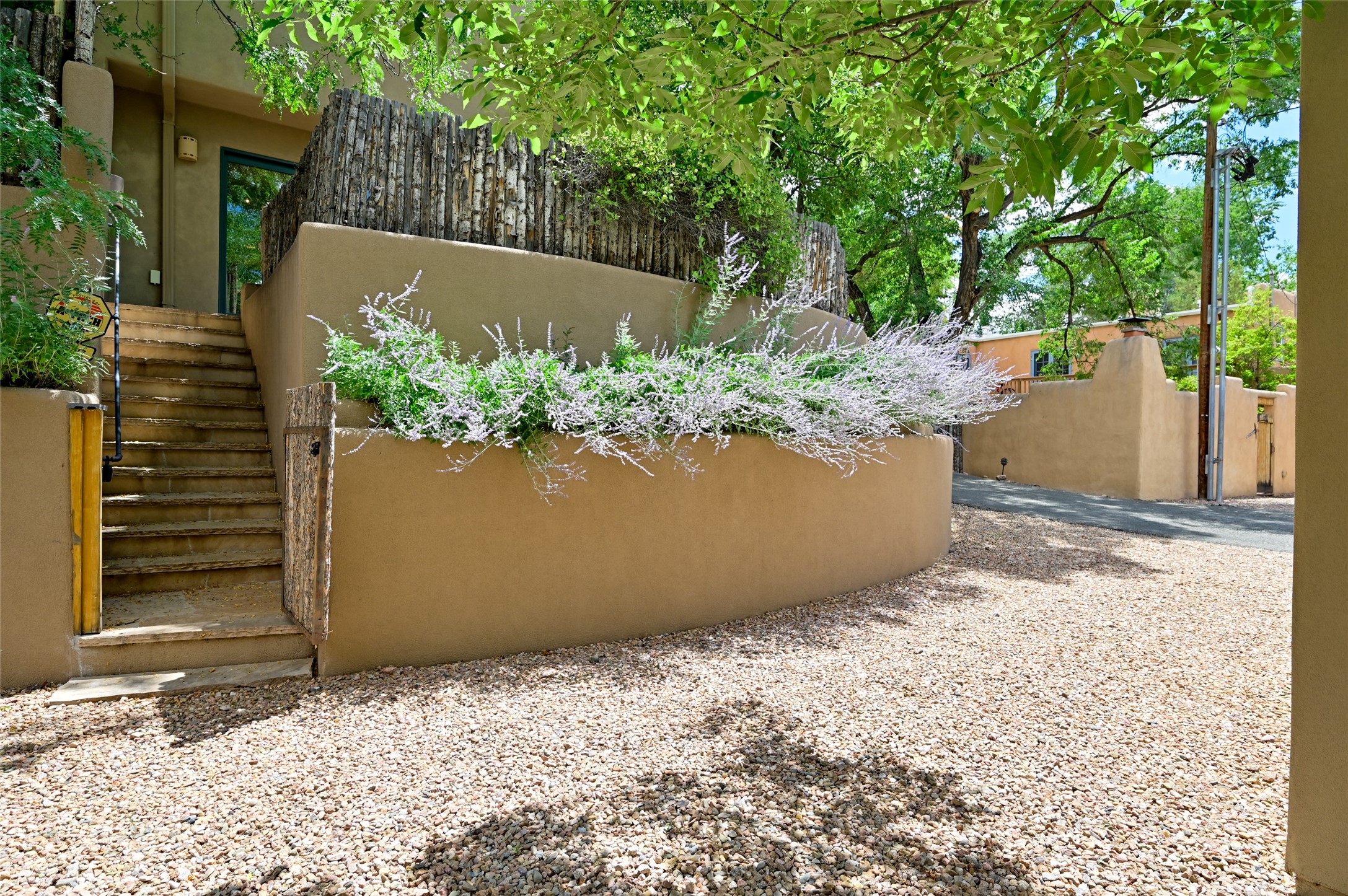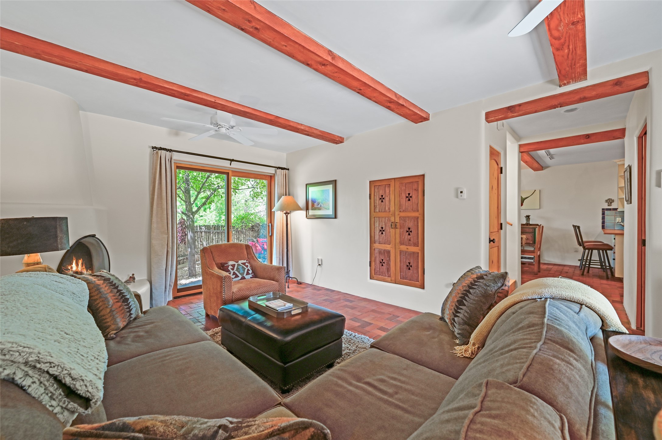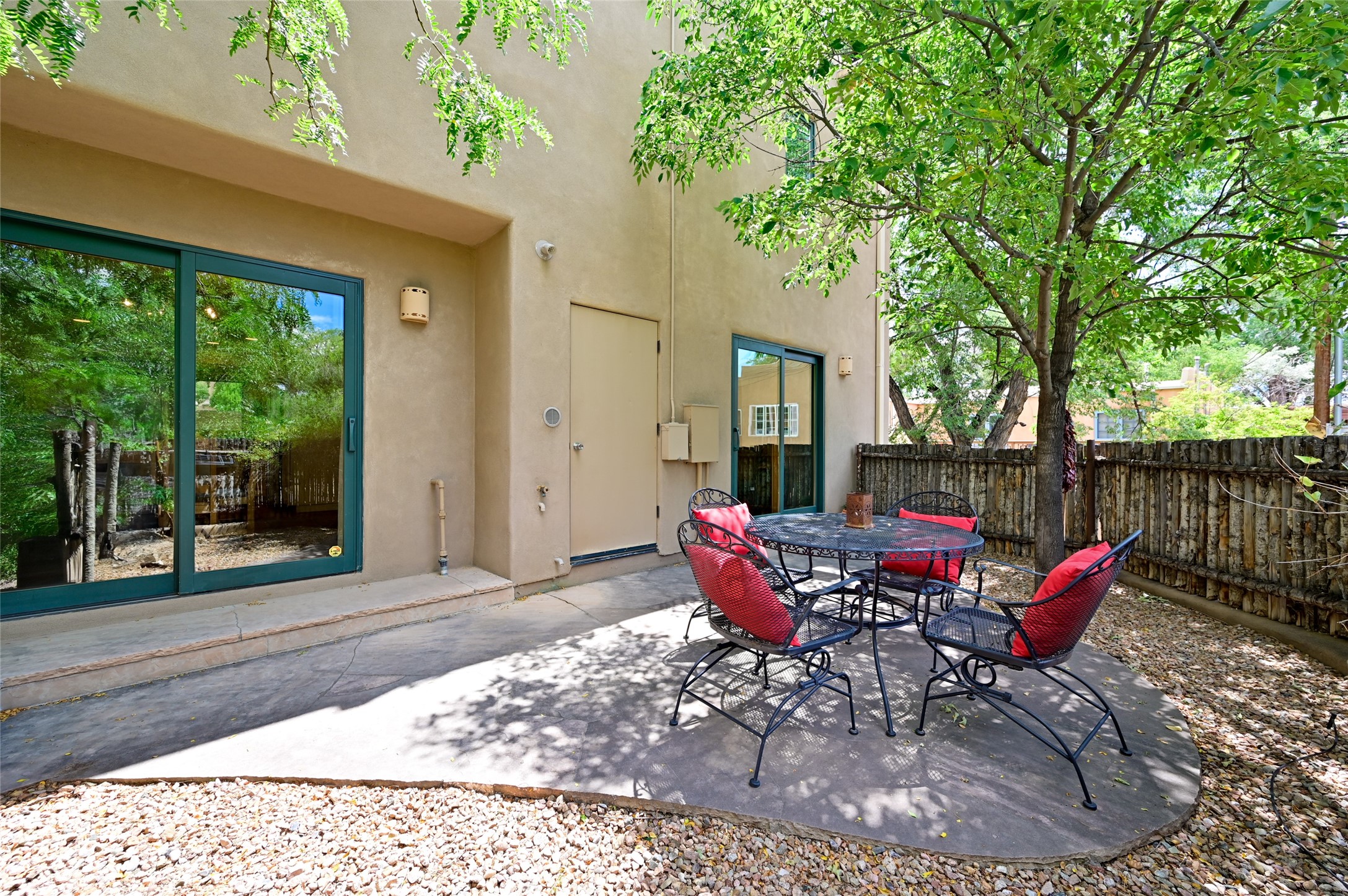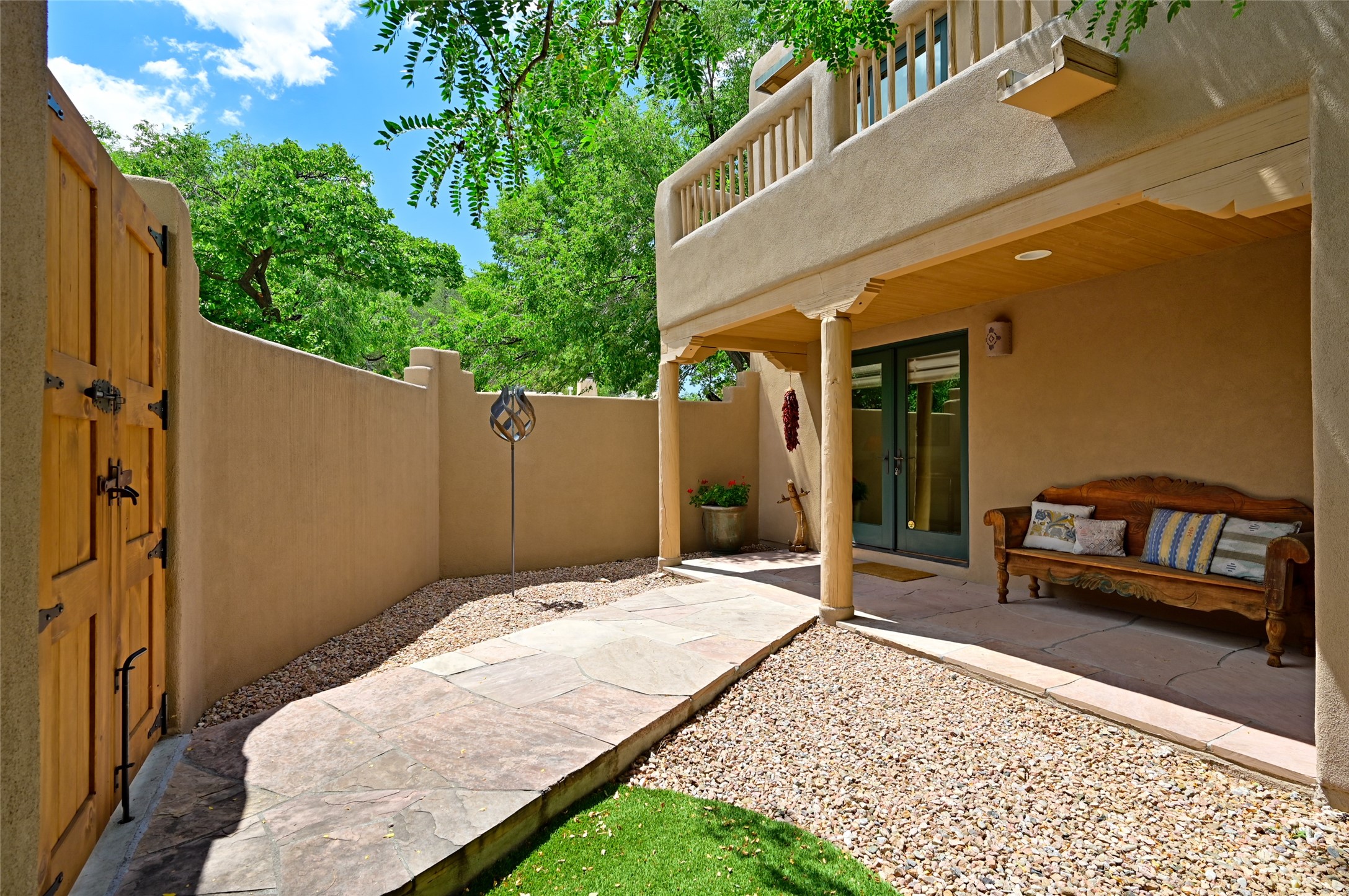 Charming Condo Near the Santa Fe Plaza!This 2-bedroom, 2.5-bath end unit condo offers approximately 1,374 sq. ft. of inviting living space close to the Plaza, with the Fort Marcy Complex, park, and hiking trails nearby. Inside, classic Santa Fe style shines with warm brick floors, nichos, plastered walls, Spanish tile in the bathrooms, and a cozy kiva fireplace. The sunlit kitchen features stainless steel appliances, silestone counters and an abundance of natural light. Both bedrooms have ensuite baths, and one opens to a deck with morning sun. Updates include 3 mini-splits, enlarged primary closest and bathroom. A private detached one-car garage, gated front and back courtyards for entertaining completes this ideal lock-and-leave home in a prime location.