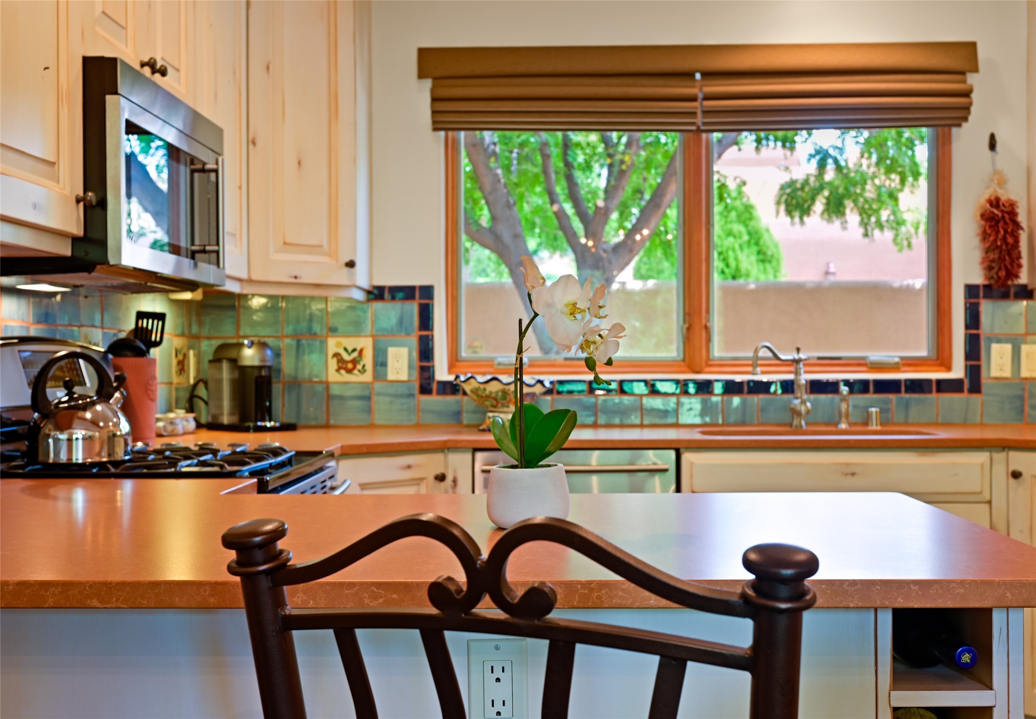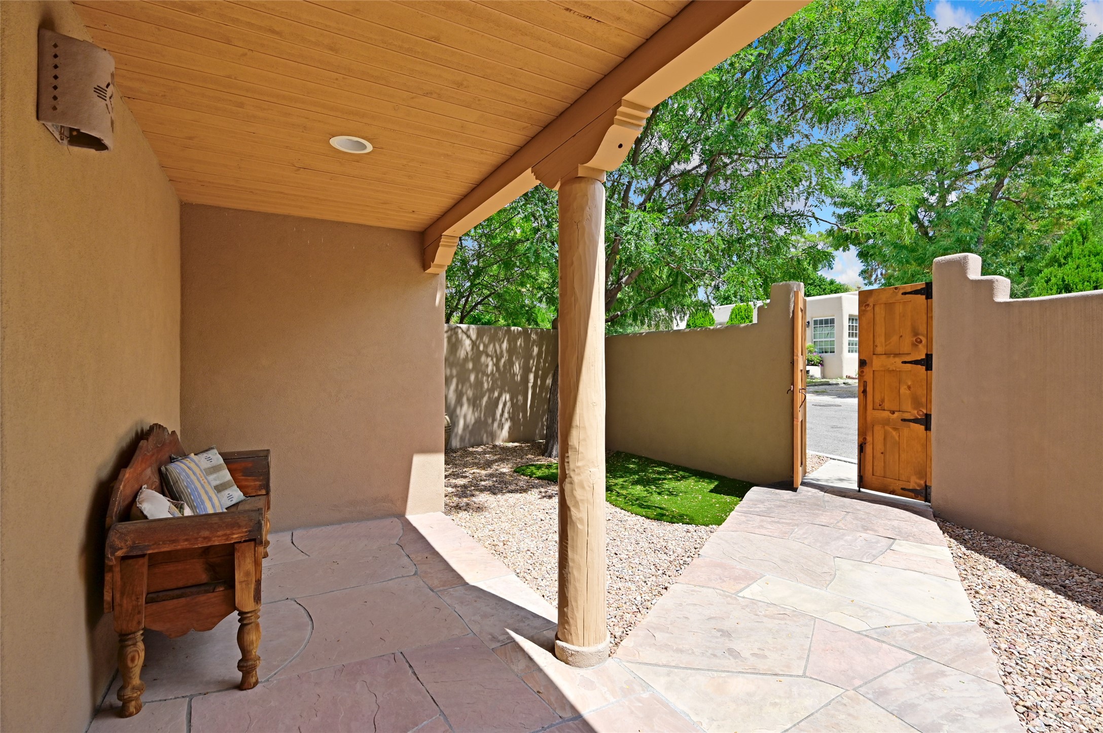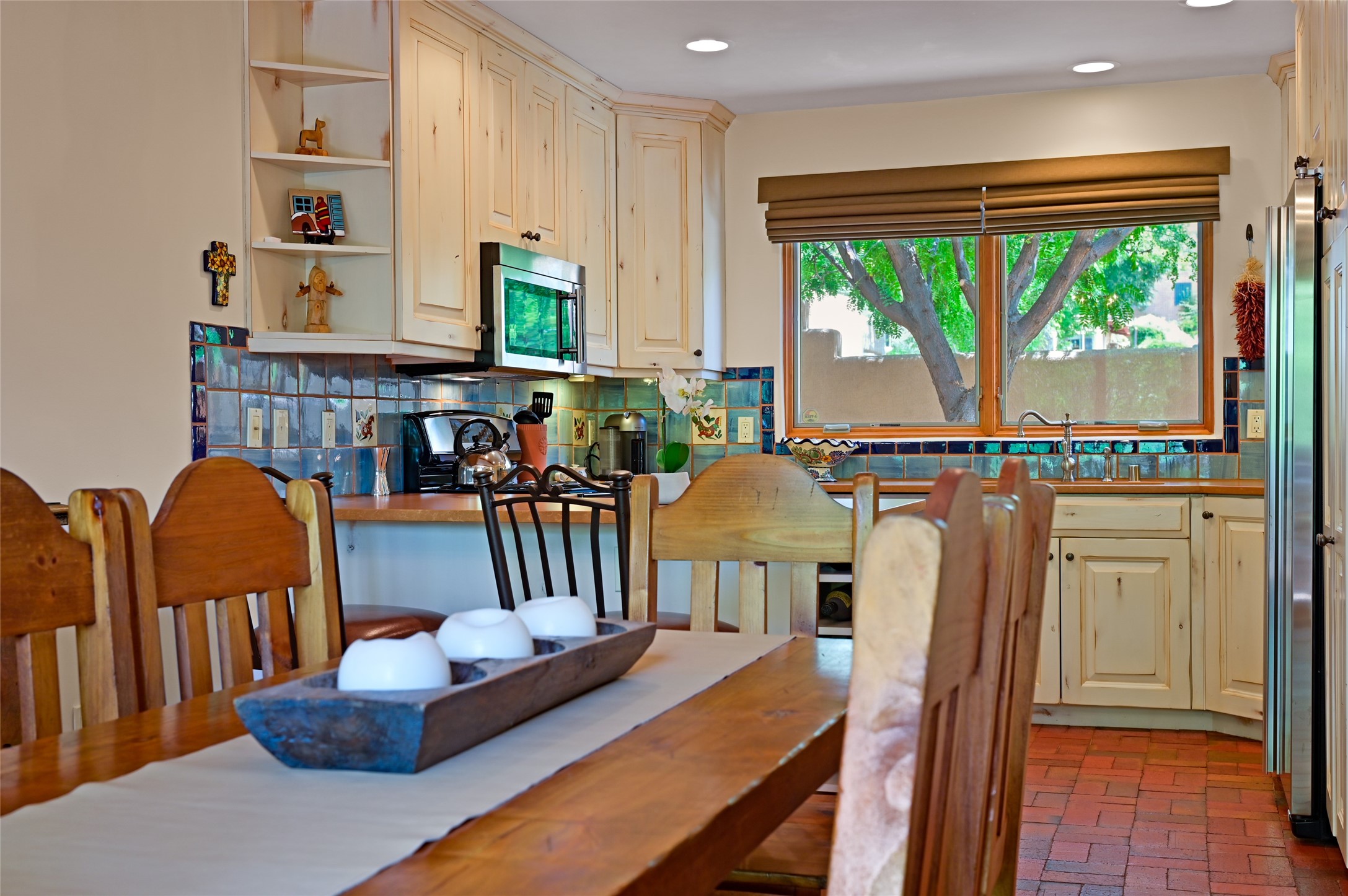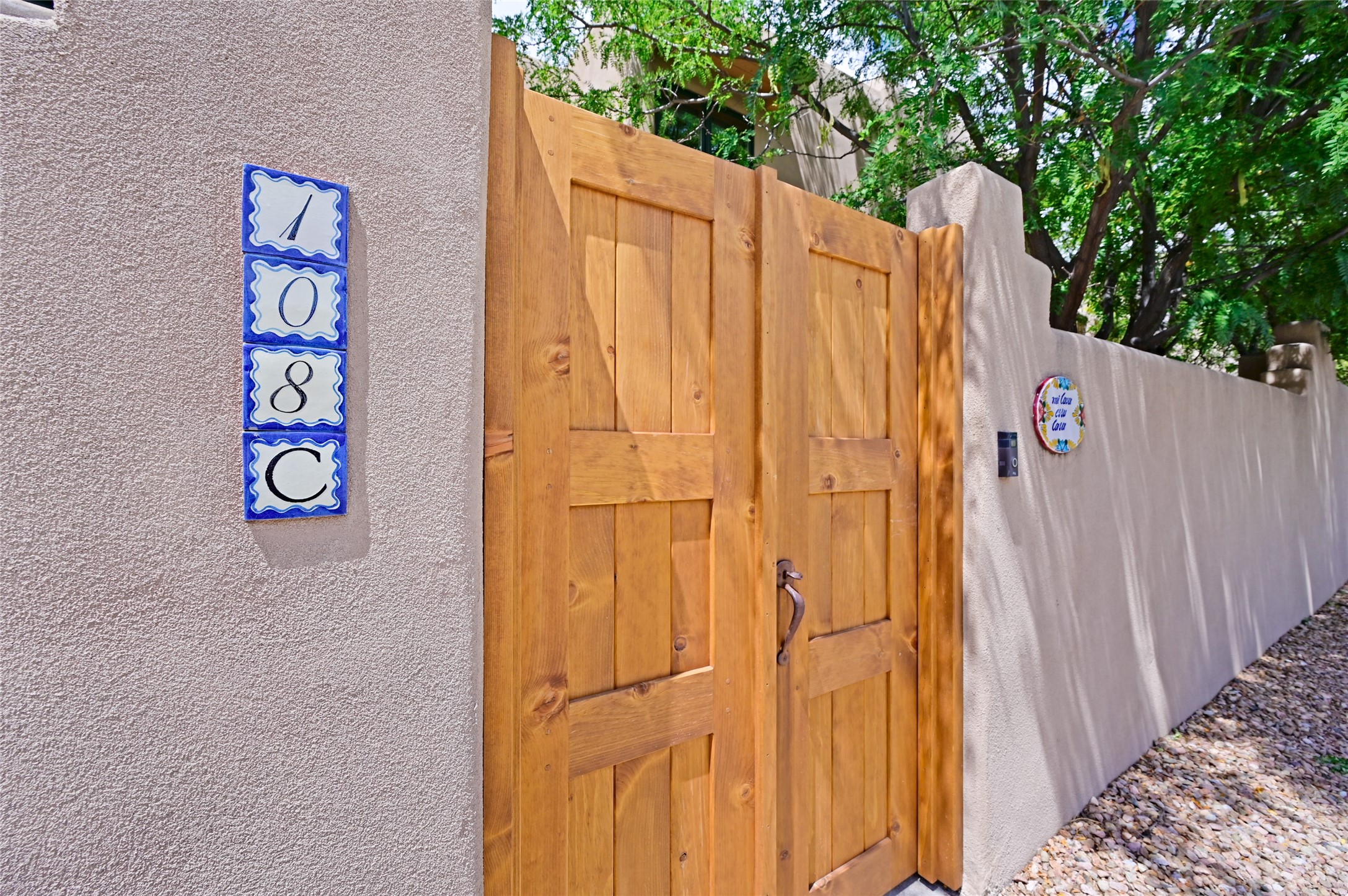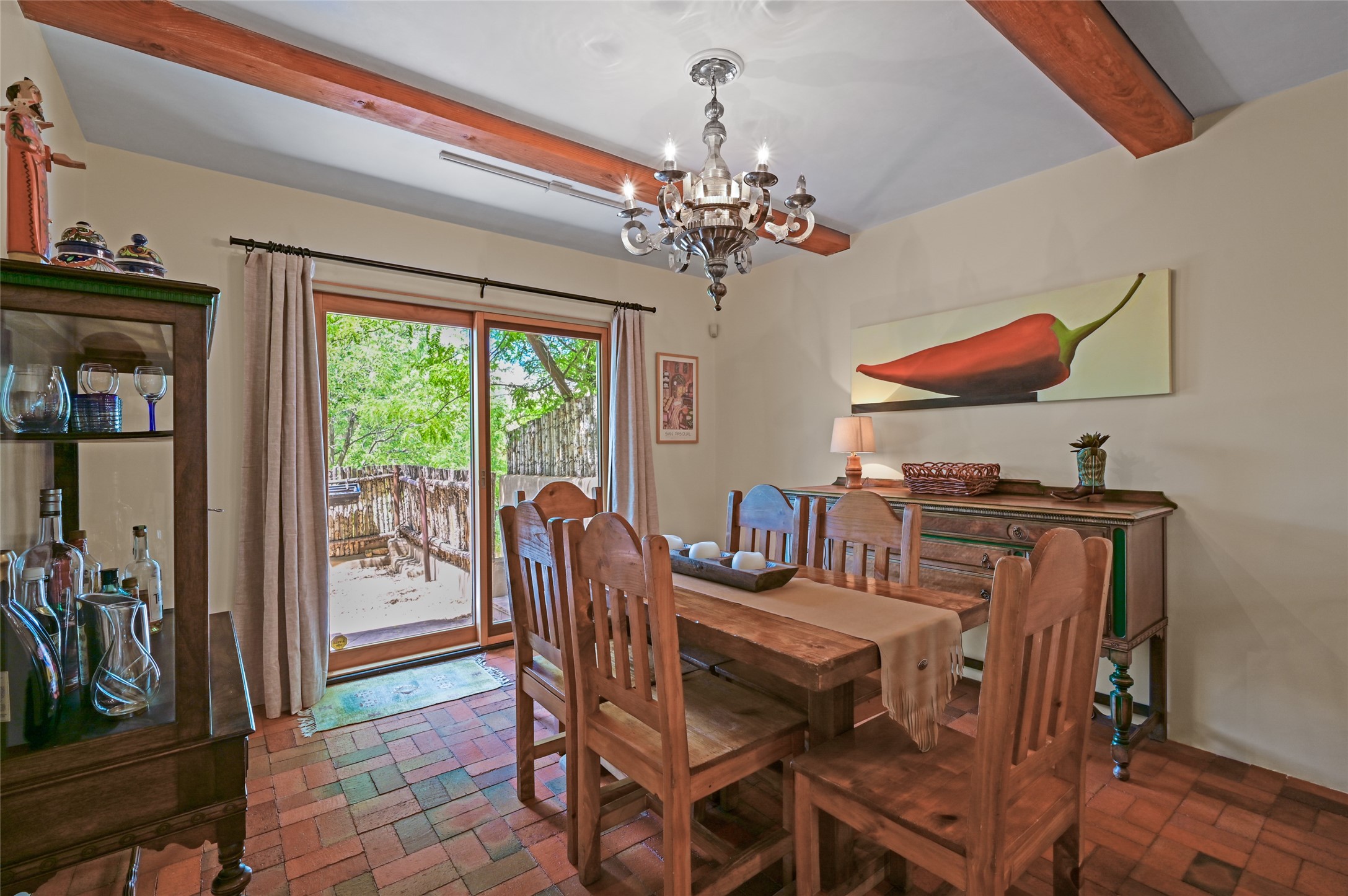 Charming Condo Near the Santa Fe Plaza!This 2-bedroom, 2.5-bath end unit condo offers approximately 1,374 sq. ft. of inviting living space close to the Plaza, with the Fort Marcy Complex, park, and hiking trails nearby. Inside, classic Santa Fe style shines with warm brick floors, nichos, plastered walls, Spanish tile in the bathrooms, and a cozy kiva fireplace. The sunlit kitchen features stainless steel appliances, silestone counters and an abundance of natural light. Both bedrooms have ensuite baths, and one opens to a deck with morning sun. Updates include 3 mini-splits, enlarged primary closest and bathroom. A private detached one-car garage, gated front and back courtyards for entertaining completes this ideal lock-and-leave home in a prime location.