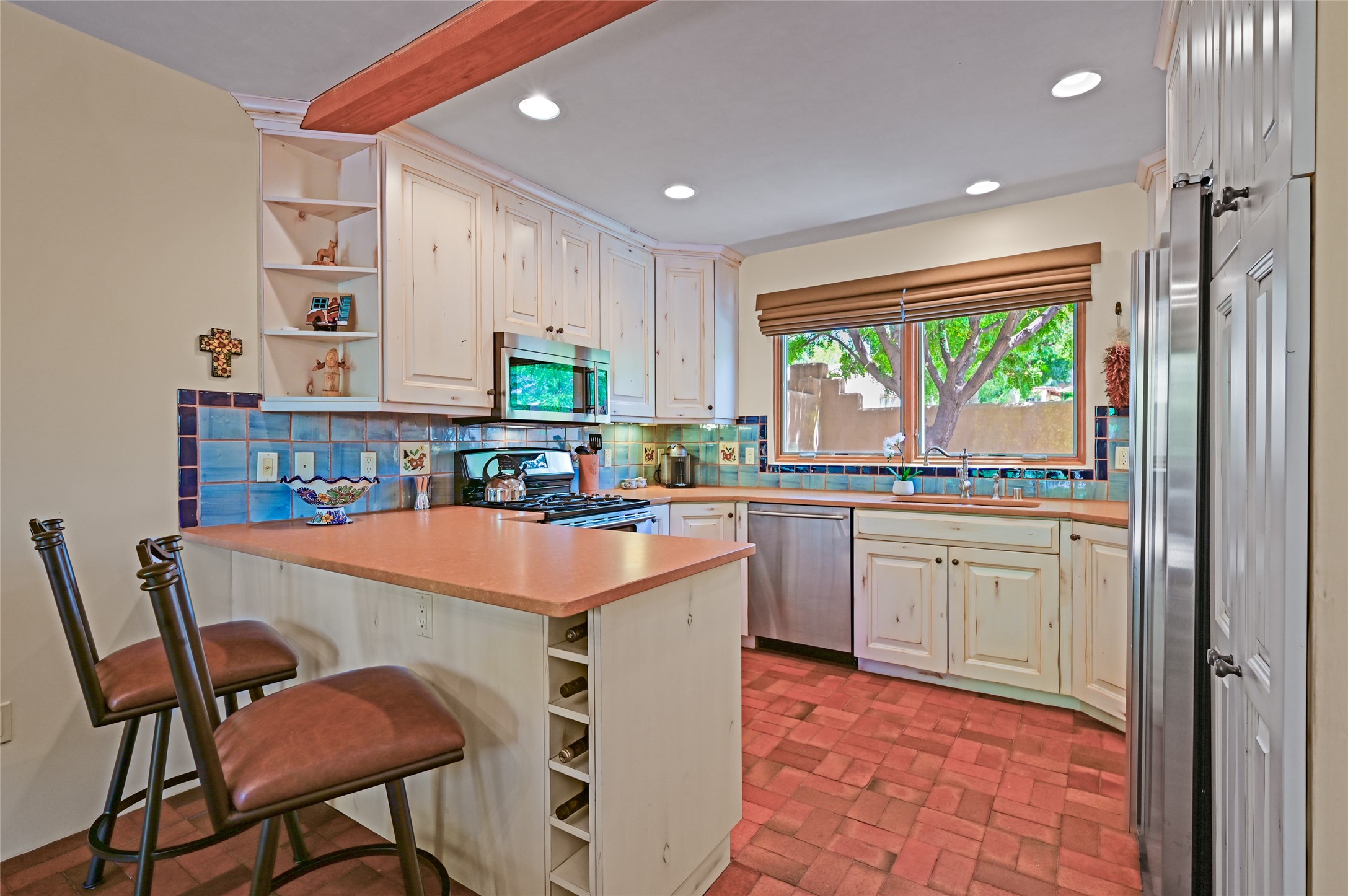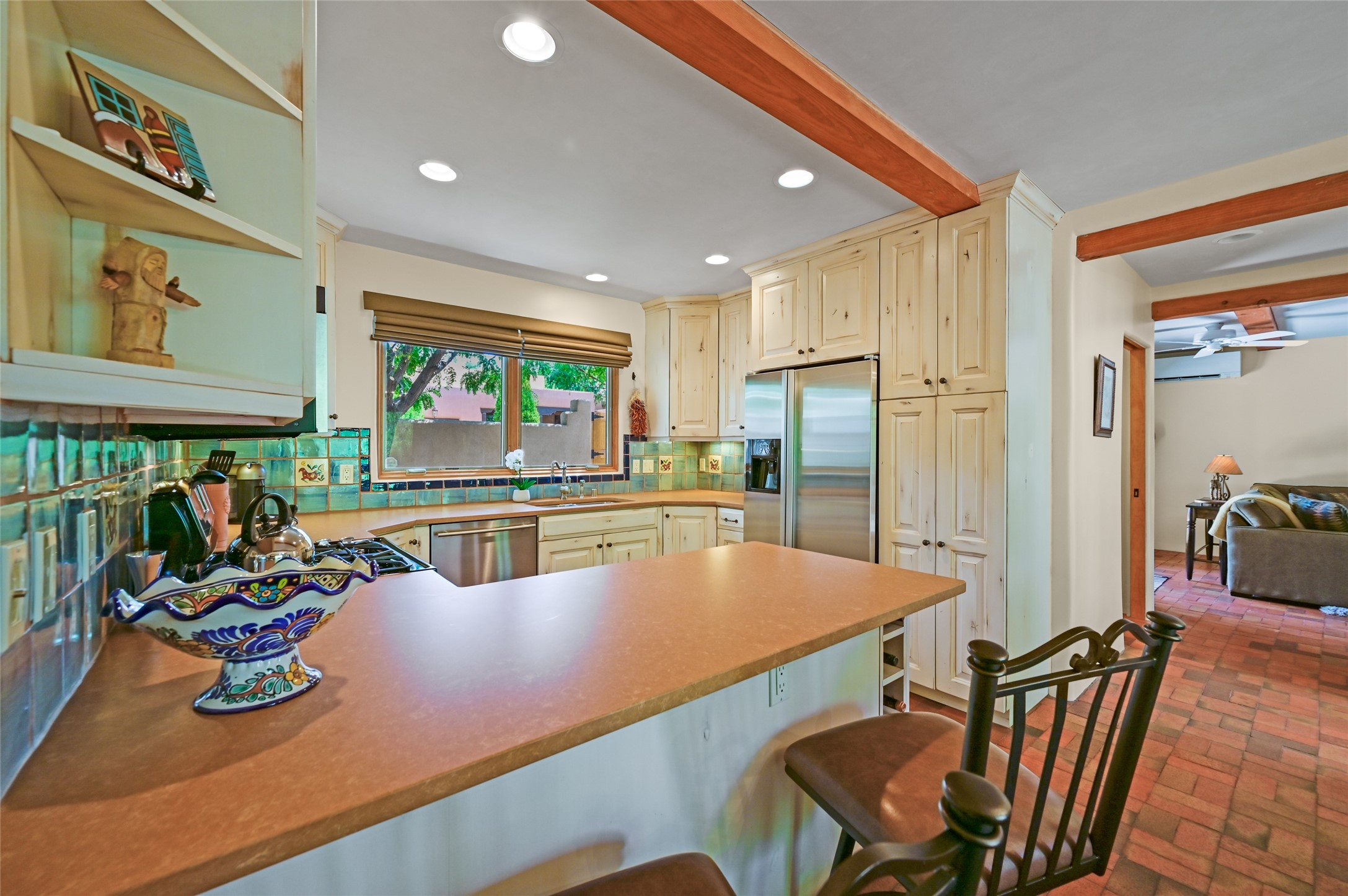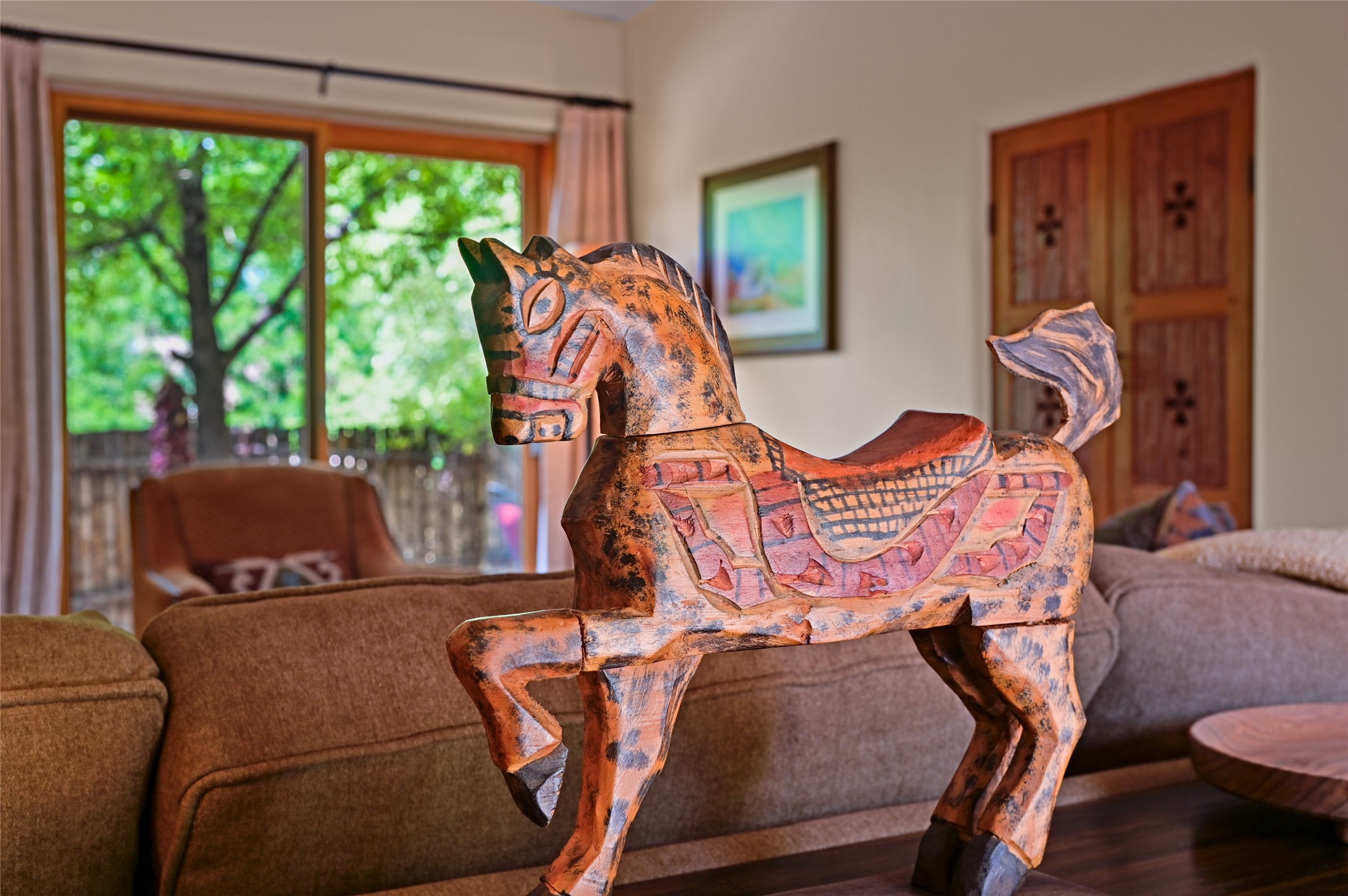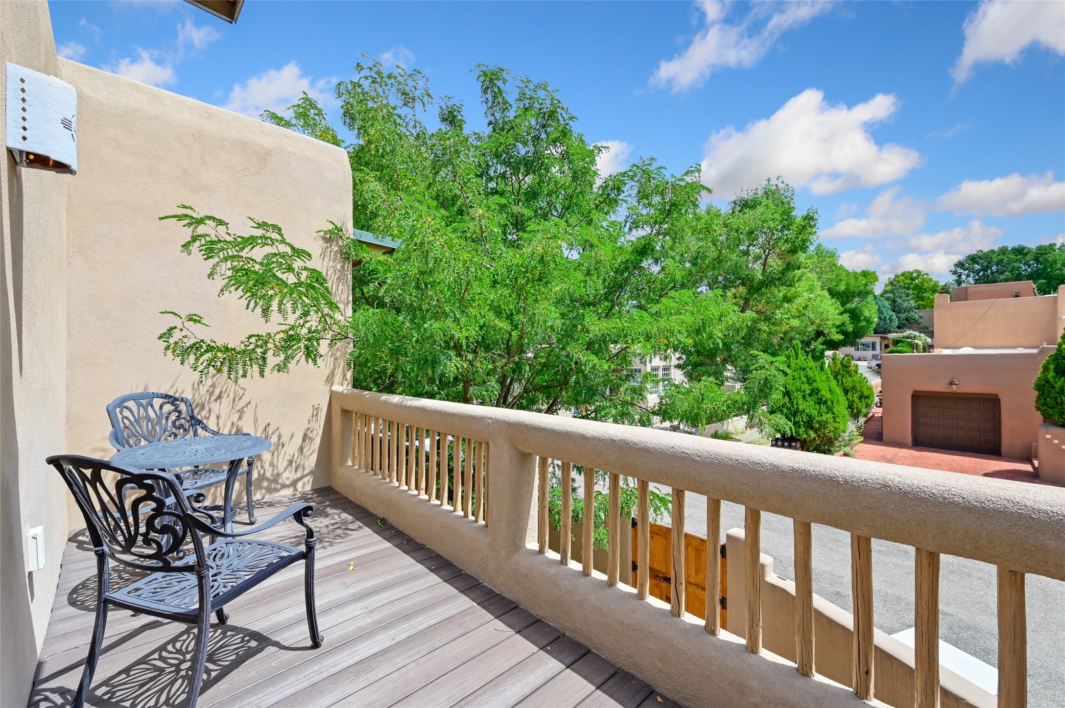 Charming Condo Near the Santa Fe Plaza!This 2-bedroom, 2.5-bath end unit condo offers approximately 1,374 sq. ft. of inviting living space close to the Plaza, with the Fort Marcy Complex, park, and hiking trails nearby. Inside, classic Santa Fe style shines with warm brick floors, nichos, plastered walls, Spanish tile in the bathrooms, and a cozy kiva fireplace. The sunlit kitchen features stainless steel appliances, silestone counters and an abundance of natural light. Both bedrooms have ensuite baths, and one opens to a deck with morning sun. Updates include 3 mini-splits, enlarged primary closest and bathroom. A private detached one-car garage, gated front and back courtyards for entertaining completes this ideal lock-and-leave home in a prime location.
