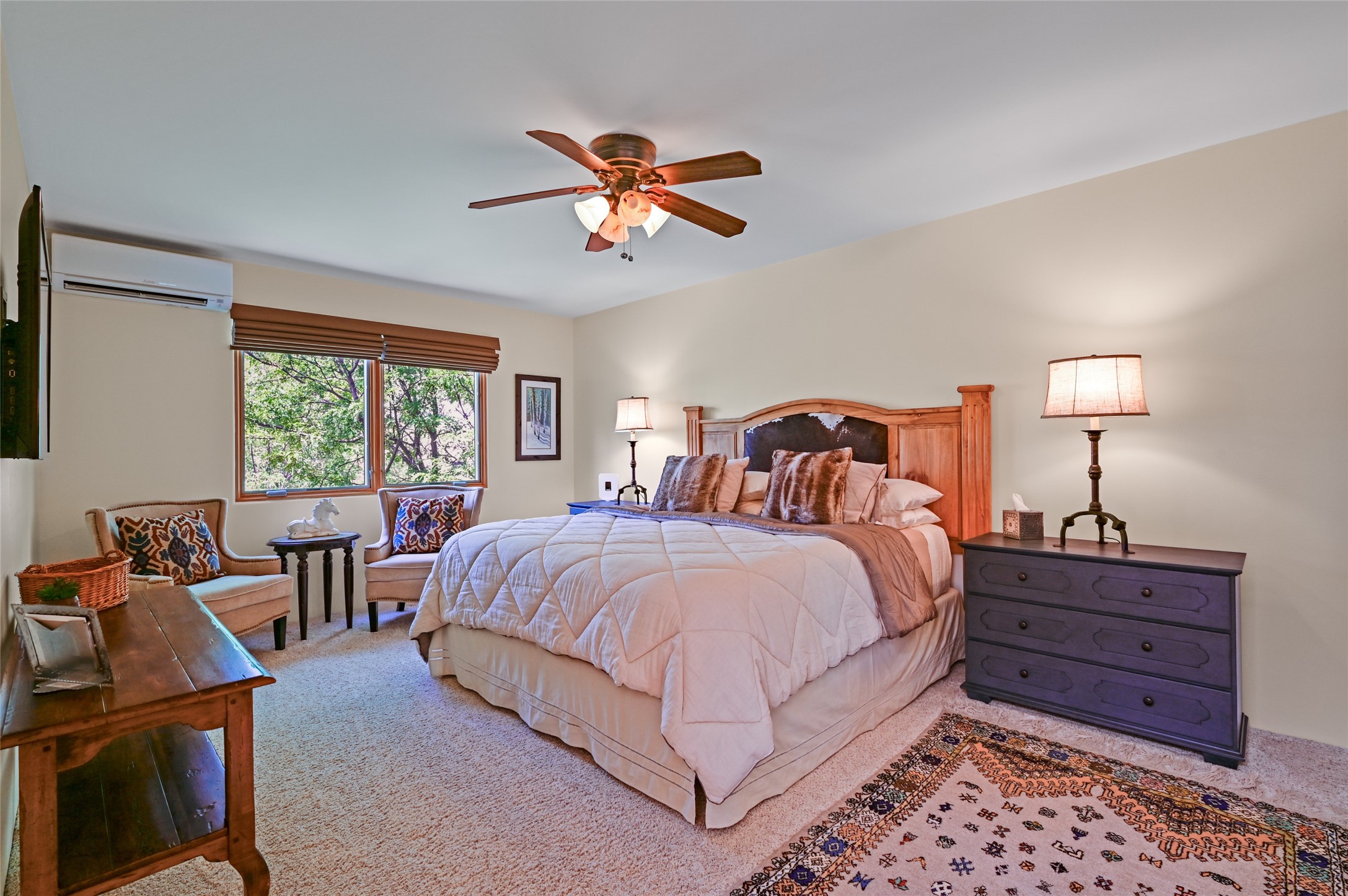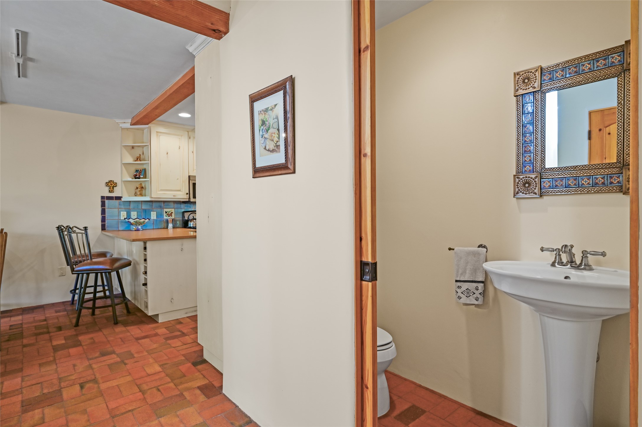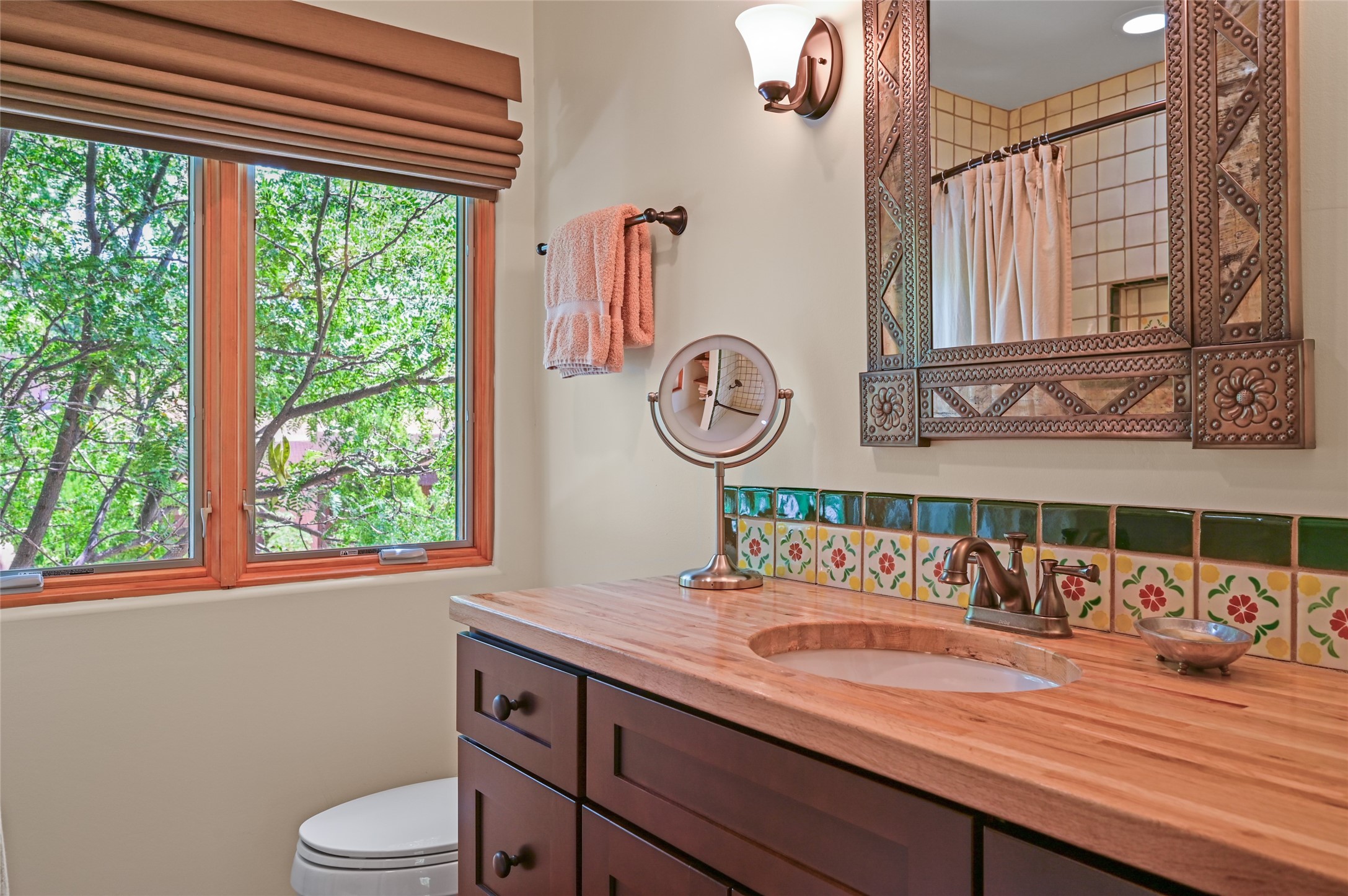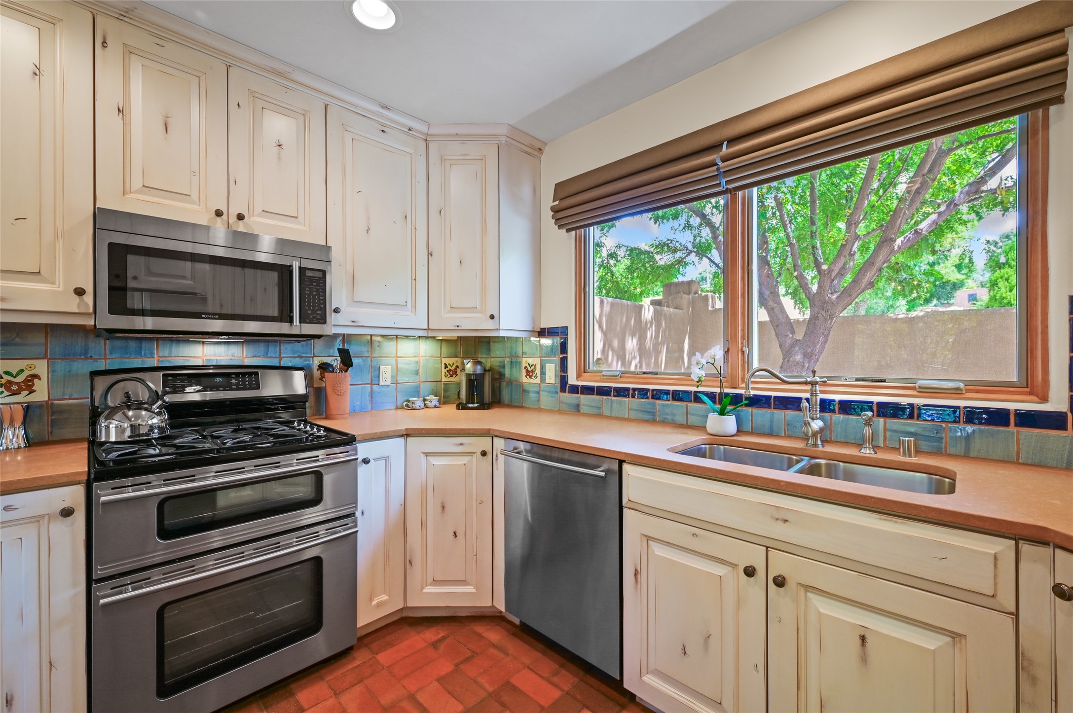 Charming Condo Near the Santa Fe Plaza!This 2-bedroom, 2.5-bath end unit condo offers approximately 1,374 sq. ft. of inviting living space close to the Plaza, with the Fort Marcy Complex, park, and hiking trails nearby. Inside, classic Santa Fe style shines with warm brick floors, nichos, plastered walls, Spanish tile in the bathrooms, and a cozy kiva fireplace. The sunlit kitchen features stainless steel appliances, silestone counters and an abundance of natural light. Both bedrooms have ensuite baths, and one opens to a deck with morning sun. Updates include 3 mini-splits, enlarged primary closest and bathroom. A private detached one-car garage, gated front and back courtyards for entertaining completes this ideal lock-and-leave home in a prime location.