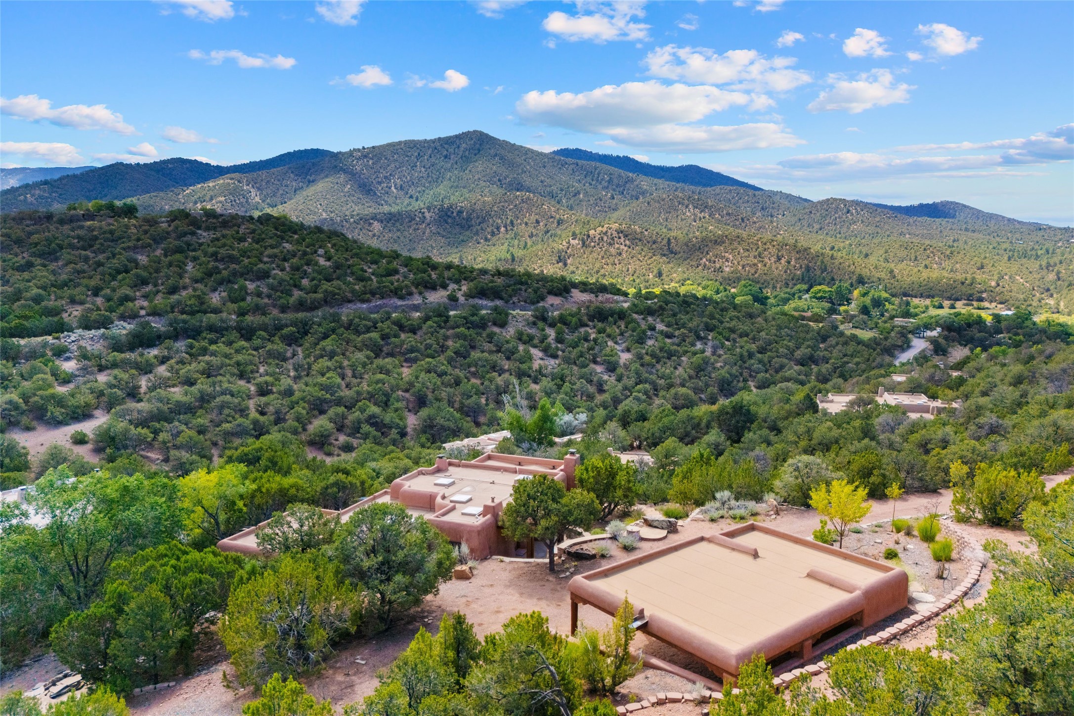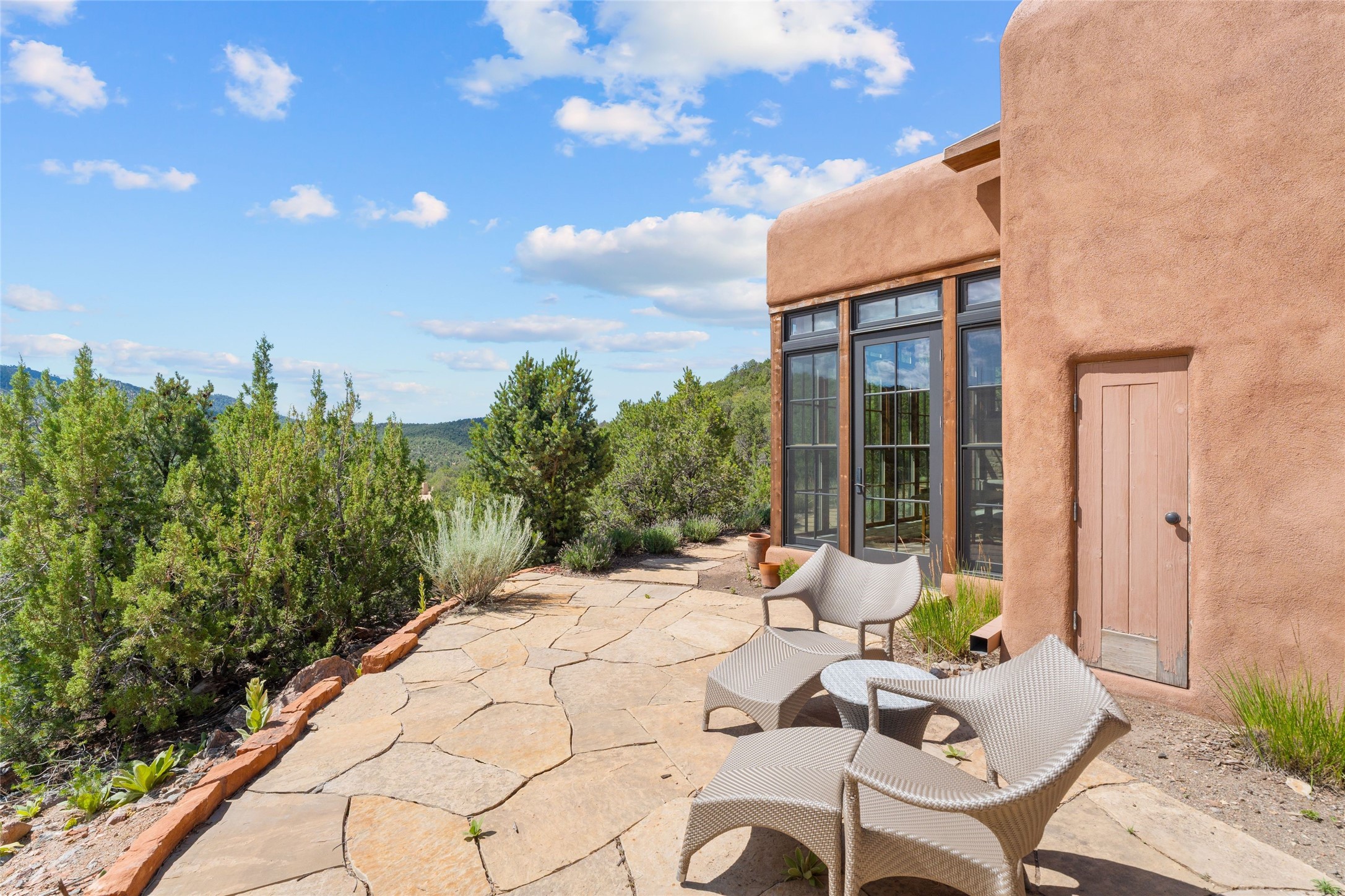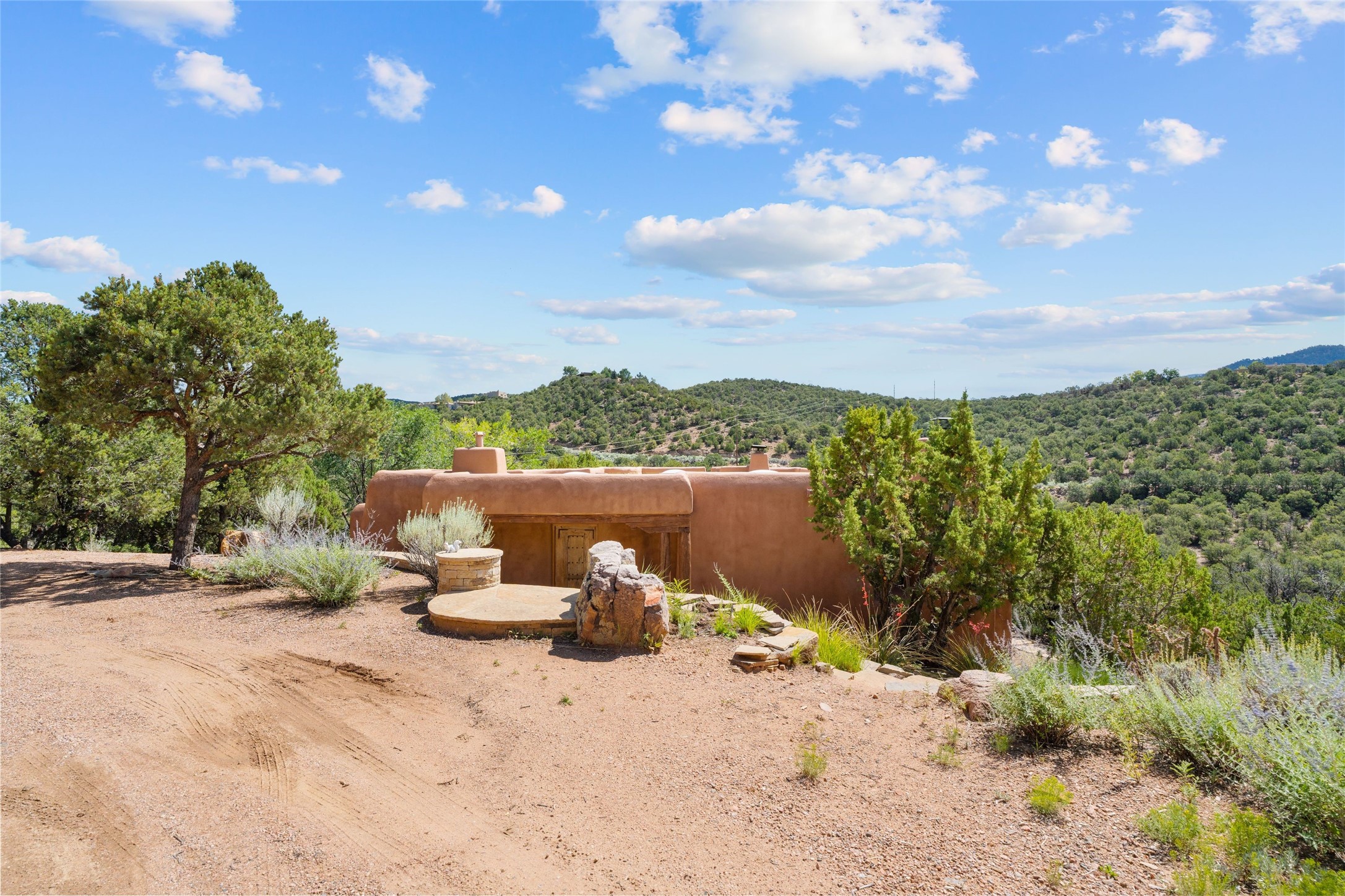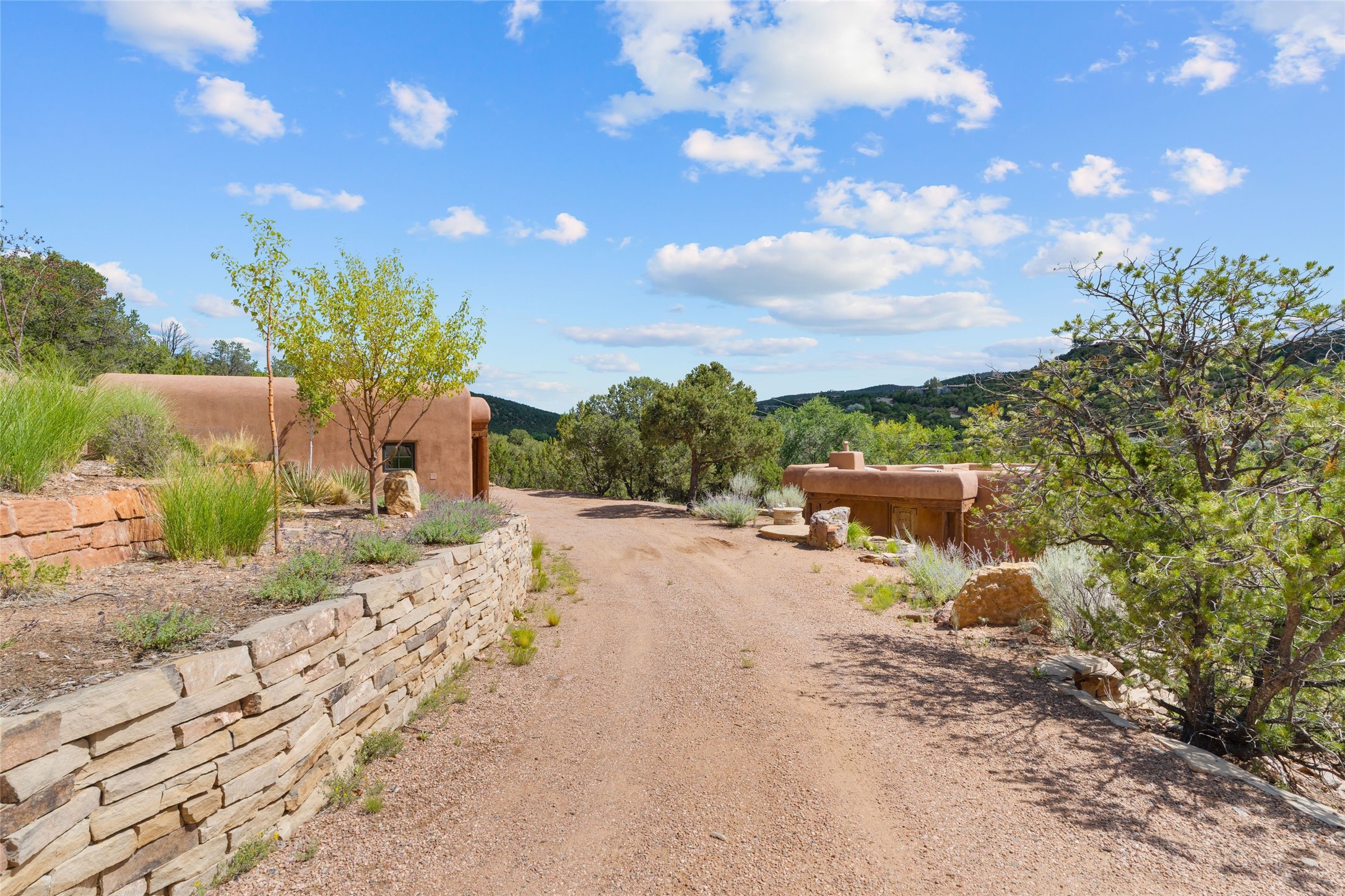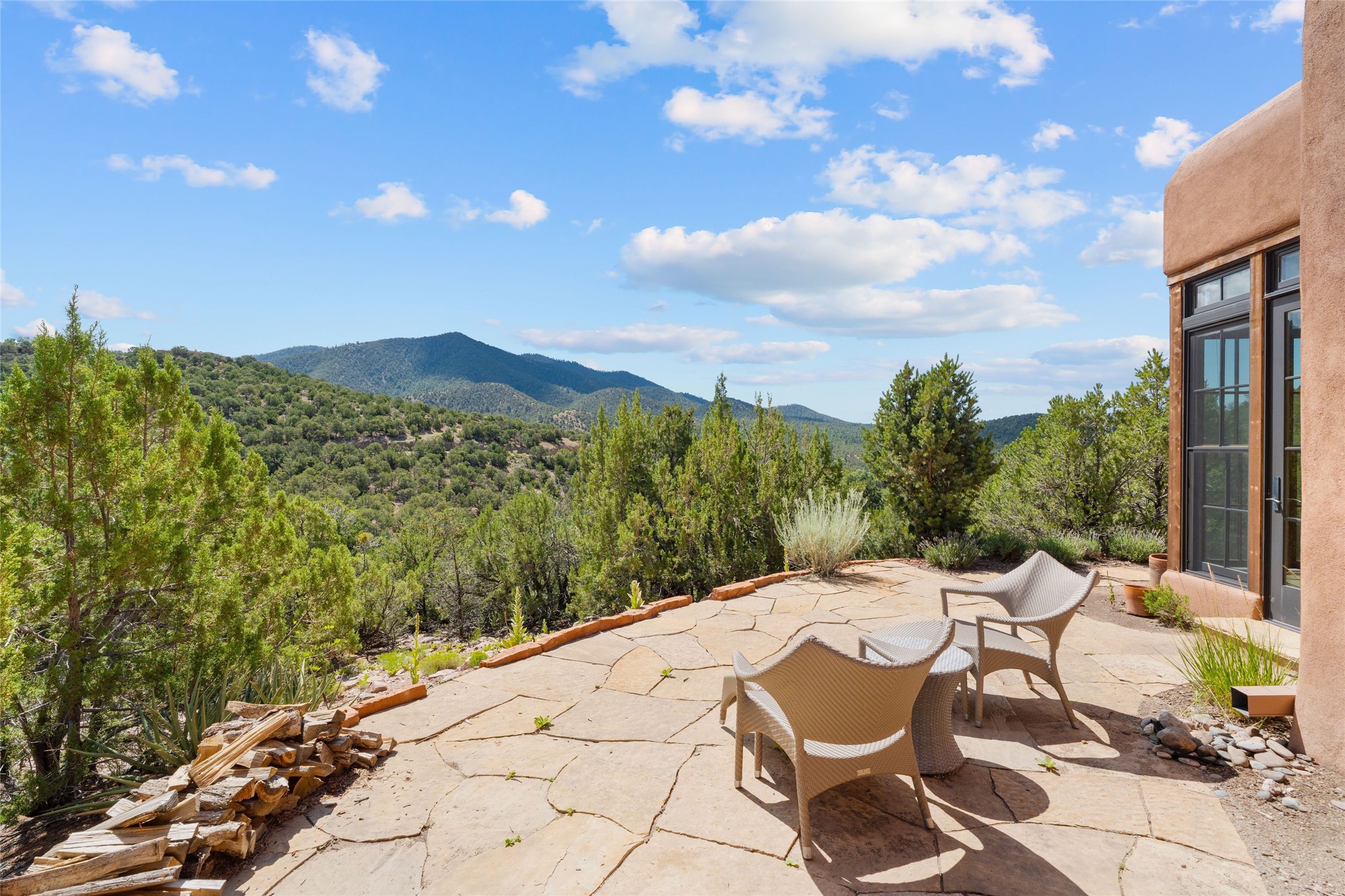 Historic Eastside 2-bedroom, 2-bath residence at the end of a charming lane off of coveted Cerro Gordo Rd, offers a perfect blend of iconic Santa Fe style and modern comfort. With unobstructed views of the majestic Atalaya Mountain, this home invites you to embrace the beauty of nature right from your doorstep. Traditional plastered walls and vigas. The living room, featuring a fireplace, opens to to a large sunroom with fireplace, which serves as a second living area and dining space. Floor-to-ceiling windows frame forested mountain views, bringing the outdoors in and filling the home with natural light. The updated kitchen is equipped with a high-end Wolf range and butcher block countertops. An informal dining area is a delightful spot for casual meals. Primary suite with a luxurious en-suite bath and a walk-in closet featuring custom built-ins. The second bedroom offers versatile space, ideal for guests, a home office, or a creative studio. Flagstone patio, where gorgeous views create a magical setting for al fresco dining or outdoor gatherings. Located just moments away from Canyon Rd and the historic Santa Fe Plaza, this home is perfectly positioned to enjoy the rich culture, art, and dining that Santa Fe has to offer.