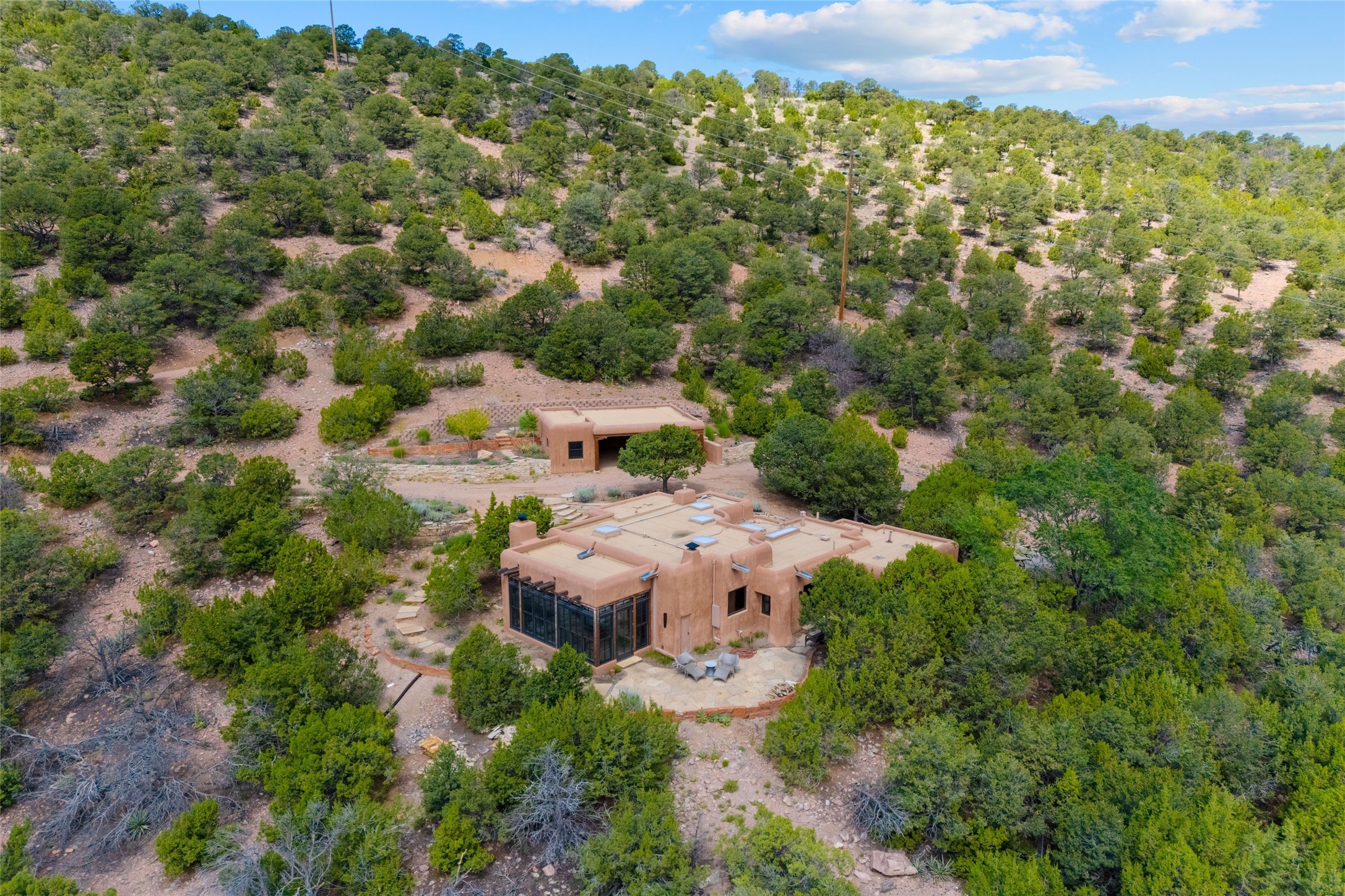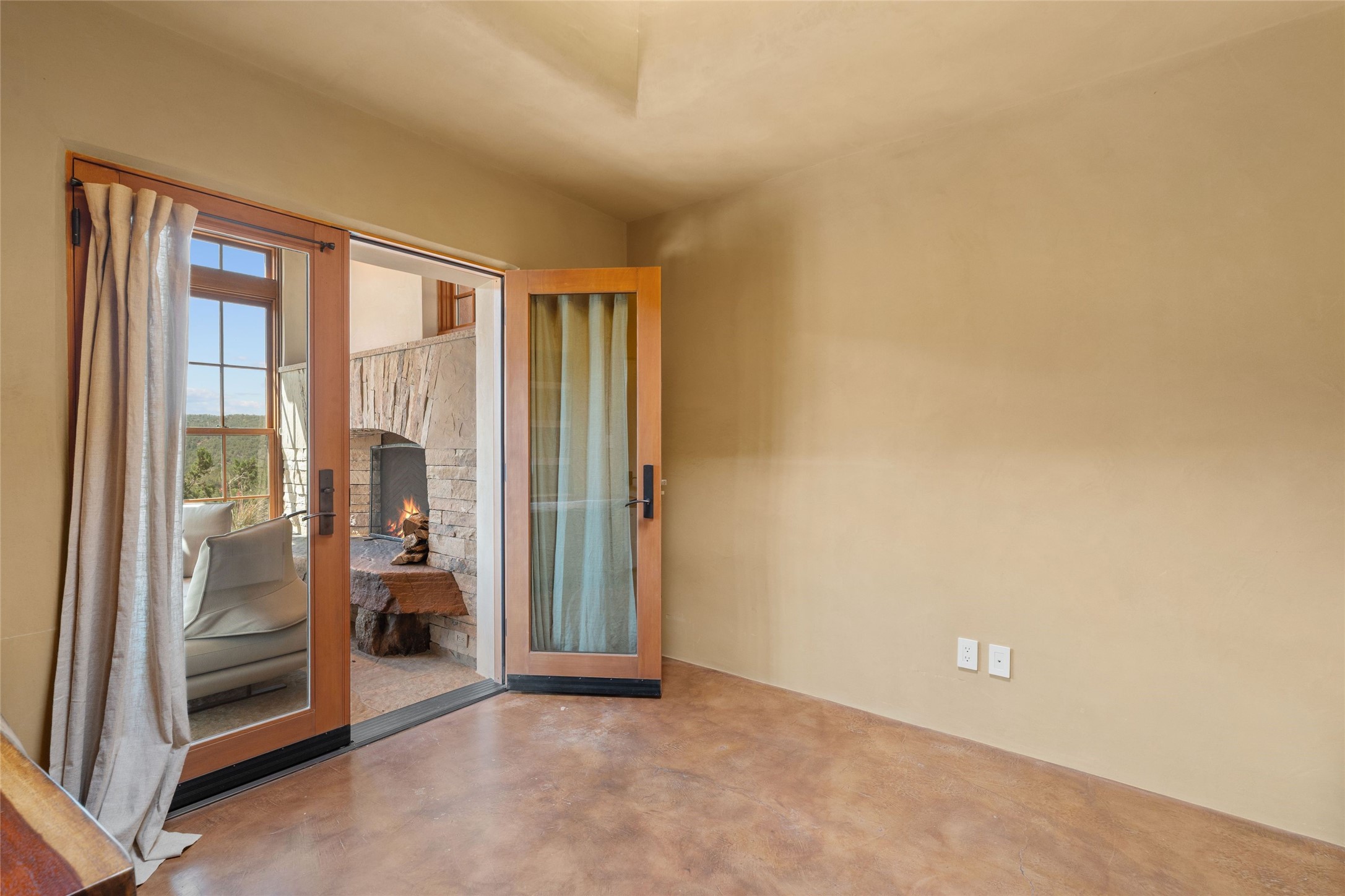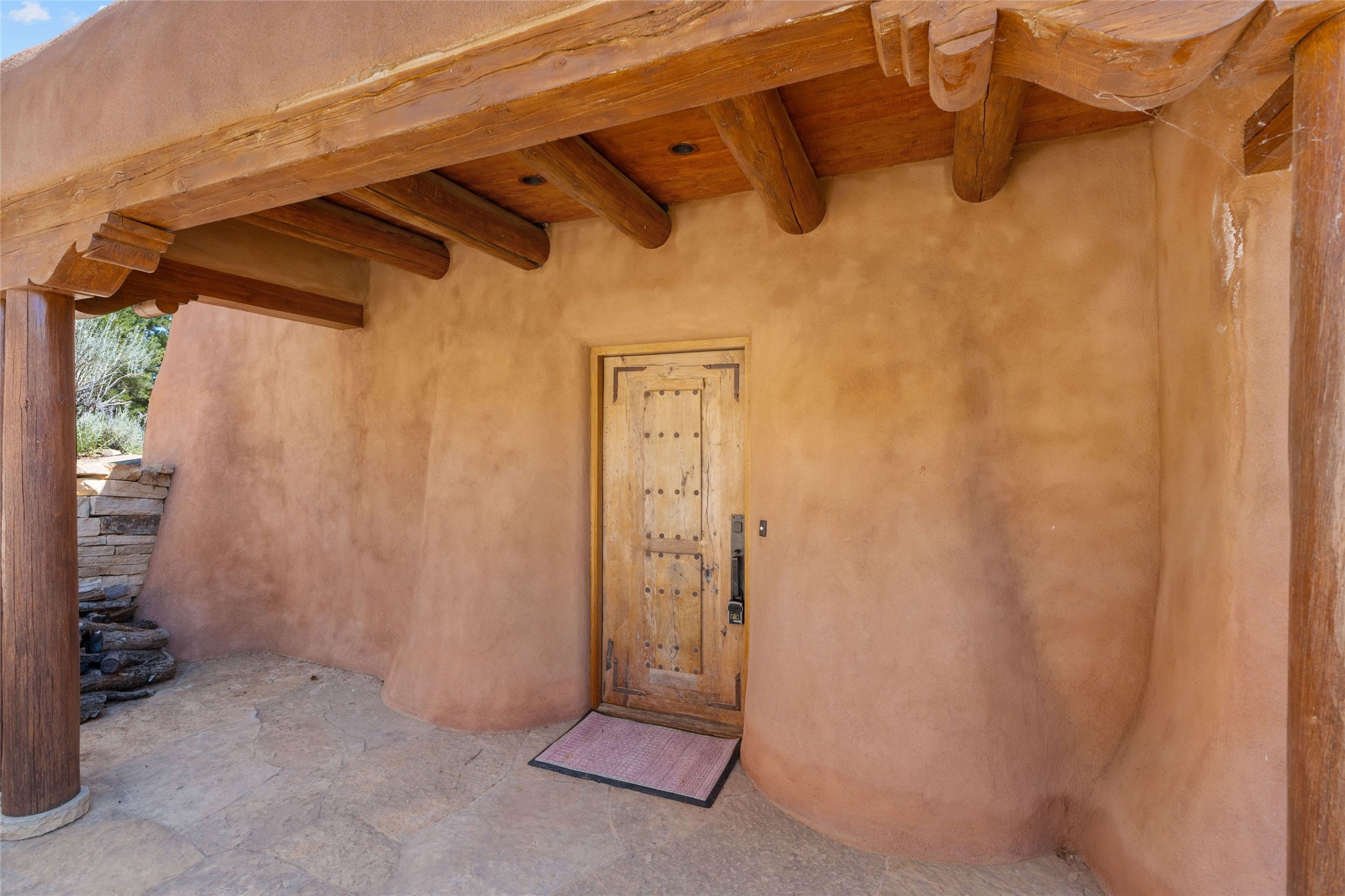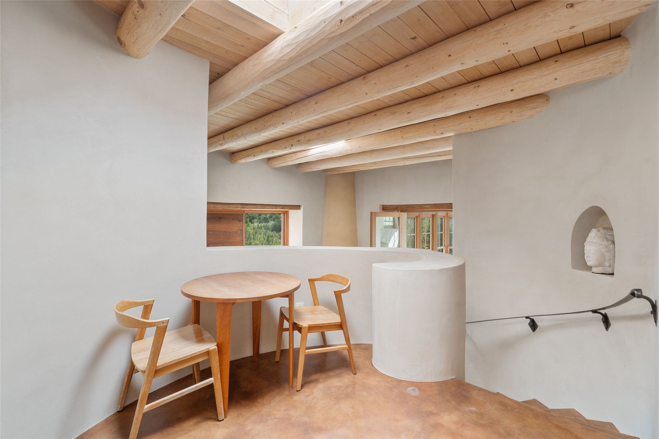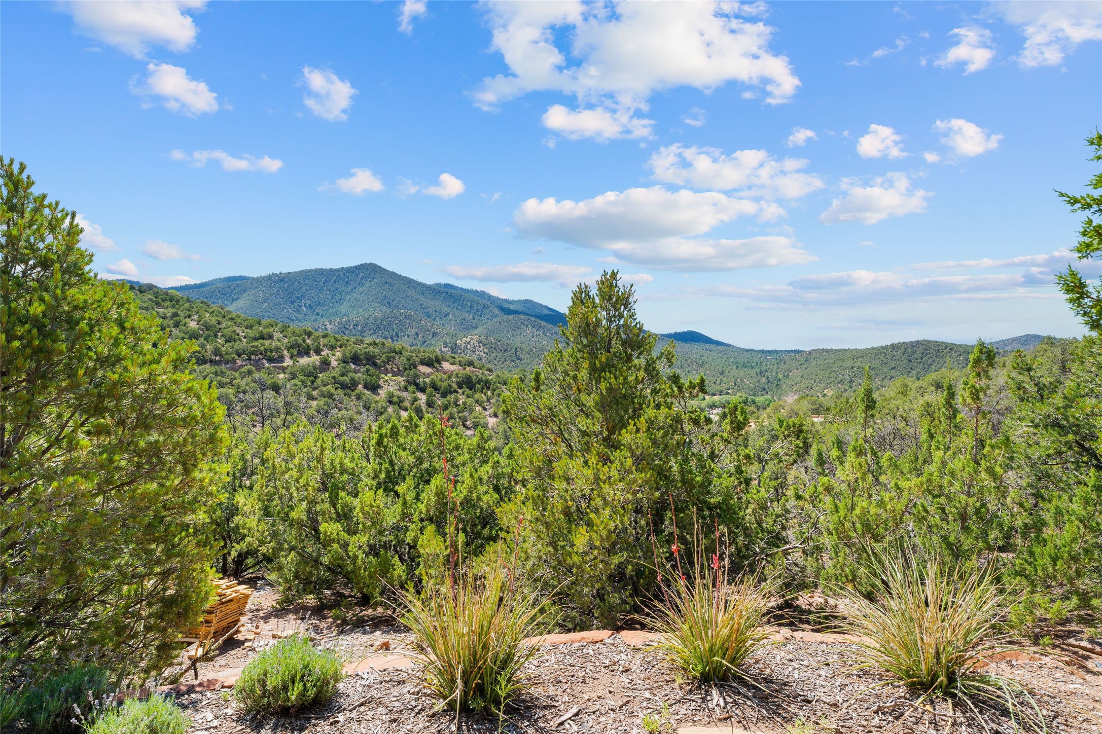 Historic Eastside 2-bedroom, 2-bath residence at the end of a charming lane off of coveted Cerro Gordo Rd, offers a perfect blend of iconic Santa Fe style and modern comfort. With unobstructed views of the majestic Atalaya Mountain, this home invites you to embrace the beauty of nature right from your doorstep. Traditional plastered walls and vigas. The living room, featuring a fireplace, opens to to a large sunroom with fireplace, which serves as a second living area and dining space. Floor-to-ceiling windows frame forested mountain views, bringing the outdoors in and filling the home with natural light. The updated kitchen is equipped with a high-end Wolf range and butcher block countertops. An informal dining area is a delightful spot for casual meals. Primary suite with a luxurious en-suite bath and a walk-in closet featuring custom built-ins. The second bedroom offers versatile space, ideal for guests, a home office, or a creative studio. Flagstone patio, where gorgeous views create a magical setting for al fresco dining or outdoor gatherings. Located just moments away from Canyon Rd and the historic Santa Fe Plaza, this home is perfectly positioned to enjoy the rich culture, art, and dining that Santa Fe has to offer.