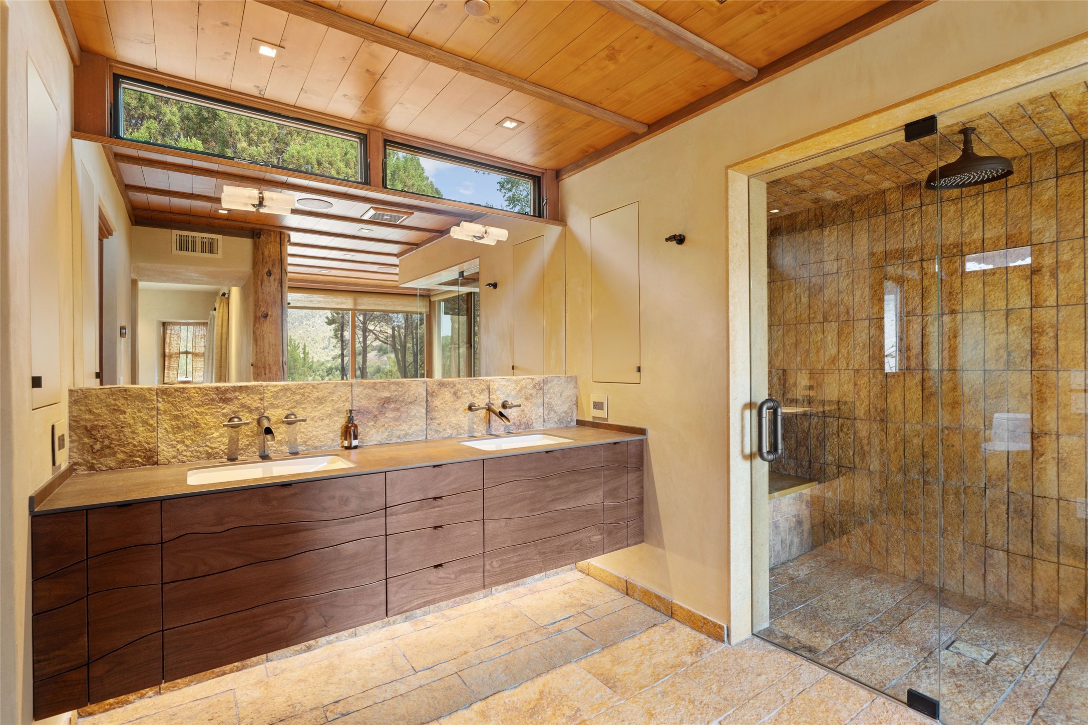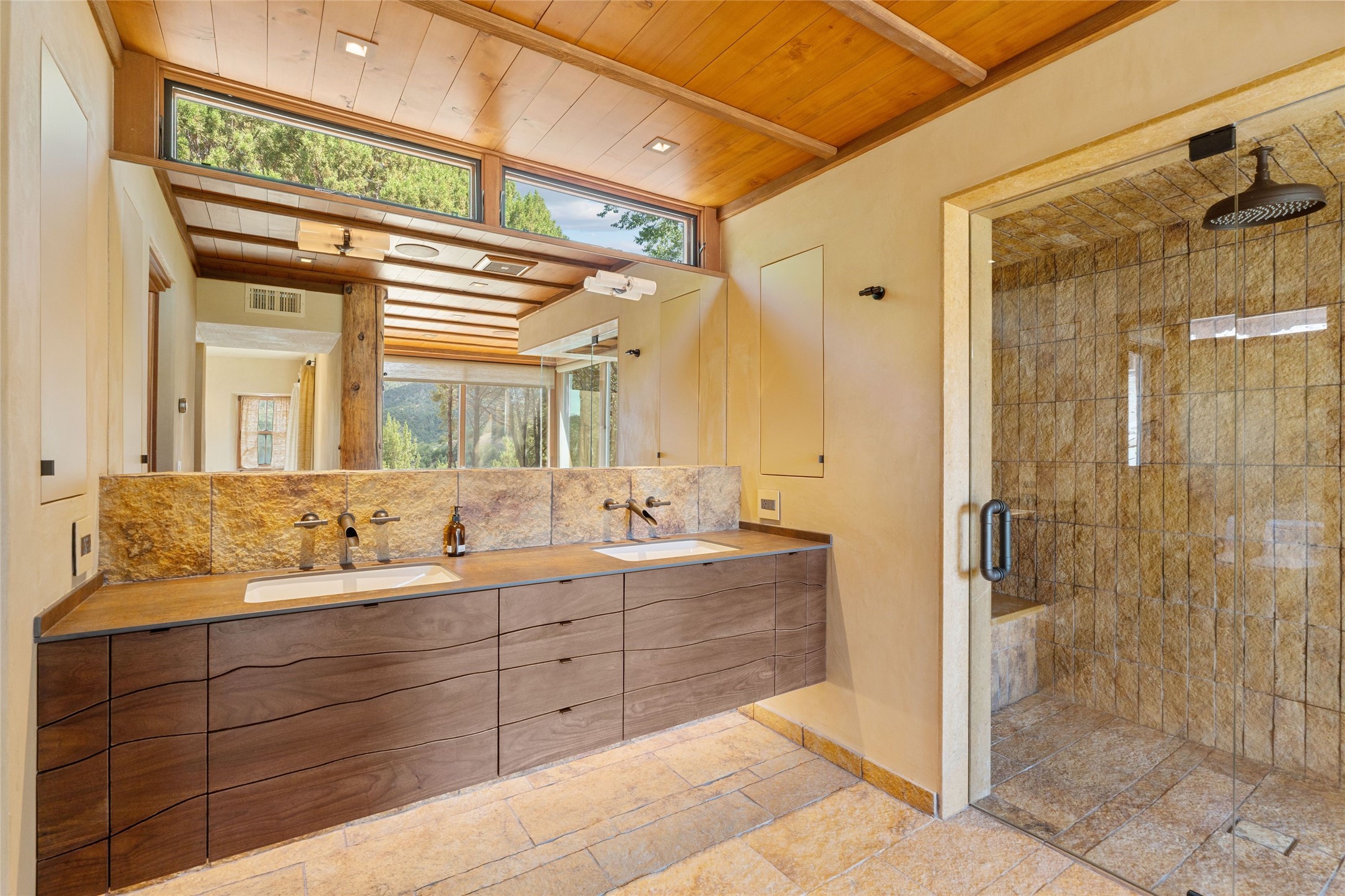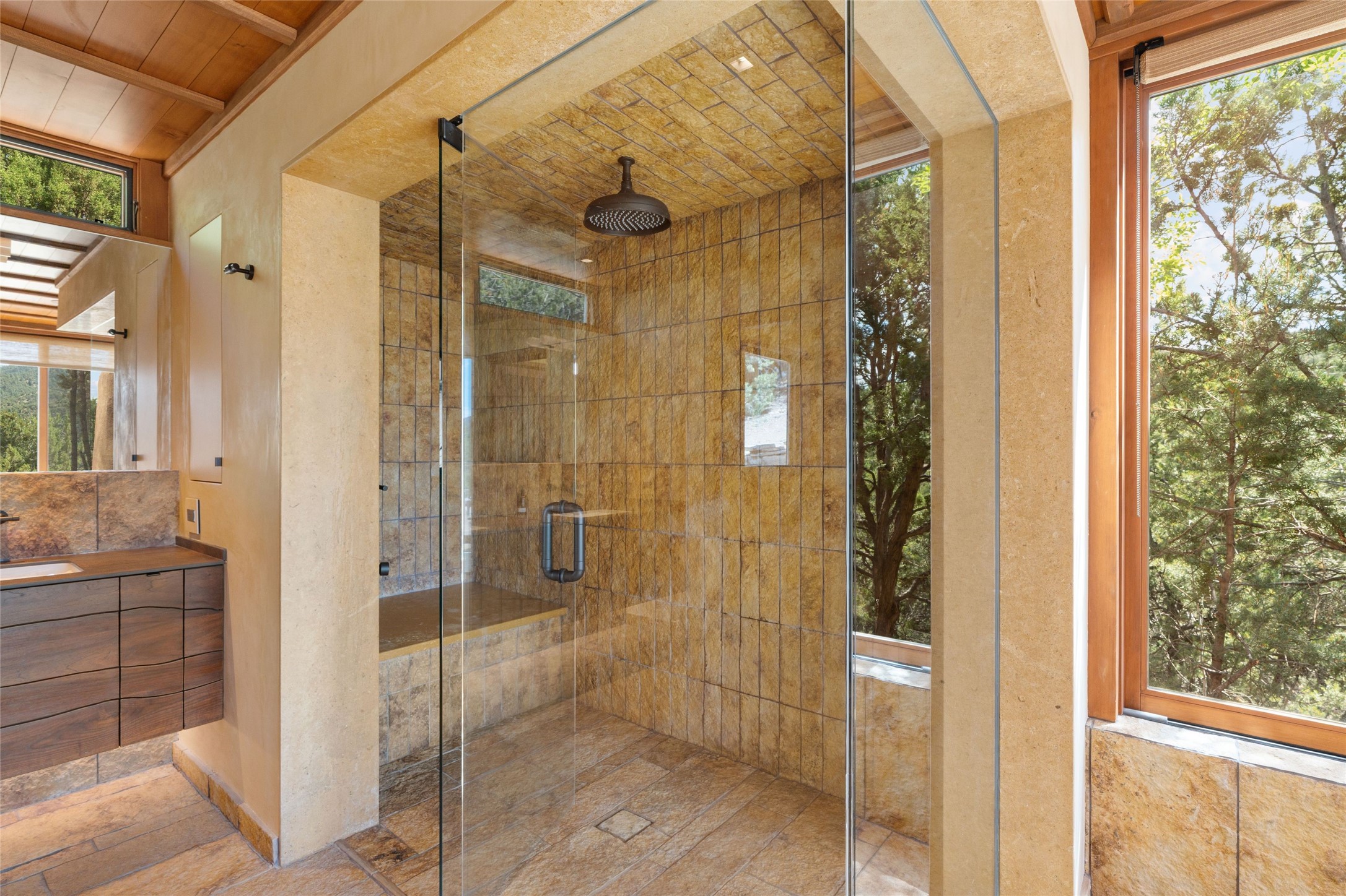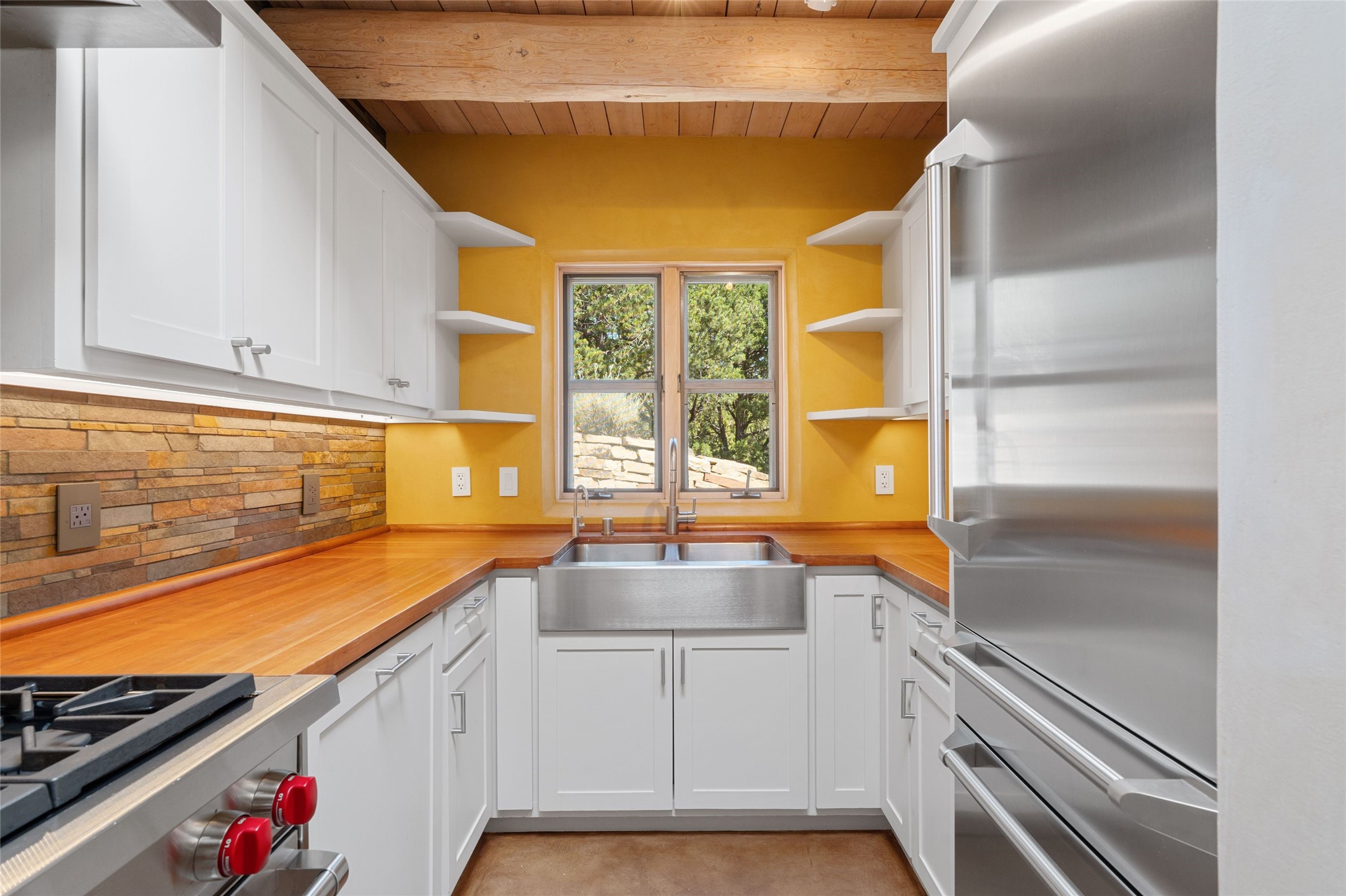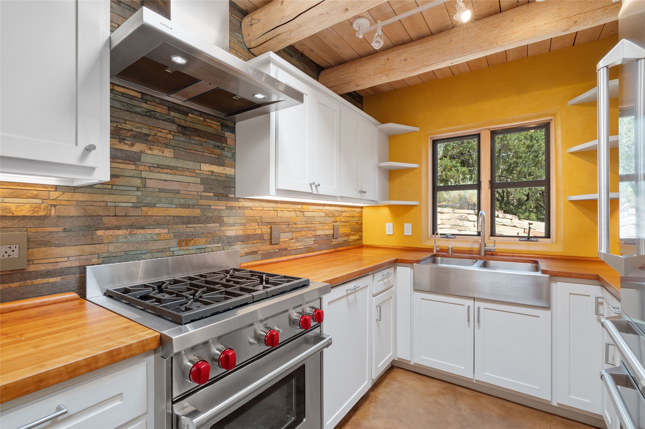 Historic Eastside 2-bedroom, 2-bath residence at the end of a charming lane off of coveted Cerro Gordo Rd, offers a perfect blend of iconic Santa Fe style and modern comfort. With unobstructed views of the majestic Atalaya Mountain, this home invites you to embrace the beauty of nature right from your doorstep. Traditional plastered walls and vigas. The living room, featuring a fireplace, opens to to a large sunroom with fireplace, which serves as a second living area and dining space. Floor-to-ceiling windows frame forested mountain views, bringing the outdoors in and filling the home with natural light. The updated kitchen is equipped with a high-end Wolf range and butcher block countertops. An informal dining area is a delightful spot for casual meals. Primary suite with a luxurious en-suite bath and a walk-in closet featuring custom built-ins. The second bedroom offers versatile space, ideal for guests, a home office, or a creative studio. Flagstone patio, where gorgeous views create a magical setting for al fresco dining or outdoor gatherings. Located just moments away from Canyon Rd and the historic Santa Fe Plaza, this home is perfectly positioned to enjoy the rich culture, art, and dining that Santa Fe has to offer.