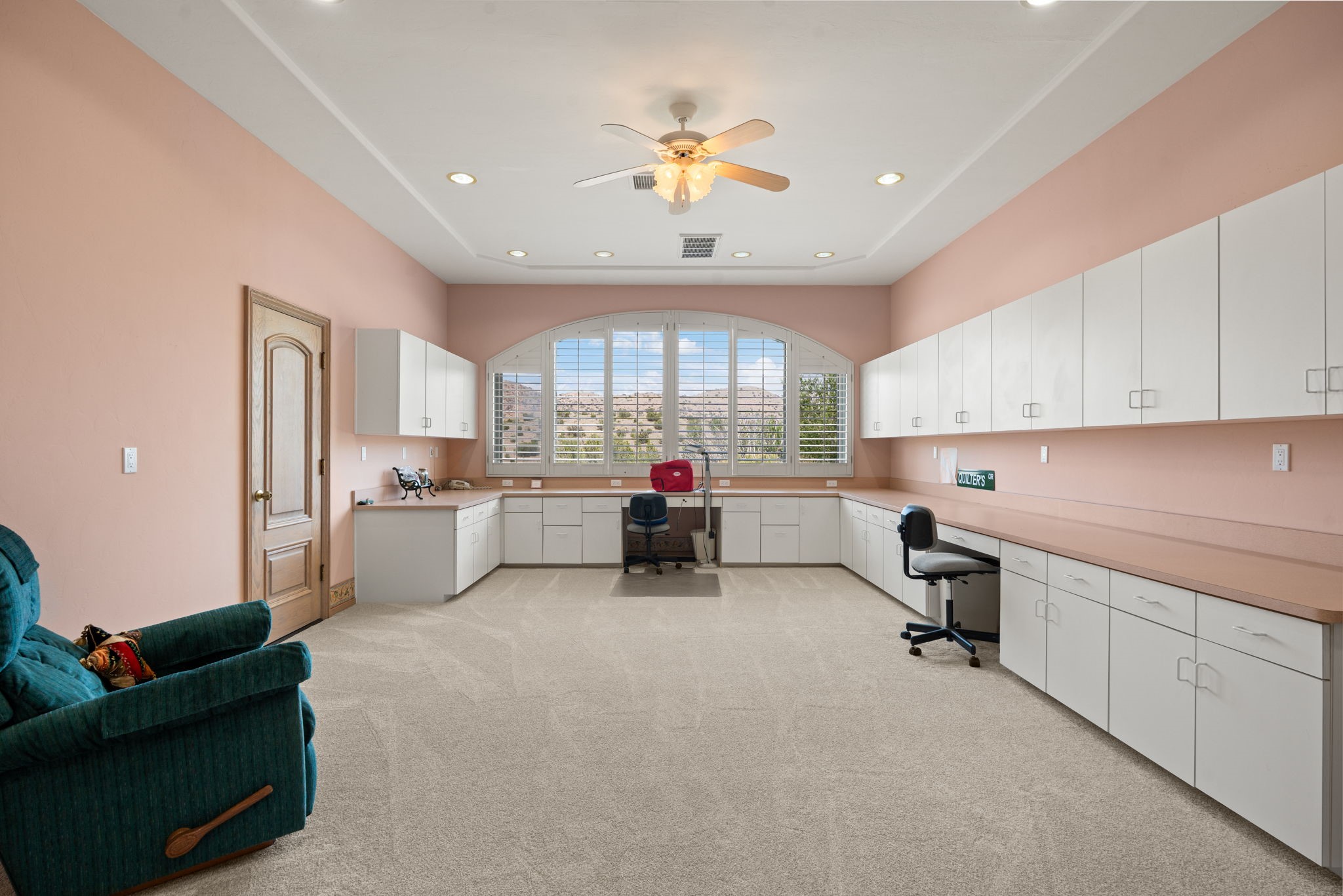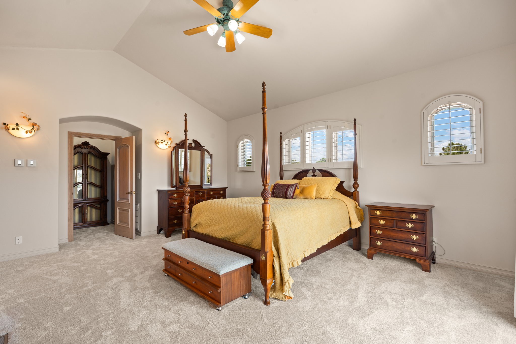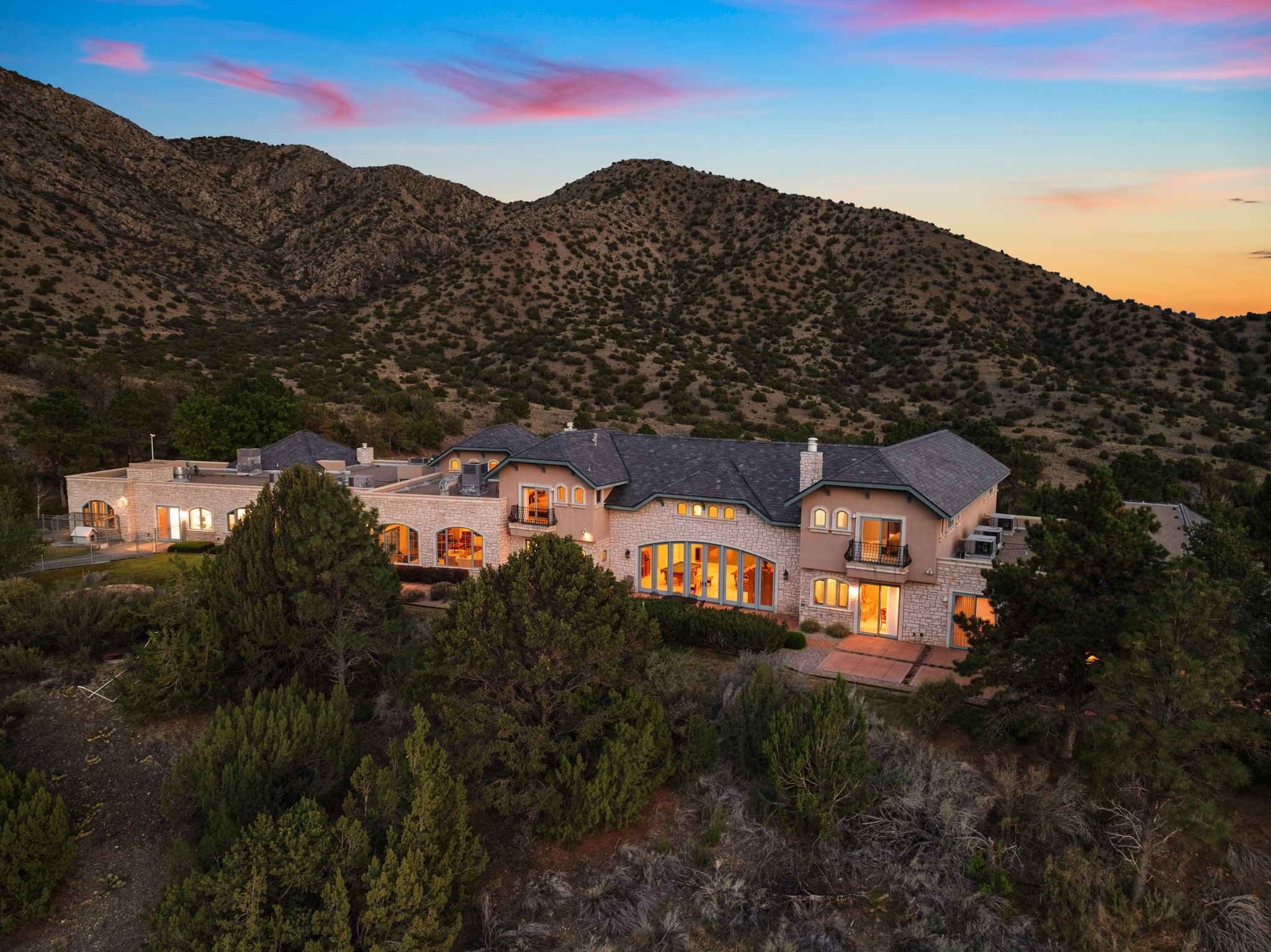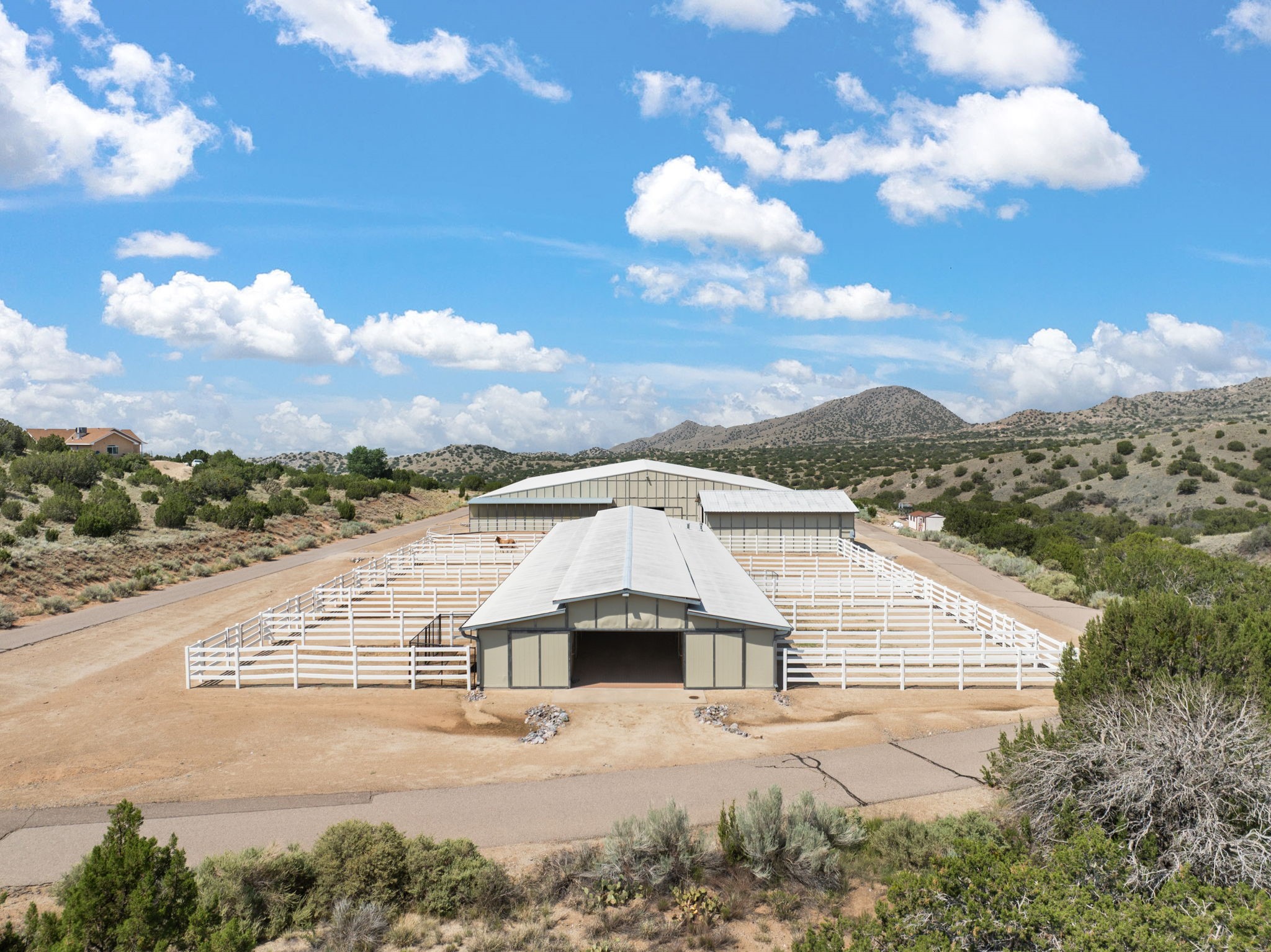 Tucked into the foothills of the Sandia Mountains and minutes from ABQ international airport, this 176+ acre retreat is a sanctuary for both people and wildlife. Miles of riding trails weave through natural habitats, giving you endless opportunities to explore on foot or horseback. Under dark, star-filled skies, you'll enjoy a peace that feels a world away from the bustle of daily life.The French Country manor, with 5 bedrooms and over 14,000 sq ft of refined comfort, welcomes you with stone architecture, a slate roof, and warm, inviting interiors. The chef's kitchen is perfect for entertaining with access to the front patio with breathtaking views and the indoor pool. Entertain in grand style in the formal living and dining rooms, unwind in the family room with a wet bar and game area, or relax by the pool framed with floor-to-ceiling windows.The primary suite occupies its own wing--complete with dual closets, a lavish bath, gym, workshop, craft room, and private office. A separate wing holds three guest suites each feature a living area, and upstairs bedroom.Equestrian amenities include an 18-stall raised center aisle barn with bathroom/tack. Two exterior 61' round pens, large hay barn, 31,000 sq ft indoor arena with bathrooms. Ride at high altitude for excellent training, then enjoy peak performance at lower elevations. Tennis court multiple garages and RV space complete the picture. A full guest house offers over 2,000 sq ft with 3 bedrooms, an office, open concept living spaces, and a 2-car garage--perfect for extended family or friends. Access to the estate is just off I-40 frontage road via a gated entry.Imagine waking up to the sound of songbirds, spotting deer grazing nearby, and watching the mountains turn gold in the morning light--all while being less than 20 miles from Albuquerque International Sunport and minutes from I-40. Coyote Springs Ranch offers the rare combination of total seclusion and easy access to city conveniences.