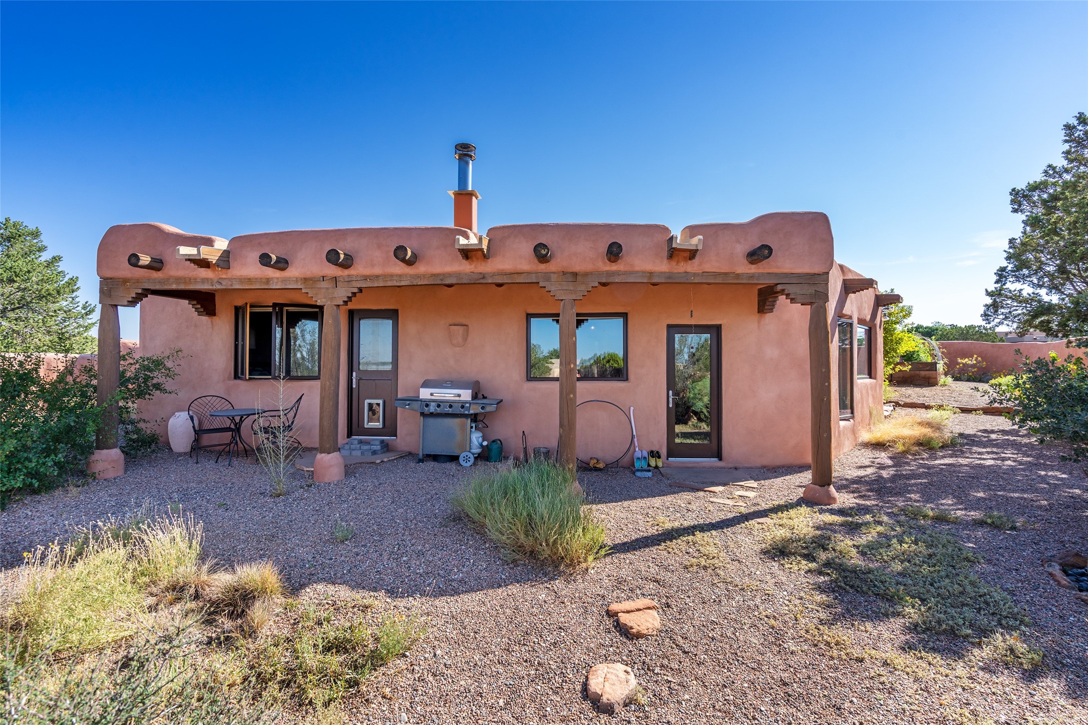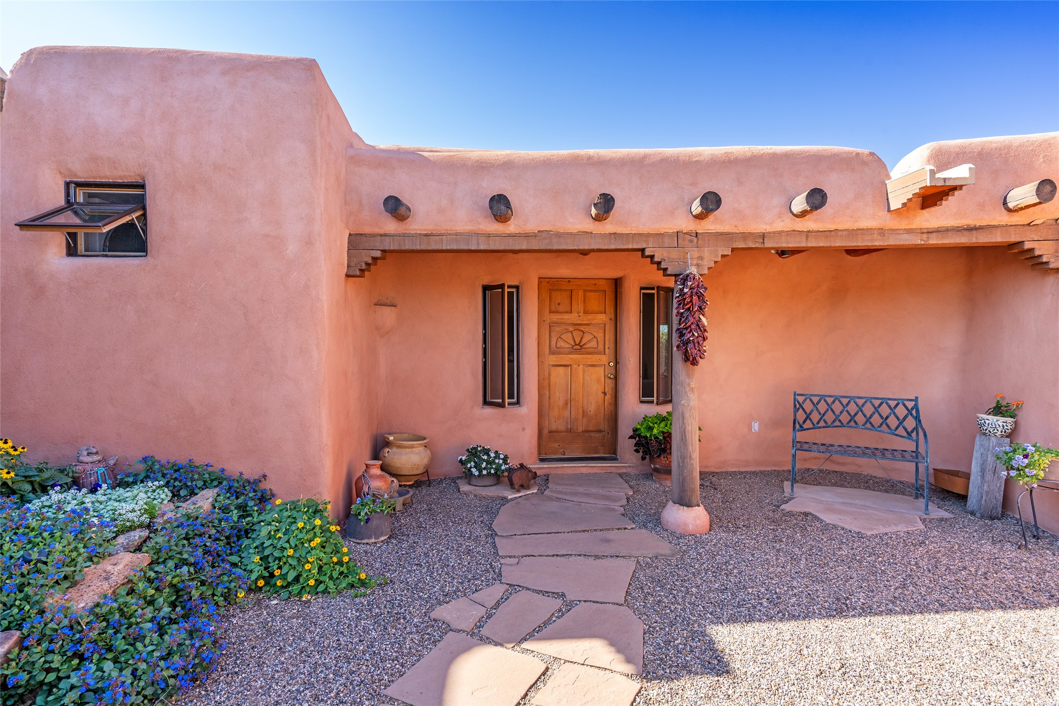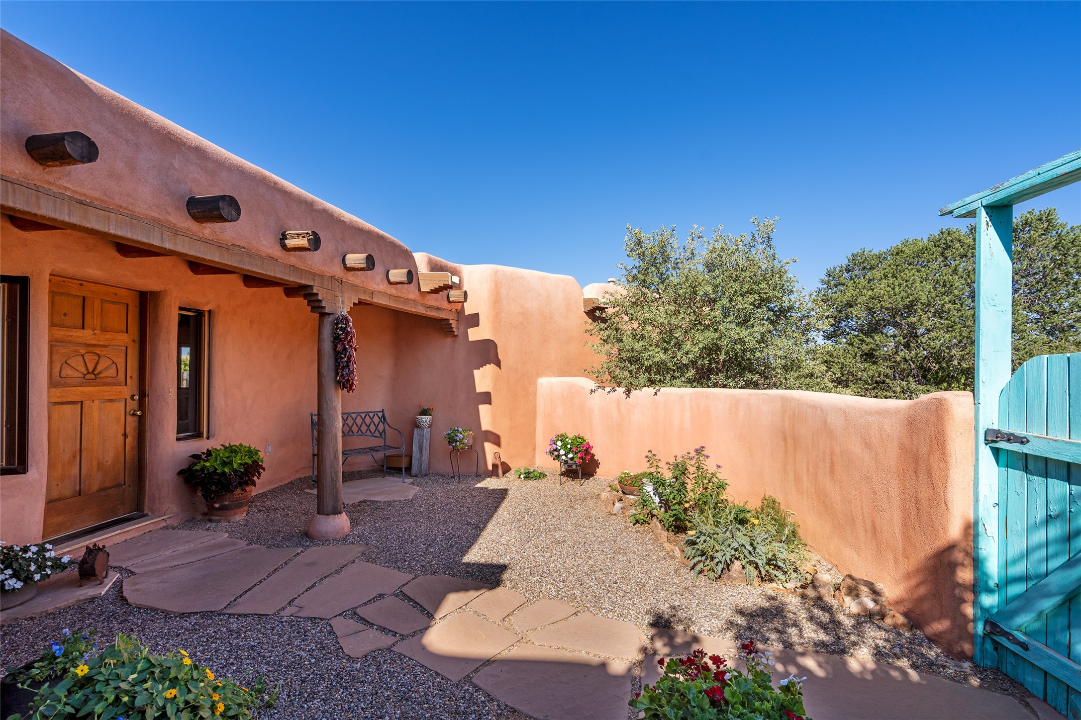 ADOBE HOME IN ELDORADO! Rarely offered in Eldorado, this true adobe home captures the essence of authentic Santa Fe style on 1.3 acres with expansive mountain views. Featuring 3 bedrooms and 2 baths, the residence is rich with Southwestern character, showcasing vigas, beams, and warm adobe walls throughout. A welcoming courtyard and garden provide a serene outdoor retreat, while radiant heating ensures comfort in every season.Set in the sought-after Eldorado community, residents enjoy miles of scenic trails, a community pool, tennis courts, and a vibrant community center--all just minutes from downtown Santa Fe. This rare adobe treasure combines timeless craftsmanship with modern livability, offering the best of both tradition and convenience in a setting that celebrates Northern New Mexico's natural beauty and community spirit.