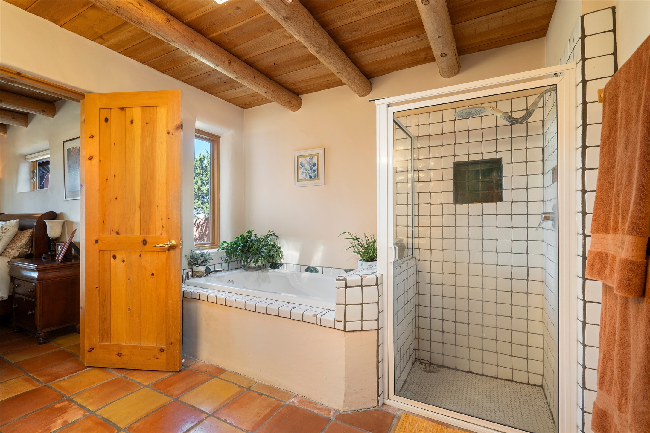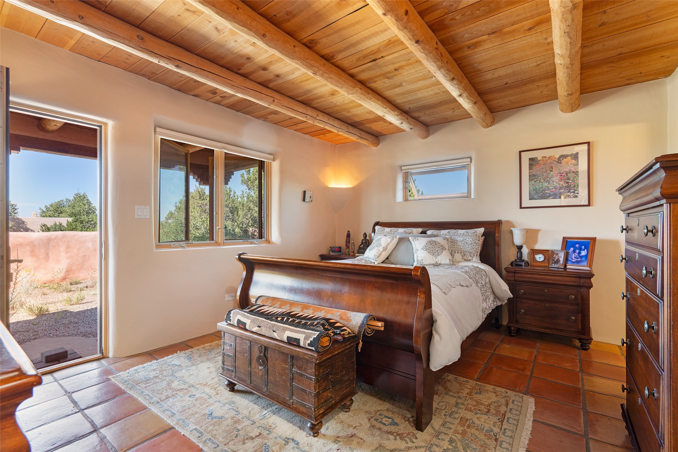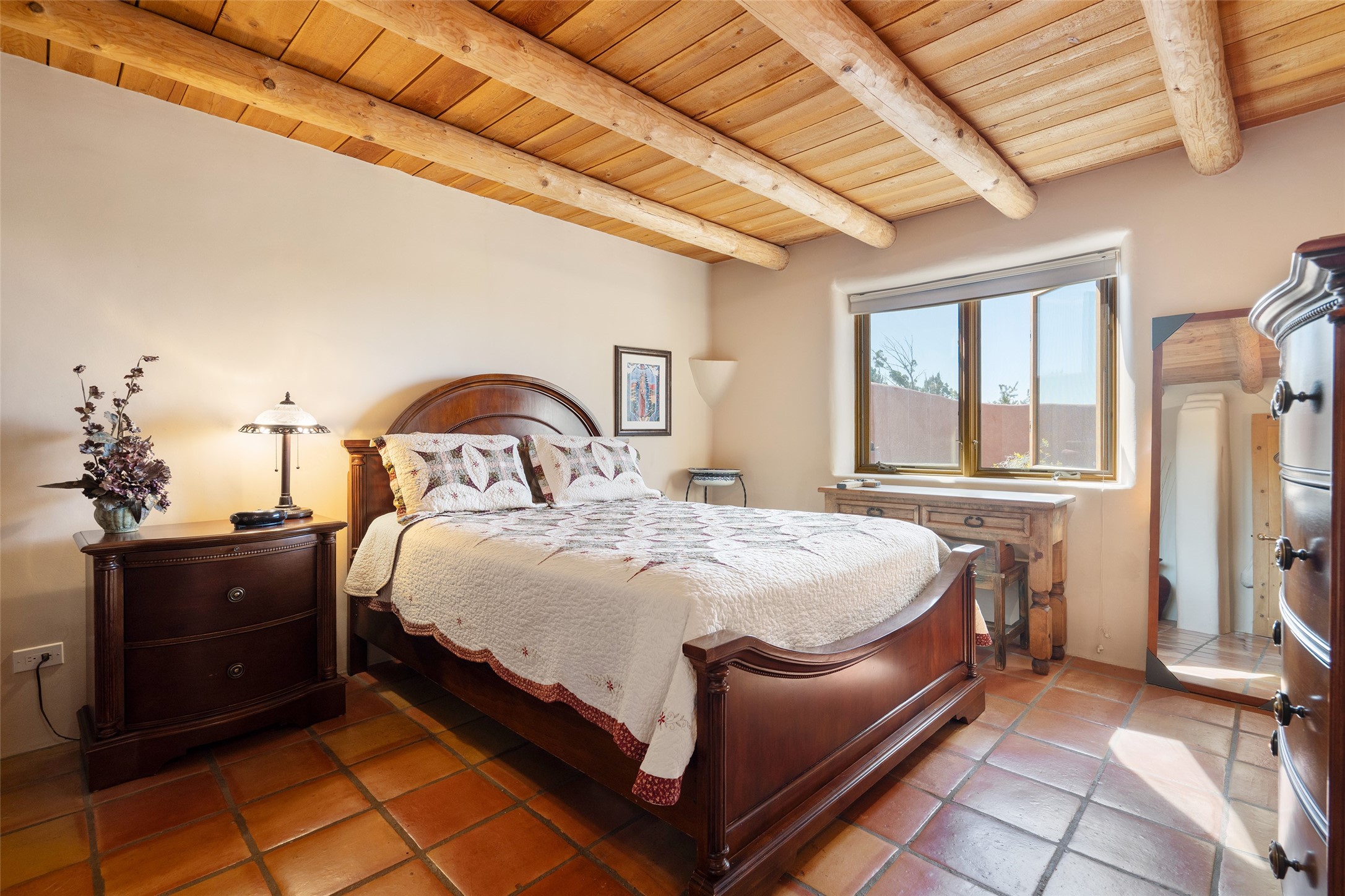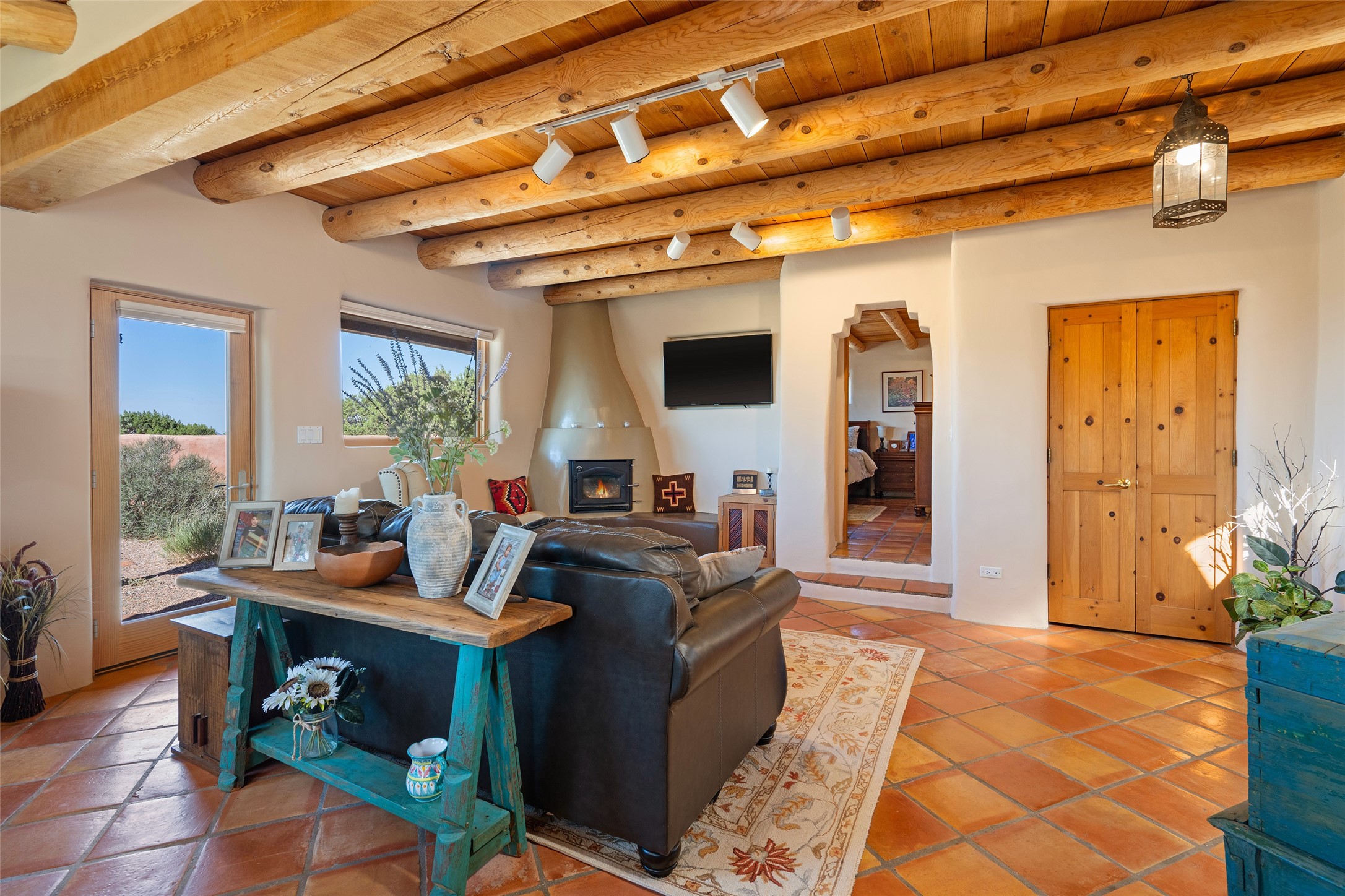 ADOBE HOME IN ELDORADO! Rarely offered in Eldorado, this true adobe home captures the essence of authentic Santa Fe style on 1.3 acres with expansive mountain views. Featuring 3 bedrooms and 2 baths, the residence is rich with Southwestern character, showcasing vigas, beams, and warm adobe walls throughout. A welcoming courtyard and garden provide a serene outdoor retreat, while radiant heating ensures comfort in every season.Set in the sought-after Eldorado community, residents enjoy miles of scenic trails, a community pool, tennis courts, and a vibrant community center--all just minutes from downtown Santa Fe. This rare adobe treasure combines timeless craftsmanship with modern livability, offering the best of both tradition and convenience in a setting that celebrates Northern New Mexico's natural beauty and community spirit.