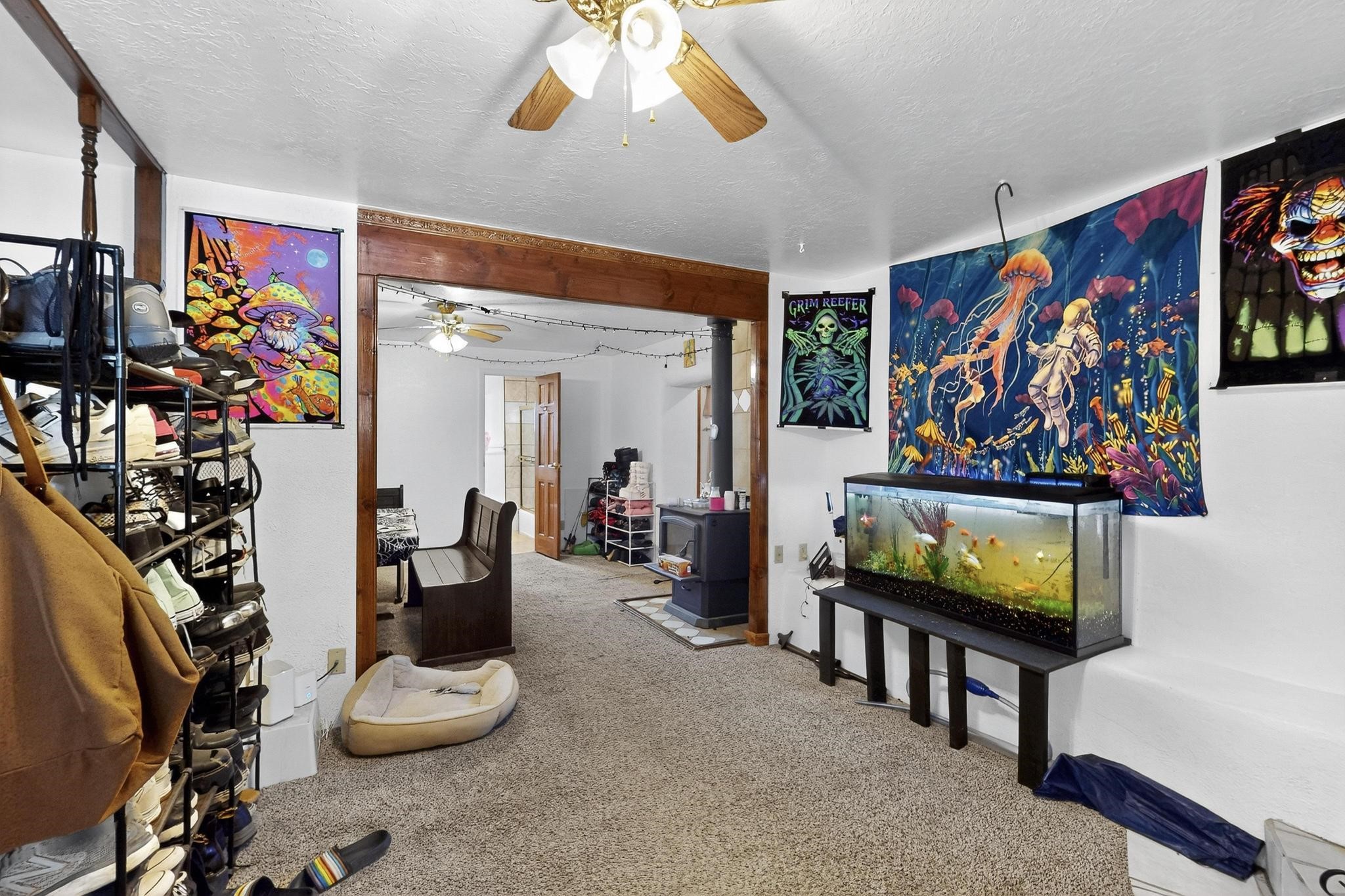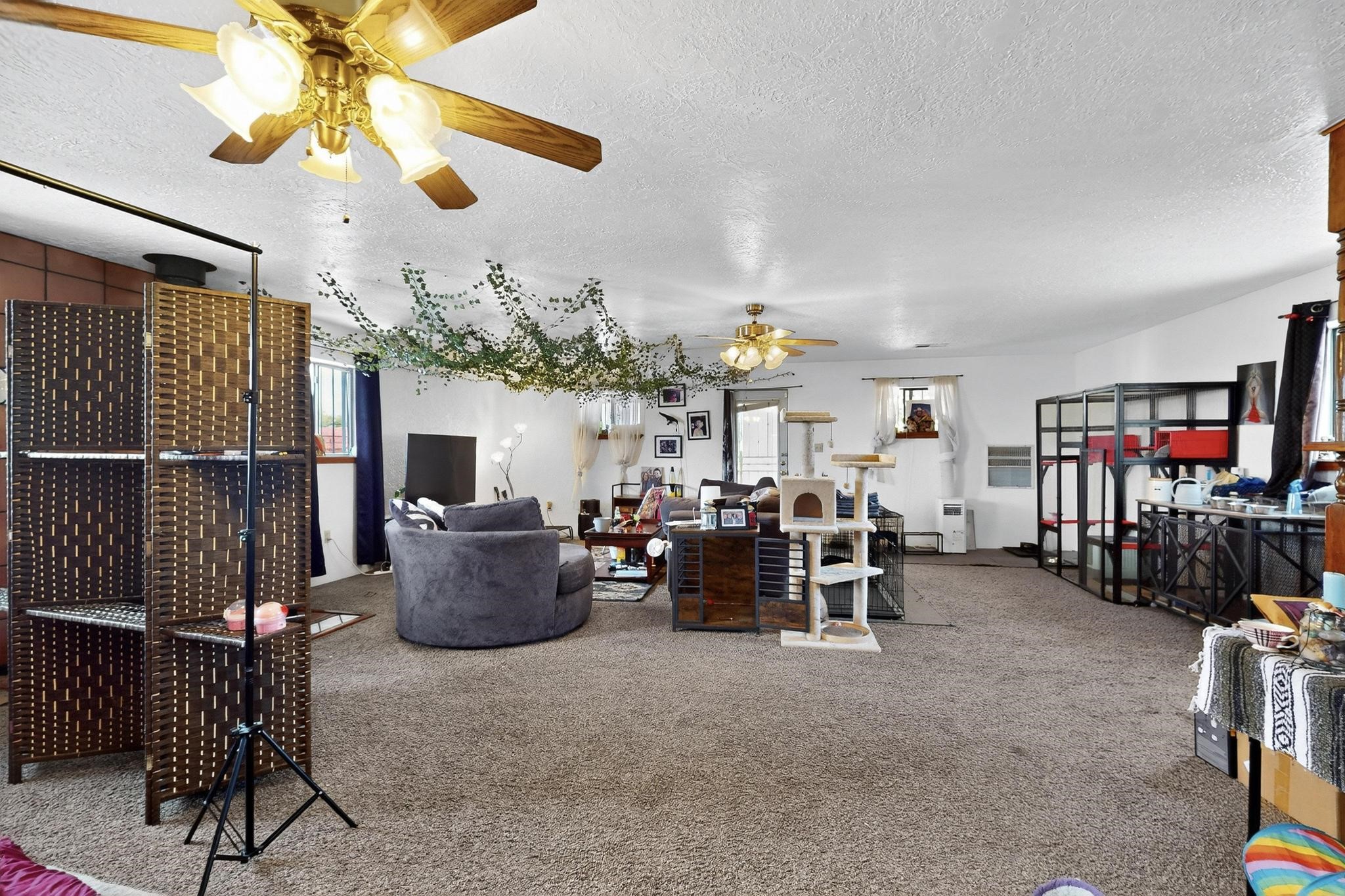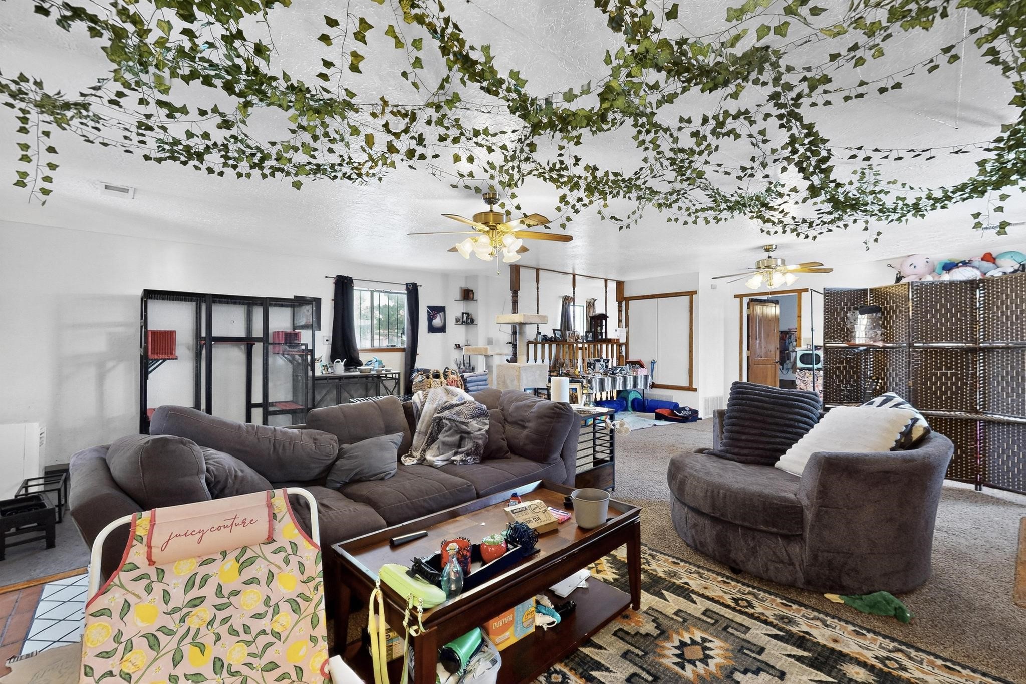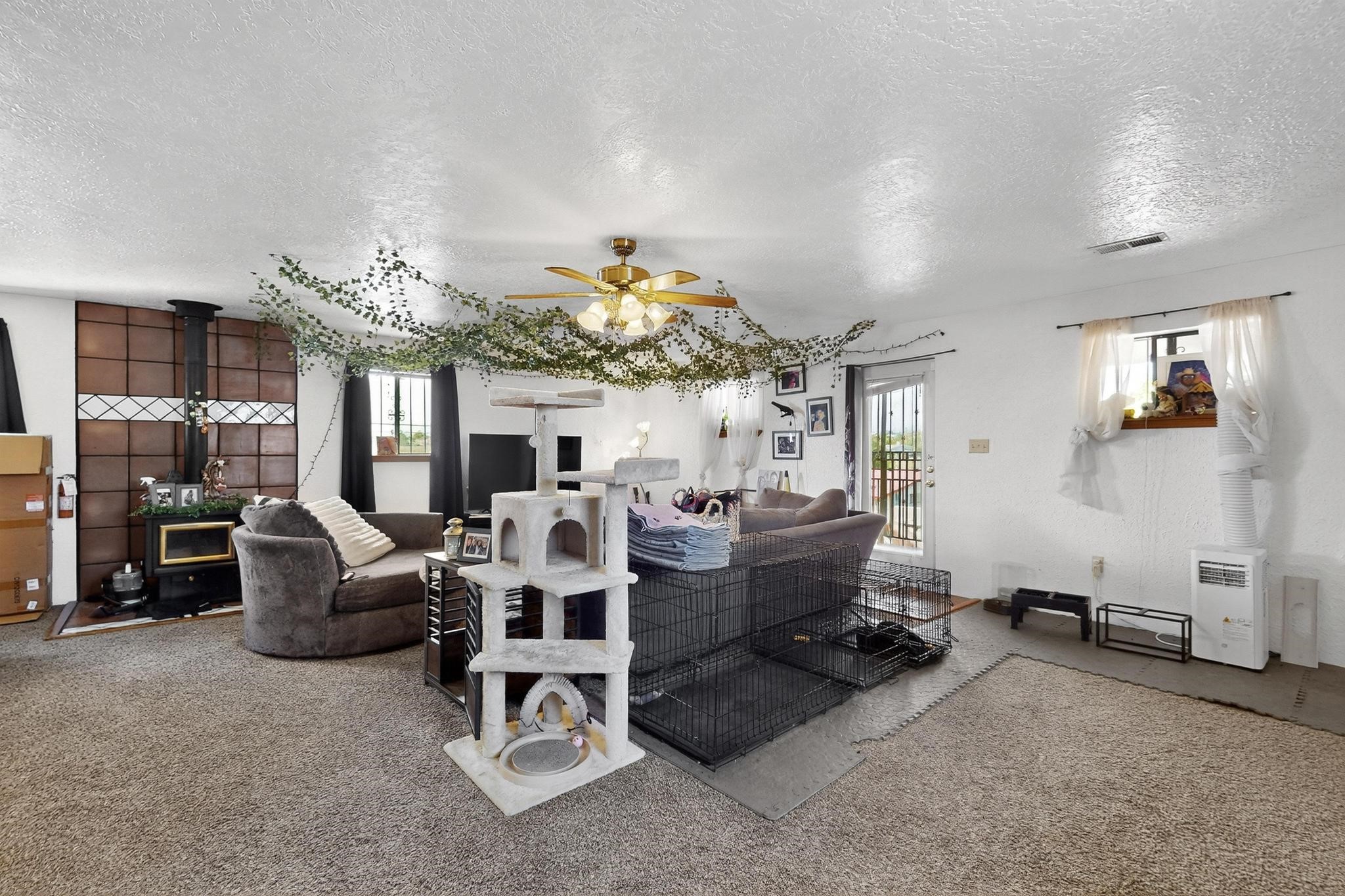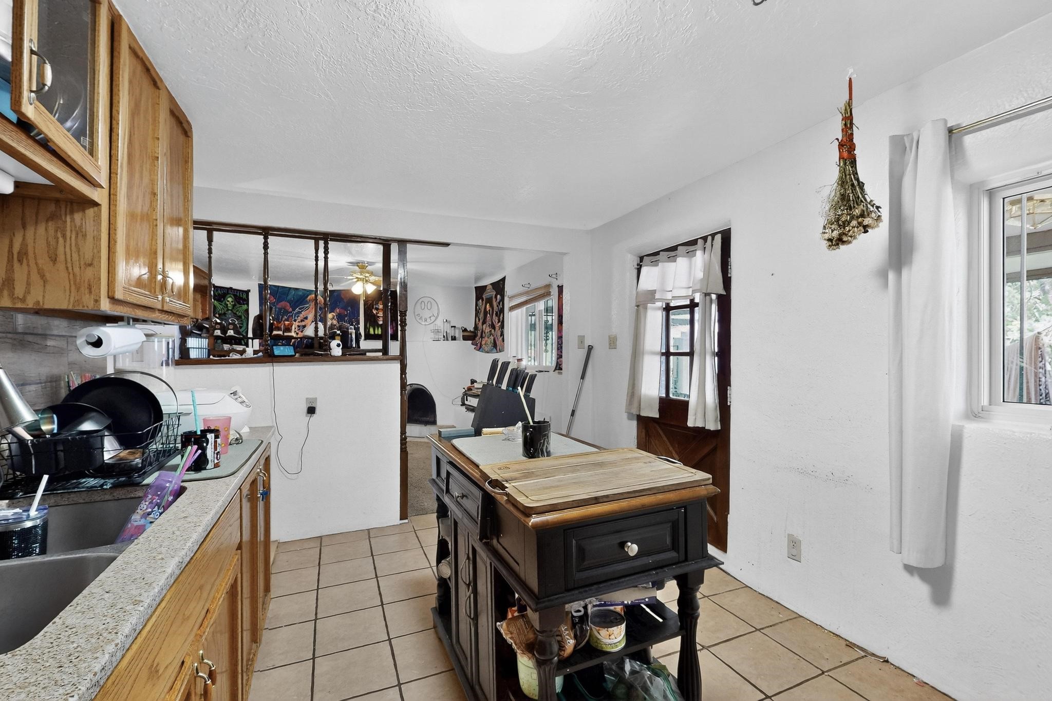 Situated on .4 acres offering a main residence and two charming casitas, plenty of parking spaces & covered storage for those seeking rental income & the chance to enhance your financial portfolio. The main home is situated within a gated front courtyard enhancing the aesthetic appeal & serves as a tranquil retreat for relaxation. Boasting approximately 3,386 heated sq ft the three / four bedrooms, providing flexibility for families or guests, along with three full bathrooms that ensure convenience for all occupants. There are two distinct living areas, perfect for both relaxation and entertainment, while the presence of two Kiva fireplaces and two wood stoves adds a touch of warmth and charm. The finished two-car heated garage is complemented by additional covered parking.The individual casitas have 1 bedroom, a fully equipped kitchen, a bathroom, and a comfortable living area w/ kiva-style fireplace adds a touch of warmth and character. Both casitas are connected to a shared septic system and benefit from Agua Fria Community Water access, ensuring convenience and efficiency in their operation. The detached heated flex room offers a versatile space that can be tailored to meet various needs, whether it serves as a home office, a dedicated workout area, or a recreational game room. This adaptable environment is designed to provide comfort and functionality, making it an ideal setting for both productivity and leisure. A spacious separate pole barn provides ample room for parking and storage, perfect for housing all your outdoor equipment and recreational vehicles. This expansive area is not only practical but also enhances the overall utility of the property, allowing for organized storage solutions. Additionally, the existing chicken coop & fenced garden area a vibrant testament to the property's potential. This combination of features not only enhances the property's appeal but also promotes a self-sufficient and fulfilling lifestyle.