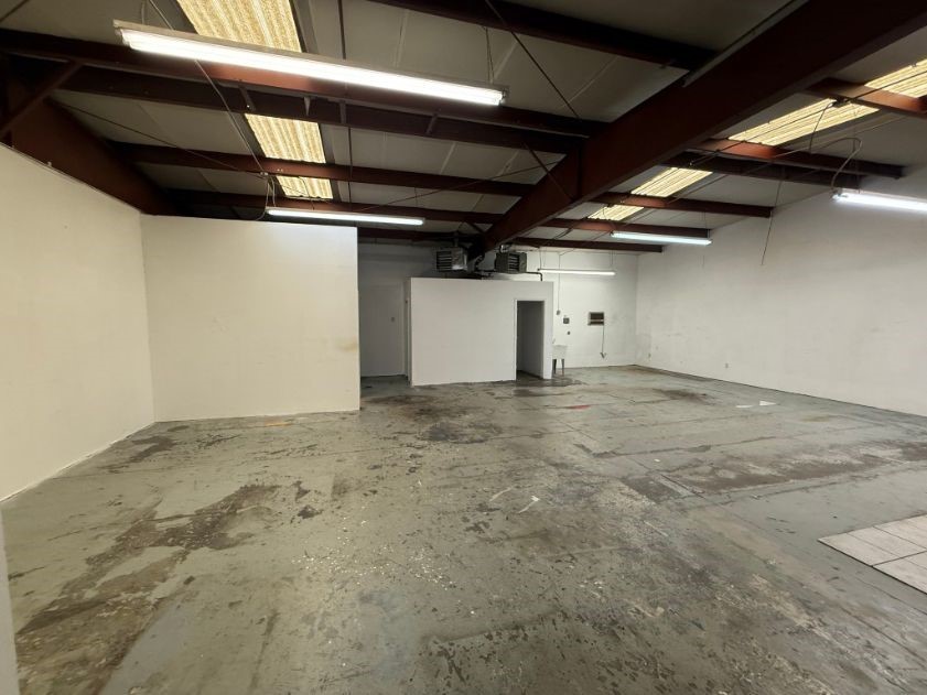 Current Use Commercial/ light industrial multi - tenant ( 2 units)Building Type Light industrial/commercial warehouseBuilding Area 3, 200 square feet (currently delineated into two 40'x40' units; originally four 20'x20' units )Number of Stories One Basic Structure SteelFoundation concreteExterior Wall Cover MetalRoof/Metal /Roof DrainageGutters and downspoutsInterior Wall Cover Painted drywallFlooring Exposed concreteCeiling Painted drywall (office), Steel I - beams/insulation (warehouse/workshop)HVAC Gas fired suspended heaters, wall/window a/c, evaporative coolerDoors/Exterior: Metal; Interior: wood/ WindowsWindows: Double glazed metal casementRestrooms Four (one for each potential unit)Lighting Fluorescent , incandescent, skylightsUtilities All/publicAge The Santa Fe County assessor lists the construction of the property as 1981 .Parking Unmarked paved parking lot Additional Features Two rollup garage doors per unit (Unit 2 C/D - 2 nd rollup door enclosed with windows); chain - link fencing; loading dock on the north side of buildingIn an area currently experiencing gentrification.