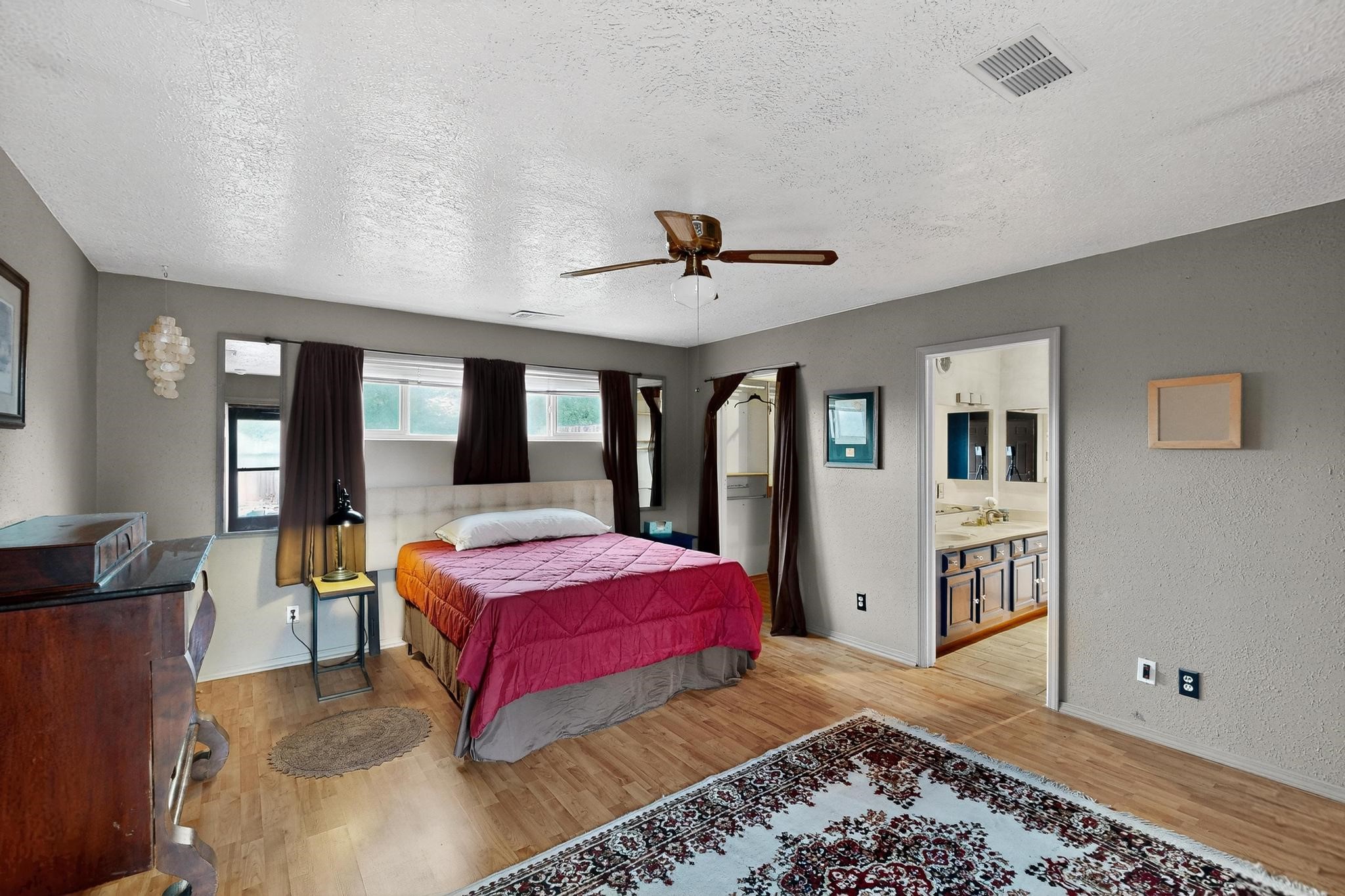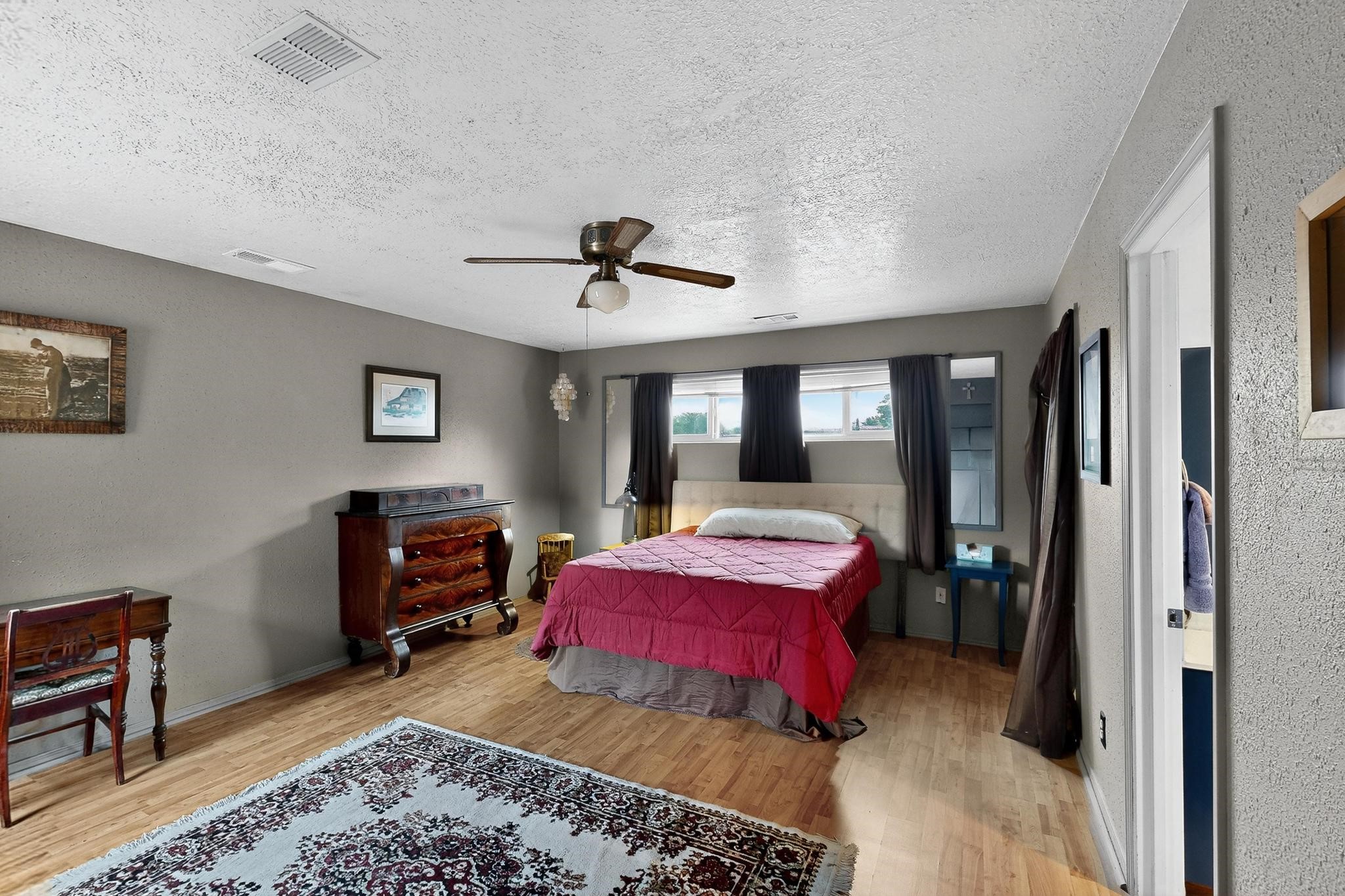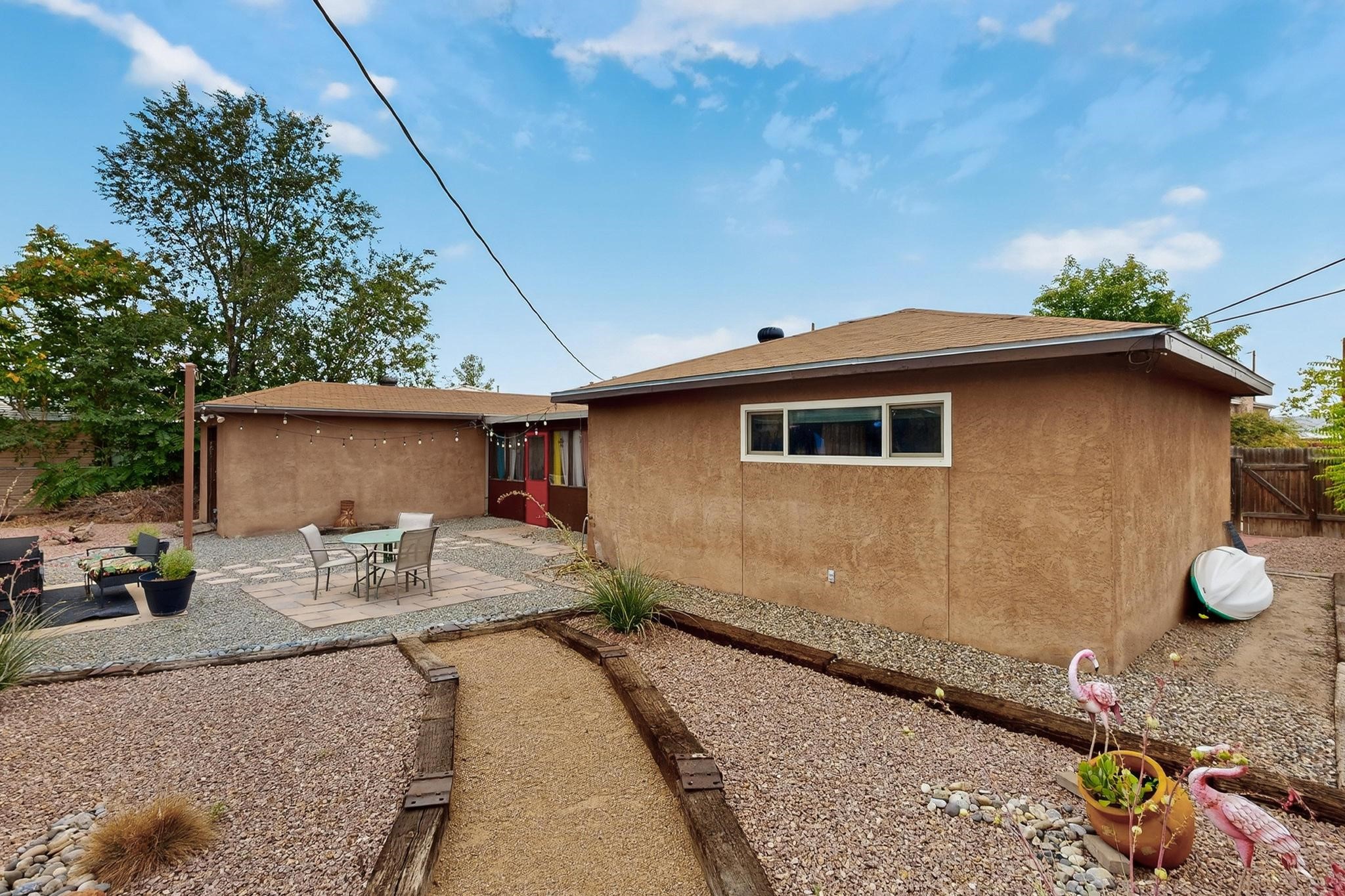 Motivated Seller is offering $5,000 in flex cash which can be used toward closing costs, rate buy-down, or price adjustments! Come see this gorgeous 4 bedroom, 2 bath house on a quiet street in the heart of northern Bernalillo. Updated kitchen and bathrooms. Bonus ''gym'' could be used as an extra family room, media room or bedroom. Enjoy your coffee in the screened porch or one of 4! separate sitting/eating/patio areas in the back yard, or under the shade of the trees in the front yard. Bonus is the views of the Sandias from your beautifully Xeriscaped back yard. Property is fully fenced for the safety of your family or furbabies. Gated access to the backyard from Camino Don Tomas. Quick access to 550 and I-25 makes for an easy commute to work.