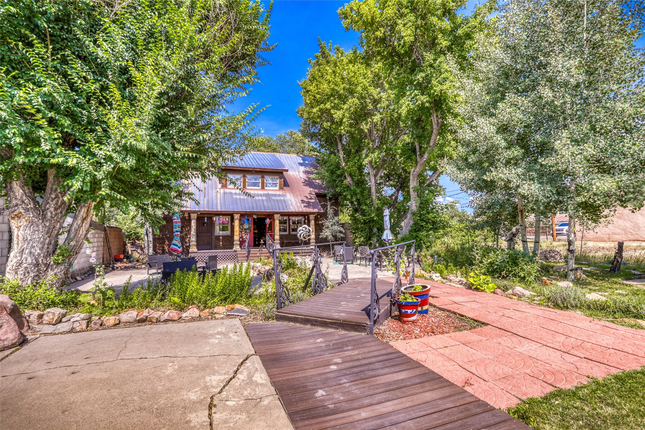 This is the perfect live/work space for the artisan or small shop owner who is looking for space to run a small business. Currently operated as a boutique and a short term vacation rental, it has proven income and could be transitioned over to a new owner with the Village of Chama approval to continue operations. The downstairs has the storefront area, complete with bathroom/dressing room, while the upstairs living space has a separate entrance for private access. The upstairs apartment has been newly renovated in the past 5 years and includes two bedrooms, a 3/4 bath and 1/2 bath with a custom kitchen and living/dining area overlooking downtown Chama. The downstairs shop space expands outside onto the spacious covered porch and beautiful courtyard with flower gardens and space for expansion. Seller will consider selling inventory and fixtures on a separate bill of sale. See the video link for pictures of the short term rental. Professional pics coming soon.