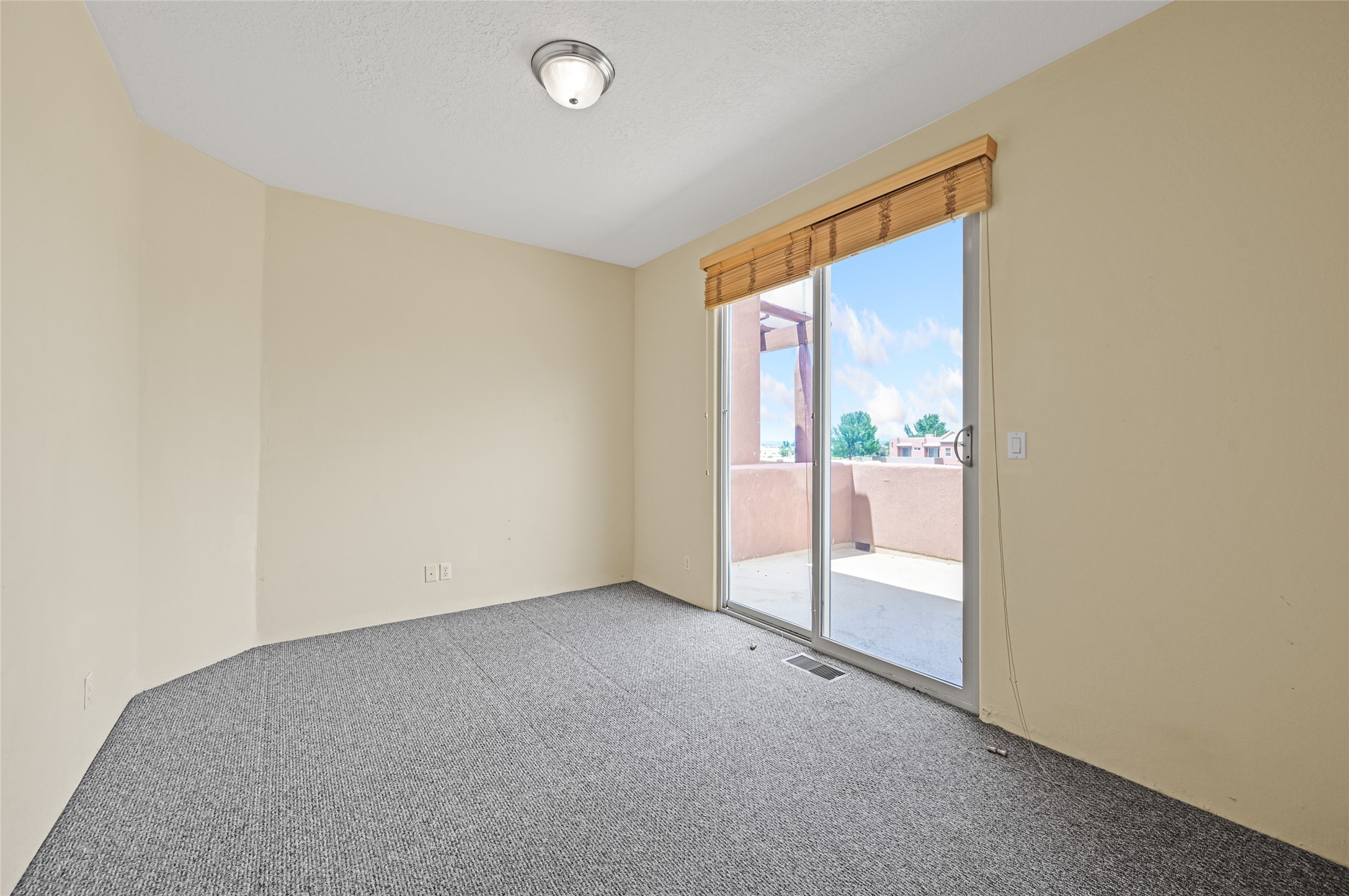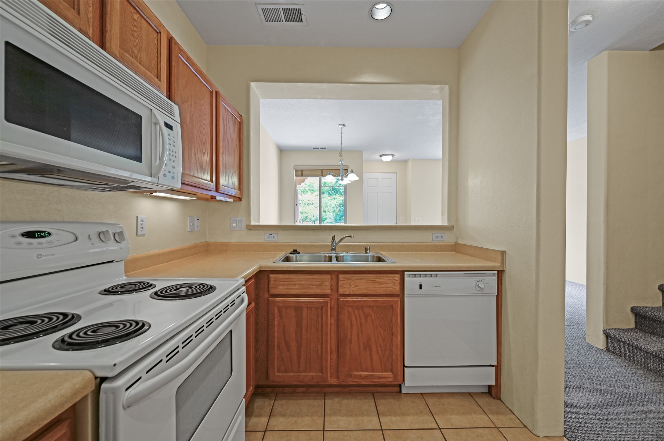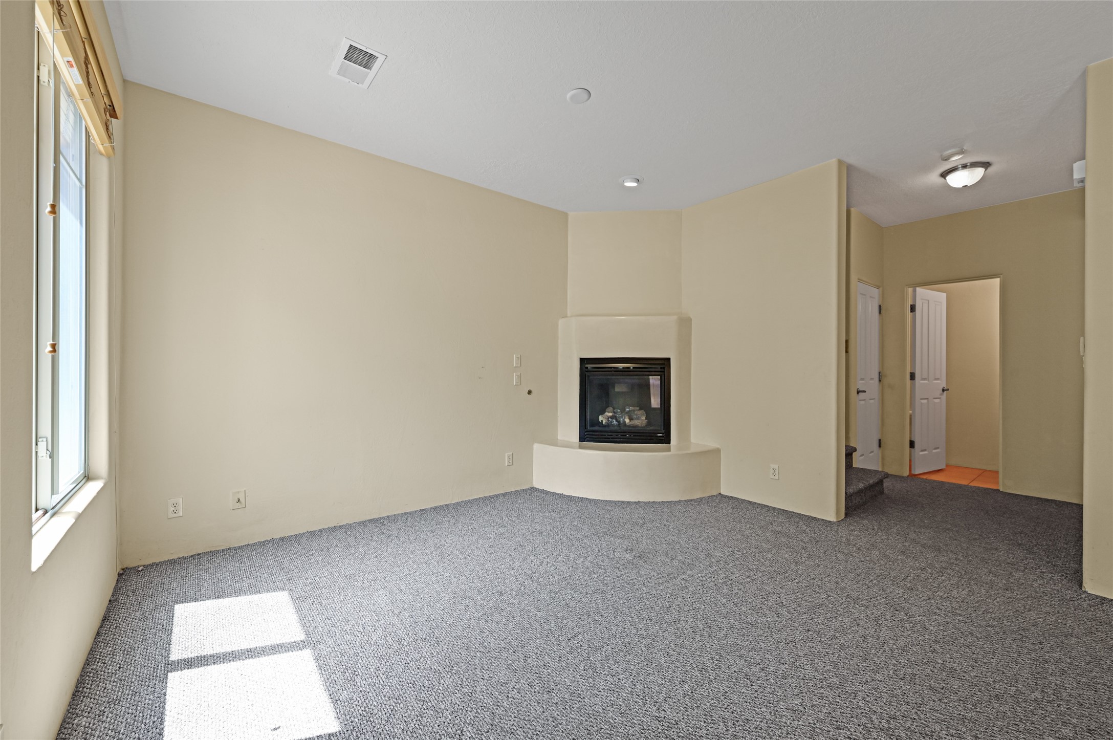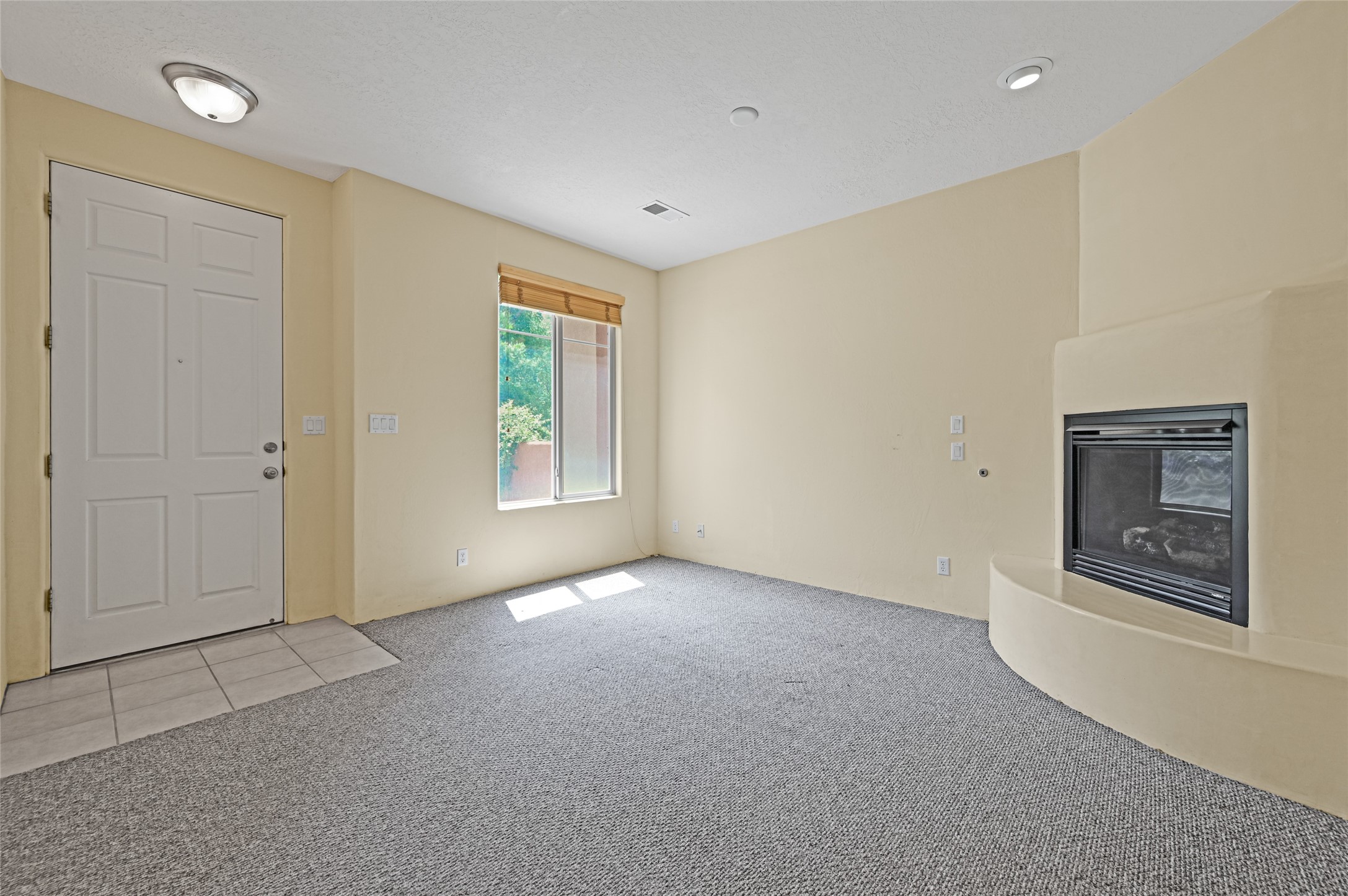 This contemporary pueblo-designed townhome offers 1264 square feet of comfortable living space spread across two levels. On the ground floor, you'll discover a spacious living room featuring a cozy fireplace, a well-appointed kitchen complete with appliances, and a convenient half bathroom. Upstairs, there are two generously sized bedrooms, each boasting its own full bathroom and an extra-large closet providing ample storage. The primary bedroom also includes a private outdoor deck, offering a perfect spot to relax and enjoy the stunning western sunset views. With its private entrance and courtyard, this townhome is designed for very easy and comfortable living. Its location is situated directly across from the Rancho Viejo Village Park Plaza, which provides a peaceful environment with mature trees, lush green grass, and convenient walking trails. The townhome is ideally located on the southwestern side of Santa Fe, surrounded by ample open space perfect for various outdoor activities. Schedule a showing today.