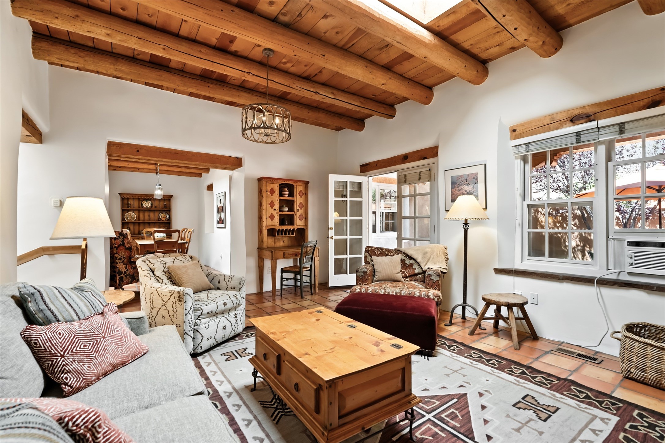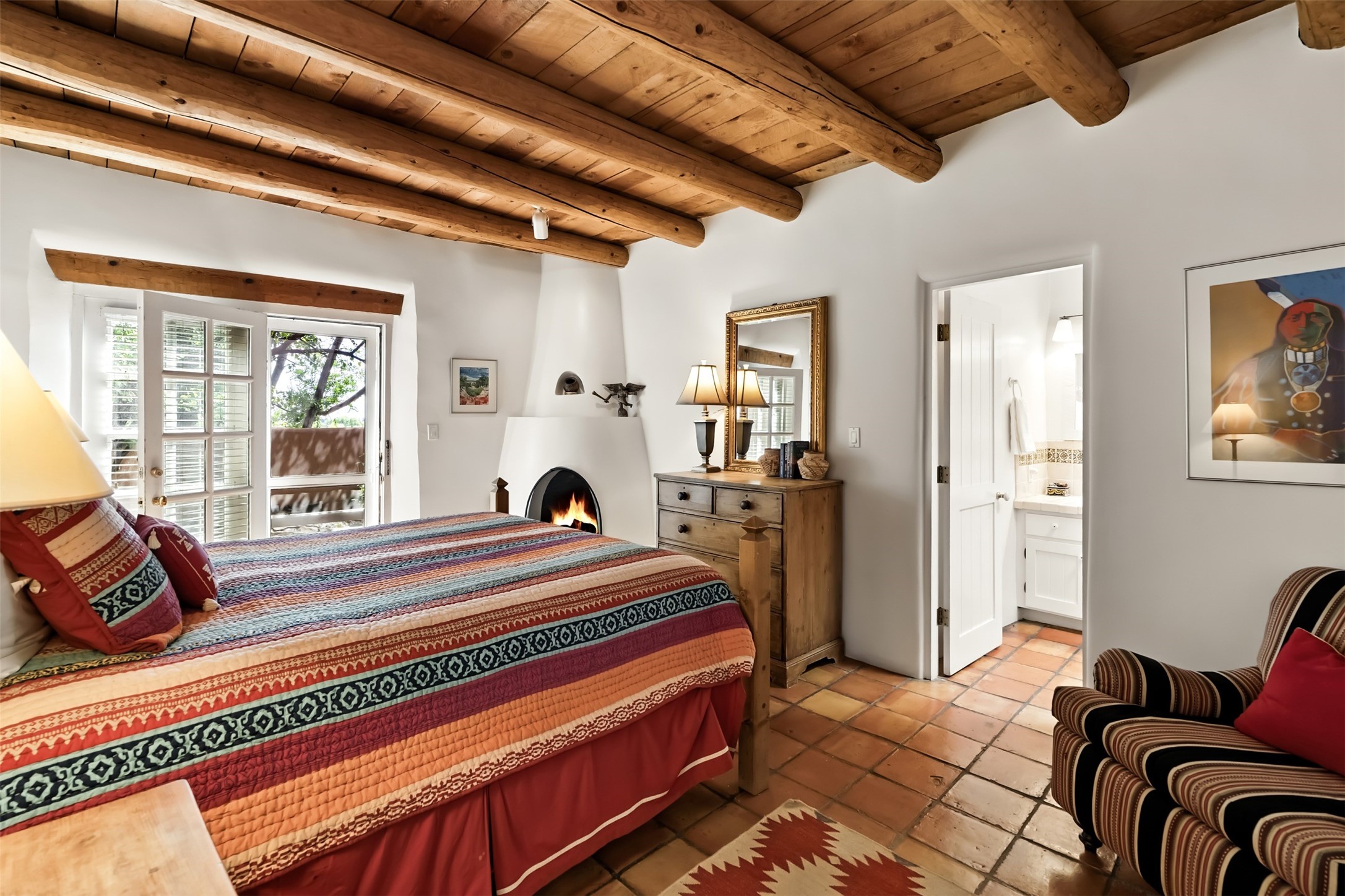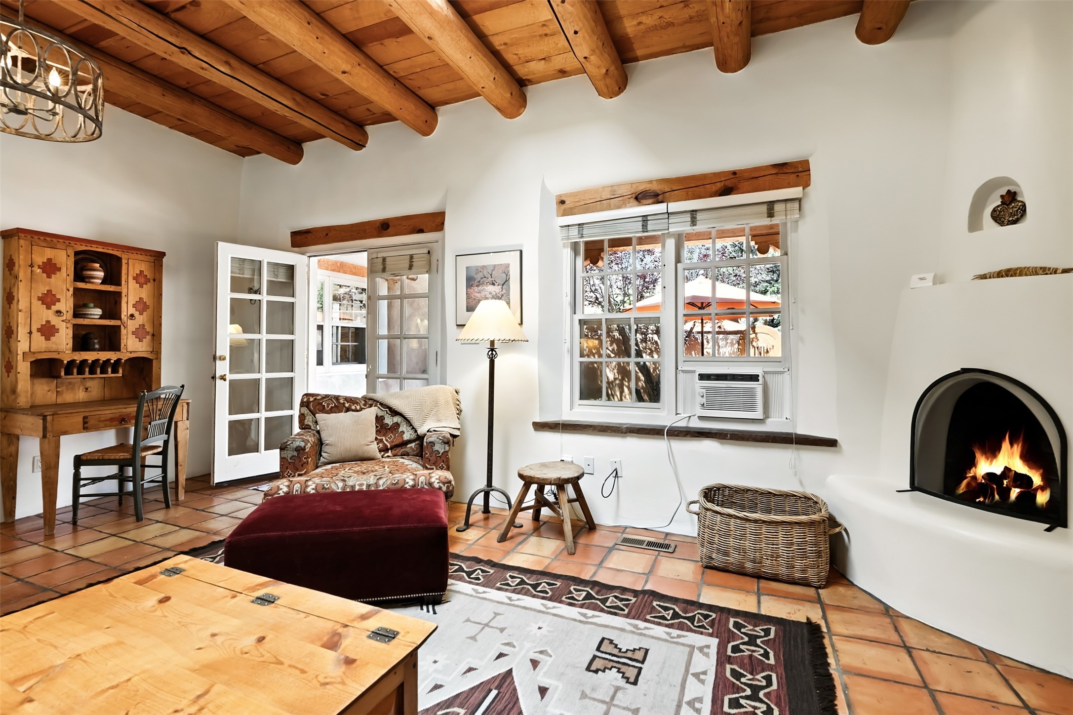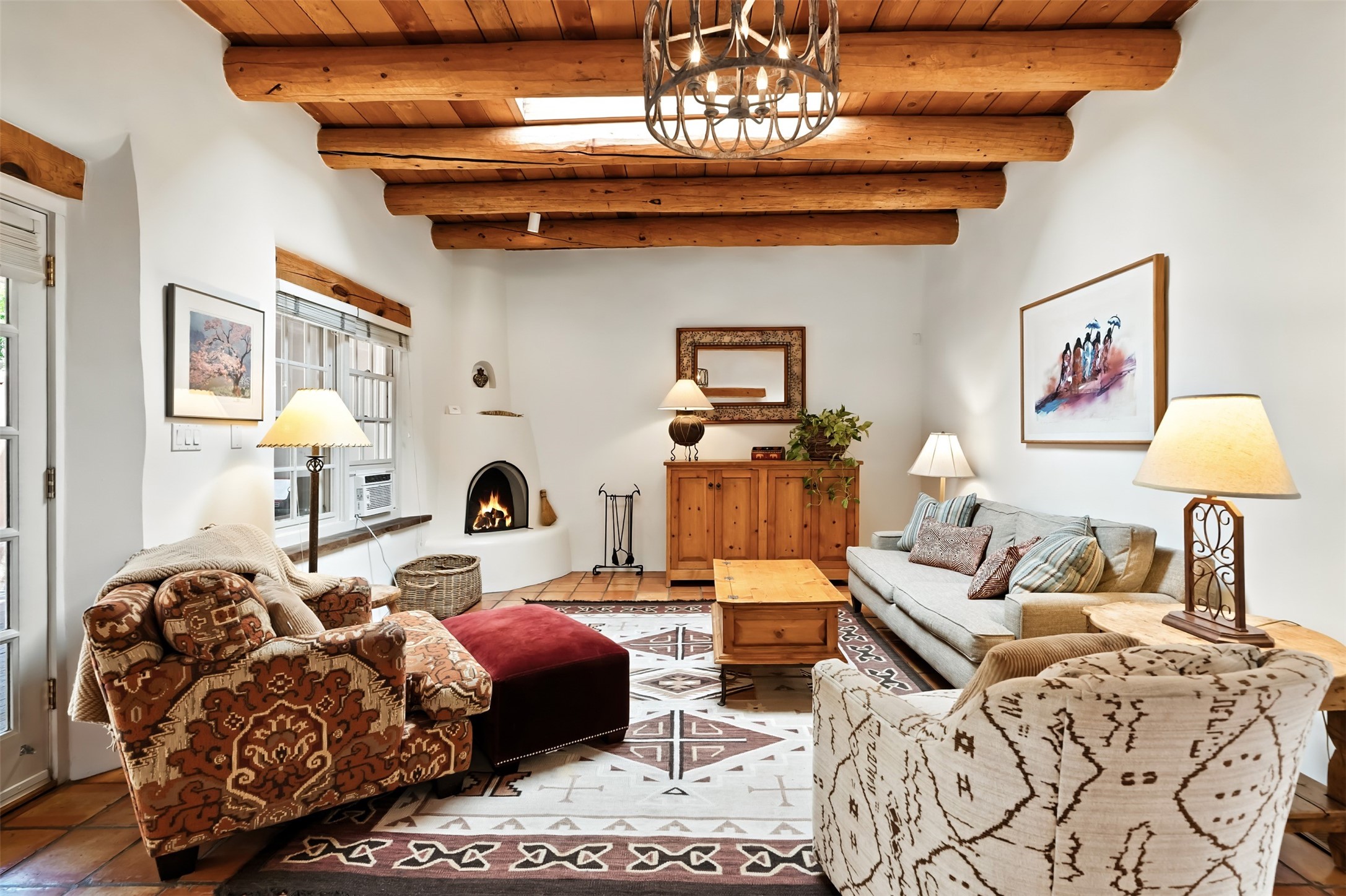 Charming condominium quarter ownership just a few blocks from the plaza. Beautiful architectural detail found in gracious old adobe home with vigas, kiva fireplaces, sculptural smooth plaster walls, hand adzed lintels above windows and doors. Tile kitchen and baths. All furnishings and maintenance, inside and out by COA. Front and back courtyards. Professionallymanaged and completely furnished downtown vacation condominium.