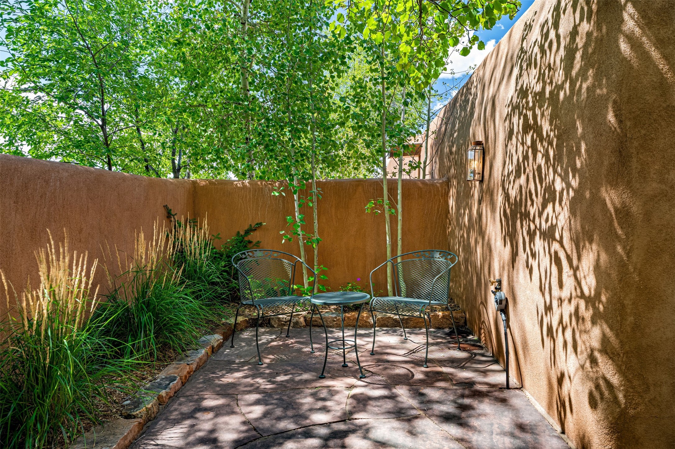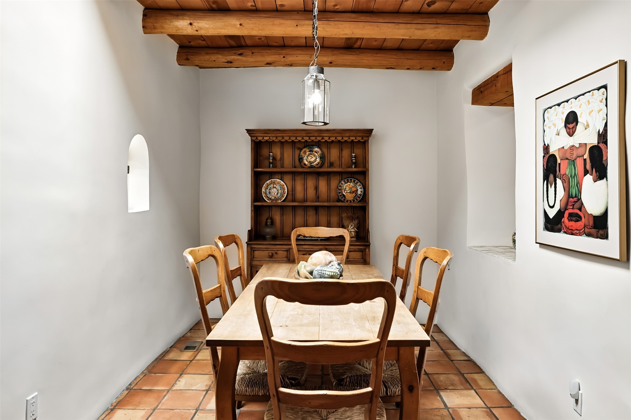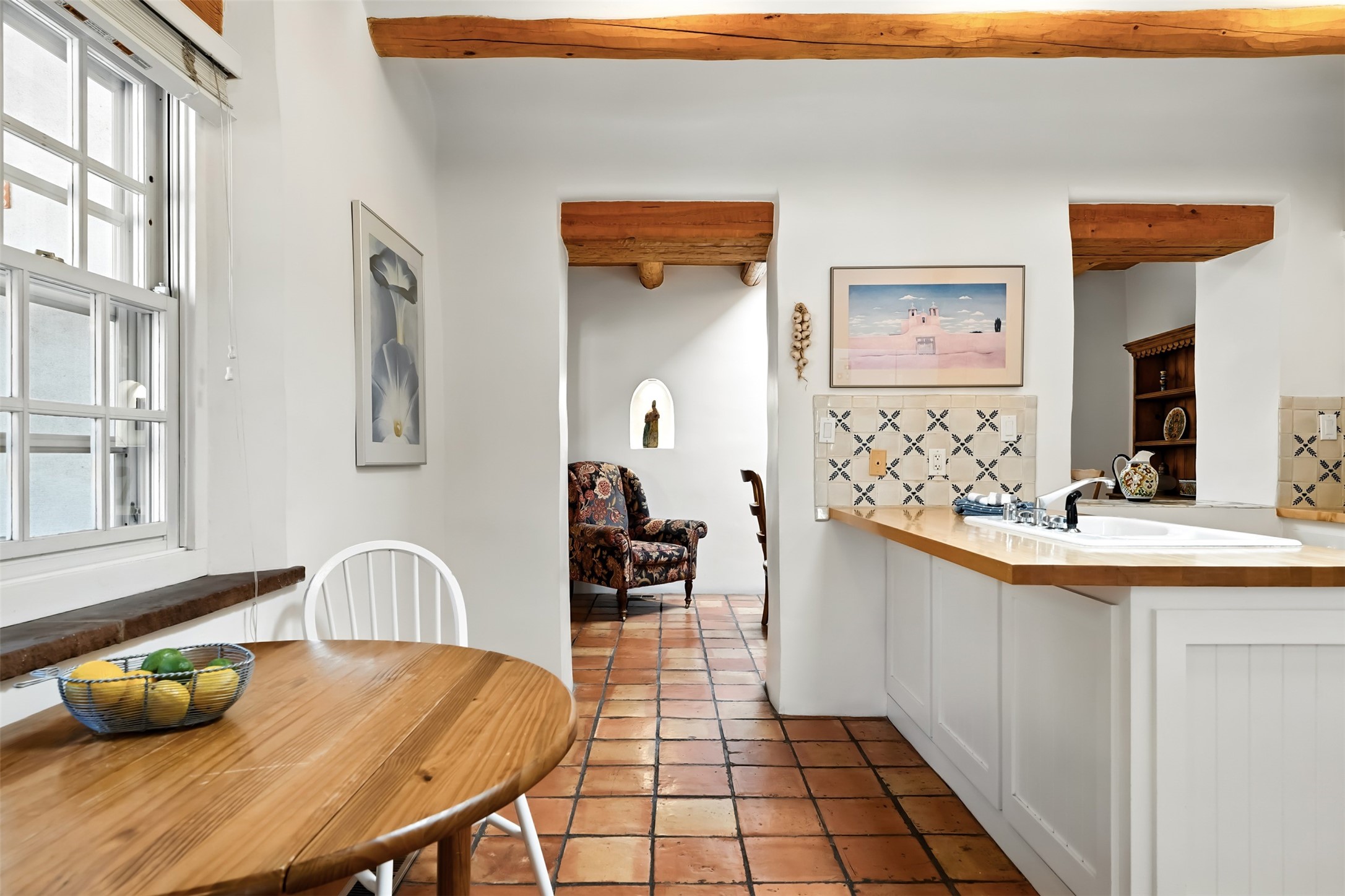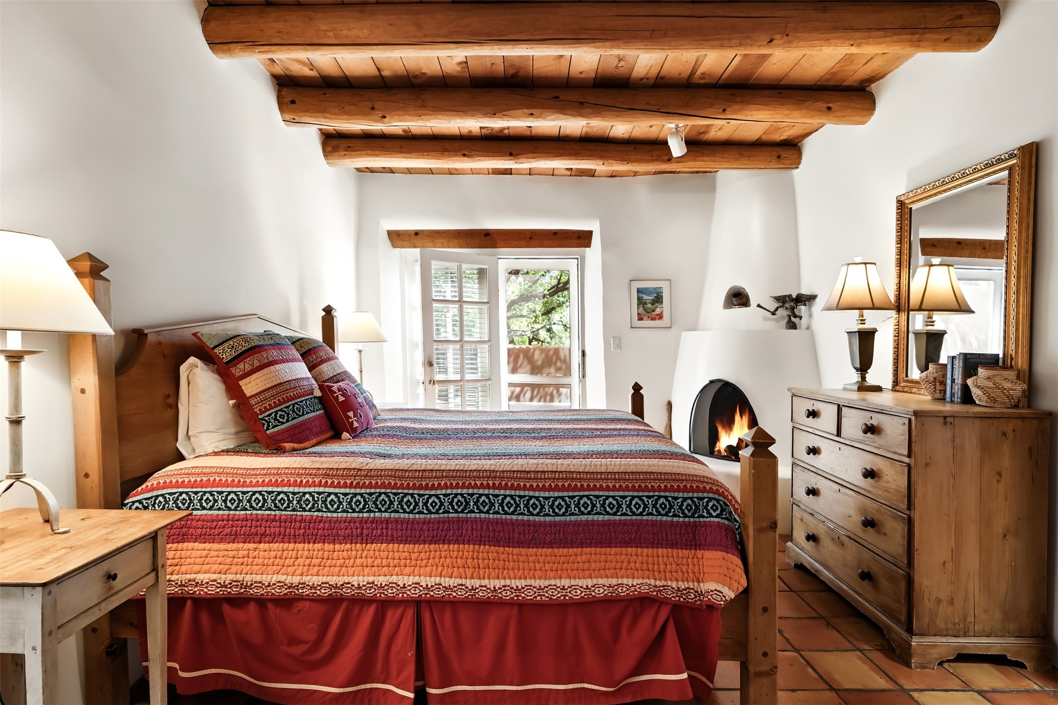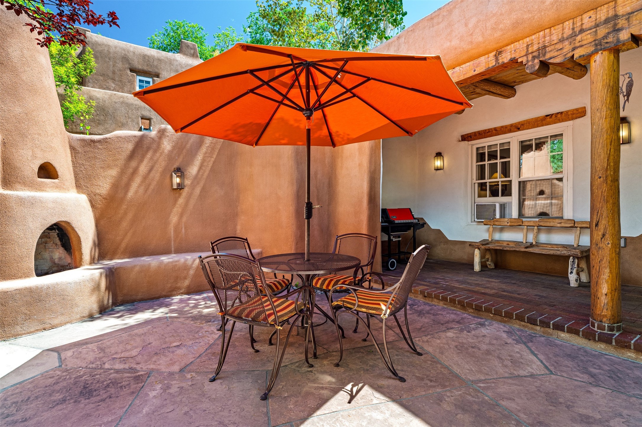 Charming condominium quarter ownership just a few blocks from the plaza. Beautiful architectural detail found in gracious old adobe home with vigas, kiva fireplaces, sculptural smooth plaster walls, hand adzed lintels above windows and doors. Tile kitchen and baths. All furnishings and maintenance, inside and out by COA. Front and back courtyards. Professionallymanaged and completely furnished downtown vacation condominium.