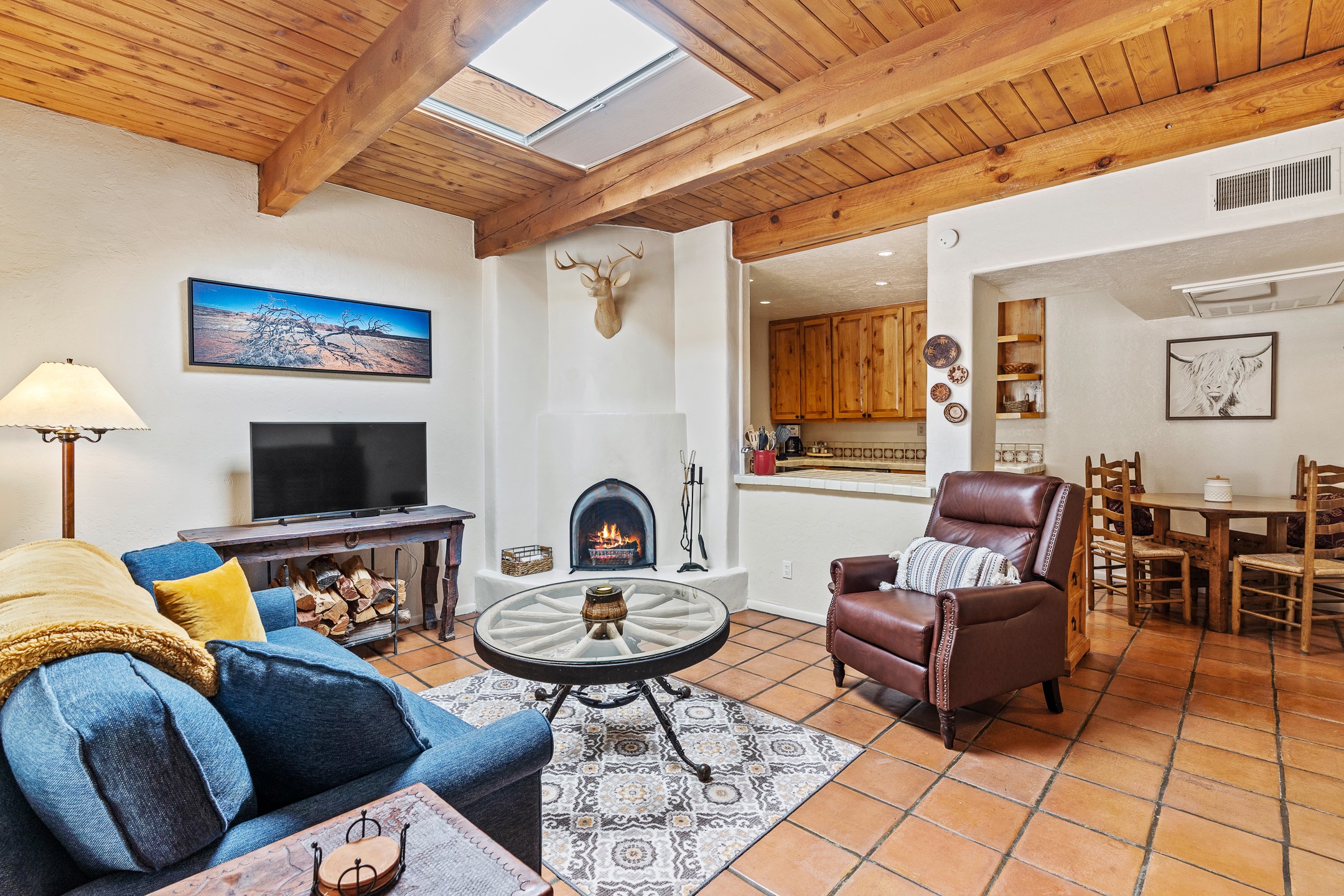 Whether you're looking for a personal getaway or a short-term rental investment, this property offers the best of both worlds--an inviting residence with strong investment potential. With no HOA restrictions on rentals, you can take advantage of the on-site short-term rental program, manage the property yourself, or partner with a local management company. Being sold fully furnished and turn-key, the home is ready for immediate enjoyment or rental. Its versatile design makes it ideal as a primary residence, vacation home, or lock-and-leave getaway.The location is a major draw: just minutes from the vibrant Santa Fe Plaza yet tucked away from the hustle and bustle. Outdoor enthusiasts will love the quick access to Ski Santa Fe, Ten Thousand Waves, and countless hiking and biking trails. A new roof (2024) adds peace of mind and lasting value. Whether you're looking for a personal retreat, a reliable income property, or both, this home presents a rare opportunity to enjoy Santa Fe living while maximizing flexibility and return. HOA fees cover WiFi, cableTV, CAM, insurance, roof, stucco, snow removal and more! Other features include a wood-burning kiva fireplace, refrigerated air-conditioning, washer/dryer in unit, skylights, and satillo tile flooring throughout.