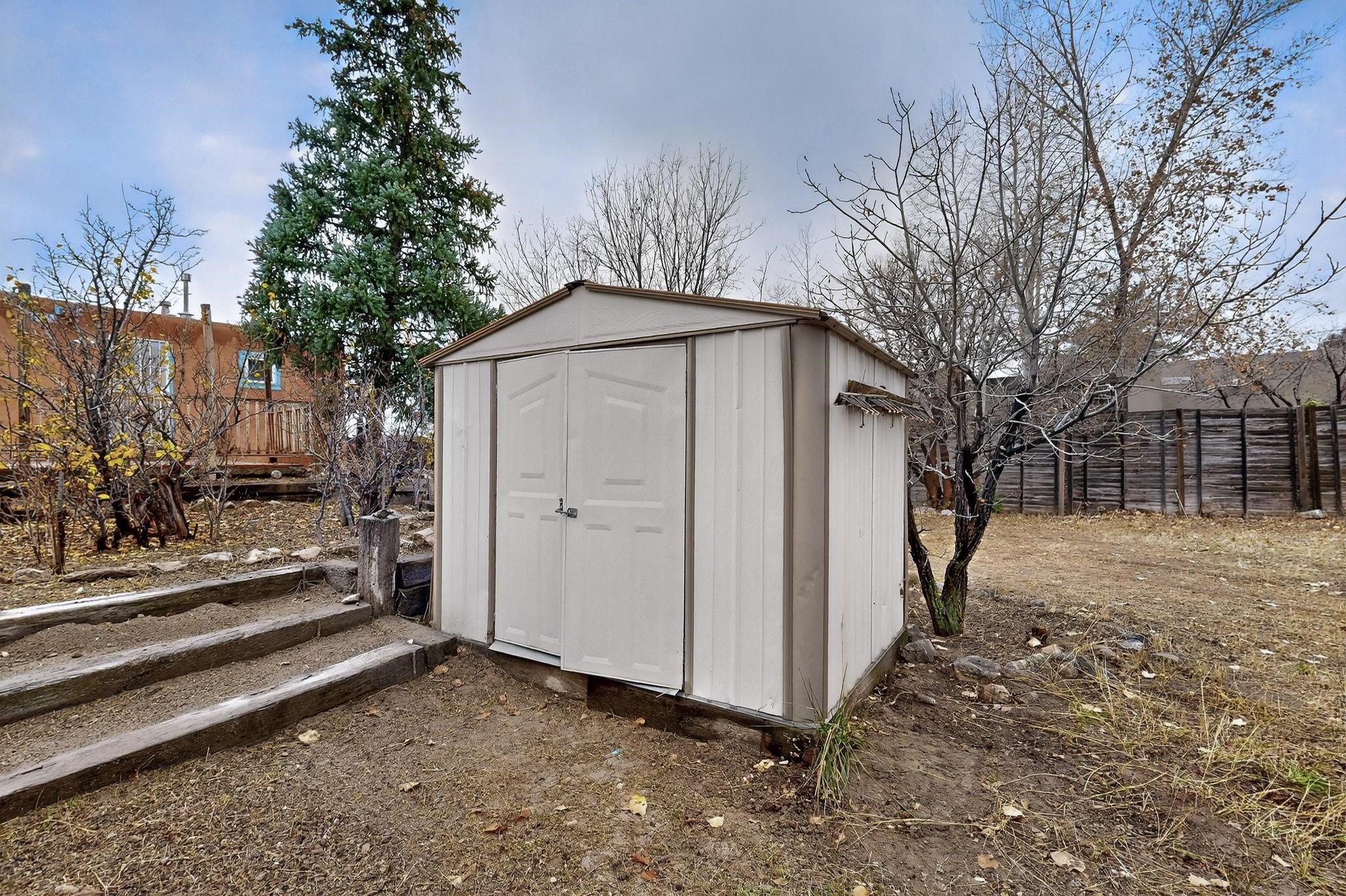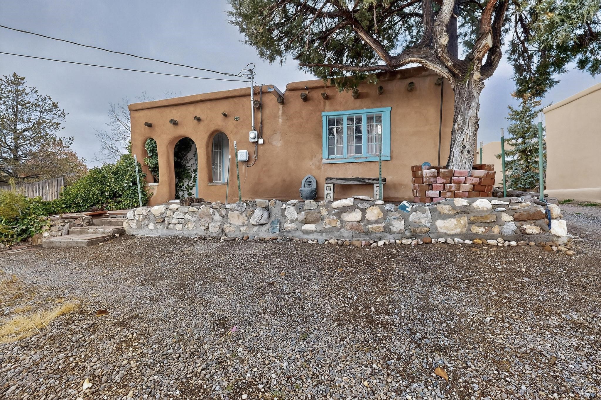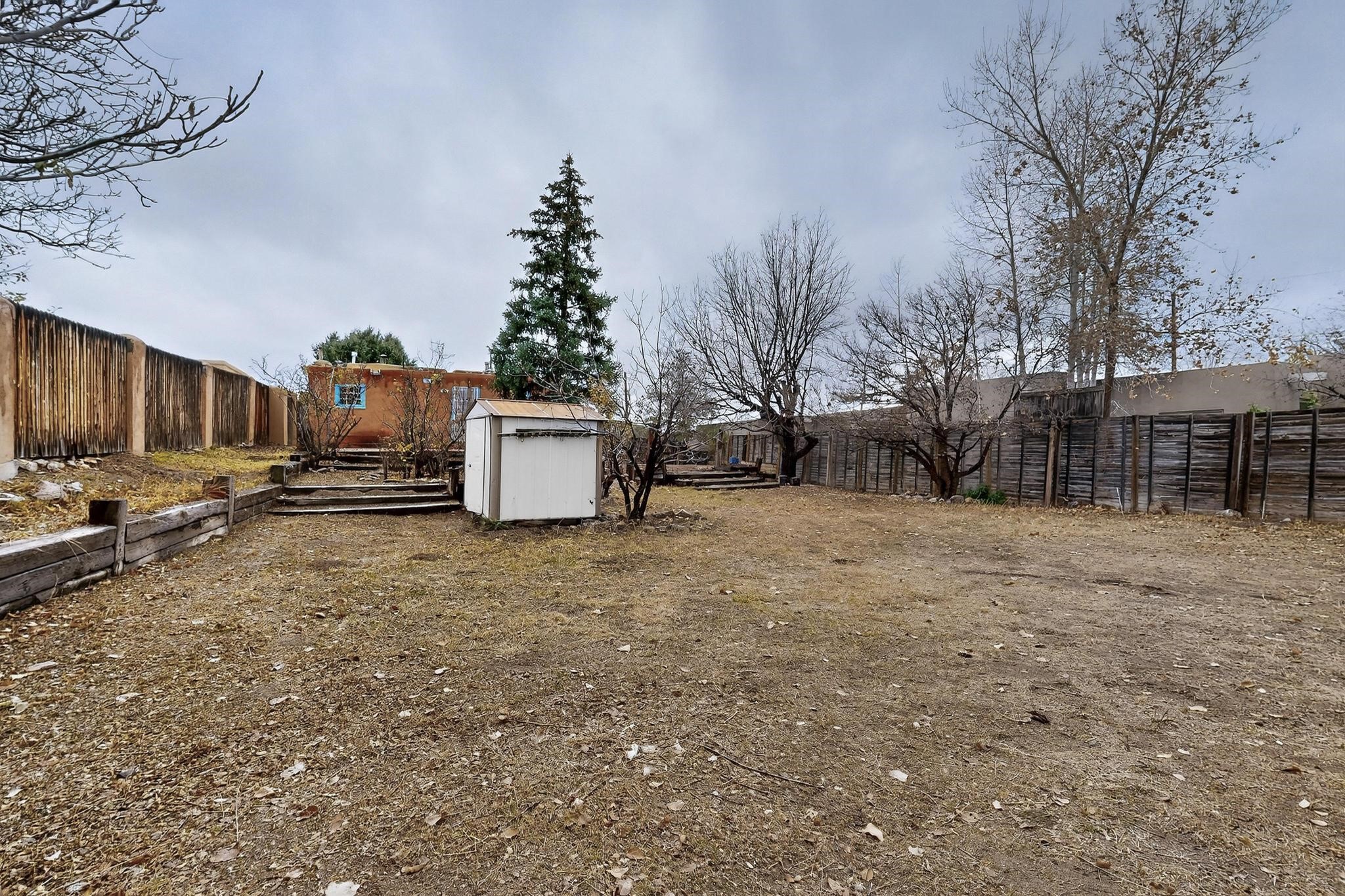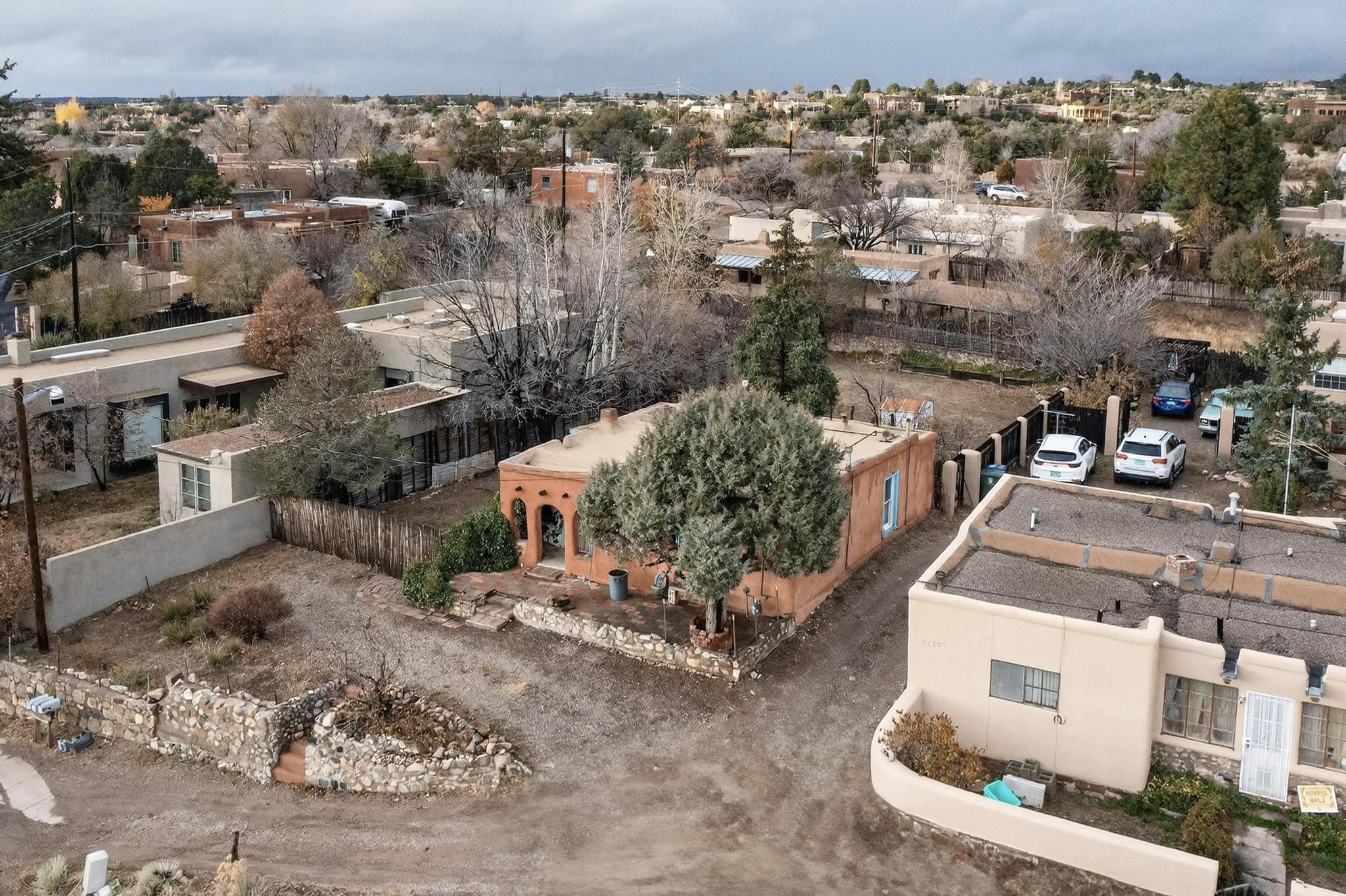 This Historic Adobe estate has prime land and development opportunity near downtown Santa Fe. This exclusive offering is a 1931 Adobe structure featuring a one bedroom one bathroom configuration. The elevated positioning affords expansive unparalleled views of the surrounding landscape. Preliminary assessment indicates the acreage is sufficient to accommodate the development of a second residence within the parcel, offering an exceptional investment for expansion opportunity, subject to zoning confirmation. Notably, there is a separate rear entrance to the backside of the property on N. Armijo Lane. The estate is defined by its maturity and natural beauty, featuring abundant native trees, notably including two striking black walnut trees along with some other fruit baring trees. The property maintains a remarkable balance of secluded natural tranquility while remaining approximately 5 minutes from the cultural and culinary center of downtown Santa Fe. This is a rare market entry for a developer, investor, or homeowner seeking a distinct blend of historic architecture, and close proximity to the city and acreage for future expansion. Don't miss this opportunity!