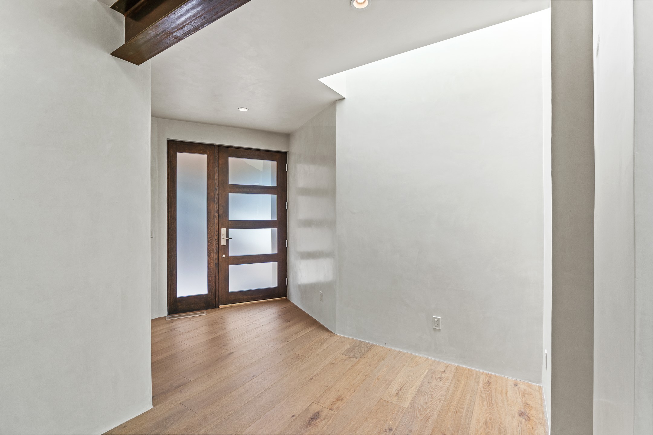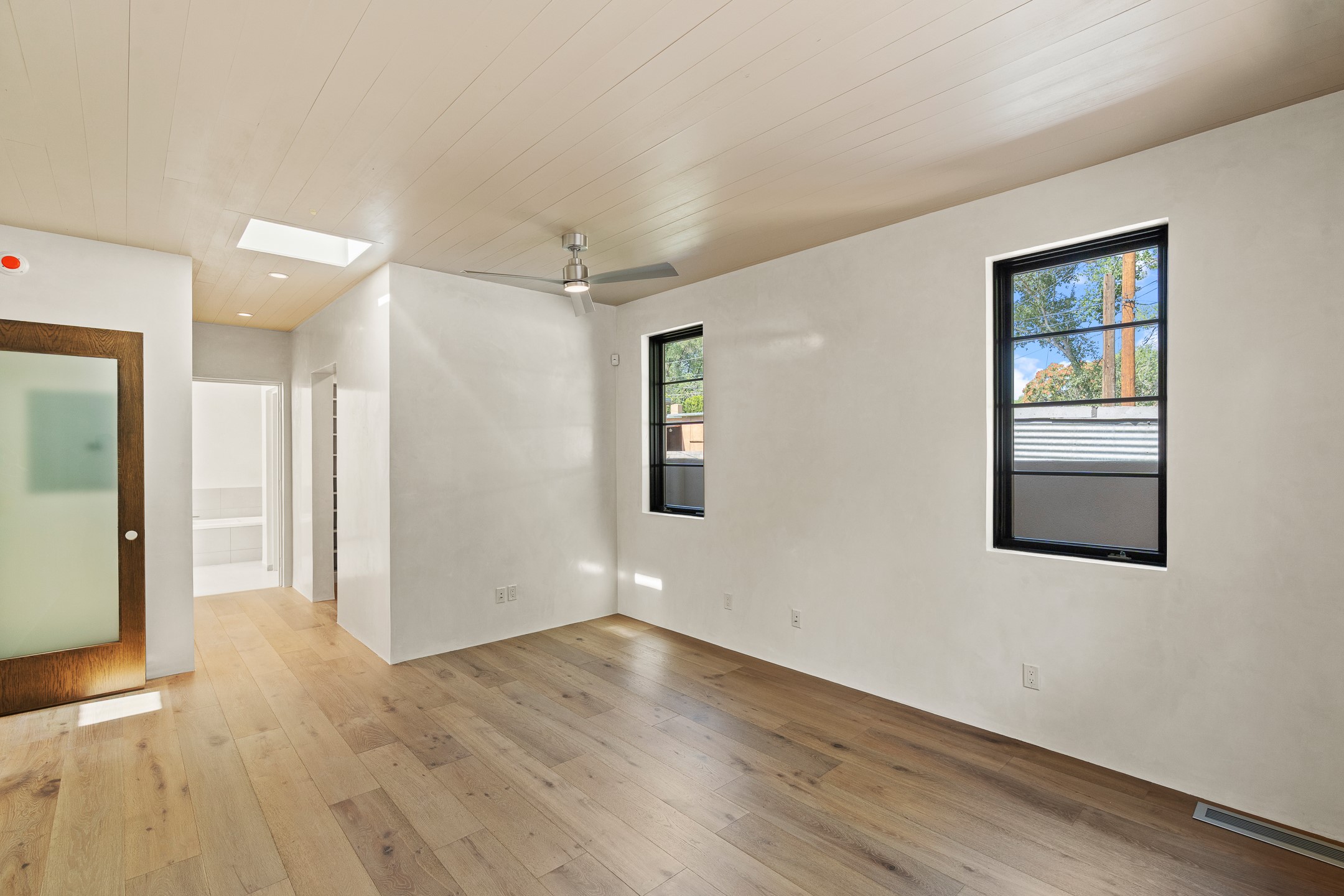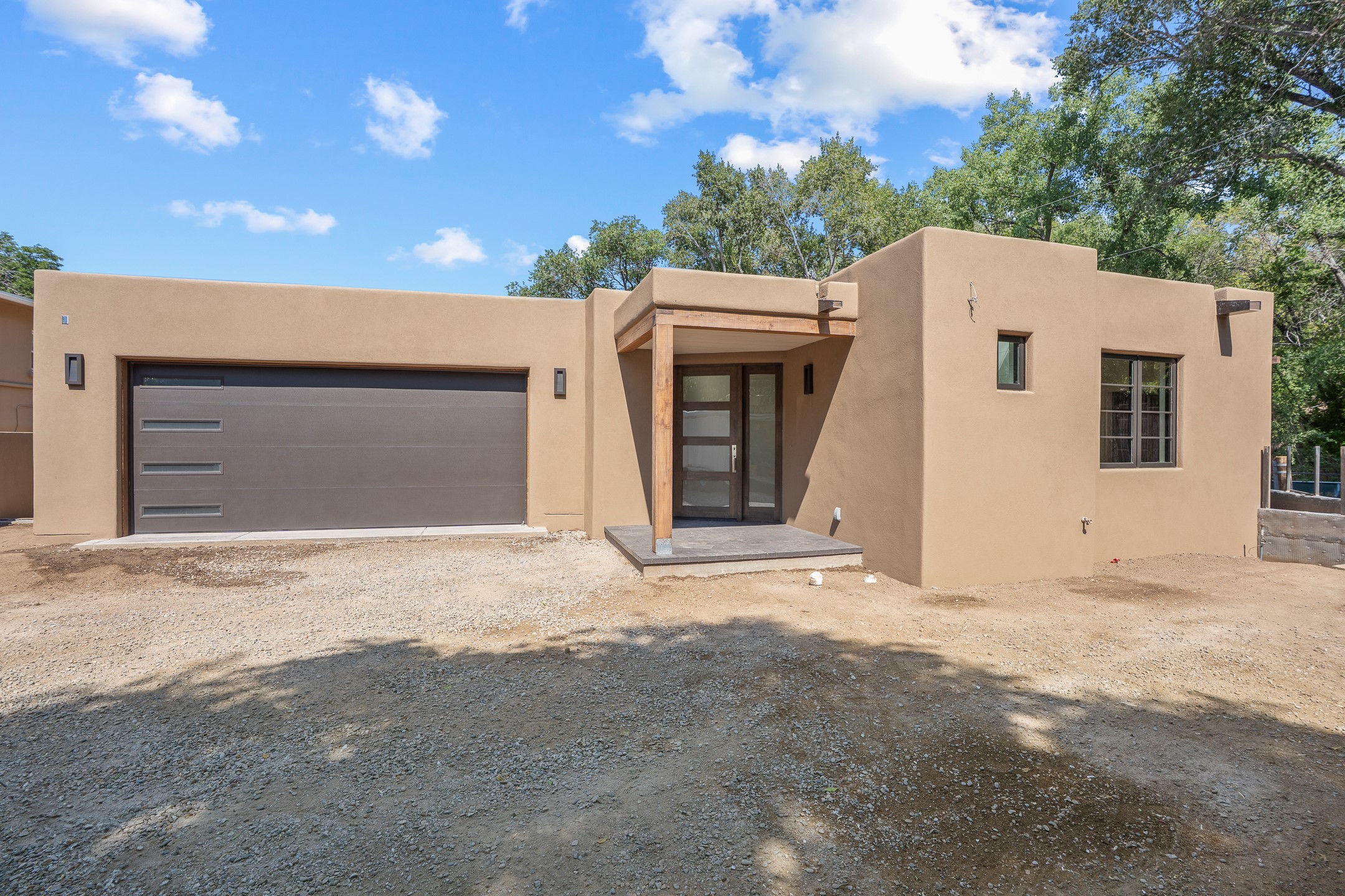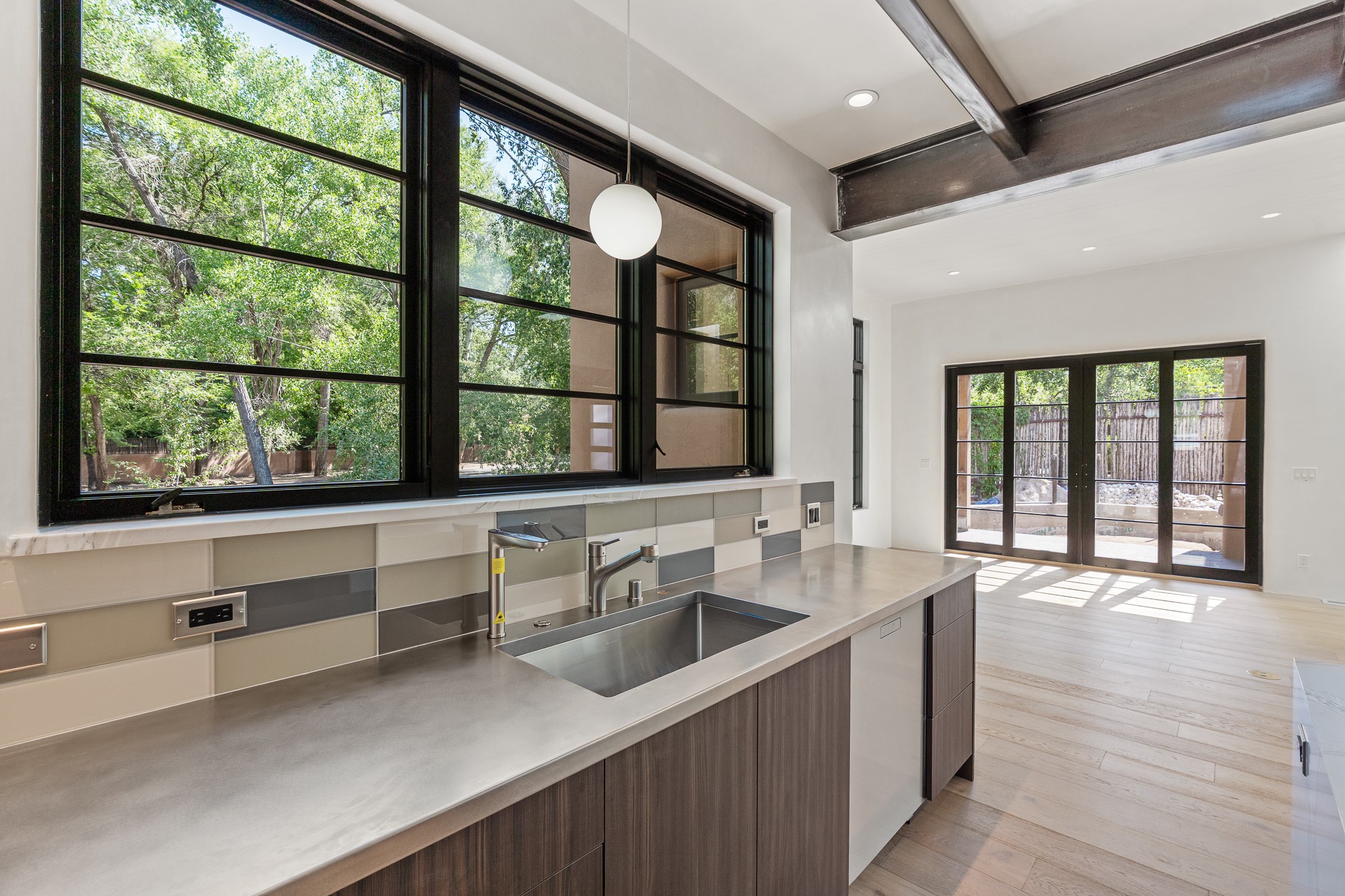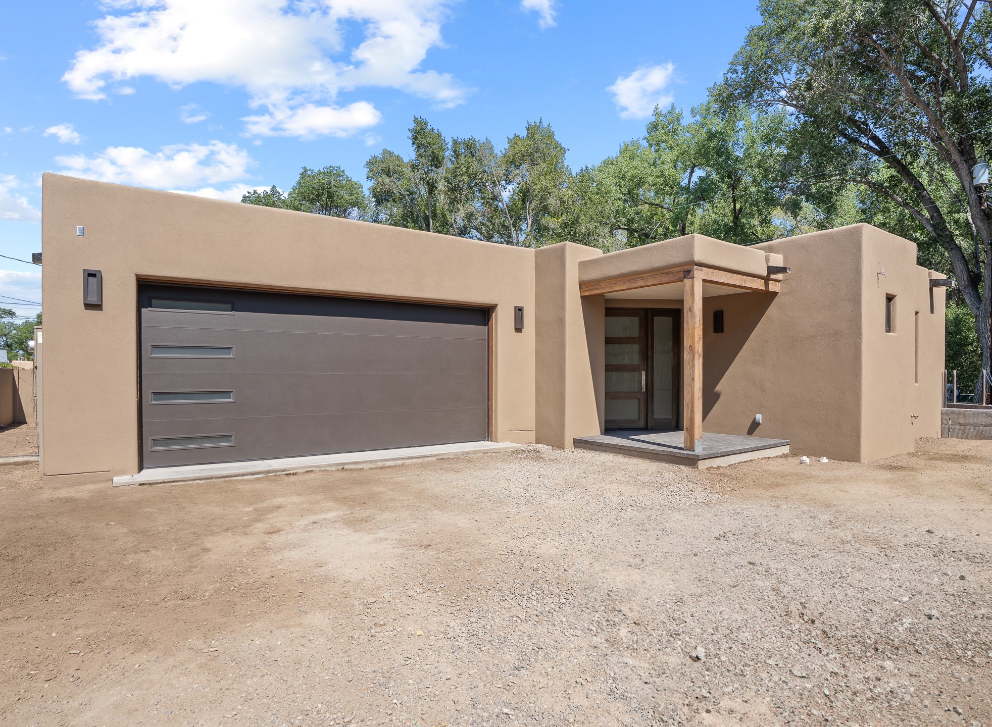 New Construction on Canyon Road - Contemporary Elegance Along the Santa Fe River! Nestled on the historic and sought-after Canyon Road, this newly constructed single-level home (Seller is giving a $20K landscaping allowance credit at closing) offers rare contemporary luxury in the heart of Santa Fe's Eastside. Sited on riverfront property and just a stone's throw from Patrick Smith Park and The Tea House, this 2,375 sq. ft. residence offers a prime location and exceptional design. The 3-bedroom, 3-bathroom home features an open-concept living, kitchen, and dining area with high ceilings, beautifully executed hand-troweled plaster walls, and wood flooring throughout. Skylights and divided-light windows bathe the interiors in natural light, creating a bright and welcoming atmosphere. The chef's kitchen is the centerpiece of the home, complete with a generous island, extensive countertops, and stainless steel appliances. The primary suite offers comfort and privacy, with two separate walk-in closets and a spacious en suite bathroom featuring a double vanity, dedicated makeup area, soaking tub, and walk-in shower. Thoughtfully constructed with insulated concrete forms for superior efficiency and outfitted with solar panels (tied to the grid), this home blends style with sustainability. An attached two-car garage adds convenience, while the back portal--accessed from the main living area--offers a tranquil spot to enjoy the soothing sounds of the Santa Fe River. New construction is a rare gem in Santa Fe's Historic Eastside, and 929 Canyon Road is the treasure you've been searching for.
