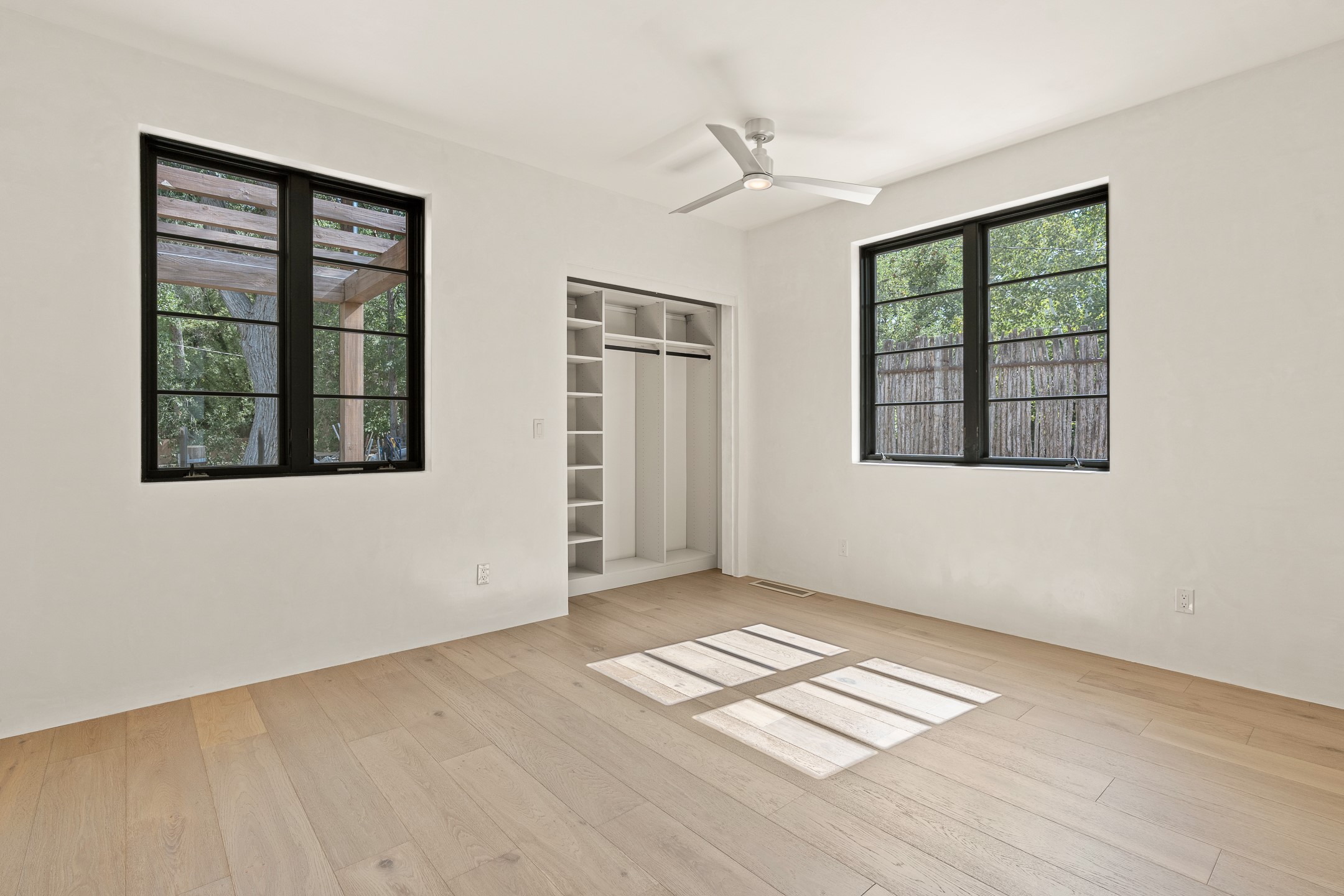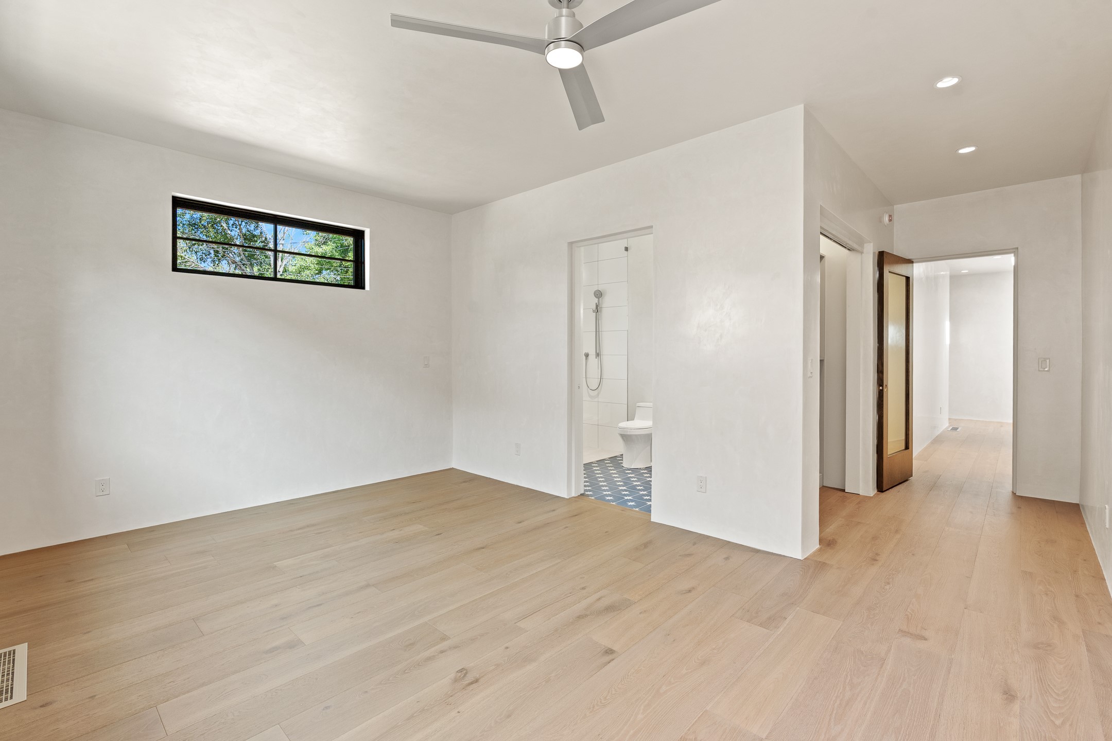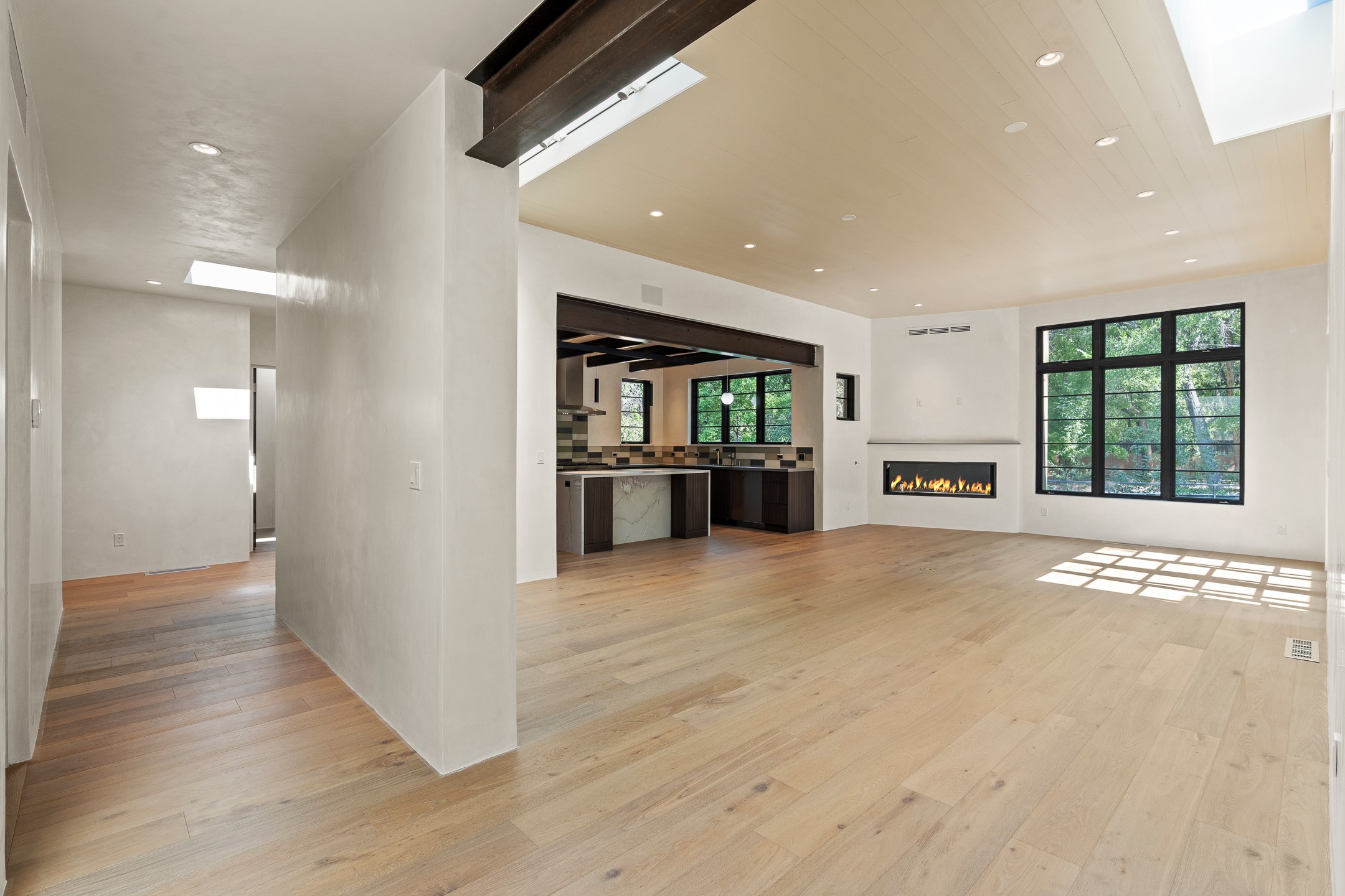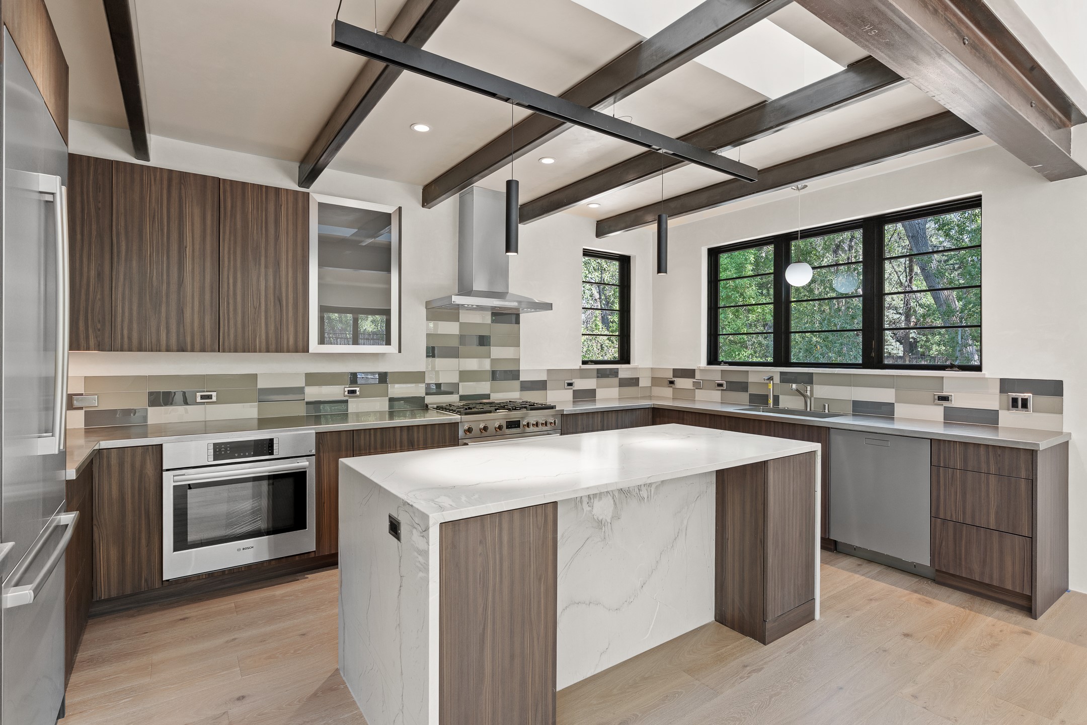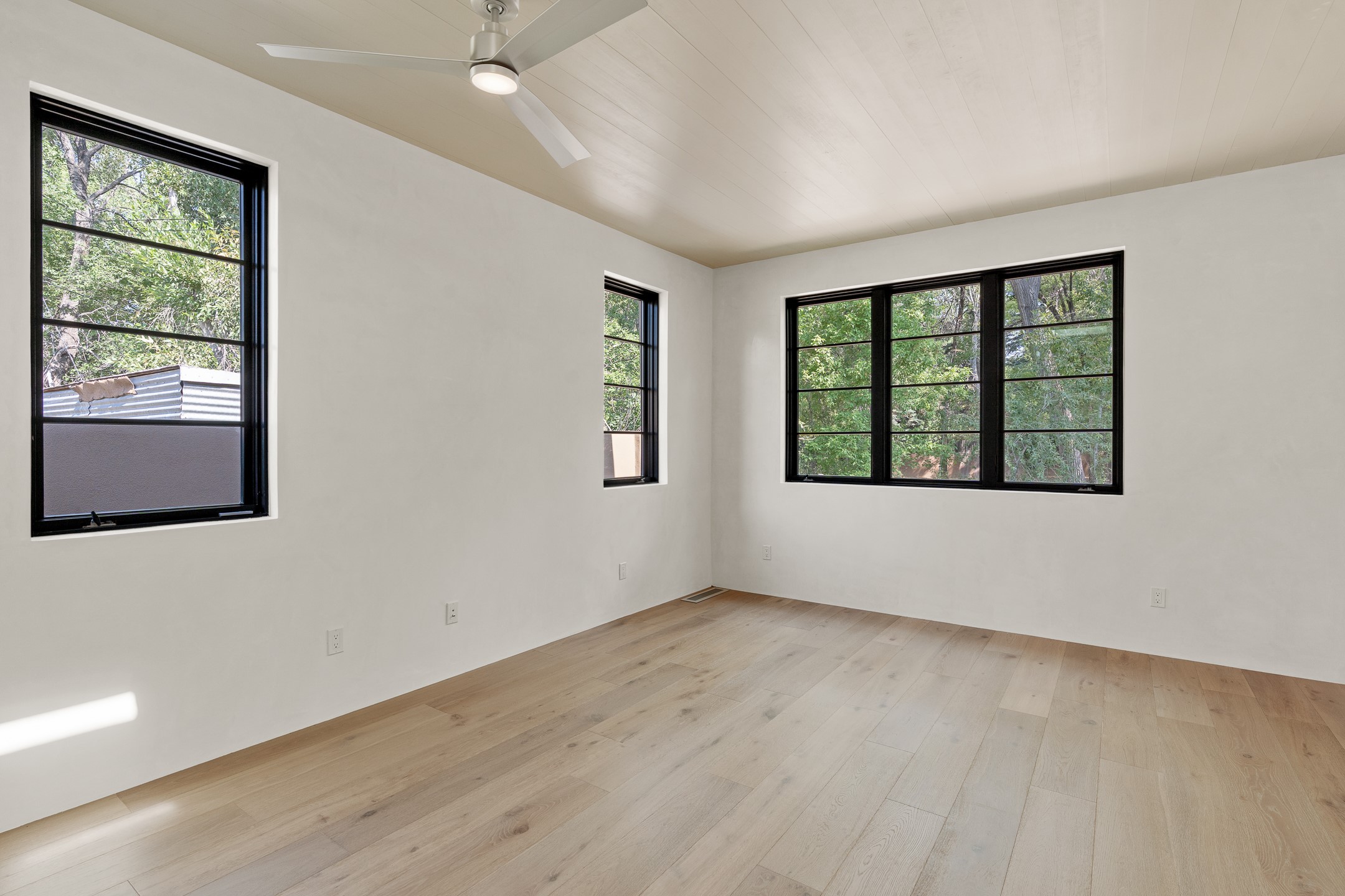 New Construction on Canyon Road - Contemporary Elegance Along the Santa Fe River! Nestled on the historic and sought-after Canyon Road, this newly constructed single-level home (Seller is giving a $20K landscaping allowance credit at closing) offers rare contemporary luxury in the heart of Santa Fe's Eastside. Sited on riverfront property and just a stone's throw from Patrick Smith Park and The Tea House, this 2,375 sq. ft. residence offers a prime location and exceptional design. The 3-bedroom, 3-bathroom home features an open-concept living, kitchen, and dining area with high ceilings, beautifully executed hand-troweled plaster walls, and wood flooring throughout. Skylights and divided-light windows bathe the interiors in natural light, creating a bright and welcoming atmosphere. The chef's kitchen is the centerpiece of the home, complete with a generous island, extensive countertops, and stainless steel appliances. The primary suite offers comfort and privacy, with two separate walk-in closets and a spacious en suite bathroom featuring a double vanity, dedicated makeup area, soaking tub, and walk-in shower. Thoughtfully constructed with insulated concrete forms for superior efficiency and outfitted with solar panels (tied to the grid), this home blends style with sustainability. An attached two-car garage adds convenience, while the back portal--accessed from the main living area--offers a tranquil spot to enjoy the soothing sounds of the Santa Fe River. New construction is a rare gem in Santa Fe's Historic Eastside, and 929 Canyon Road is the treasure you've been searching for.
