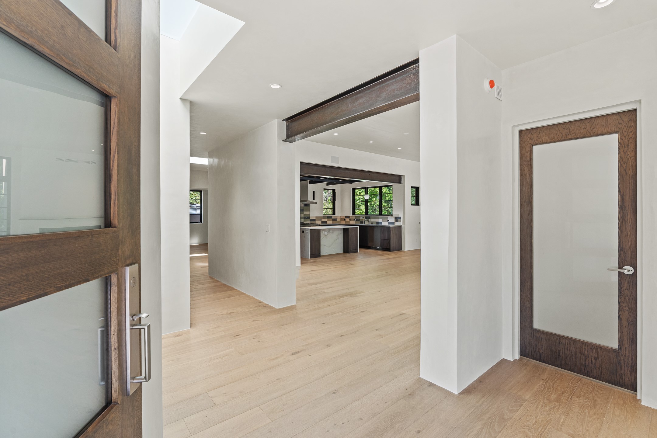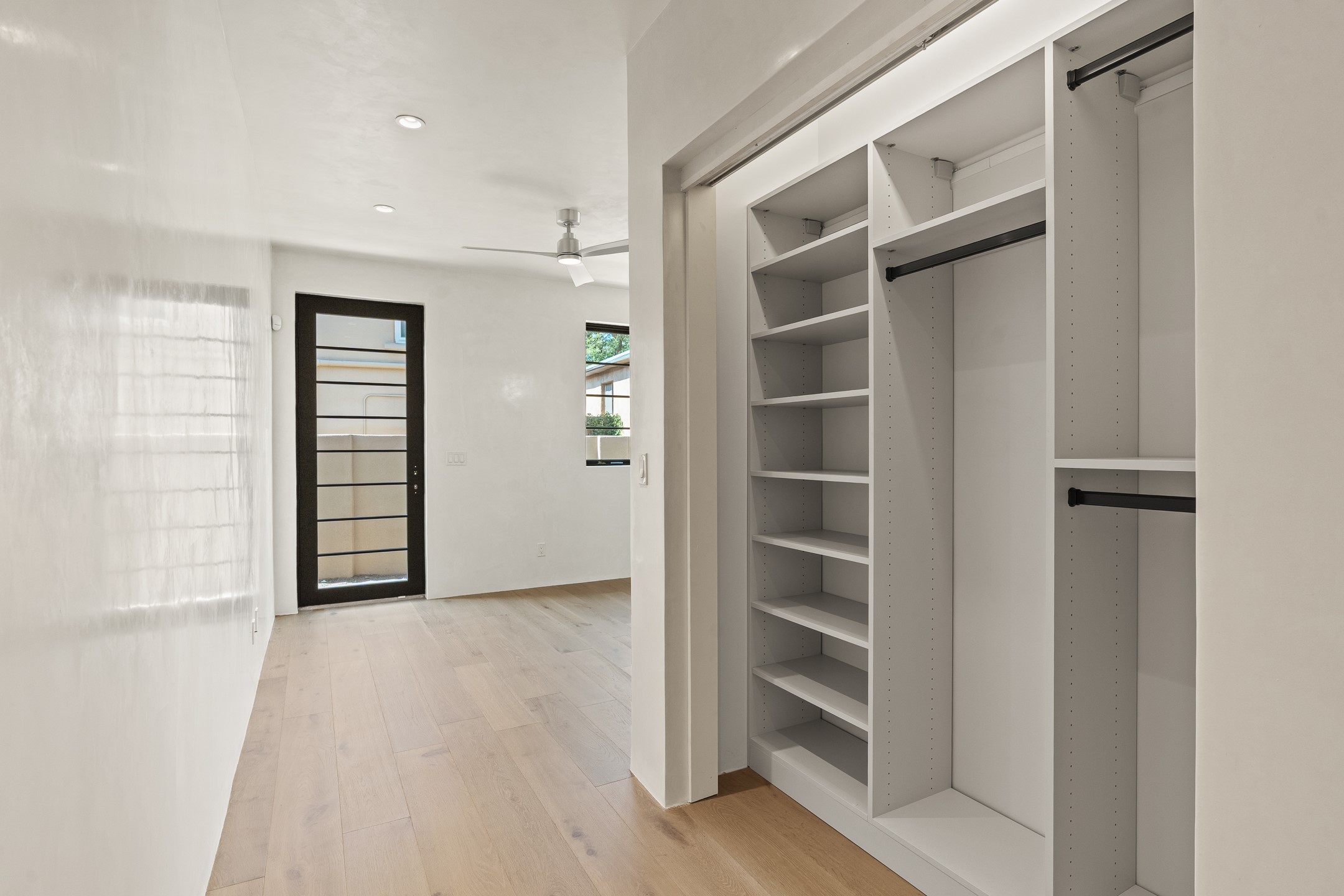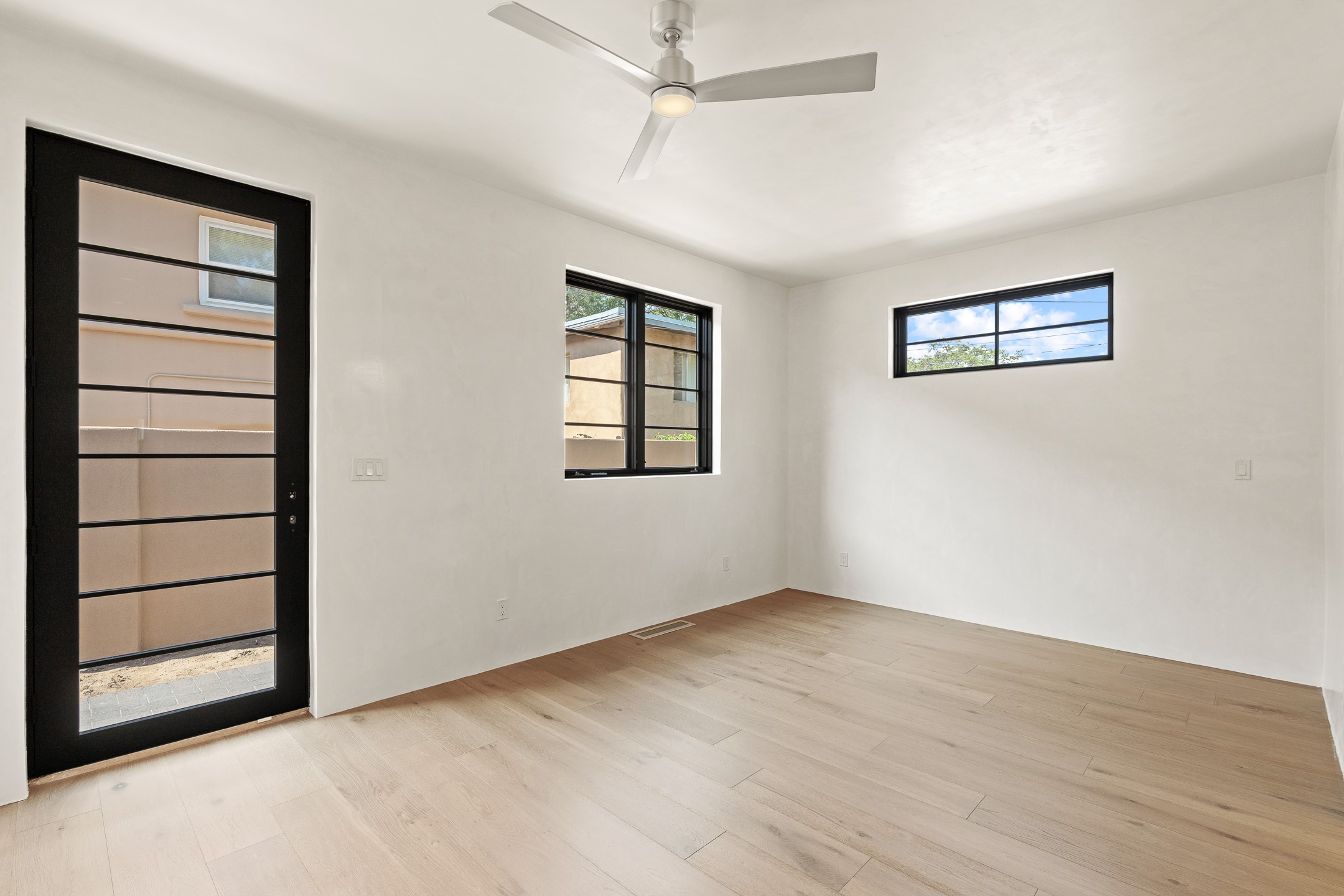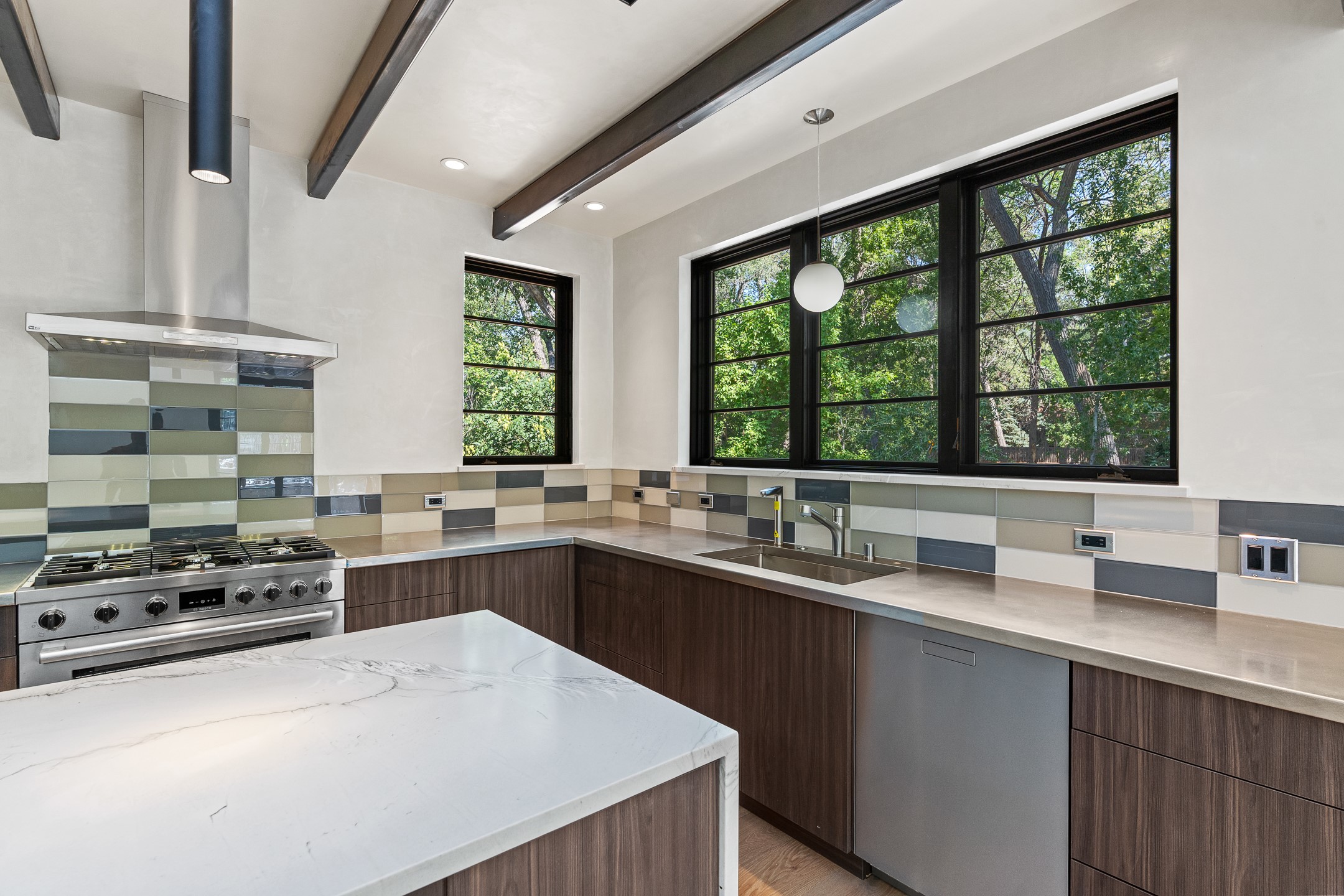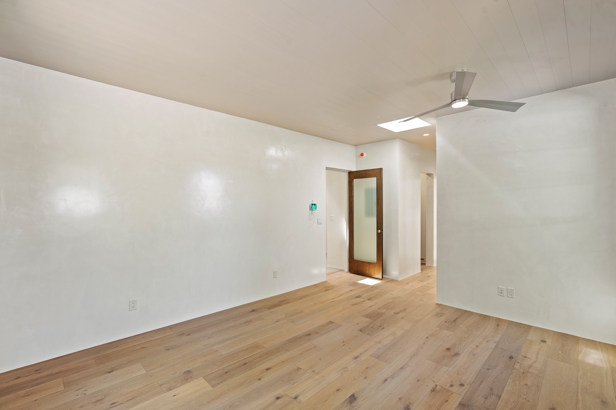 New Construction on Canyon Road - Contemporary Elegance Along the Santa Fe River! Nestled on the historic and sought-after Canyon Road, this newly constructed single-level home (Seller is giving a $20K landscaping allowance credit at closing) offers rare contemporary luxury in the heart of Santa Fe's Eastside. Sited on riverfront property and just a stone's throw from Patrick Smith Park and The Tea House, this 2,375 sq. ft. residence offers a prime location and exceptional design. The 3-bedroom, 3-bathroom home features an open-concept living, kitchen, and dining area with high ceilings, beautifully executed hand-troweled plaster walls, and wood flooring throughout. Skylights and divided-light windows bathe the interiors in natural light, creating a bright and welcoming atmosphere. The chef's kitchen is the centerpiece of the home, complete with a generous island, extensive countertops, and stainless steel appliances. The primary suite offers comfort and privacy, with two separate walk-in closets and a spacious en suite bathroom featuring a double vanity, dedicated makeup area, soaking tub, and walk-in shower. Thoughtfully constructed with insulated concrete forms for superior efficiency and outfitted with solar panels (tied to the grid), this home blends style with sustainability. An attached two-car garage adds convenience, while the back portal--accessed from the main living area--offers a tranquil spot to enjoy the soothing sounds of the Santa Fe River. New construction is a rare gem in Santa Fe's Historic Eastside, and 929 Canyon Road is the treasure you've been searching for.