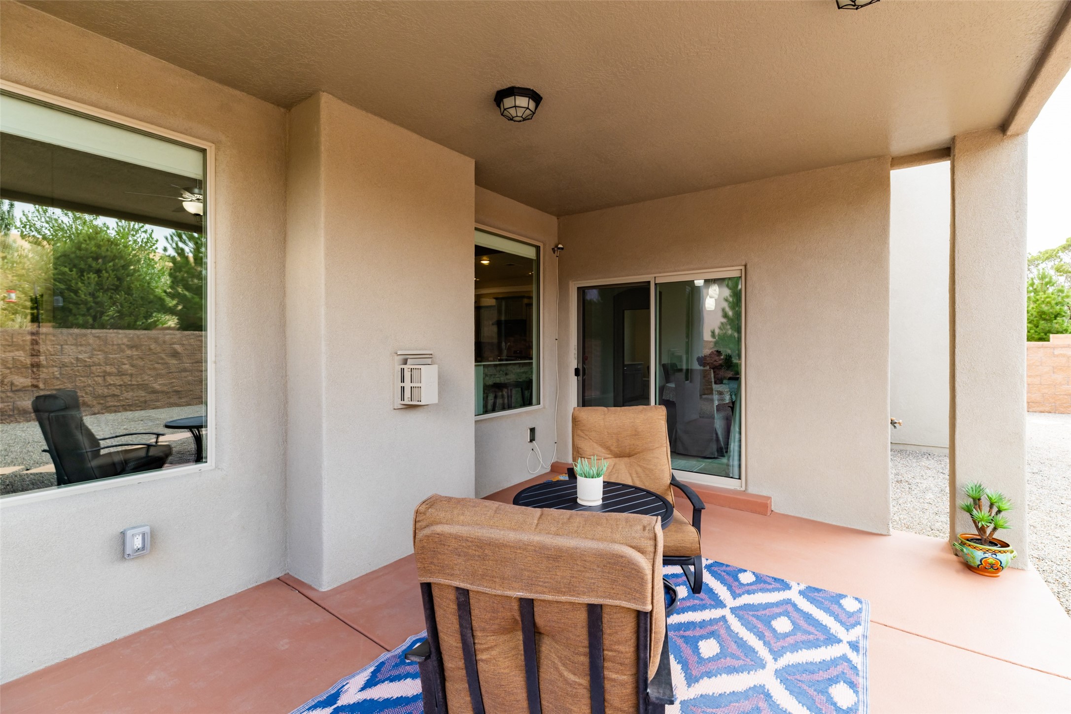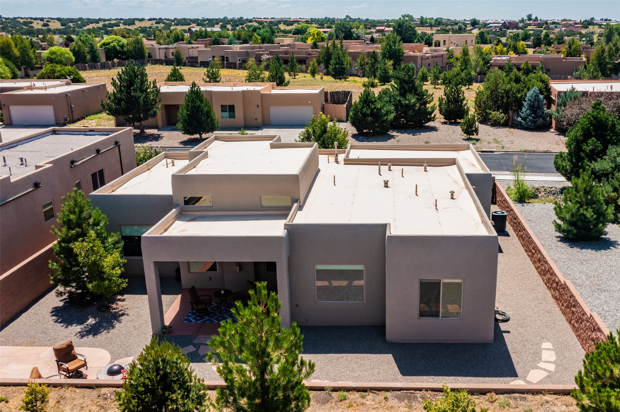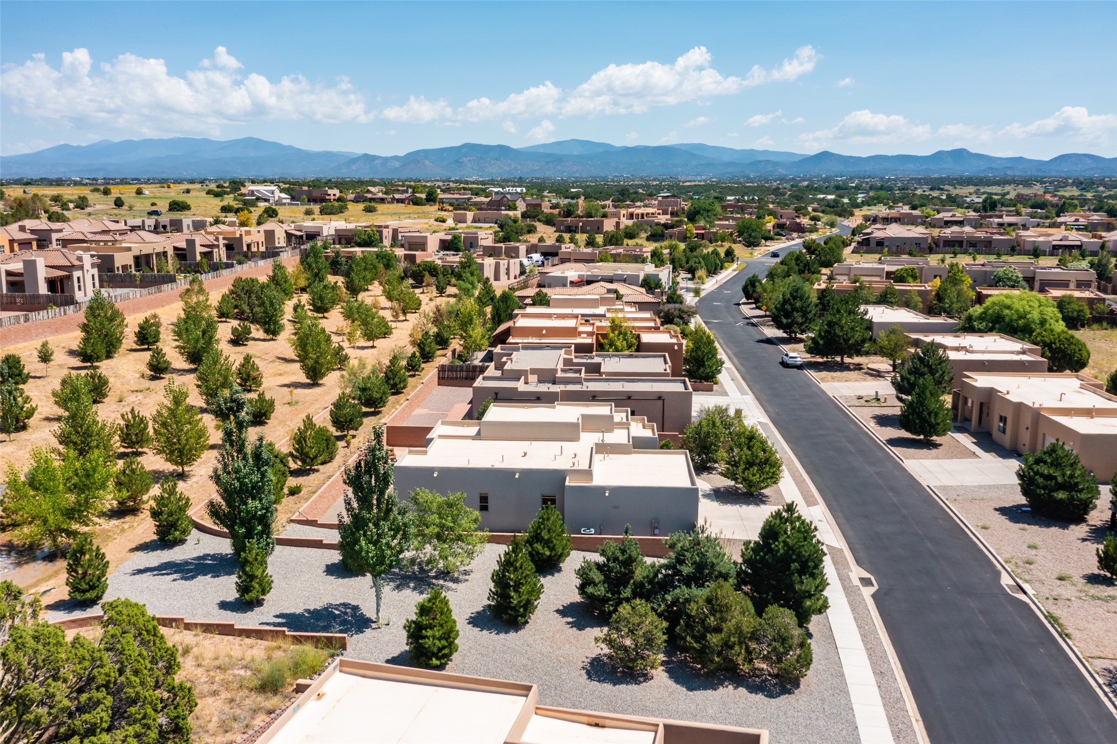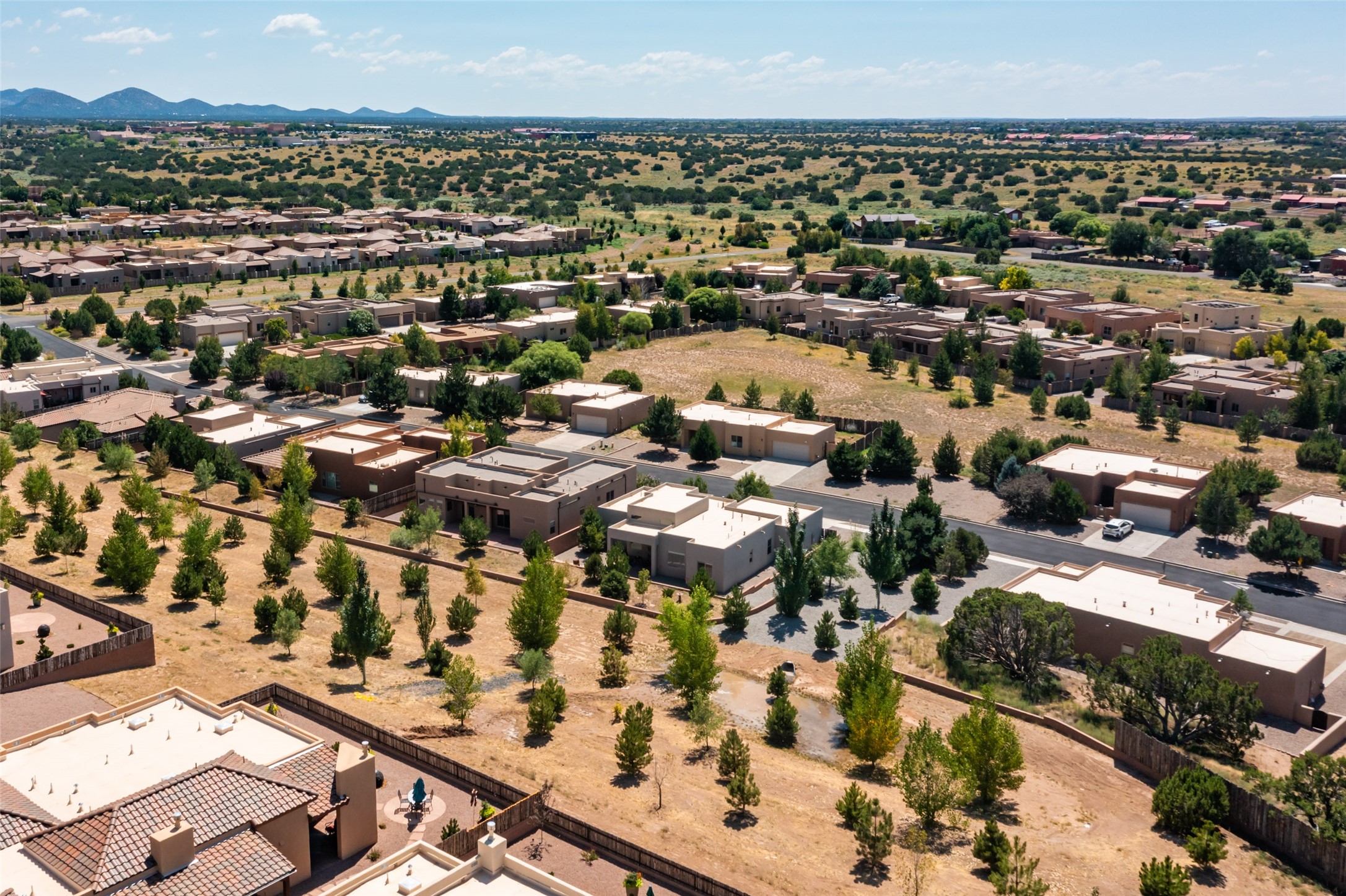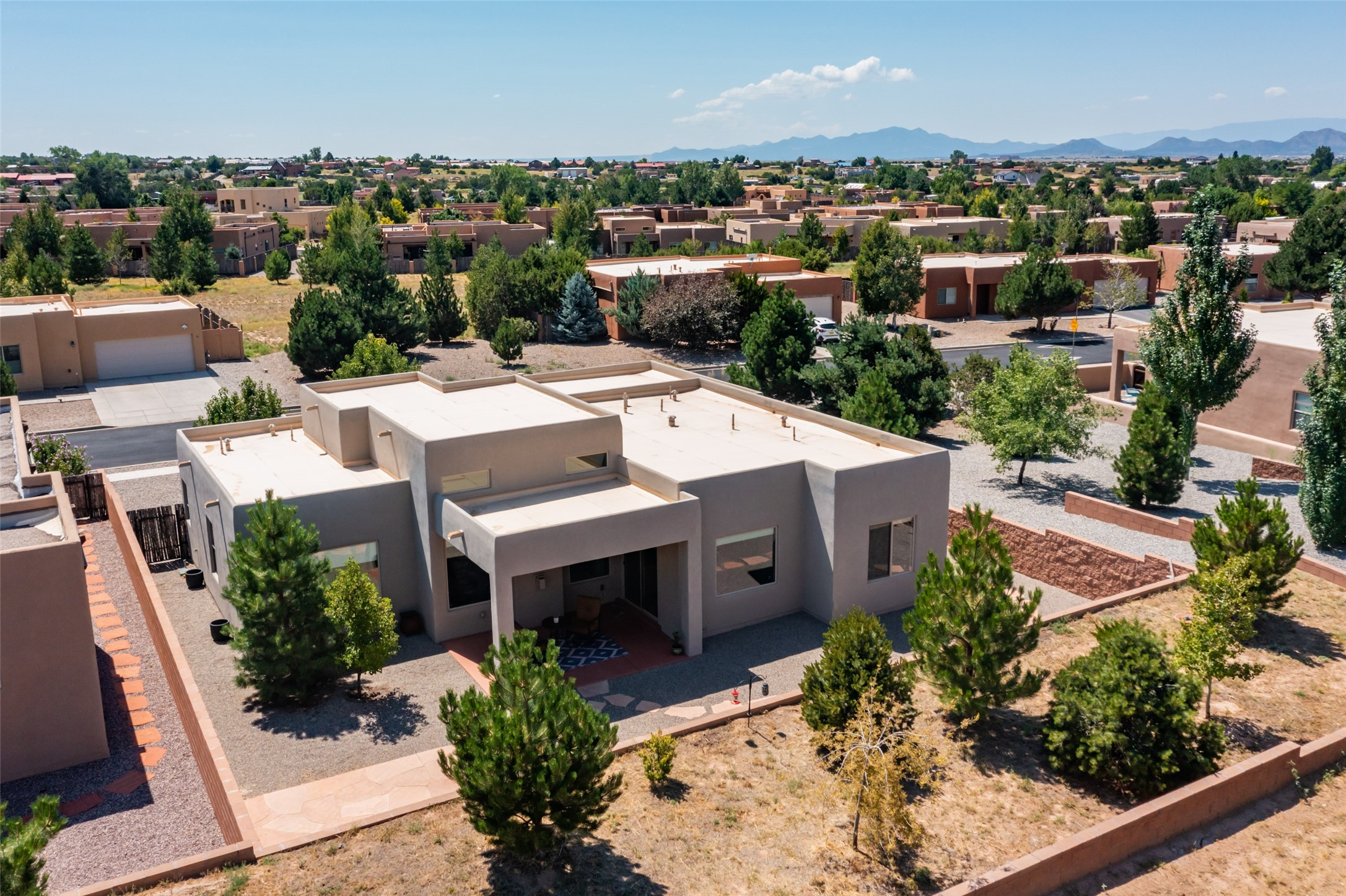 Experience the perfect blend of comfort, style, and location in this beautifully maintained home in the award-winning La Pradera community--named 2025 Santa Fe's Most Livable Neighborhood by the Haciendas Parade of Homes. This 4-bedroom, 2-bath home offers thoughtful updates and a layout designed for both functionality and relaxation. Inside, you'll find a freshly painted interior (2025) and new laminate flooring in the guest rooms (2025), enhanced by upgraded light fixtures and ceiling fans throughout. The spacious primary suite boasts an oversized walk-in closet and a large luxurious shower with a rain shower head, while another guest bedroom includes its own walk-in closet. The kitchen features stainless steel appliances, including a quiet KitchenAid dishwasher (2023). A laundry room with sink and cabinetry adds convenience. The 2.5-car garage is a standout with a MyQ smart system, overhead storage unit, custom workbench, and extra storage bump-out. Enjoy year-round comfort with a gas fireplace featuring new components (2025) and peace of mind with a security system and ring cameras (buyer activation required). Outside, the fully landscaped yard showcases mature trees, including a fruit-bearing pear tree, and inviting outdoor spaces. Relax under the oversized covered patio, gather around the flagstone patio with fire pit table (conveys), and take in the surrounding green space. This property backs to open greenery and offers an open space treed lot on one side for added privacy, with more open space in front and behind. Additional perks include a 70" TV with soundbar that conveys, roof maintenance and upgrades (2024), and access to La Pradera's incredible amenities--50% open space, parks, and scenic walking trails throughout. The entire exterior has just been painted with high-quality elastomeric stucco paint (2025), designed to be waterproof and durable. The work comes with a transferable warranty, giving peace of mind to the next owner.