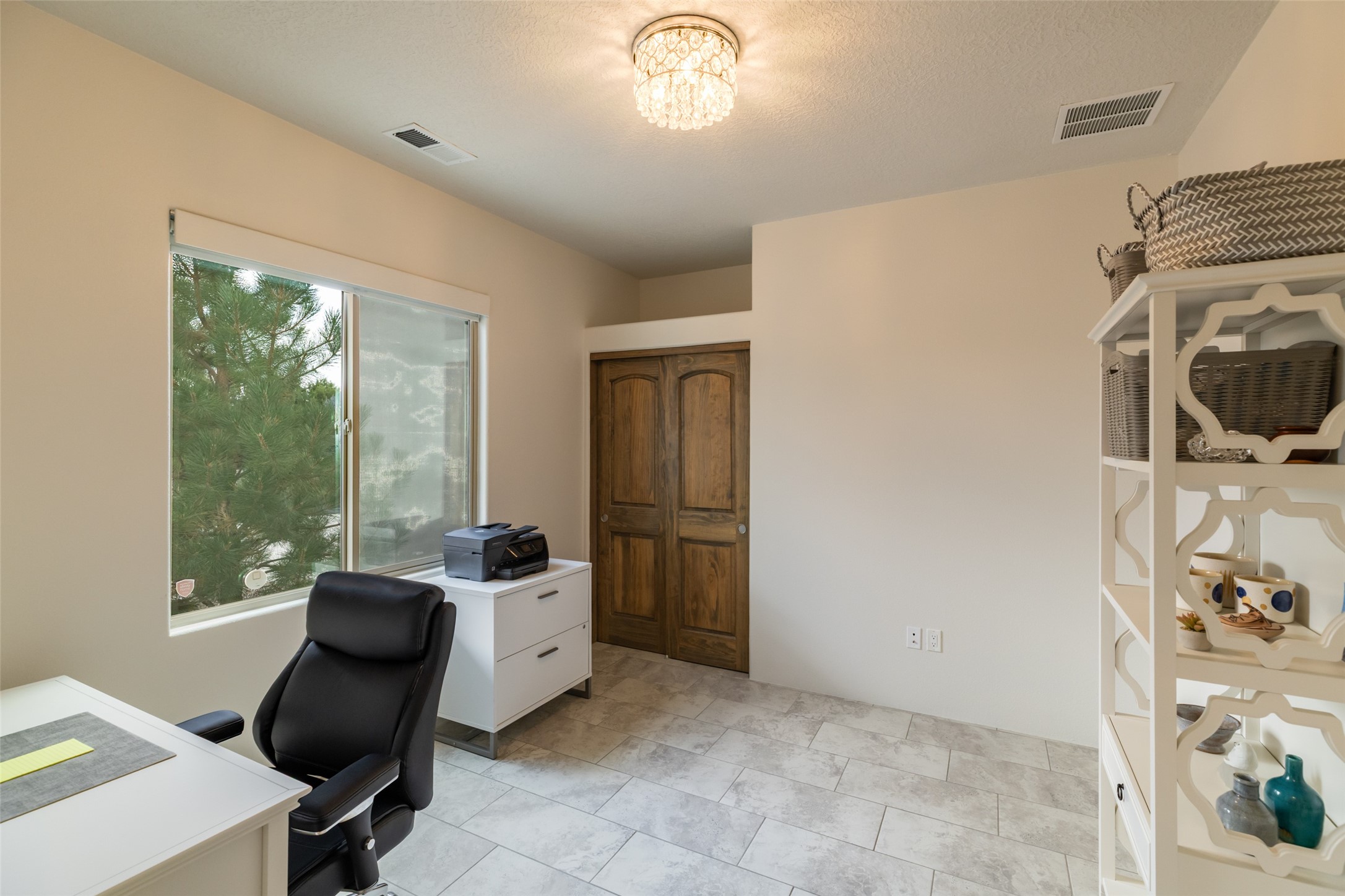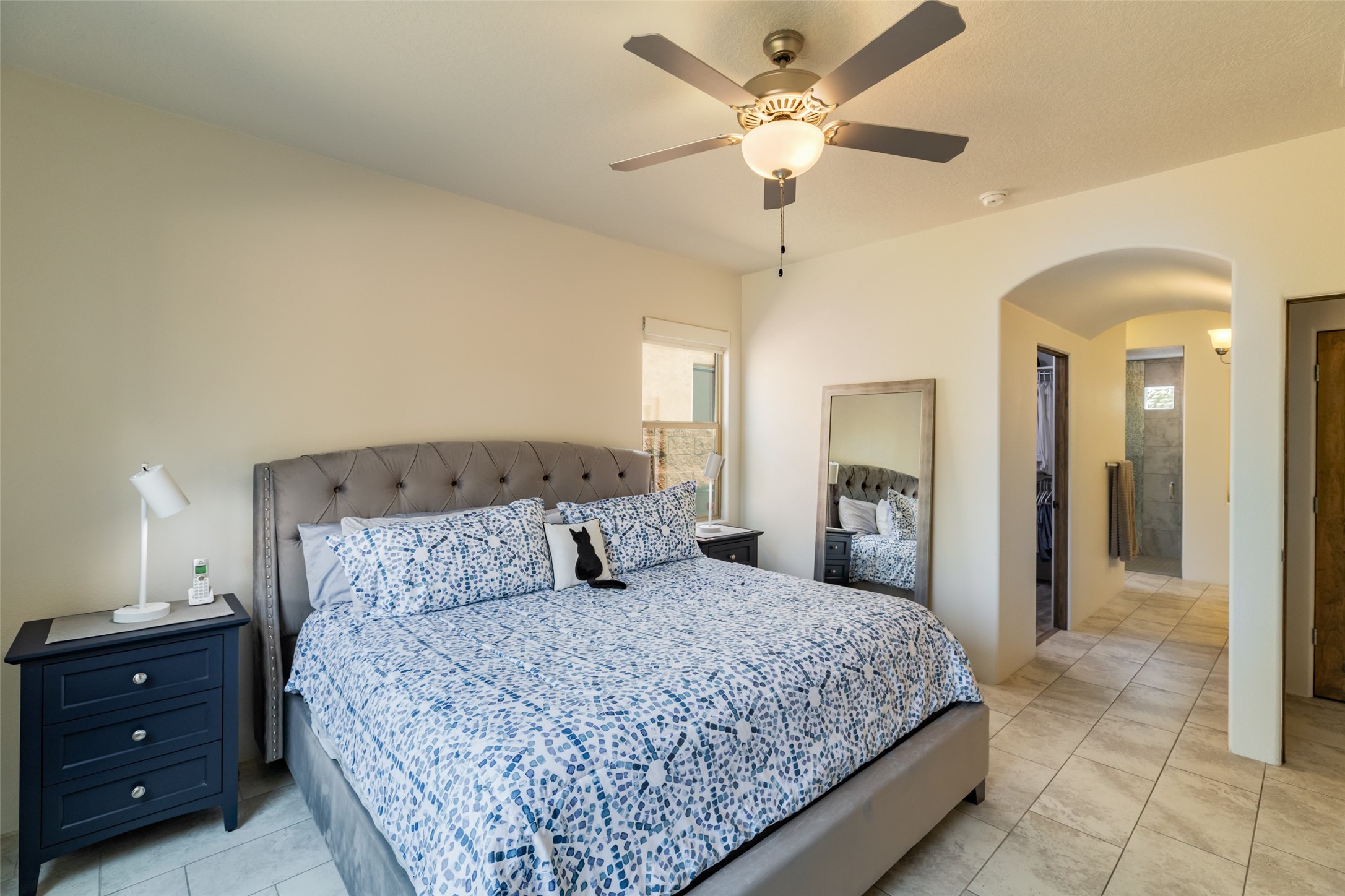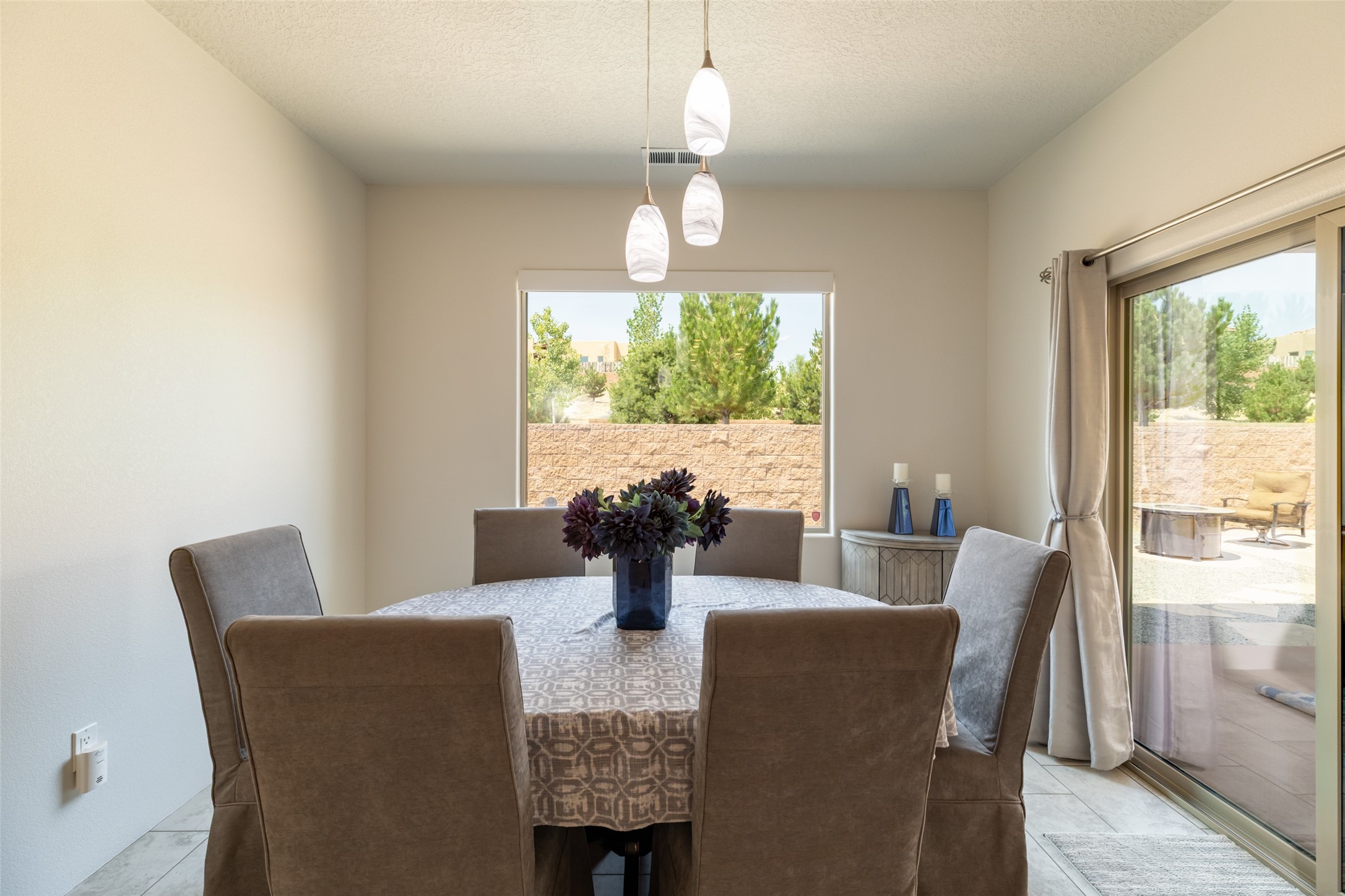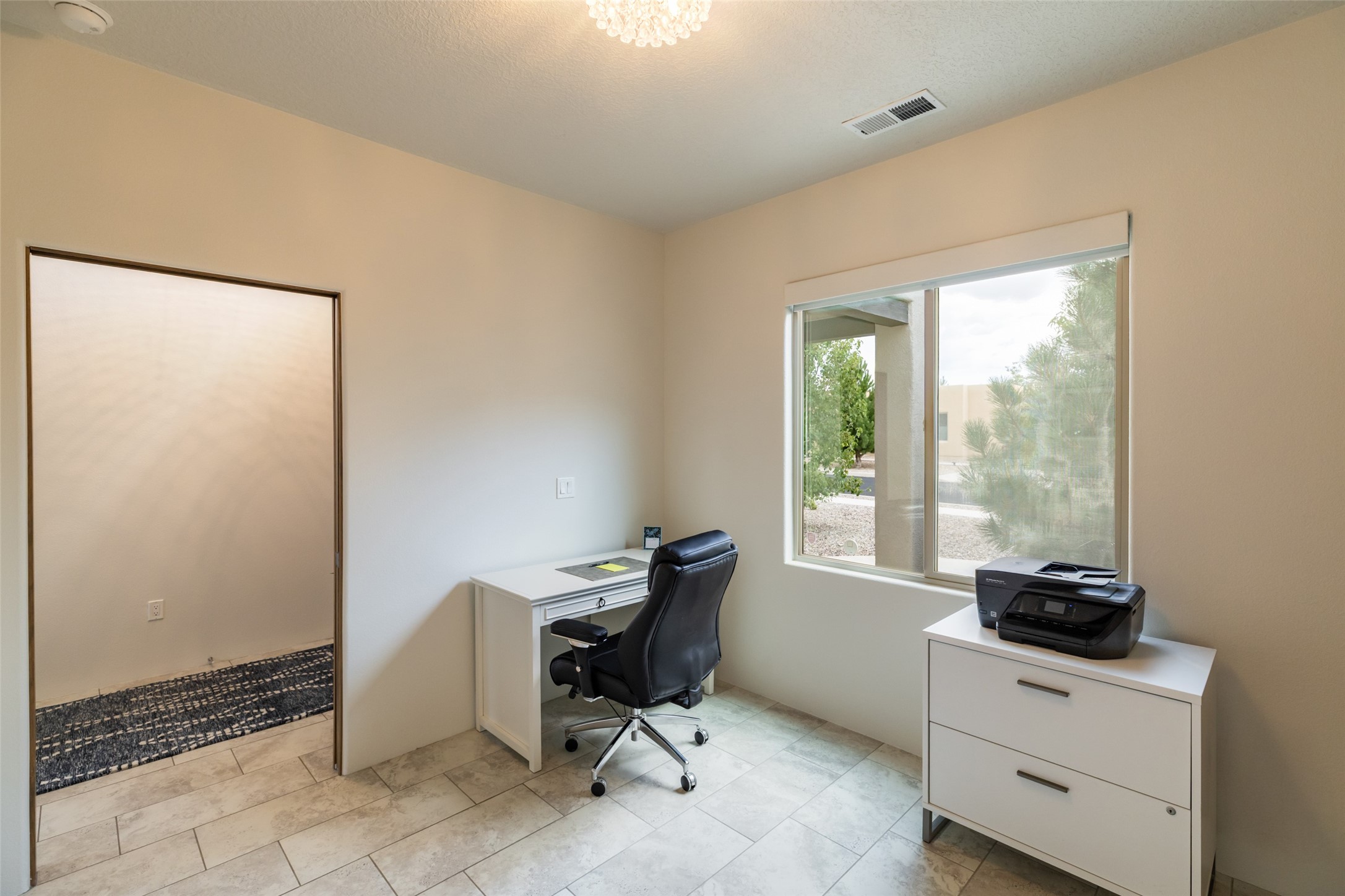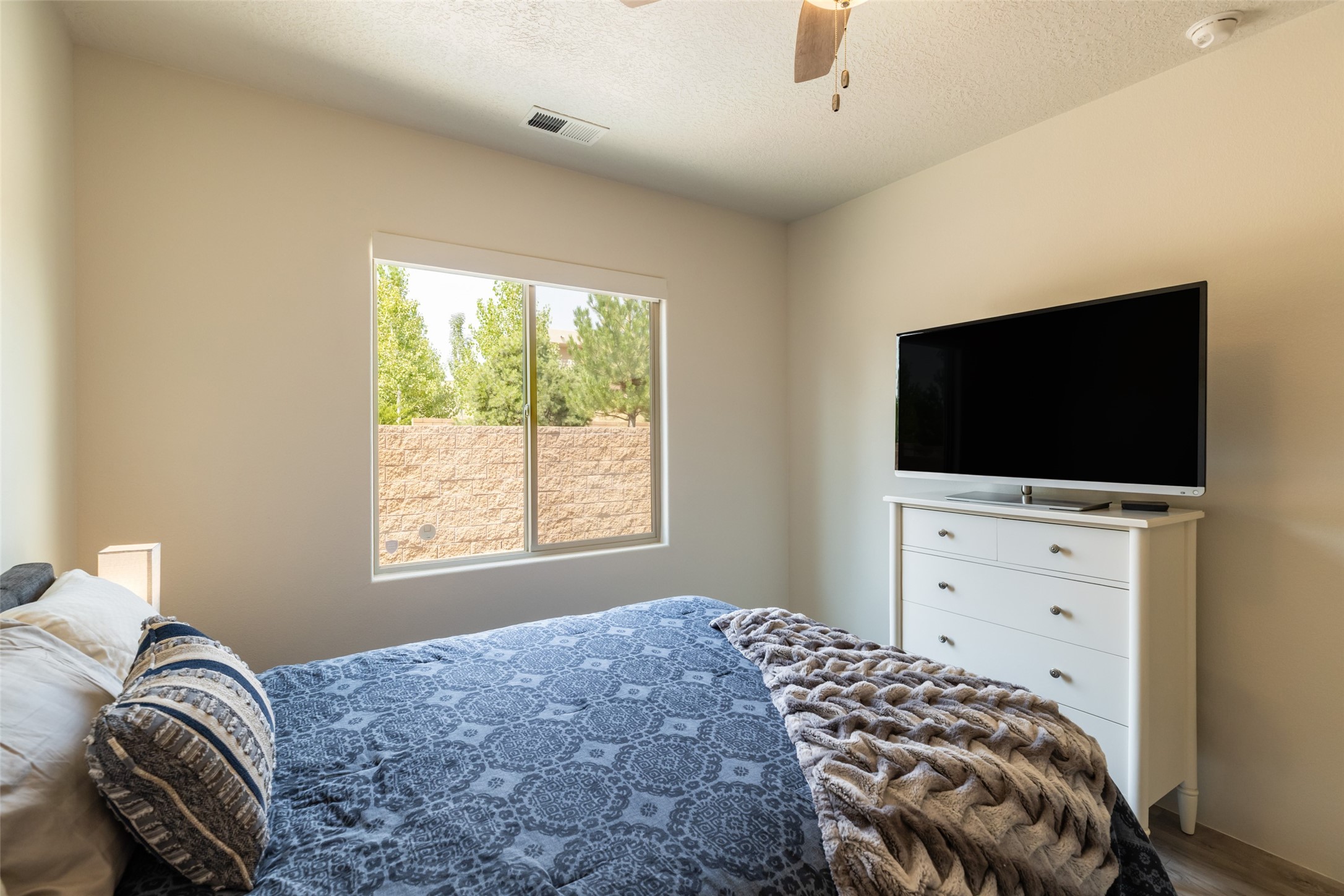 Experience the perfect blend of comfort, style, and location in this beautifully maintained home in the award-winning La Pradera community--named 2025 Santa Fe's Most Livable Neighborhood by the Haciendas Parade of Homes. This 4-bedroom, 2-bath home offers thoughtful updates and a layout designed for both functionality and relaxation. Inside, you'll find a freshly painted interior (2025) and new laminate flooring in the guest rooms (2025), enhanced by upgraded light fixtures and ceiling fans throughout. The spacious primary suite boasts an oversized walk-in closet and a large luxurious shower with a rain shower head, while another guest bedroom includes its own walk-in closet. The kitchen features stainless steel appliances, including a quiet KitchenAid dishwasher (2023). A laundry room with sink and cabinetry adds convenience. The 2.5-car garage is a standout with a MyQ smart system, overhead storage unit, custom workbench, and extra storage bump-out. Enjoy year-round comfort with a gas fireplace featuring new components (2025) and peace of mind with a security system and ring cameras (buyer activation required). Outside, the fully landscaped yard showcases mature trees, including a fruit-bearing pear tree, and inviting outdoor spaces. Relax under the oversized covered patio, gather around the flagstone patio with fire pit table (conveys), and take in the surrounding green space. This property backs to open greenery and offers an open space treed lot on one side for added privacy, with more open space in front and behind. Additional perks include a 70" TV with soundbar that conveys, roof maintenance and upgrades (2024), and access to La Pradera's incredible amenities--50% open space, parks, and scenic walking trails throughout. The entire exterior has just been painted with high-quality elastomeric stucco paint (2025), designed to be waterproof and durable. The work comes with a transferable warranty, giving peace of mind to the next owner.