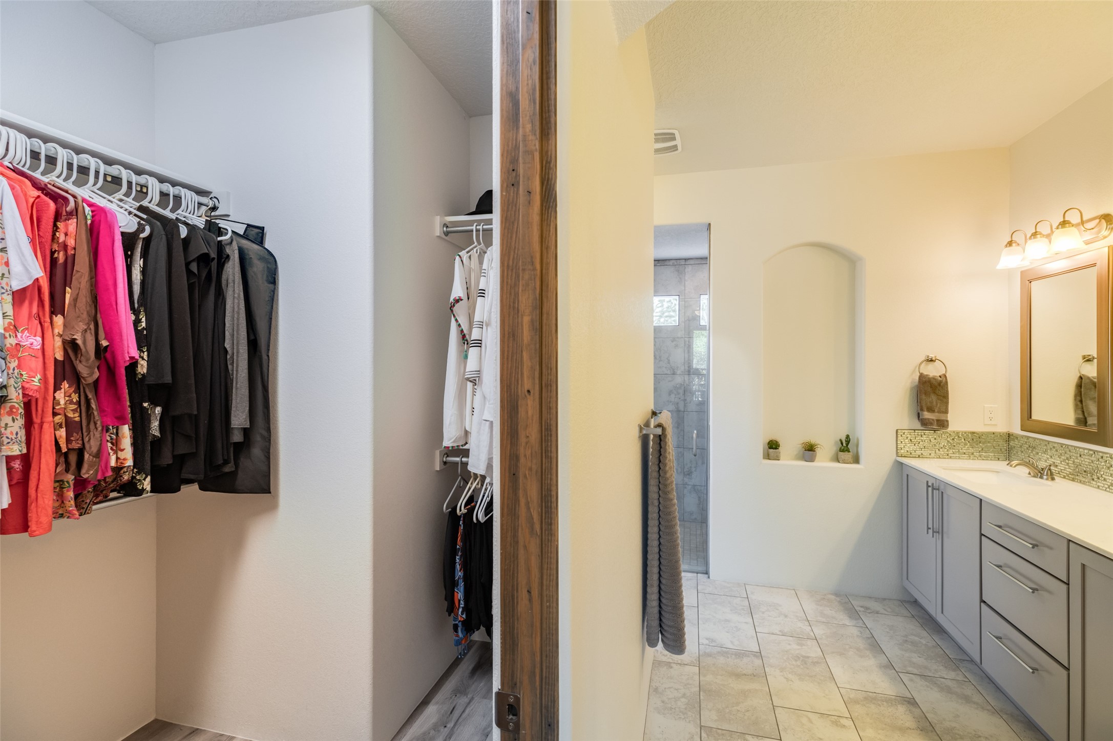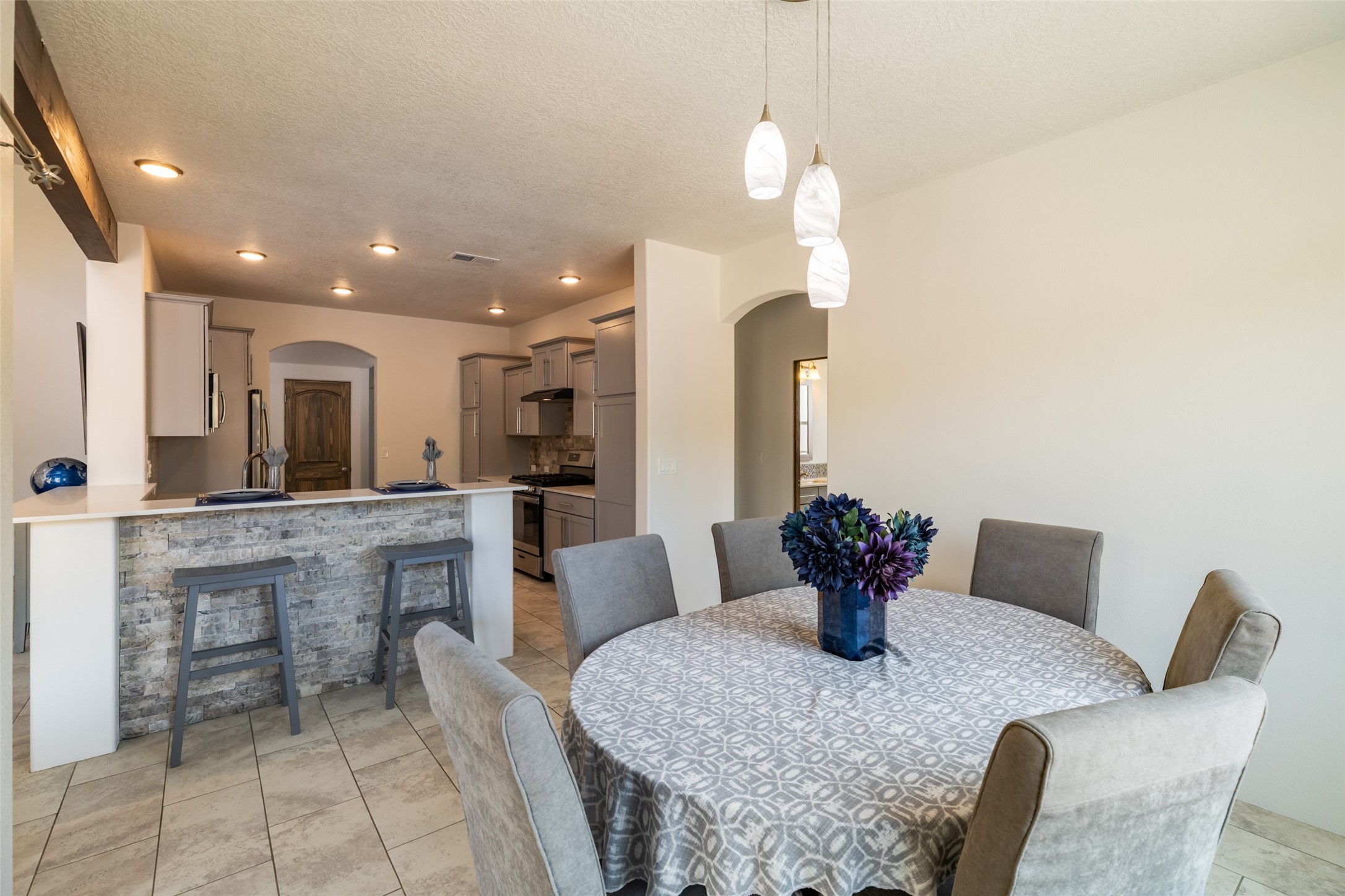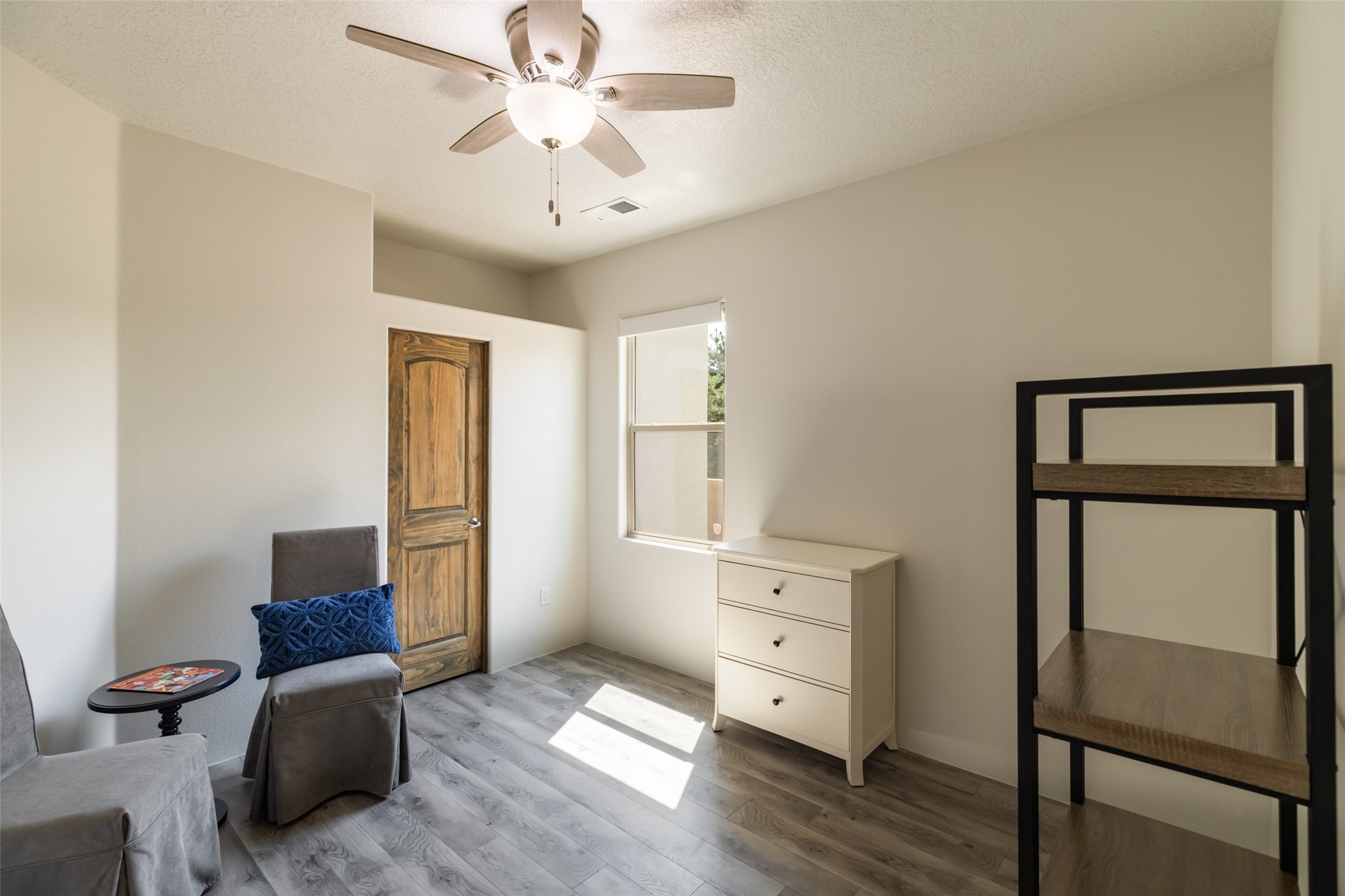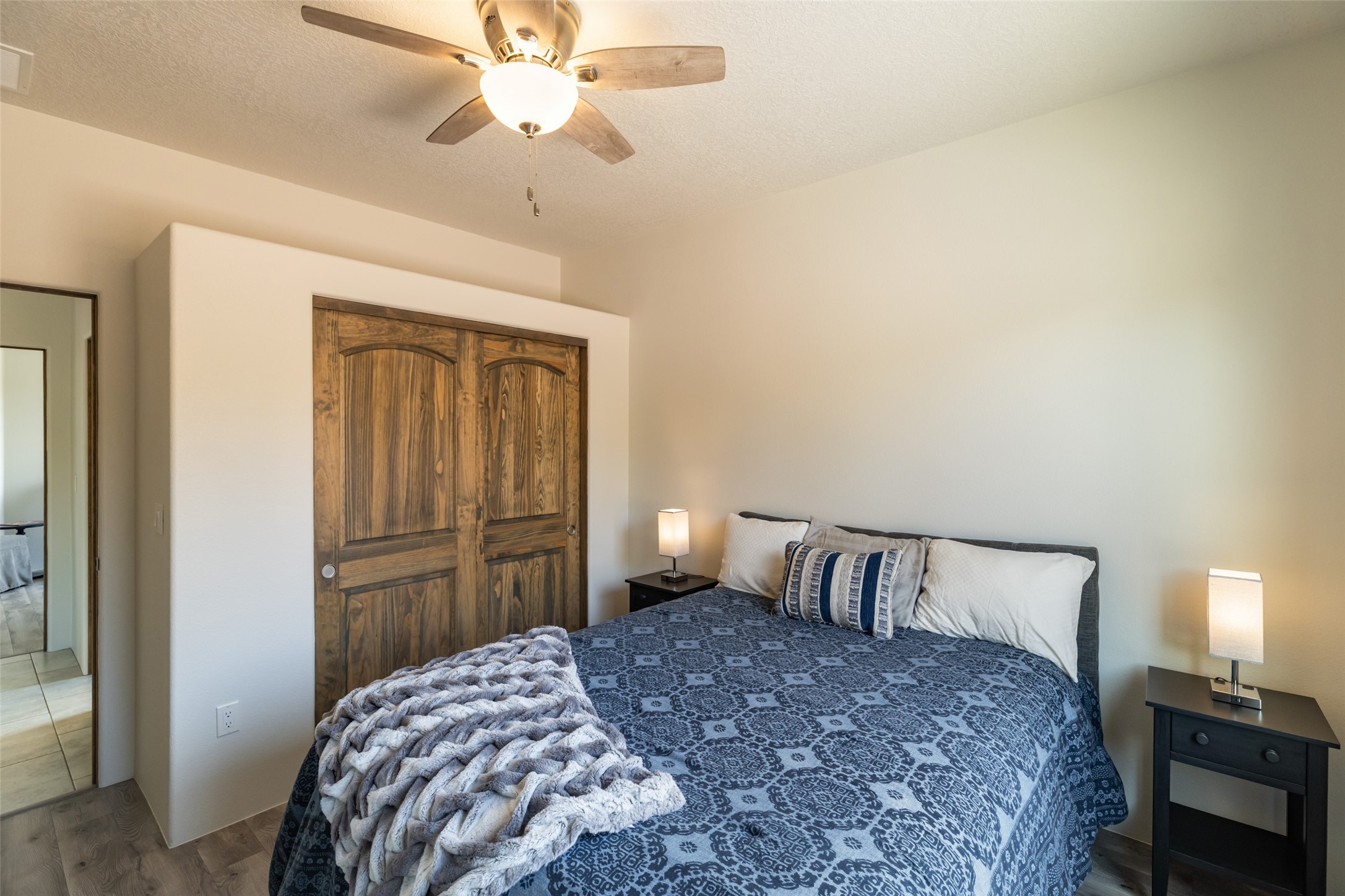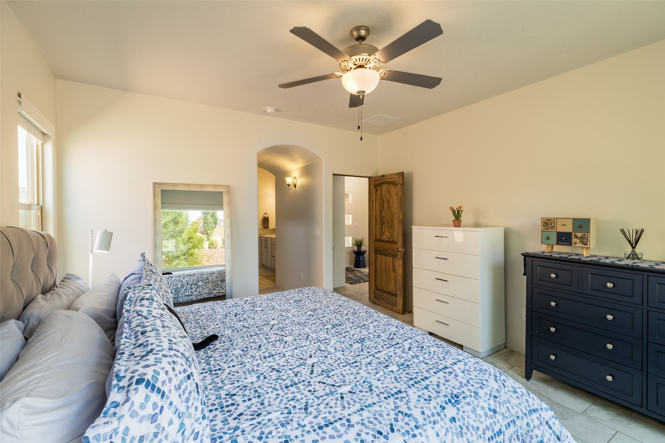 Experience the perfect blend of comfort, style, and location in this beautifully maintained home in the award-winning La Pradera community--named 2025 Santa Fe's Most Livable Neighborhood by the Haciendas Parade of Homes. This 4-bedroom, 2-bath home offers thoughtful updates and a layout designed for both functionality and relaxation. Inside, you'll find a freshly painted interior (2025) and new laminate flooring in the guest rooms (2025), enhanced by upgraded light fixtures and ceiling fans throughout. The spacious primary suite boasts an oversized walk-in closet and a large luxurious shower with a rain shower head, while another guest bedroom includes its own walk-in closet. The kitchen features stainless steel appliances, including a quiet KitchenAid dishwasher (2023). A laundry room with sink and cabinetry adds convenience. The 2.5-car garage is a standout with a MyQ smart system, overhead storage unit, custom workbench, and extra storage bump-out. Enjoy year-round comfort with a gas fireplace featuring new components (2025) and peace of mind with a security system and ring cameras (buyer activation required). Outside, the fully landscaped yard showcases mature trees, including a fruit-bearing pear tree, and inviting outdoor spaces. Relax under the oversized covered patio, gather around the flagstone patio with fire pit table (conveys), and take in the surrounding green space. This property backs to open greenery and offers an open space treed lot on one side for added privacy, with more open space in front and behind. Additional perks include a 70" TV with soundbar that conveys, roof maintenance and upgrades (2024), and access to La Pradera's incredible amenities--50% open space, parks, and scenic walking trails throughout. The entire exterior has just been painted with high-quality elastomeric stucco paint (2025), designed to be waterproof and durable. The work comes with a transferable warranty, giving peace of mind to the next owner.