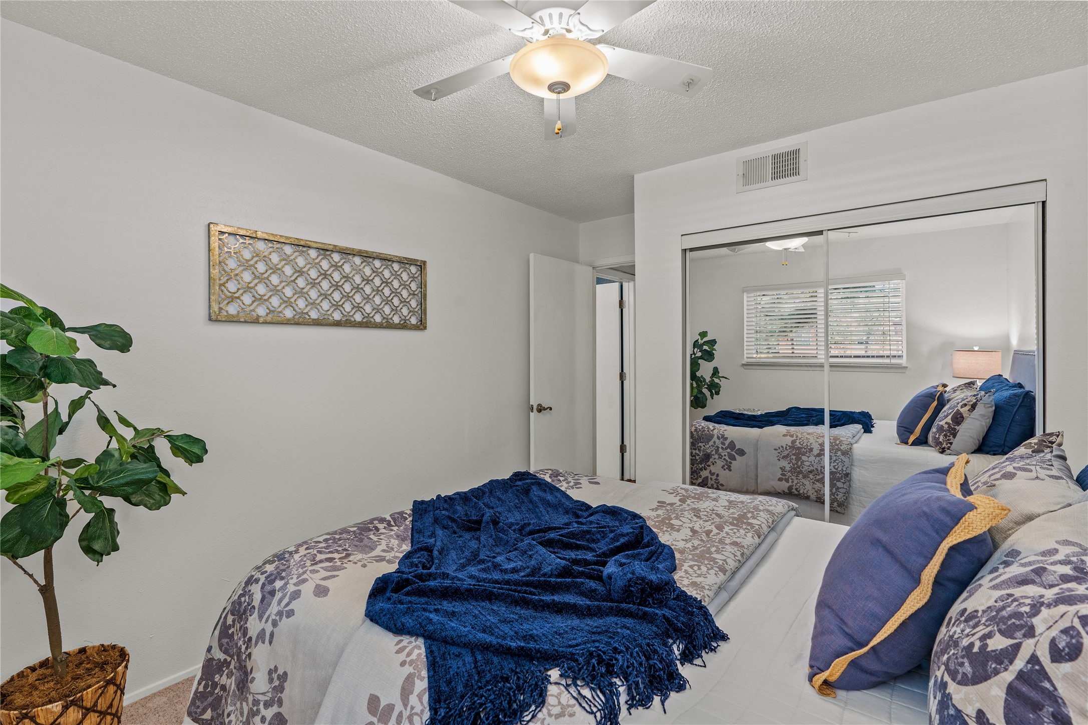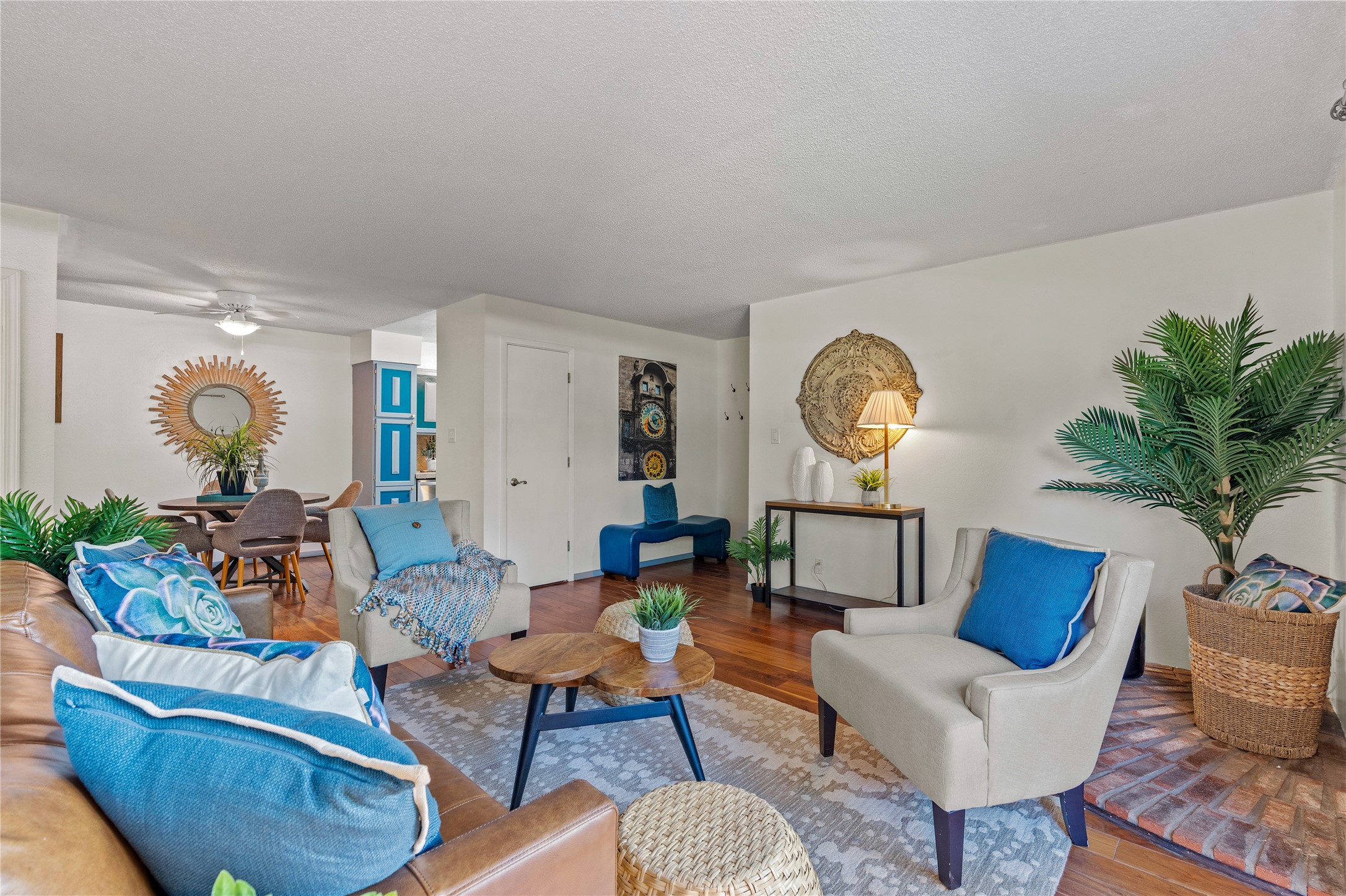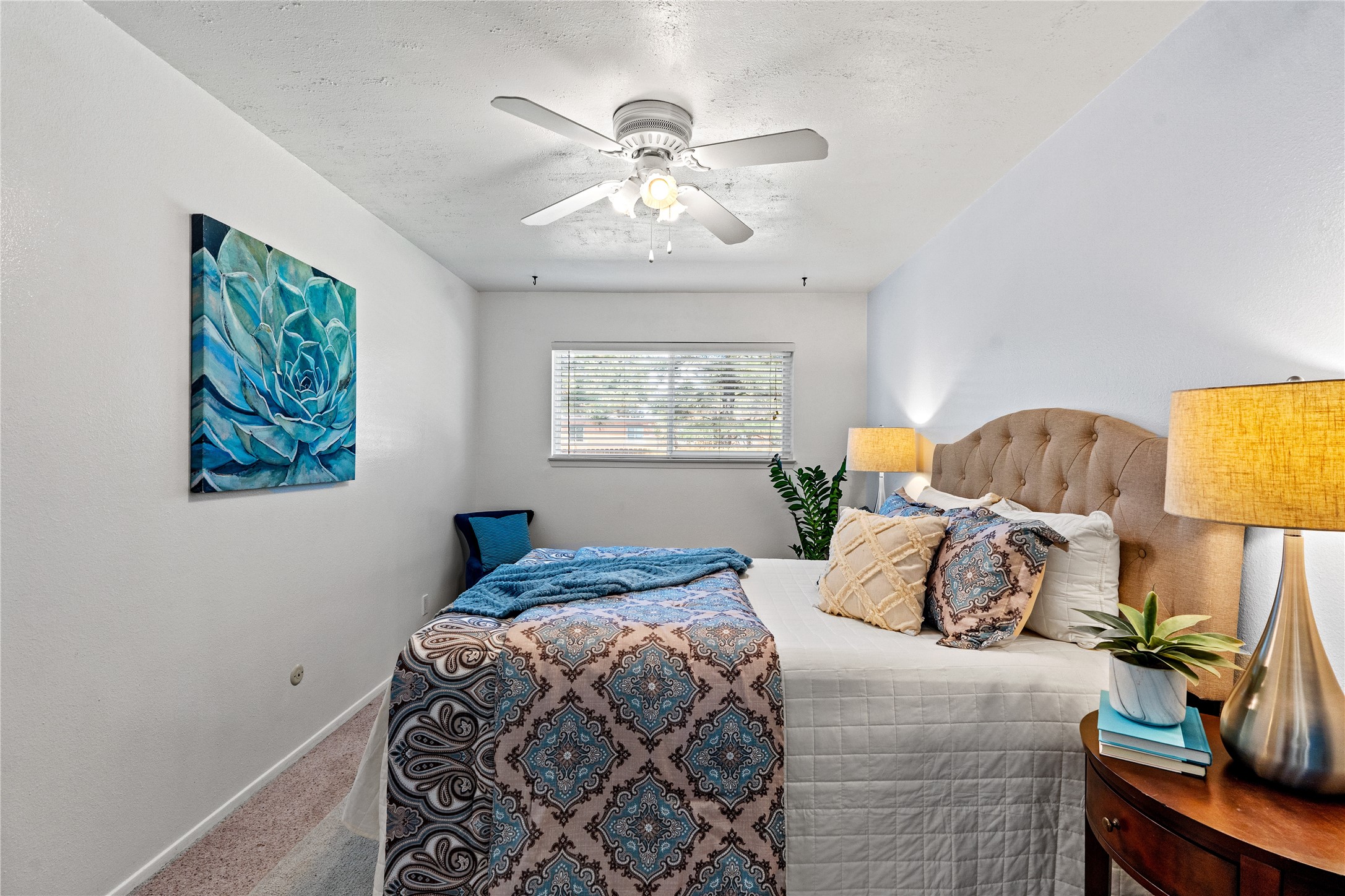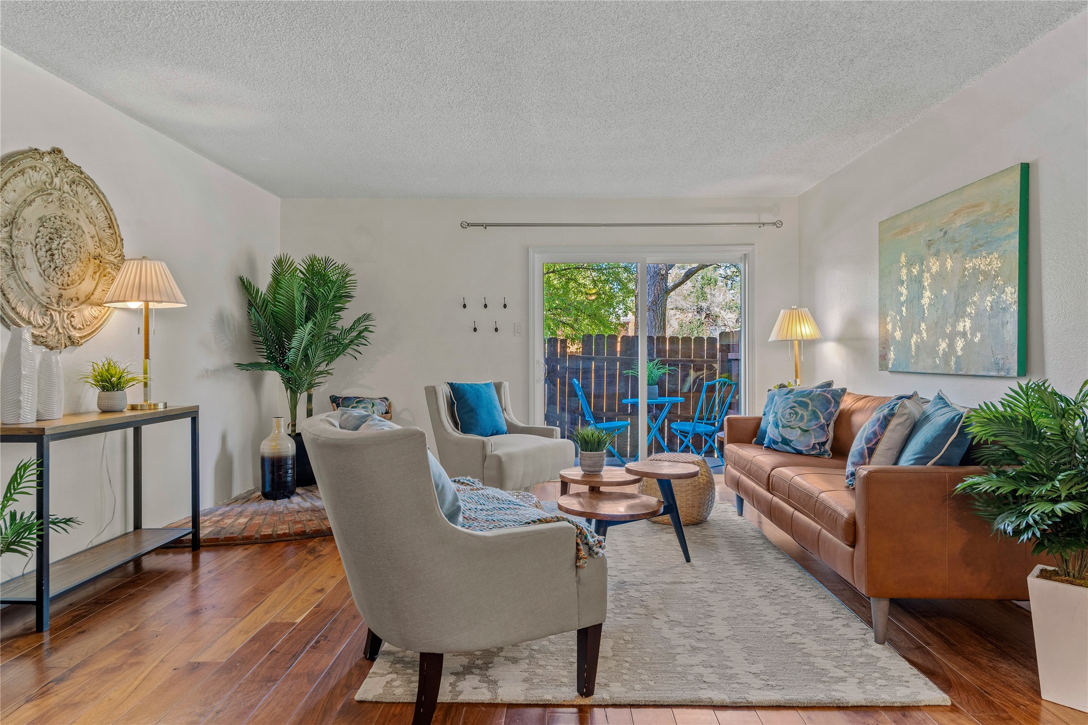 Welcome to 3055 Trinity Dr #416! This partially updated 2-bedroom, 2-bathroom condo with AC, offers modern touches, a functional layout, and the convenience of first-floor living in Trinity Village. Step inside to find beautiful updated flooring that flows throughout the living room, dining area and hall. The spacious living room features an updated glass slider that opens to a private fenced in porch. Just beyond the gate, enjoy a grassy common area, the perfect spot to relax and soak up the beautiful Los Alamos days. The kitchen features abundant cabinetry, and flows seamlessly into a dedicated dining area, making it ideal for both entertaining and everyday living. This condo offers two well-sized bedrooms with updated windows. The primary suite includes an updated en-suite bathroom and a large walk-in closet, while the guest bedroom is complemented by a full bath featuring a refreshed vanity with updated countertops. For convenience, there is an additional storage closet on the first level by the carport. Living at Trinity Village means low-maintenance convenience, with downtown Los Alamos, LANL, Ashley Pond, Mesa Public Library, restaurants, and shops all just minutes away. Offered as a fantastic option for full-time living or investment, this condo combines comfort, convenience, and location. Staging furniture is also available for purchase if desired.