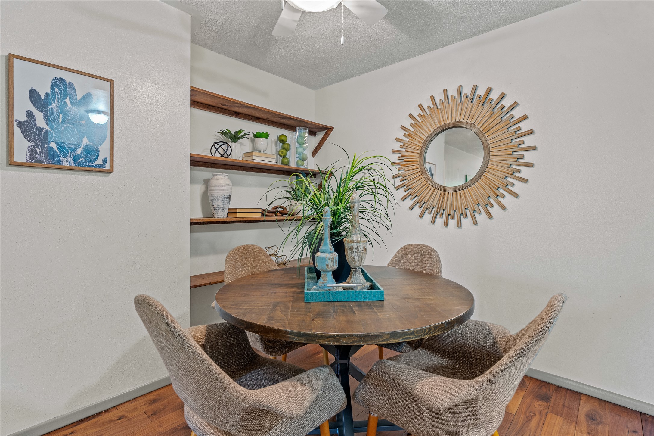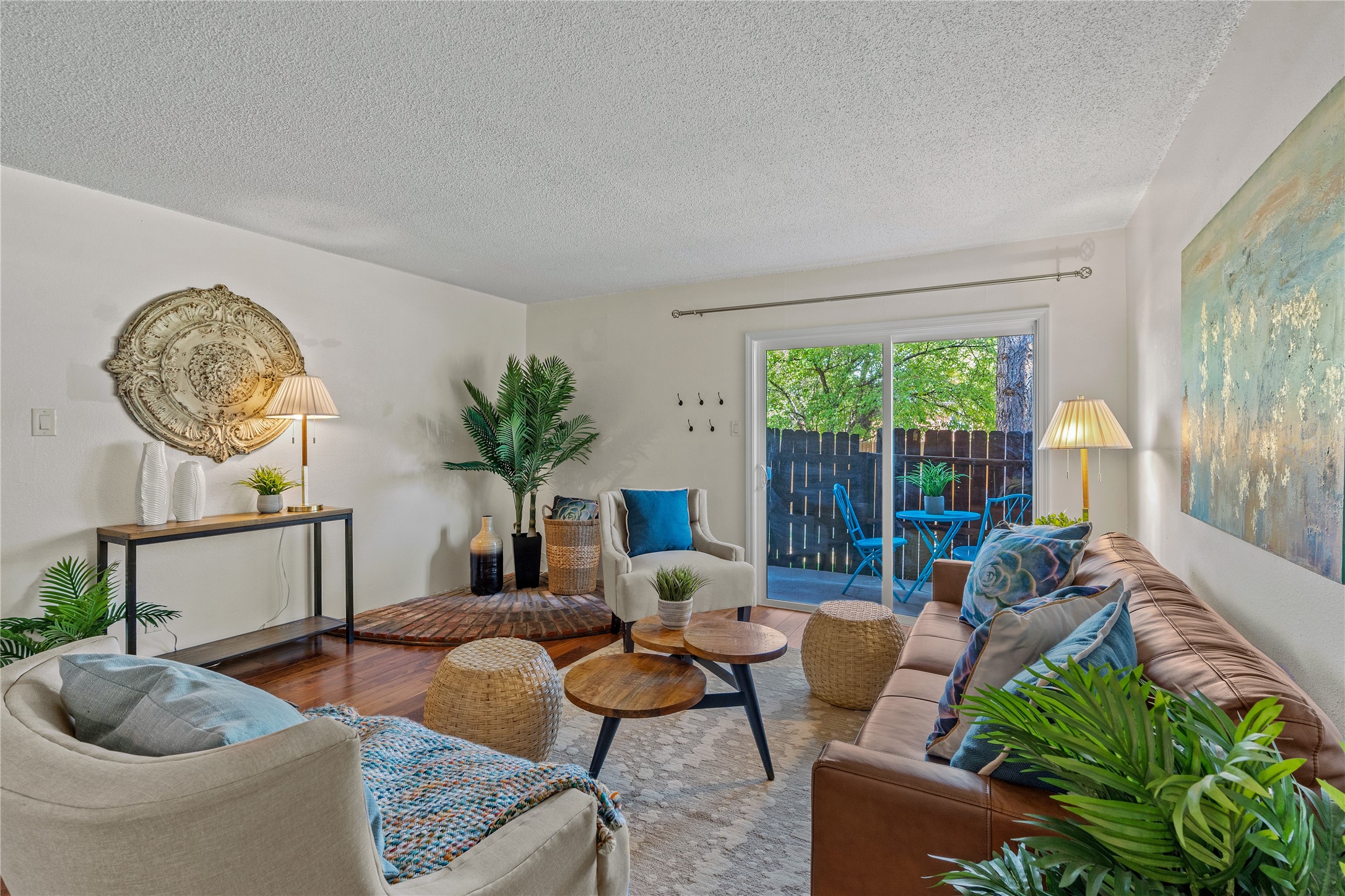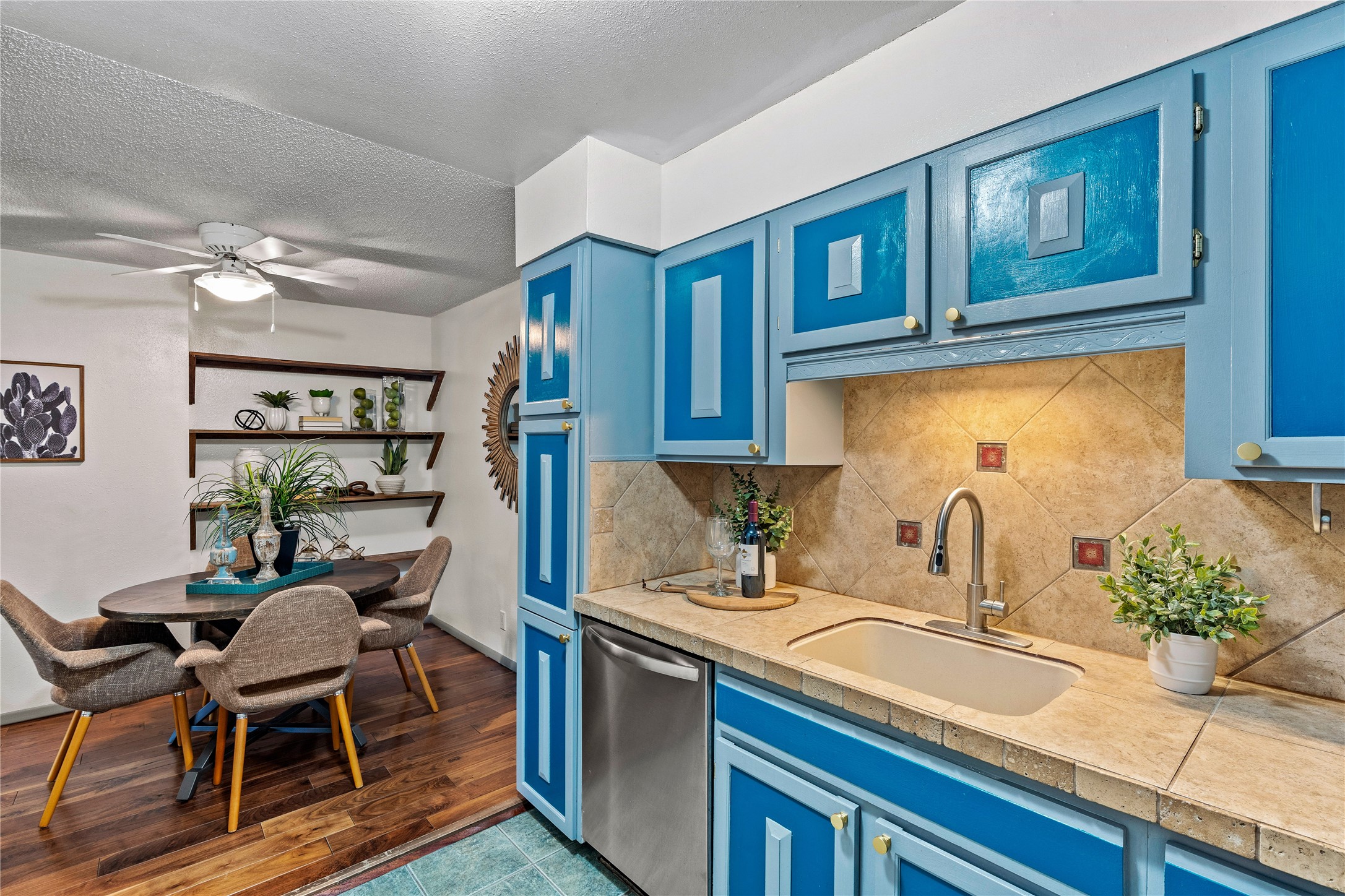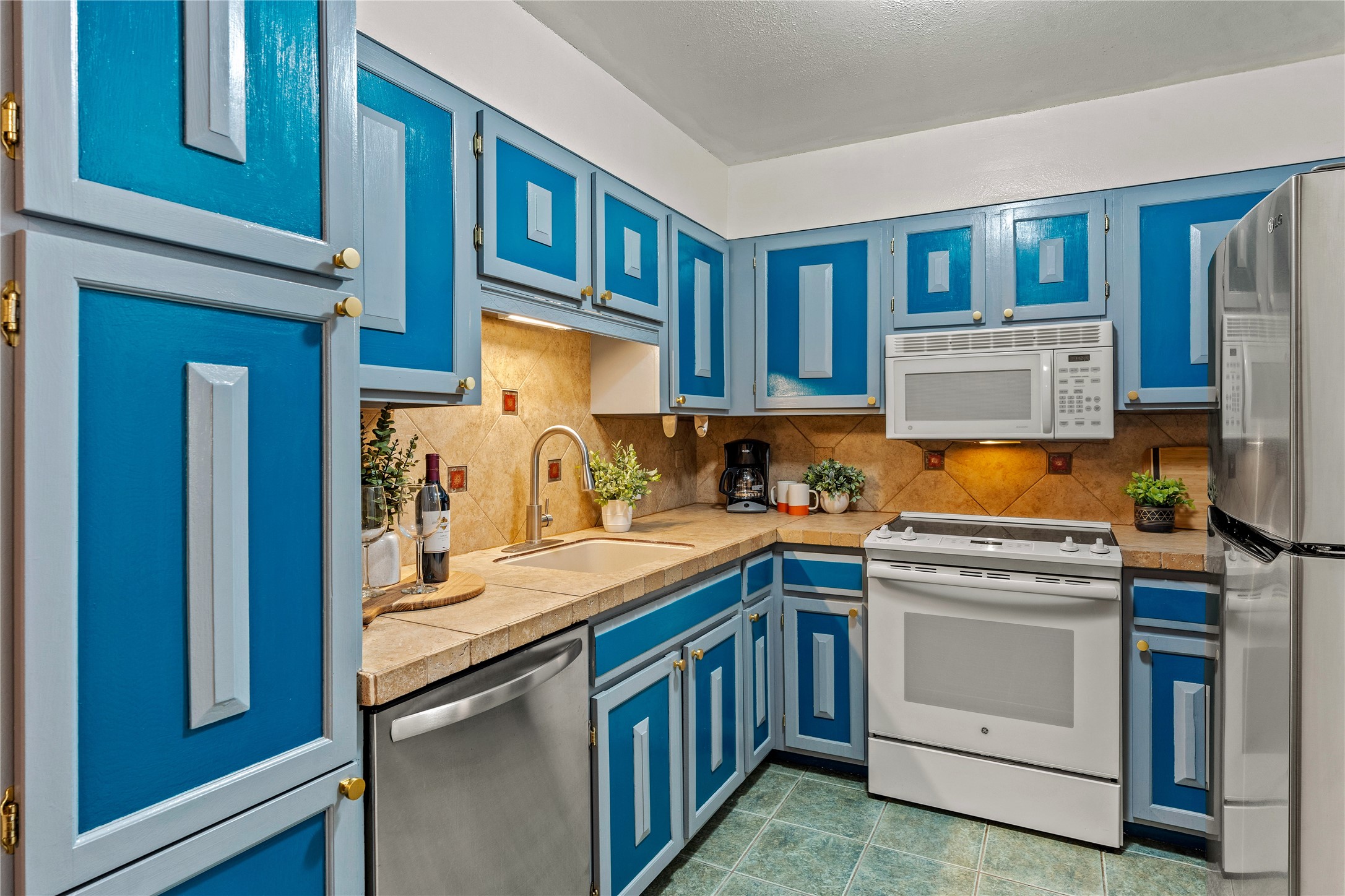 Welcome to 3055 Trinity Dr #416! This partially updated 2-bedroom, 2-bathroom condo with AC, offers modern touches, a functional layout, and the convenience of first-floor living in Trinity Village. Step inside to find beautiful updated flooring that flows throughout the living room, dining area and hall. The spacious living room features an updated glass slider that opens to a private fenced in porch. Just beyond the gate, enjoy a grassy common area, the perfect spot to relax and soak up the beautiful Los Alamos days. The kitchen features abundant cabinetry, and flows seamlessly into a dedicated dining area, making it ideal for both entertaining and everyday living. This condo offers two well-sized bedrooms with updated windows. The primary suite includes an updated en-suite bathroom and a large walk-in closet, while the guest bedroom is complemented by a full bath featuring a refreshed vanity with updated countertops. For convenience, there is an additional storage closet on the first level by the carport. Living at Trinity Village means low-maintenance convenience, with downtown Los Alamos, LANL, Ashley Pond, Mesa Public Library, restaurants, and shops all just minutes away. Offered as a fantastic option for full-time living or investment, this condo combines comfort, convenience, and location. Staging furniture is also available for purchase if desired.