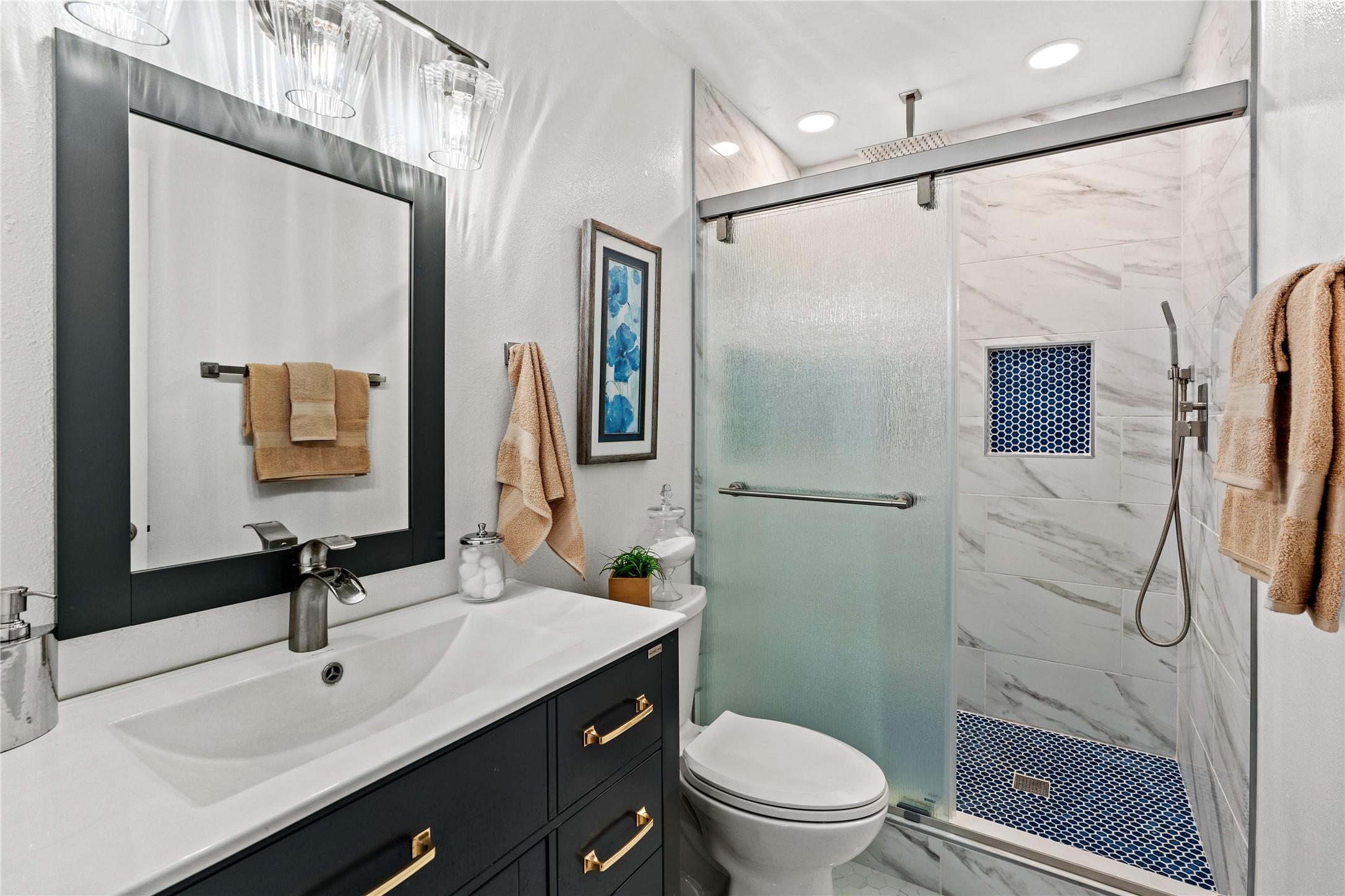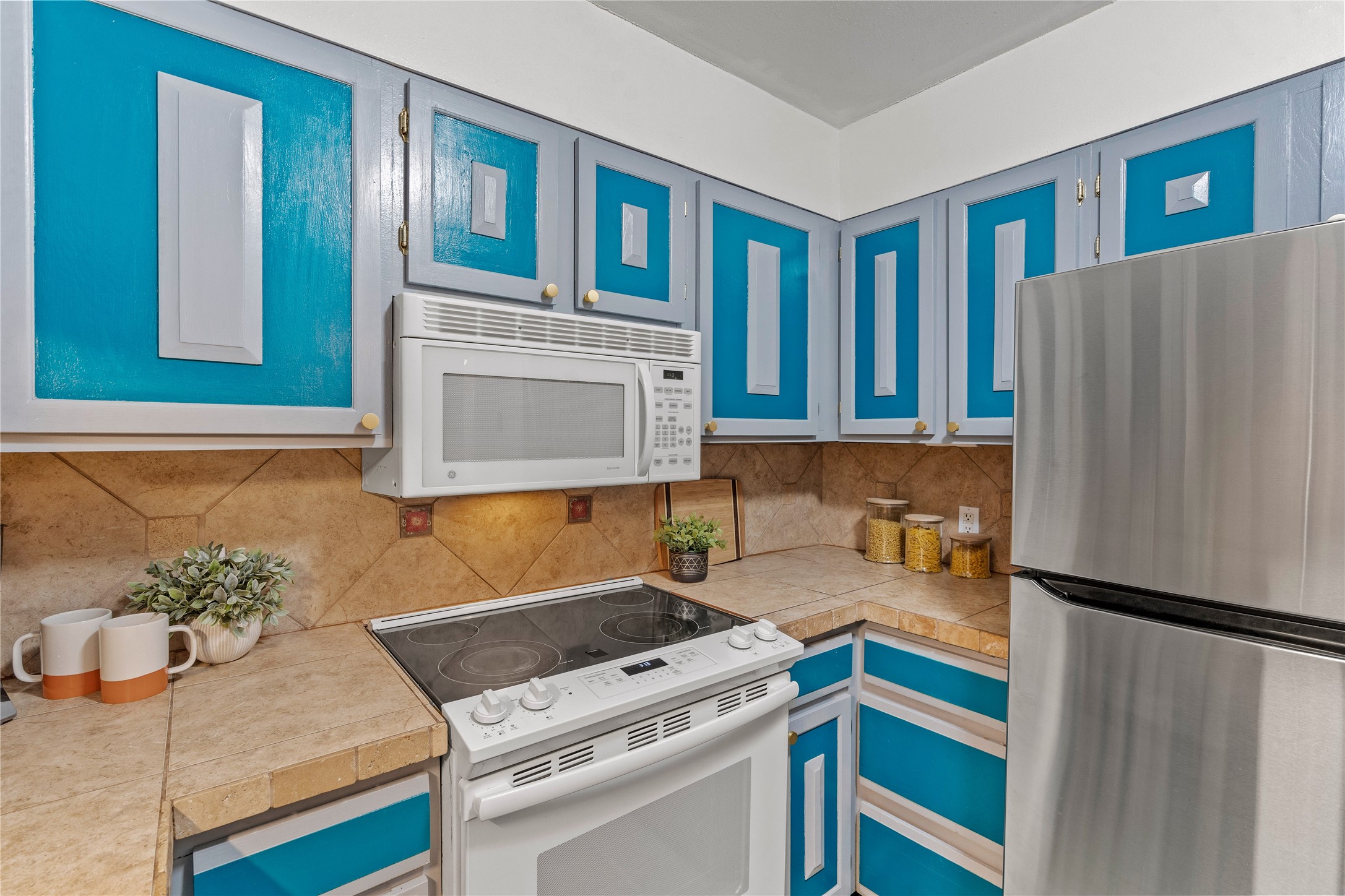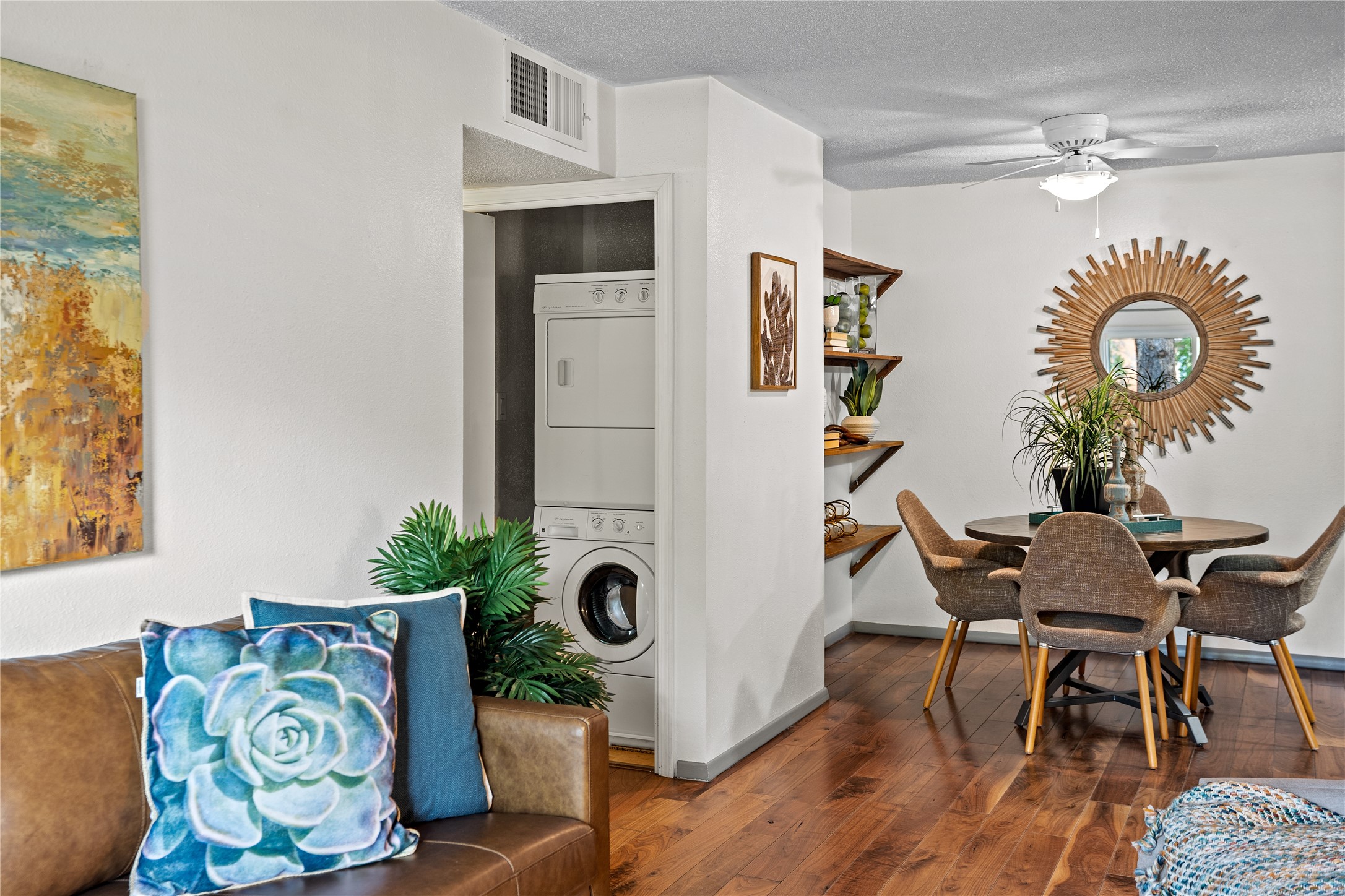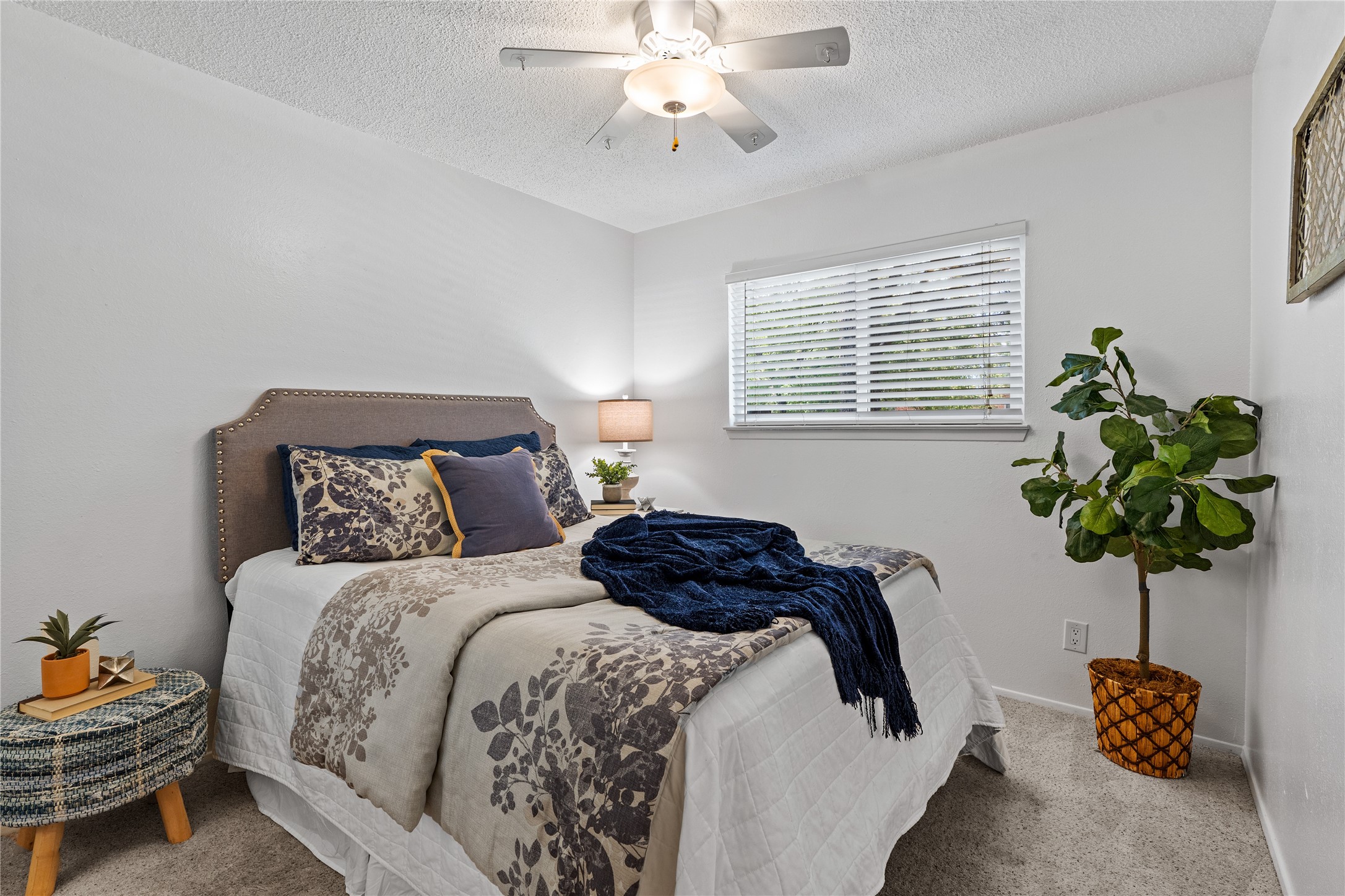 Welcome to 3055 Trinity Dr #416! This partially updated 2-bedroom, 2-bathroom condo with AC, offers modern touches, a functional layout, and the convenience of first-floor living in Trinity Village. Step inside to find beautiful updated flooring that flows throughout the living room, dining area and hall. The spacious living room features an updated glass slider that opens to a private fenced in porch. Just beyond the gate, enjoy a grassy common area, the perfect spot to relax and soak up the beautiful Los Alamos days. The kitchen features abundant cabinetry, and flows seamlessly into a dedicated dining area, making it ideal for both entertaining and everyday living. This condo offers two well-sized bedrooms with updated windows. The primary suite includes an updated en-suite bathroom and a large walk-in closet, while the guest bedroom is complemented by a full bath featuring a refreshed vanity with updated countertops. For convenience, there is an additional storage closet on the first level by the carport. Living at Trinity Village means low-maintenance convenience, with downtown Los Alamos, LANL, Ashley Pond, Mesa Public Library, restaurants, and shops all just minutes away. Offered as a fantastic option for full-time living or investment, this condo combines comfort, convenience, and location. Staging furniture is also available for purchase if desired.