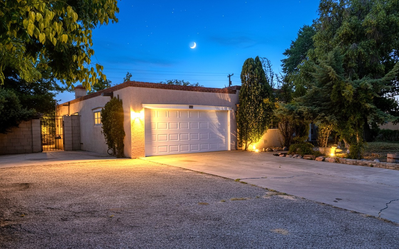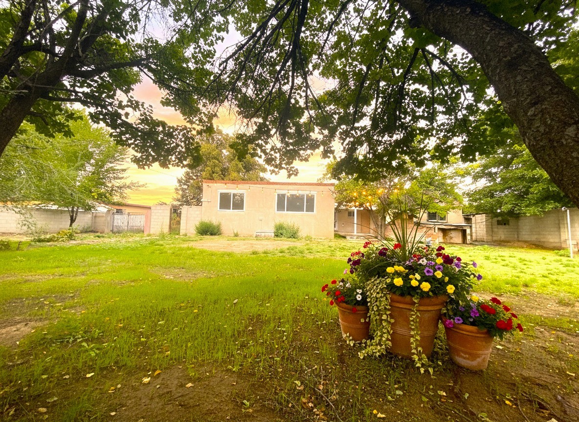 Welcome to this stunningly remodeled Colonial-style home nestled in the heart of Northern New Mexico! Beautifully remodeled with a Separate Studio on Acre begins your journey to your new home! Impress all your guests as you enter the updated modern kitchen with beautiful floating shelves and chef style appliances. Each bedroom features spacious layouts, designer ceiling fans, large picture windows and beautiful hardwood flooring! This property offers the perfect blend of classic charm and contemporary upgrades. Step inside to discover a stunning and beautifully updated interior with attention to detail throughout! Gleaming stainless steel finishes and lavishly designed fixtures compliment the light and natural wood flooring. This light-filled layout is ideal for both relaxation and entertaining. The open-concept kitchen flows seamlessly into the spacious dining room and main living areas, making it the heart of the home. This fabulous property showcases a large backyard offering plenty of space for gardening, gatherings, or even future additions. Whether you're sipping coffee on the porch or hosting a barbecue under the New Mexico sky, this phenomonal home can be your own private oasis.