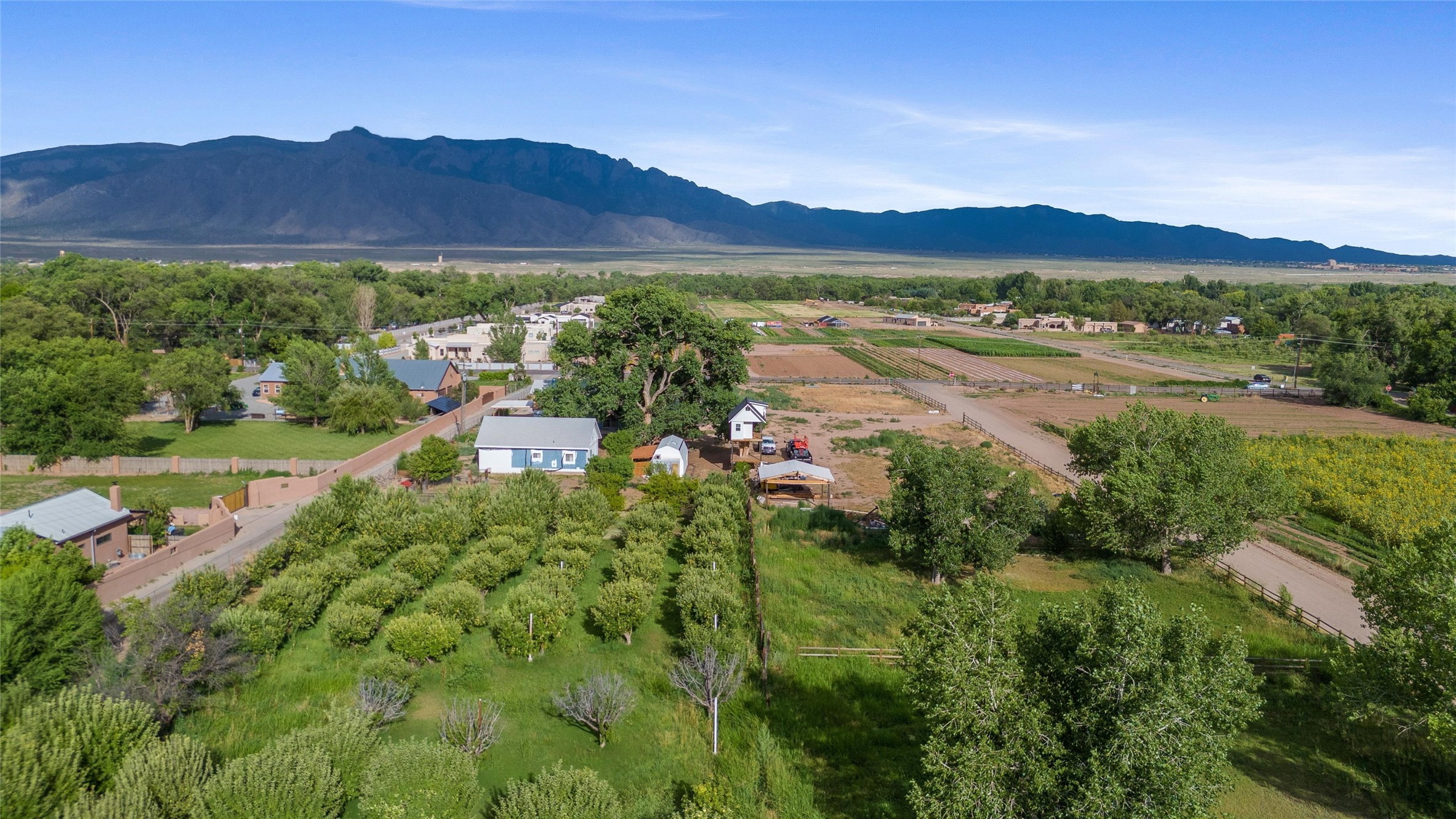 Large Two Parcel Sale! Parcel 1: Main House and Lot (3.91 Acres) Discover a unique opportunity in the heart of Corrales, with this property featuring a charming main house brimming with potential. The main level features a few updates with ample room for personalization, allowing you to create your dream home. An unfinished upstairs awaits your creative vision, perfect for customizing to your taste. The 722-square-foot finished basement provides additional living space, ideal for a home theater, office, or recreation area. Outside, a one-of-a-kind, three-level tree house--potentially the tallest and most spectacular in Corrales--adds a whimsical touch for family fun or unique entertaining. The north side of the lot boasts an orchard with over 300 fruit trees, including Large Two Parcel Sale! Parcel 1: Main House and Lot (3.91 Acres) Discover a unique opportunity in the heart of Corrales, with this property featuring a charming main house brimming with potential. The main level features a few updates with ample room for personalization, allowing you to create your dream home. An unfinished upstairs awaits your creative vision, perfect for customizing to your taste. The 722-square-foot finished basement provides additional living space, ideal for a home theater, office, or recreation area. Outside, a one-of-a-kind, three-level tree house--potentially the tallest and most spectacular in Corrales--adds a whimsical touch for family fun or unique entertaining. The north side of the lot boasts an orchard with over 300 fruit trees, includingApple, Peach, Pear, and Apricot, offering a bountiful harvest and serene rural charm. Guest House: A move-in-ready, 1,033-square-foot guest house with 2 bedrooms, fully equipped kitchen, and a full bathroom, perfect for visitors, extended family, or rental income. Parcel 2: Agricultural Field (3.7136 Acres) Adjacent to the main property, this expansive agricultural field is a rare gem in Corrales.