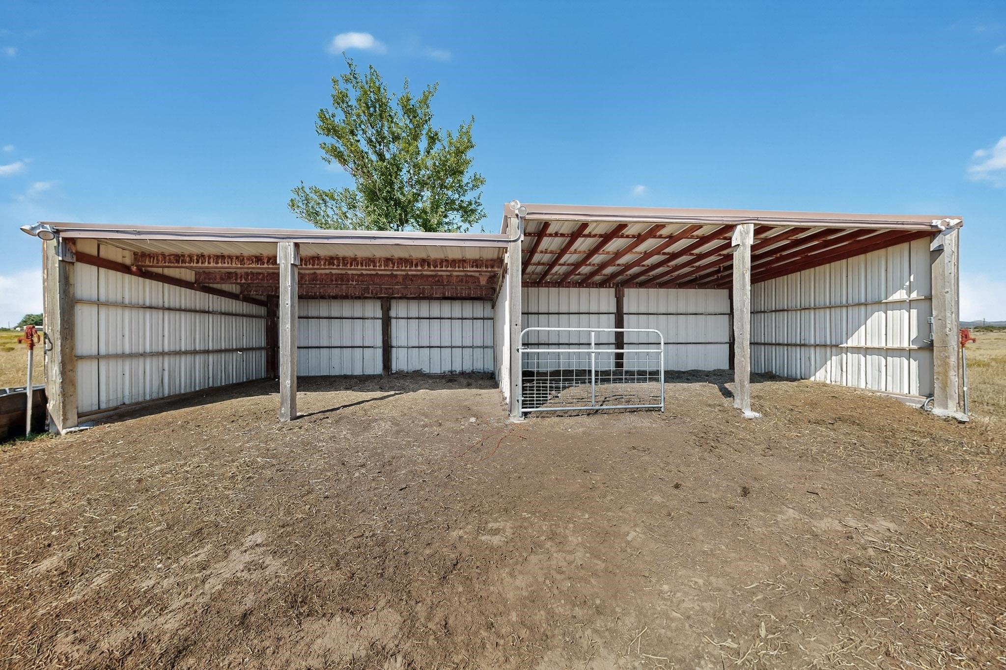 This true equine estate has finally come on the market so don't miss your opportunity to own this amazing property. 38.8 acres fully fenced and cross fenced! 3051 heated sqft of main home and guest suite. This estate home boasts hardwood floors throughout, with custom touches, large spacious open floor plan with great room and kitchen for entertaining, primary bedroom suite with wall to wall closets, double vanities, and exterior access. 3bed 2bath main home, 2 living areas, gourmet stainless steel kitchen, laundry room with storage. There are so many built in storage and closets the possibilities are endless on how you use it. Oversized finished 2 car garage with built in storage. 4 stall barn with finished tack room, and 1 bedroom, 1 bath, kitchenette, walk in closet: guest suite.Not only are you going to love this estate, but your animals will love it too! Full sized arena for your use and three cross fenced pastures all with barn loafing sheds. Water has been run throughout the property to the barns for the convenience of keeping the critters taken care of. The approx. 2300 sqft barn has pull through capability, a finished tack room, 4 walk out stalls, hay storage, rubber floor mats, and a 363 sqft guest living quarters! A large equine estate like this doesn't come up for sale in the East Mountains/Southern Santa Fe County area too often, and none are as nice and custom as this property. If you are needing a place to kick up your boots, let your critters stretch their legs, and for yourself to relax from dawn to dusk, you have found your 38.8 acre slice of paradise with this equine estate.