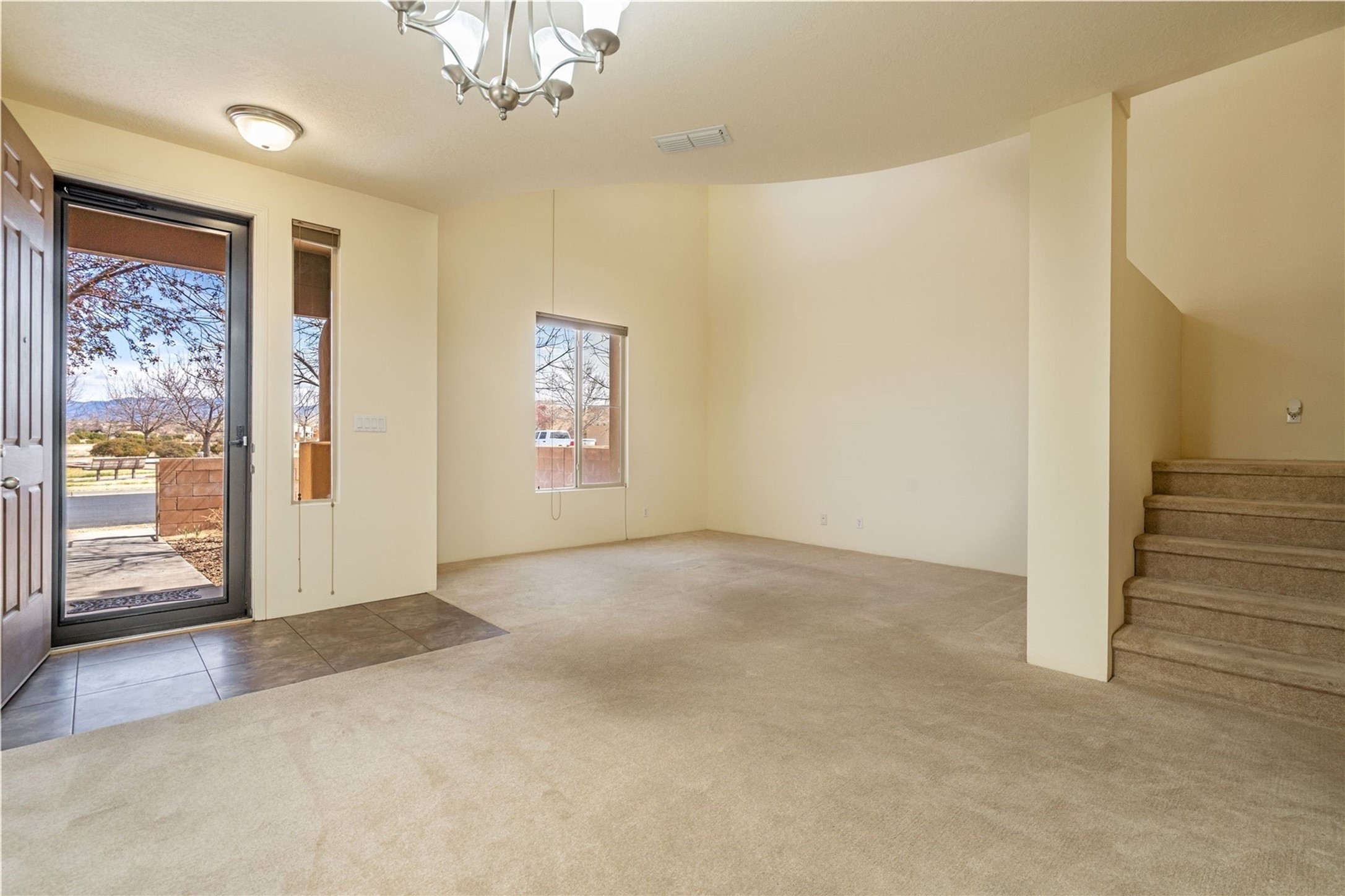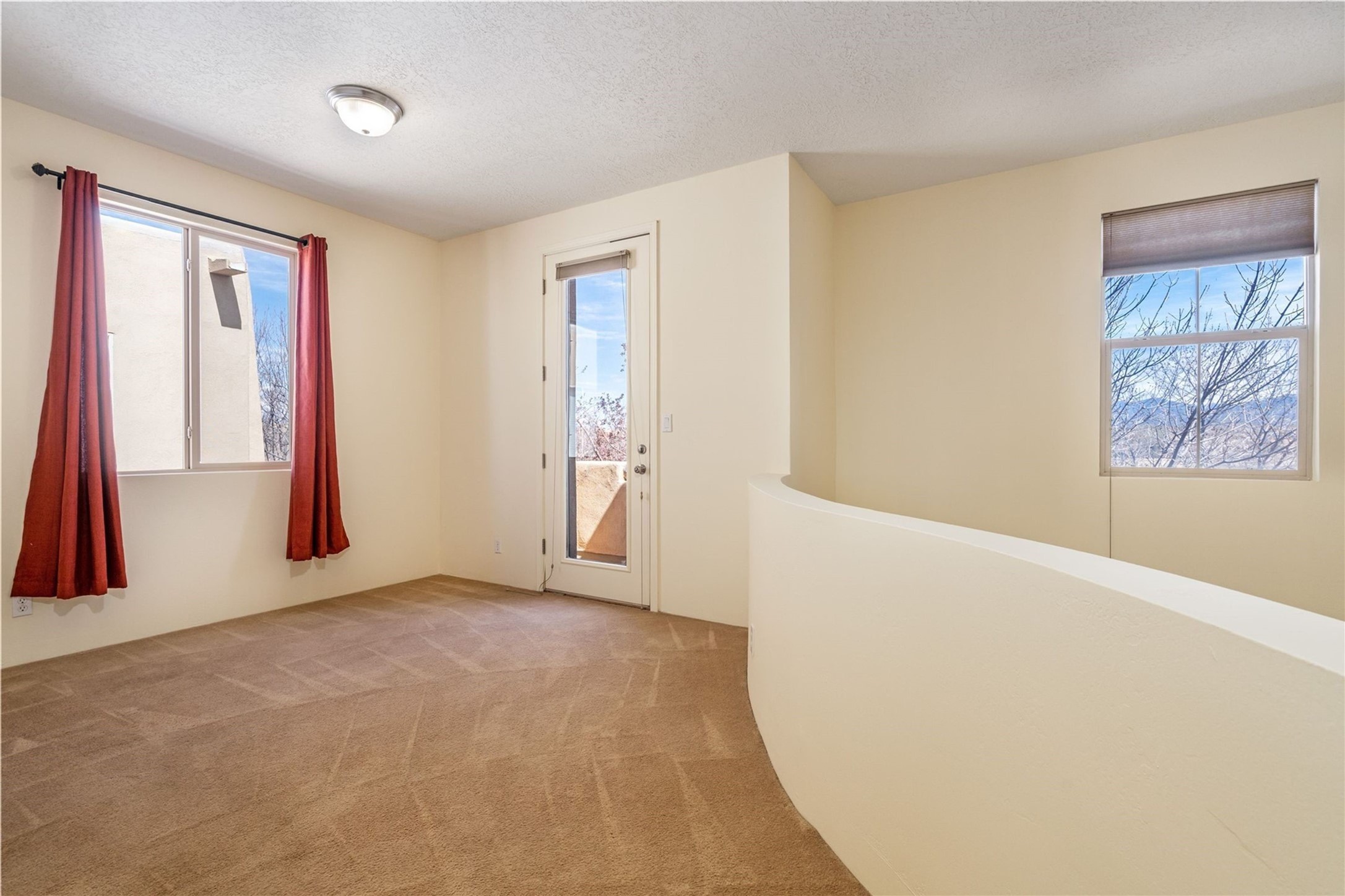 Lovely corner townhome in highly sought-after neighborhood of Rancho Viejo! The property features a light and bright open floor plan, spacious great room, high ceilings and granite kitchen countertops. Upstairs are two balconies with views of mountains, sunrise and sunset. Dining area opens to the great room and the front of the home has a gated courtyard that faces to the open space to one of the neighborhoods welcoming parks. This beautiful home features 2 bedrooms, 2 bathrooms, a downstairs half bath for convenience and an attached 2 car garage. The main bedroom has private deck with mountain views, walk in closet and updated bathroom with a rainfall shower head. In addition to the 2 bedrooms there is an open loft/office area that leads to the second deck with mountain sunrise views. Additional upgrades include newer washer/dryer, reverse osmosis system in the kitchen, water heater replaced in 2022, drip irrigation in the front courtyard. Quiet and serene location with access to the miles of paved trails the community has to offer. All while being a short distance to shopping centers, restaurants and 599/I-25. Come see this move in ready Rancho Viejo gem today!