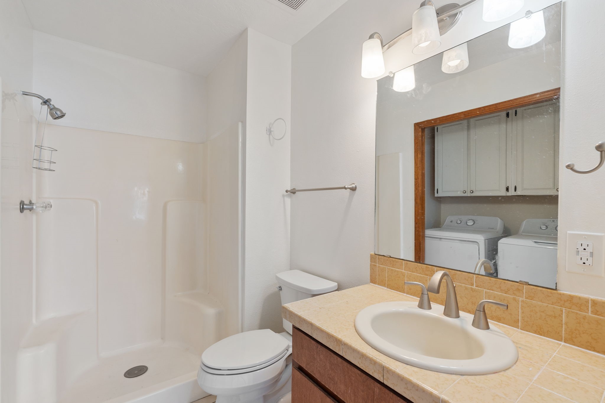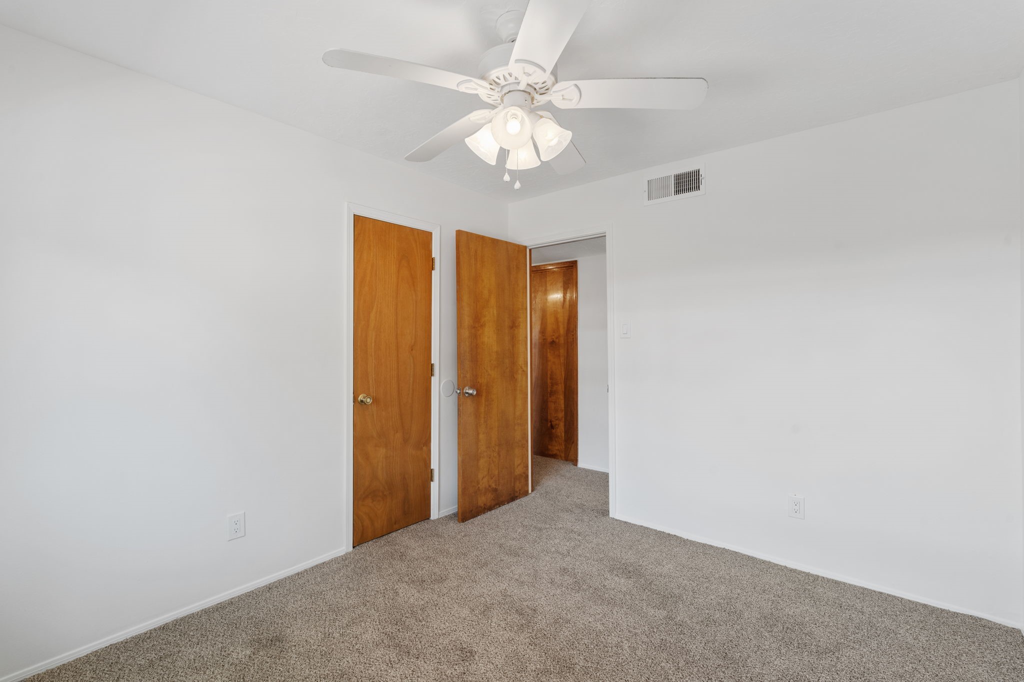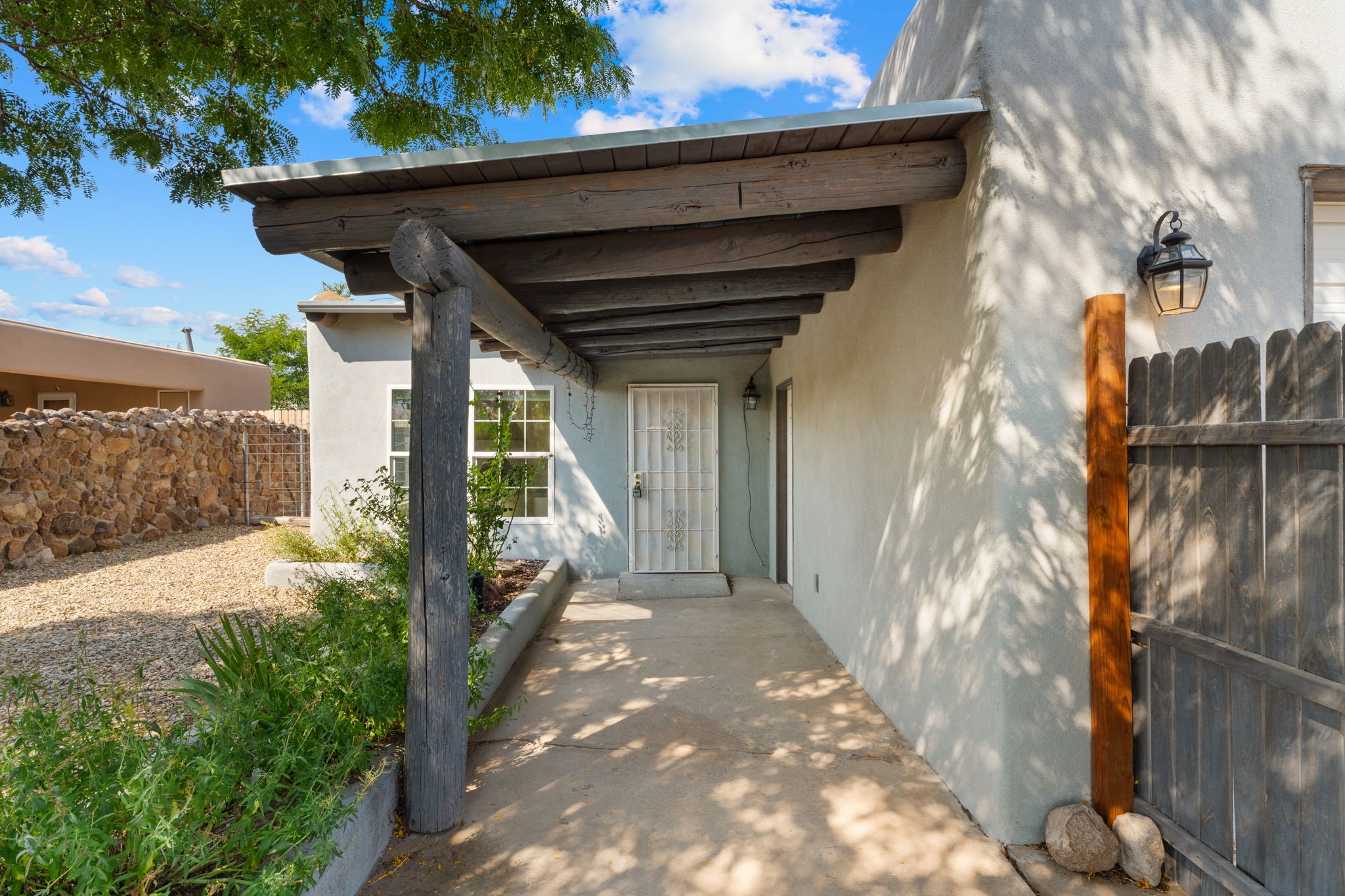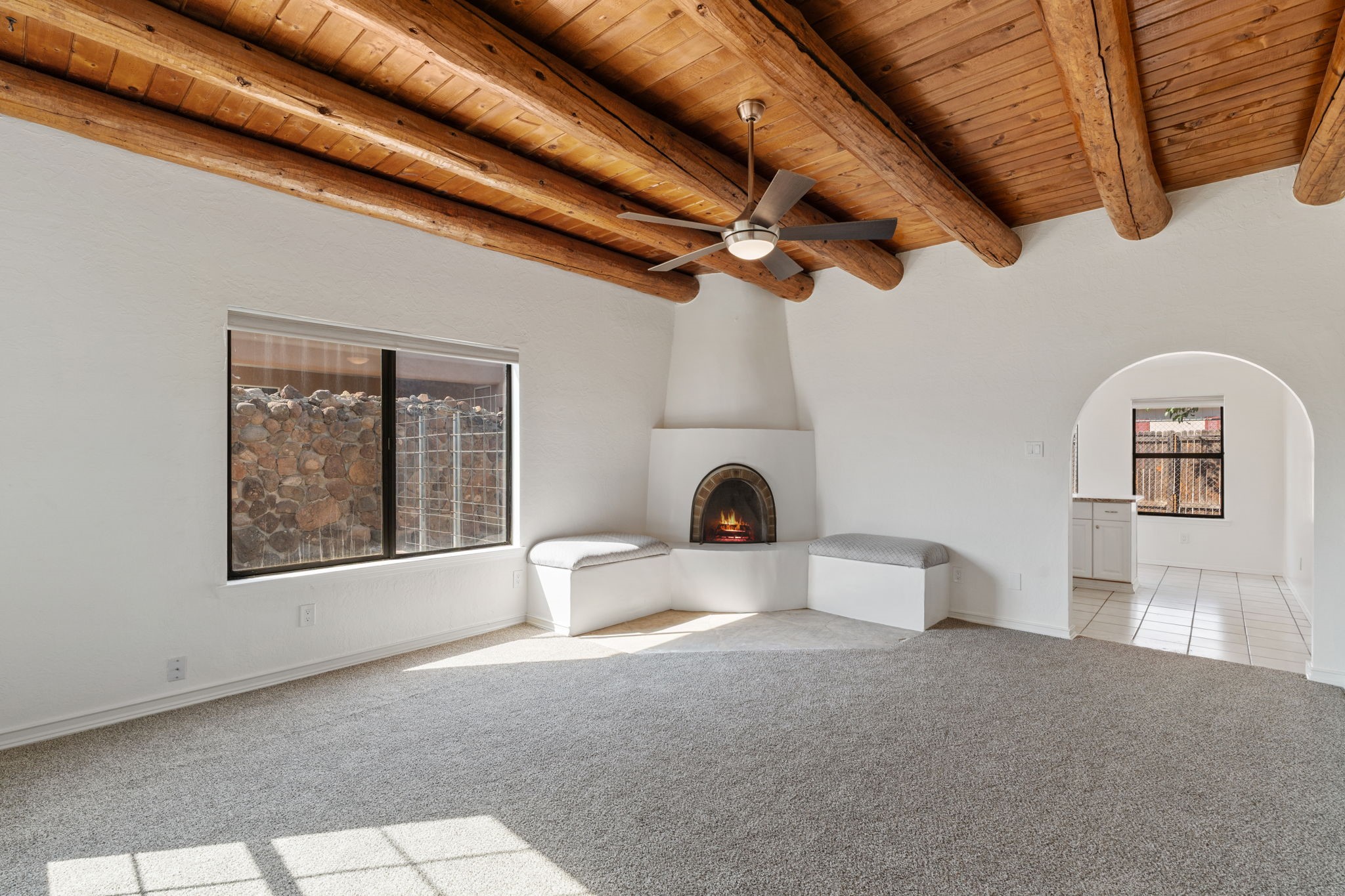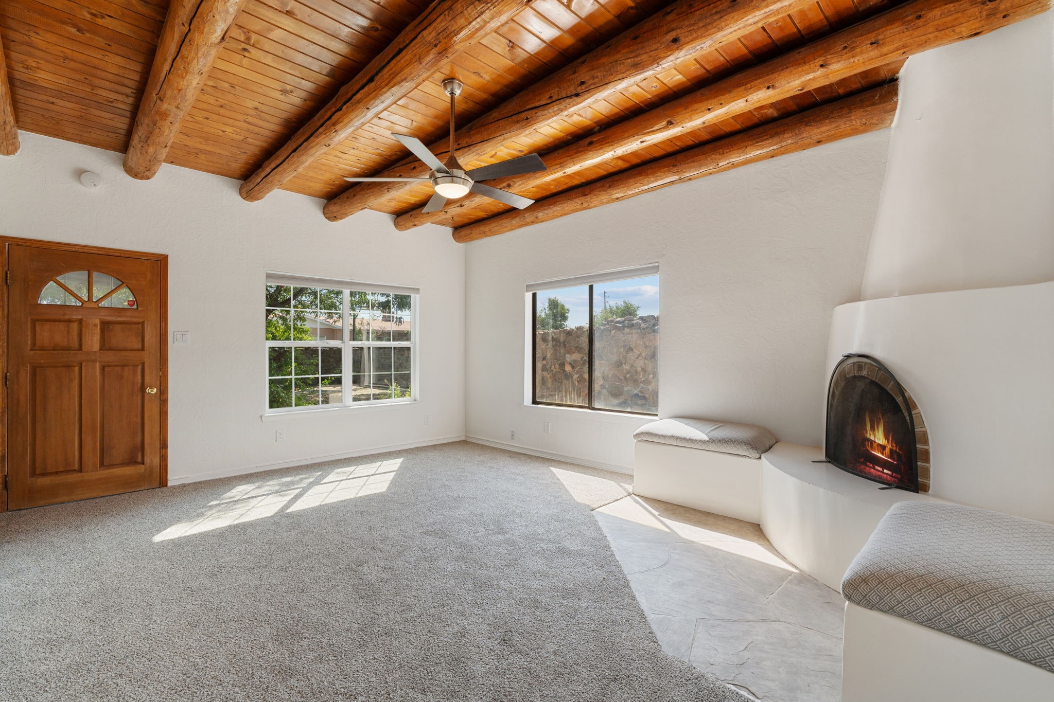 Welcome to this beautifully maintained charming home. There is new carpet and paint. This is a classic pueblo style home, single level with a 2-car garage. The main living area has a beautiful wood burning fireplace, the kitchen is spacious with a kitchen island and access to the backyard. This home is perfect for the person who wants the Santa Fe experience and easy living. This property has quick access to 599 bypass and I-25. The yards are landscaped and will be a delight year-round. The yard is walled and there is plenty of room for the family pet.