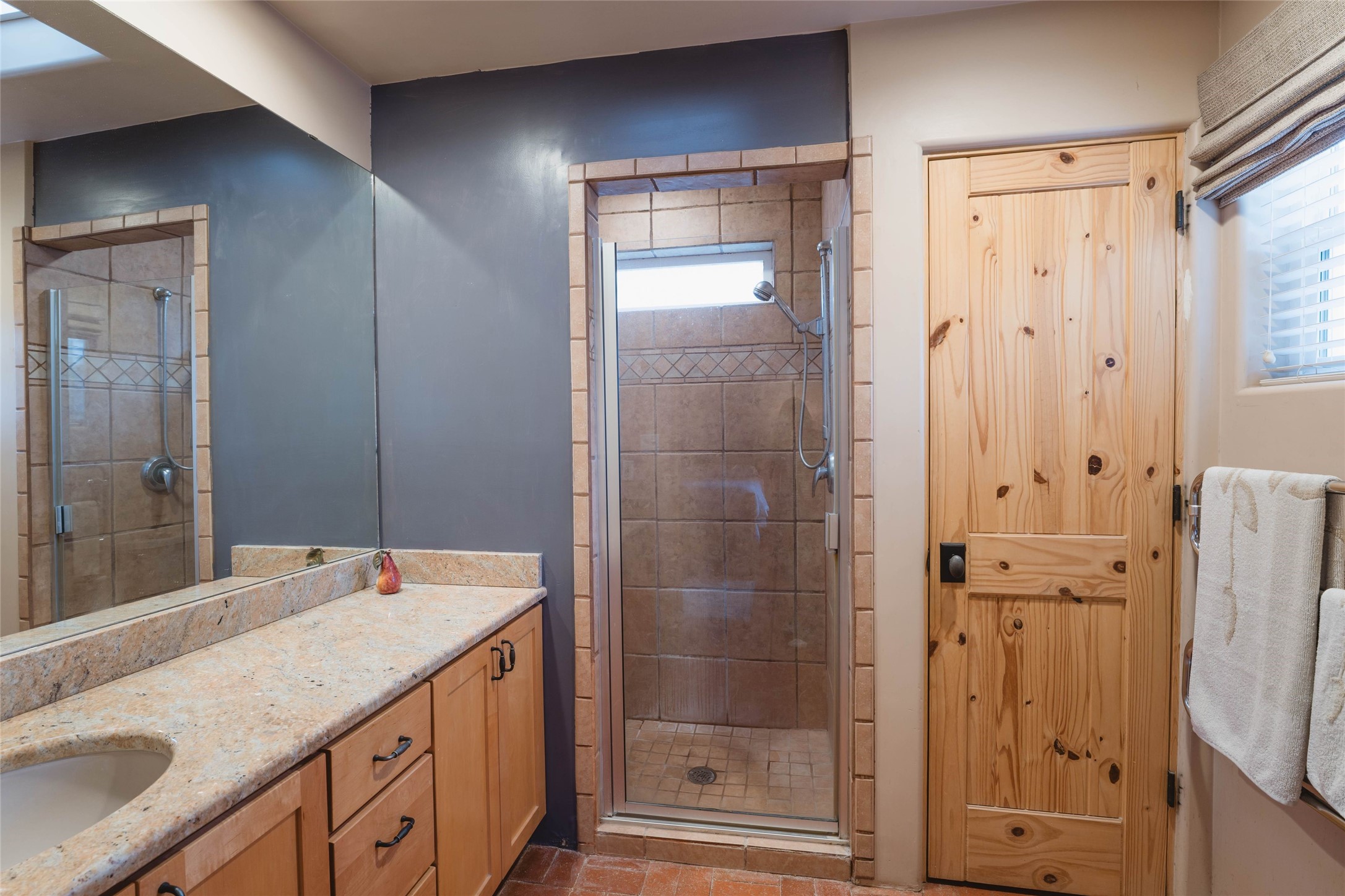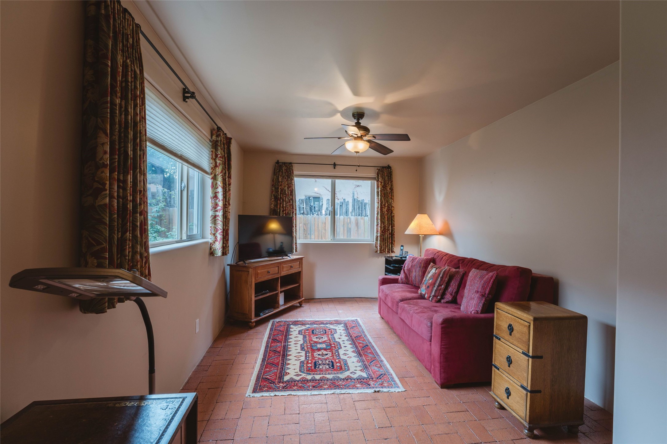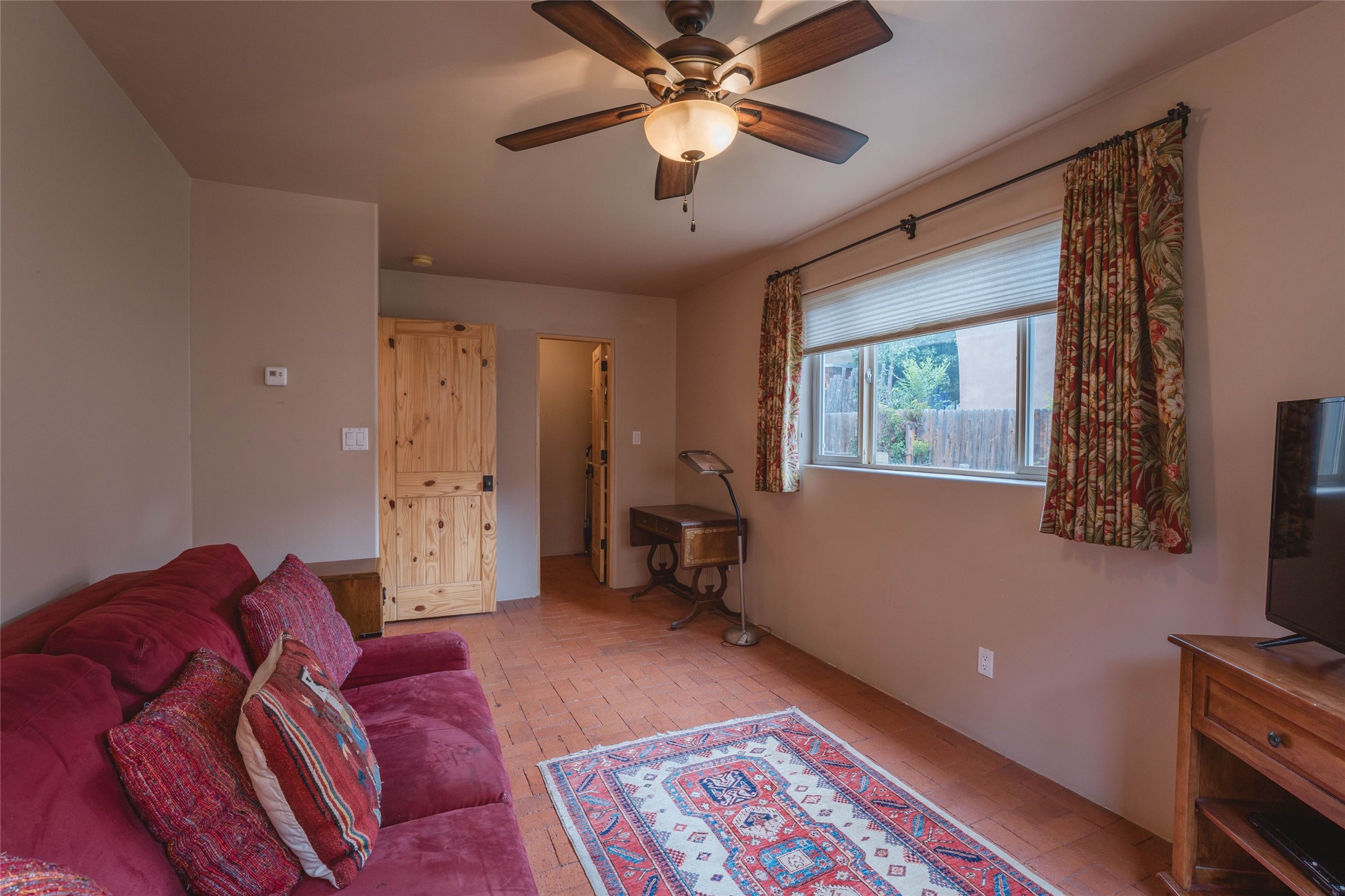 A rare opportunity in one of Santa Fe's historic areas: a newer home, built in 2004, offering modern convenience in one of the city's most desirable neighborhoods. Situated at 109 Candelario Street, this 3-bedroom, 2-bath residence spans 1,472 square feet and blends contemporary living with classic Santa Fe style. Inside, soaring viga ceilings, brick floors, and a kiva fireplace define the open living space. The kitchen features granite countertops, ample cabinetry, stainless steel appliances, and a spacious island. Radiant in-floor heating and a mini-split cooling system ensure year-round comfort. The primary suite offers privacy and an en-suite bath with a walk-in shower. Additional bedrooms are versatile, perfect for guests, a home office, or a creative space. Both bathrooms showcase artisanal tile details that reflect Santa Fe's character. Outdoors, enjoy a private walled courtyard with garden beds, brick patios, and areas for entertaining or relaxing. The one-car garage offers secure parking or can serve as a studio or workshop, conveniently located close to downtown. All of this is located just minutes from the Plaza, Canyon Road, and Santa Fe's galleries, restaurants, and cultural attractions. Opportunities like this are rare newer construction in a historic location with modern systems and flexible living space. Schedule your private showing today.