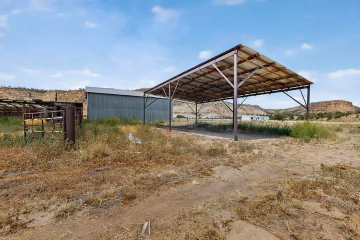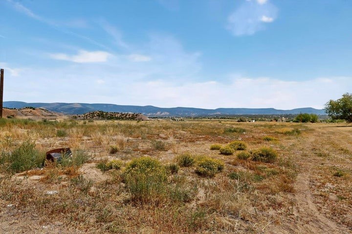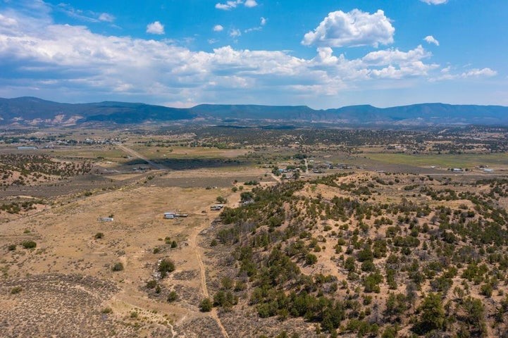 This versatile 81 acre property nestled in a peaceful canyon surrounded by grand mesas, abuts a 'hike-in' area of the Santa Fe National Forest to the west and BLM land to the north! Plenty of potential for horses, hunting, livestock and more. Watch Elk graze right outside your front porch while enjoying magnificent sunrises and sunsets. There is source of gravel and petrified wood is prevalent. Outbuildings include a shop/garage/storage 20'W x 40'D x 12'H (approx),a detached two level cellar/storage building, a tack room, a horse corral plus shaded area and more. The house has a propane line running to it.