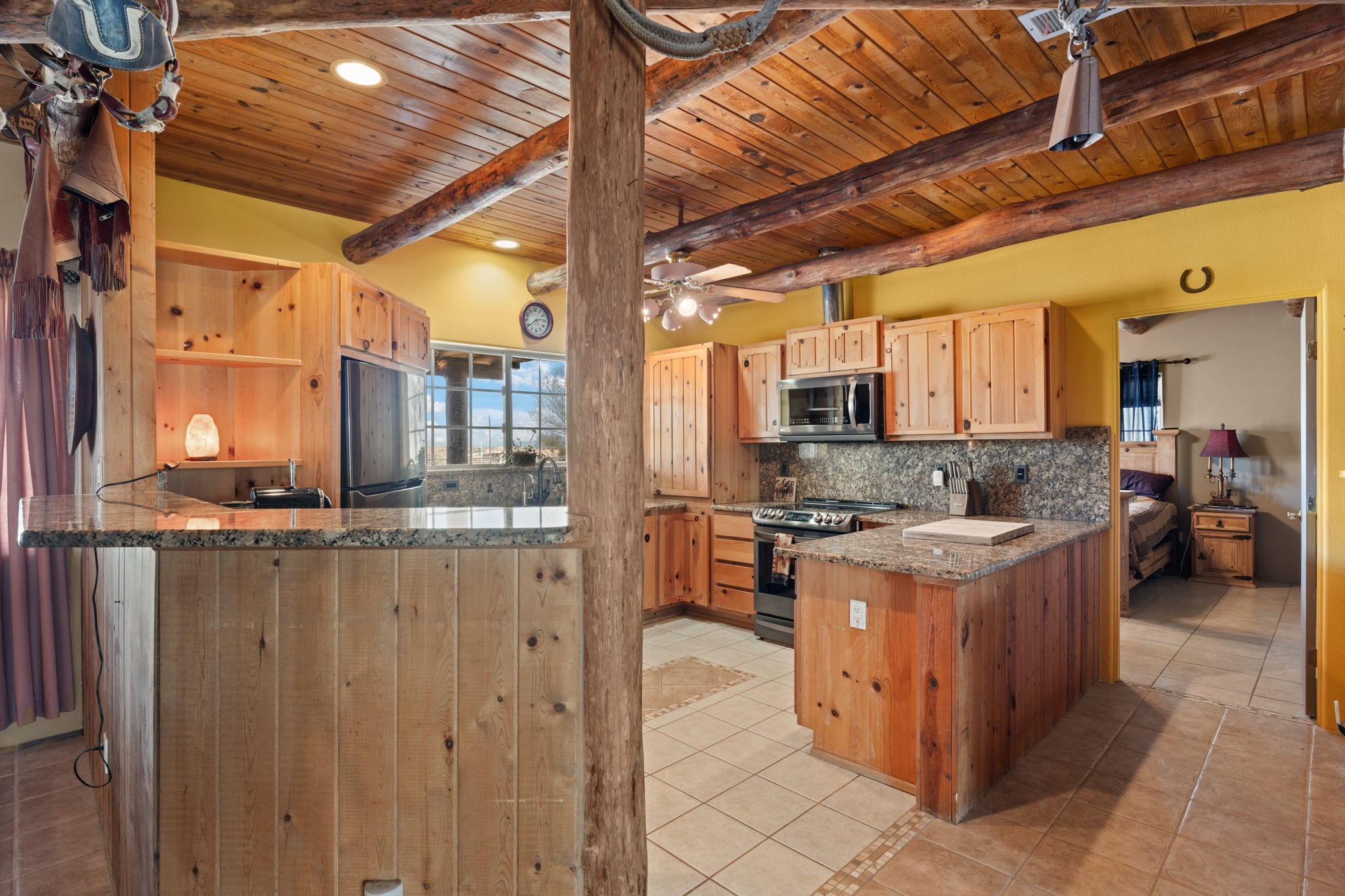 Equestrian Dream Property. This stunning 4-bed, 2-bath southwestern ranch home on 5.1 fully fenced acres with an indoor arena is a horse lover's Desire! The spacious kitchen features stainless steel appliances, granite countertops, and vigas on the ceiling. The cozy living room has tongue-and-groove ceilings and a gas stove. Radiant in-floor heat ensures comfort throughout. The master suite includes a luxurious bath with a Jacuzzi tub and double-head shower. The property also has a heated sunroom, backup Generac generator, and horse facilities, including a 66' x 80' indoor arena w/ entire east side ''hangar'' door that opens up to outdoor arena, 5-stall horse barn, multiple turnout pens, a 40' x 60' shop and 2 RV plug-ins. Community Water and Natural Gas. See attached Amenities List!