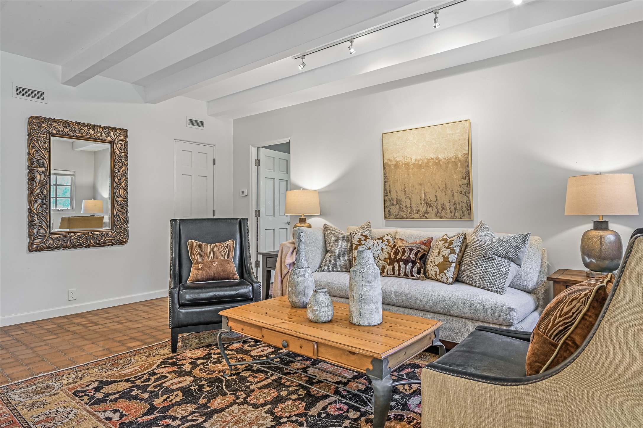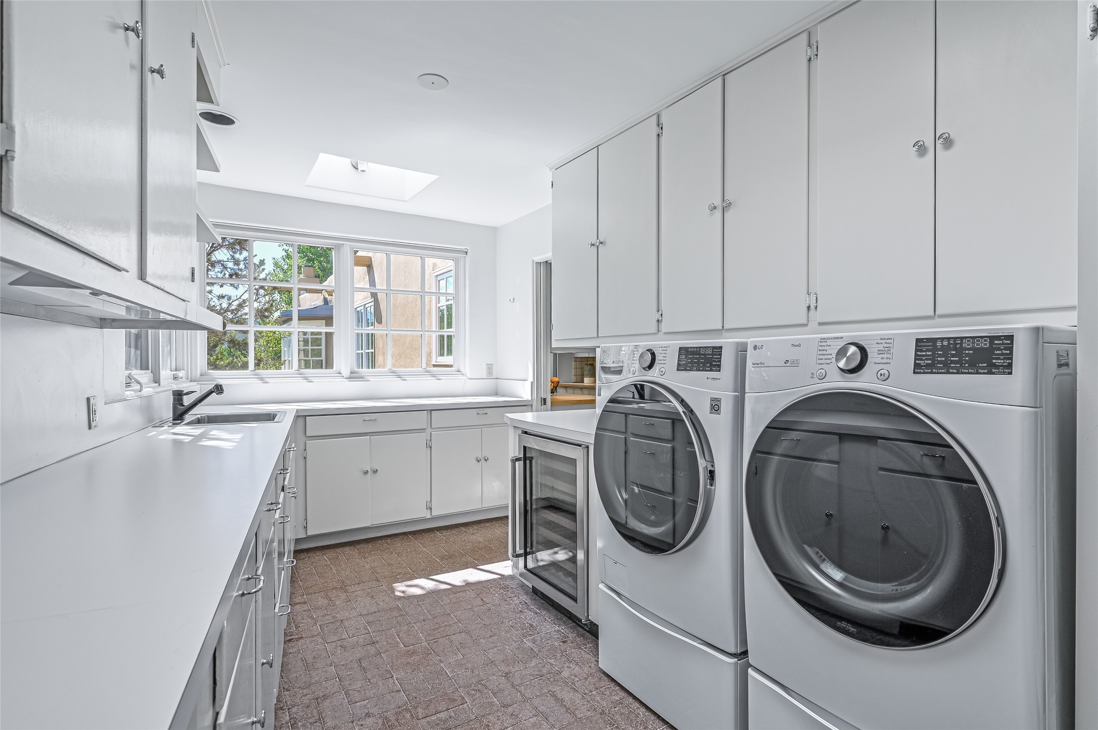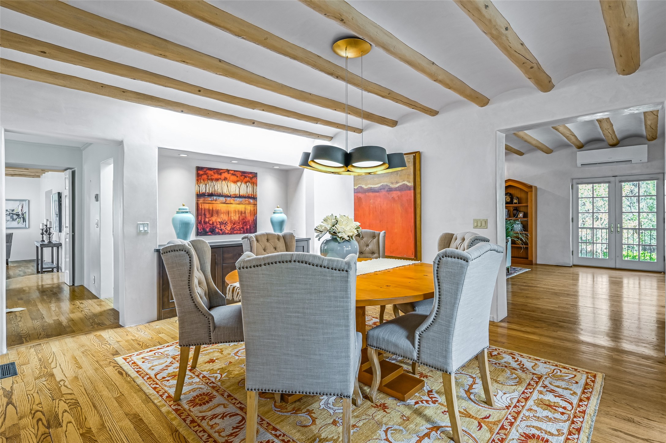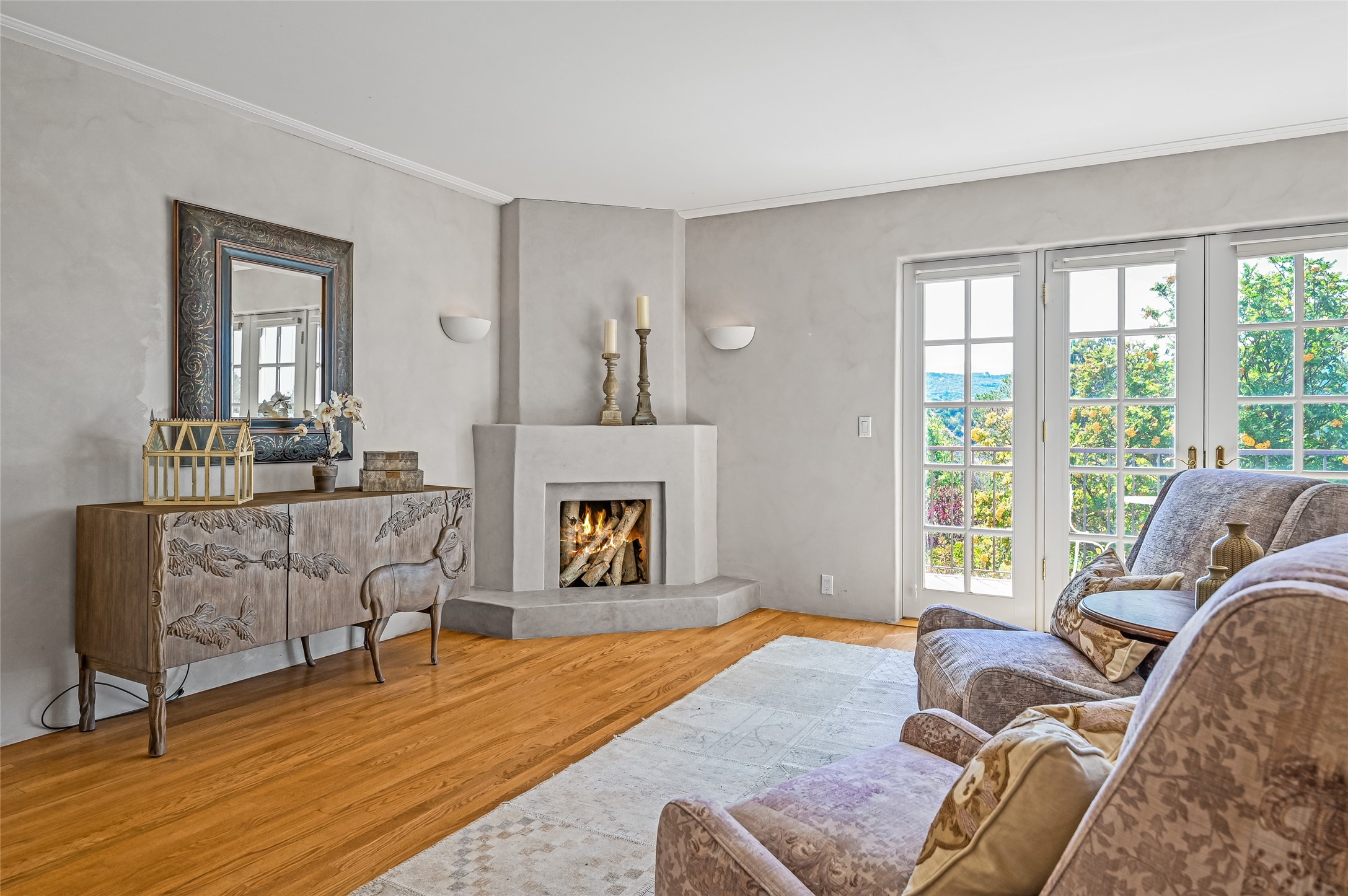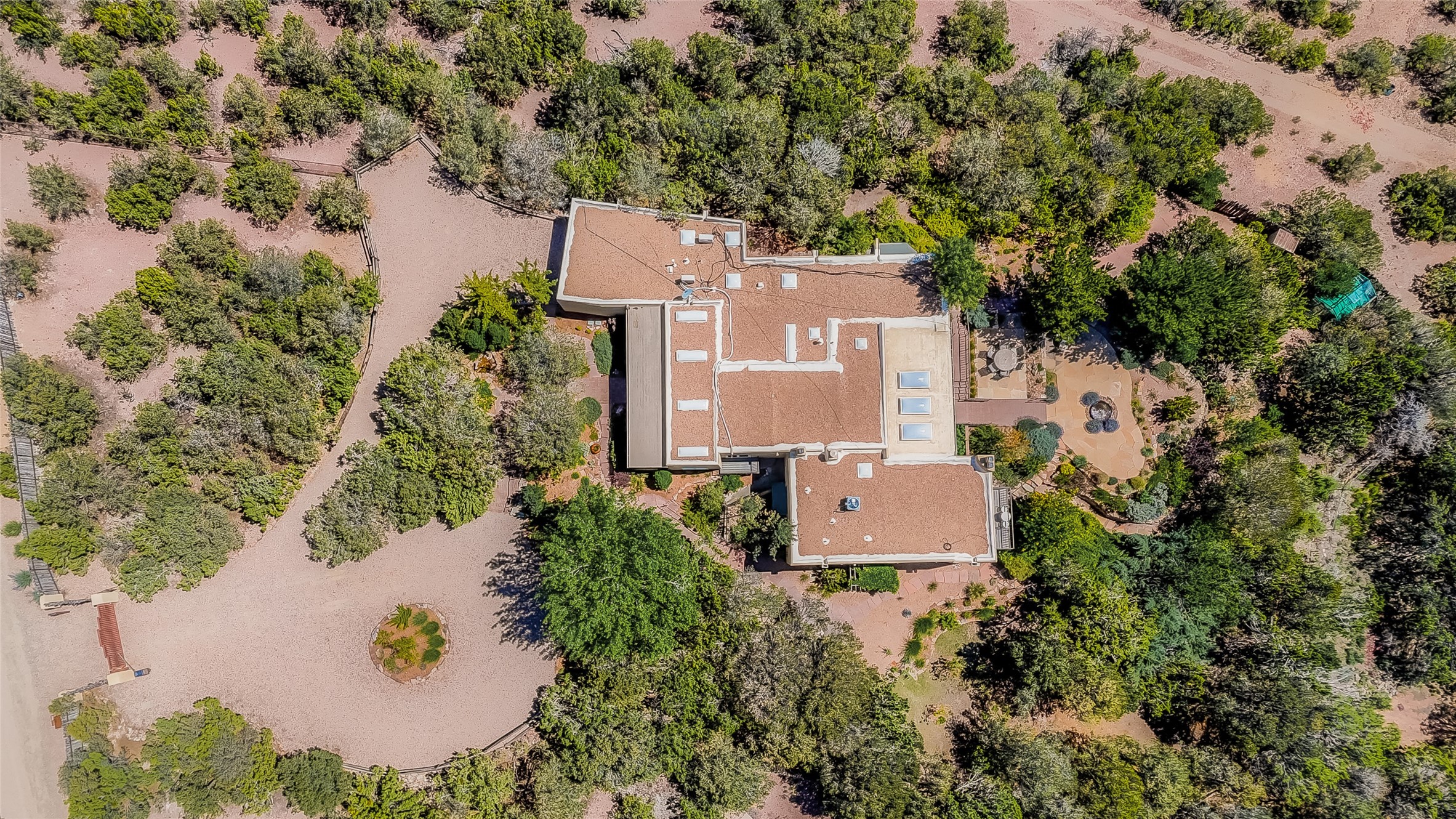 This classic Pueblo-style home with expansive views embraces symmetry and elegance, blending historic character with modern comforts. Inside, 4 fireplaces, brick and wood floors set a warm foundation for three generous living spaces, one of which could easily transform into a private third bedroom suite. Coved ceilings and architectural detailing add refinement throughout.The extra-large primary suite is a true retreat, featuring its own fireplace, private access to surrounding patios, an updated bathroom, and a nicely sized closet. It's also worth noting that there is only one step on the main level!The property's 1.60-acre grounds are a lush sanctuary, graced with water features, mature landscaping, and a greenhouse for year-round gardening. A solar system offsets most of the electric costs, offering both sustainability and efficiency.An office with built-ins provides a dedicated work space, while the lower-level guest casita--complete with its own kitchenette, bathroom, living room, large bedroom, and 2 private entrances--offers ideal accommodations for extended family, guests, caretaker or a potential rental.Just minutes from downtown yet set against a backdrop of panoramic vistas, this Old World residence combines timeless Pueblo charm with a lifestyle of ease and beauty.