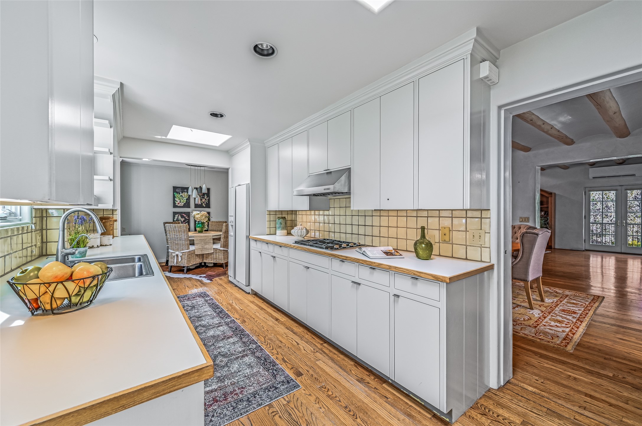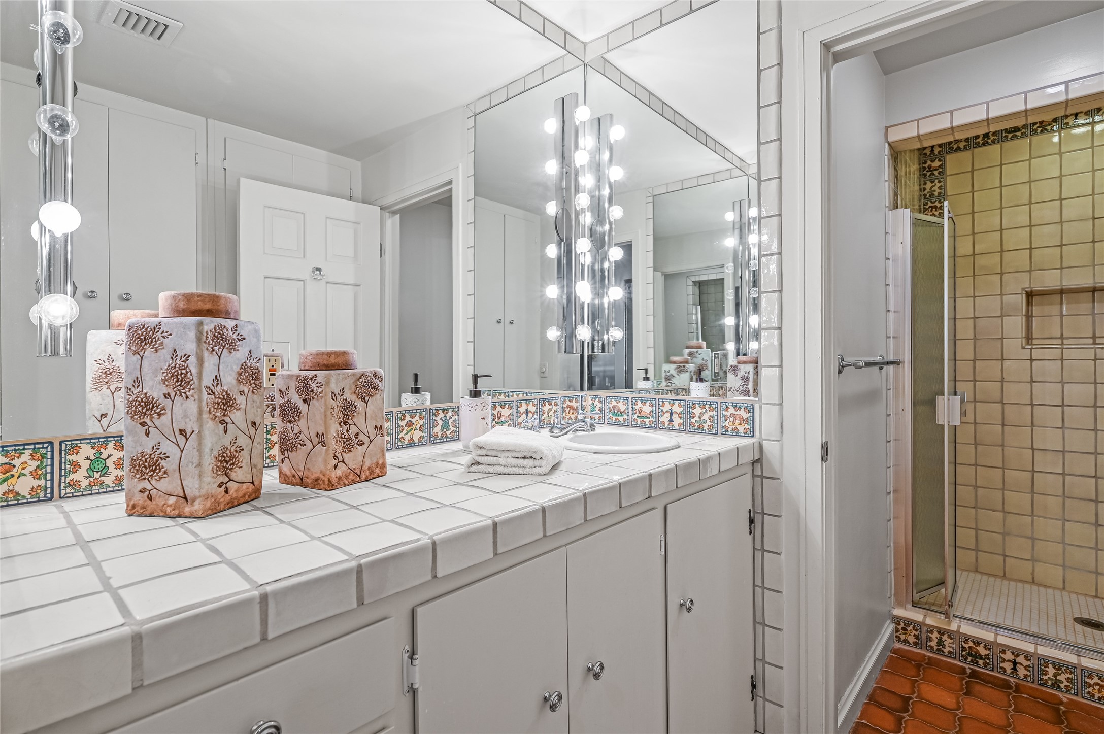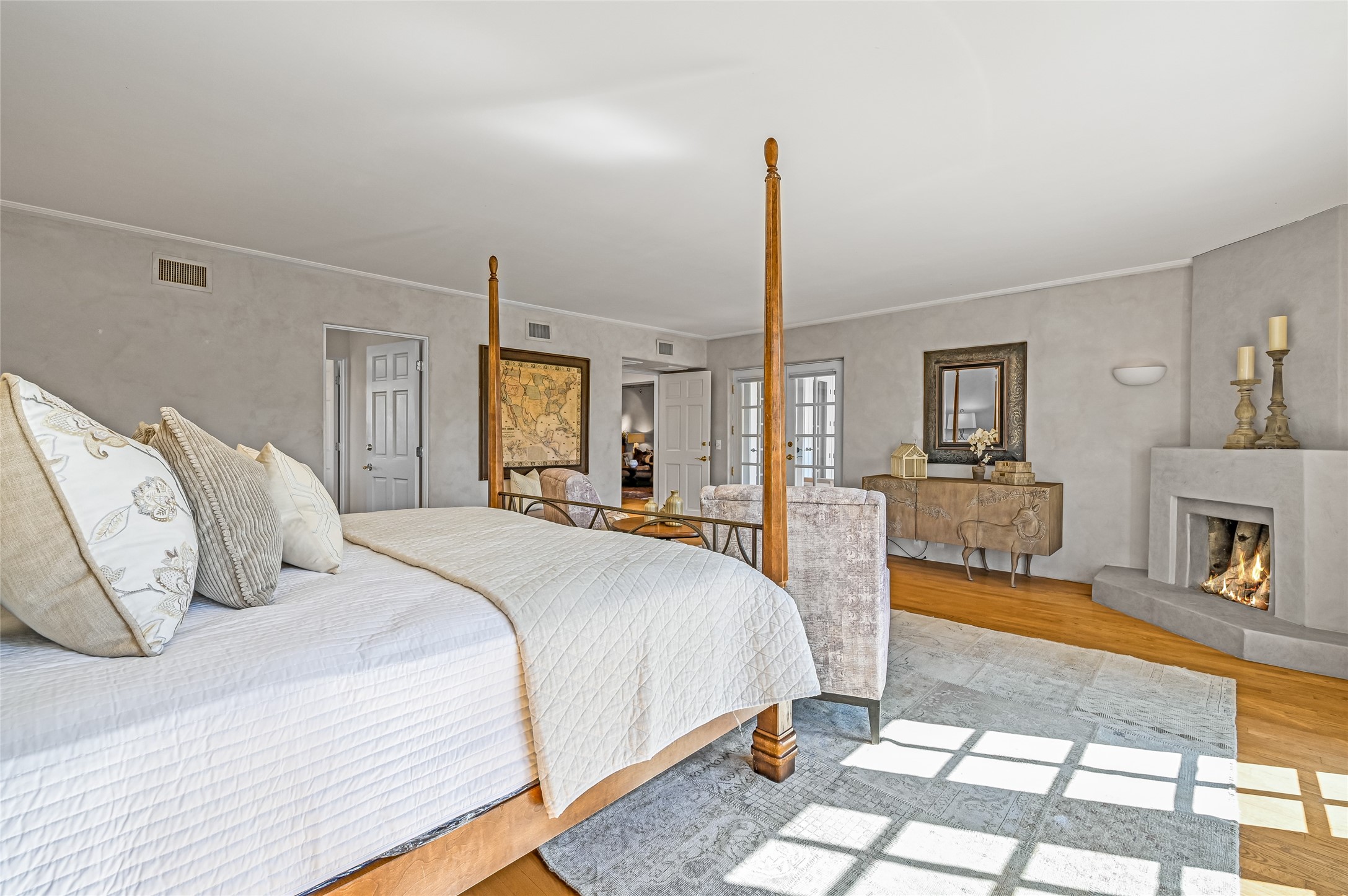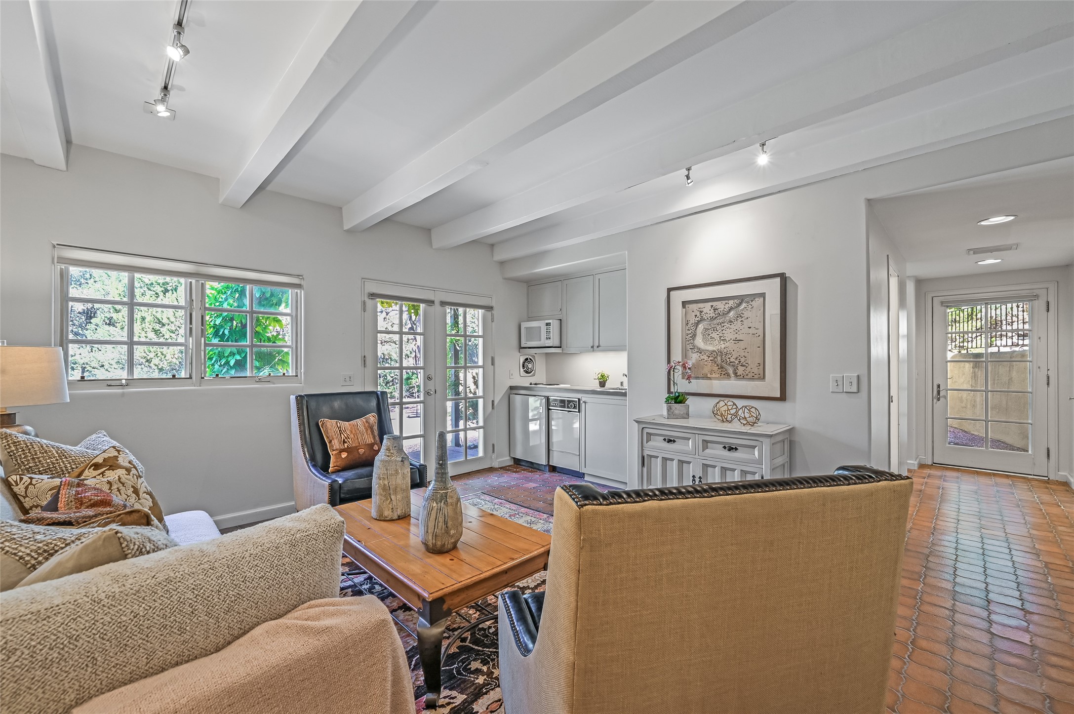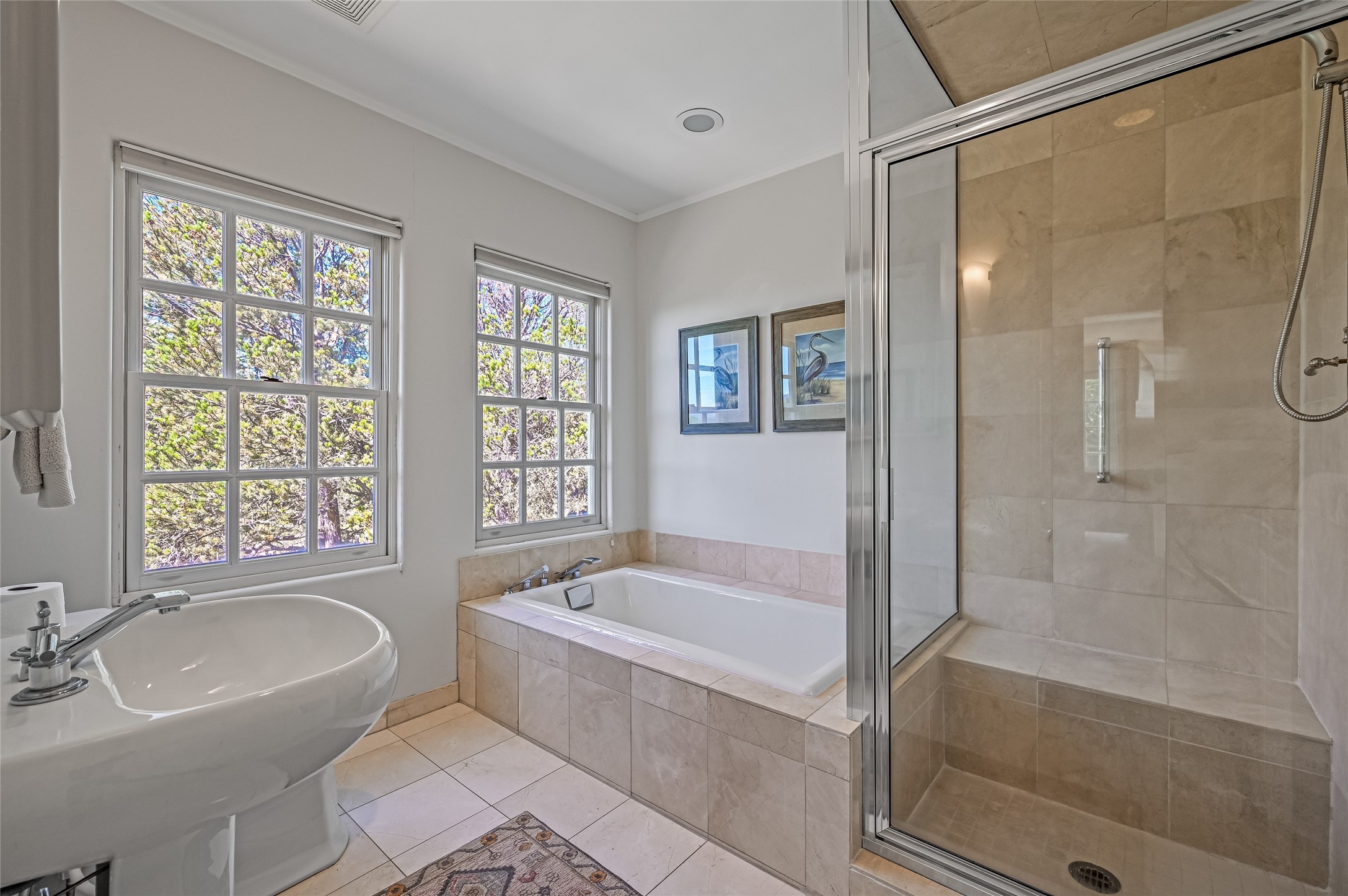 This classic Pueblo-style home with expansive views embraces symmetry and elegance, blending historic character with modern comforts. Inside, 4 fireplaces, brick and wood floors set a warm foundation for three generous living spaces, one of which could easily transform into a private third bedroom suite. Coved ceilings and architectural detailing add refinement throughout.The extra-large primary suite is a true retreat, featuring its own fireplace, private access to surrounding patios, an updated bathroom, and a nicely sized closet. It's also worth noting that there is only one step on the main level!The property's 1.60-acre grounds are a lush sanctuary, graced with water features, mature landscaping, and a greenhouse for year-round gardening. A solar system offsets most of the electric costs, offering both sustainability and efficiency.An office with built-ins provides a dedicated work space, while the lower-level guest casita--complete with its own kitchenette, bathroom, living room, large bedroom, and 2 private entrances--offers ideal accommodations for extended family, guests, caretaker or a potential rental.Just minutes from downtown yet set against a backdrop of panoramic vistas, this Old World residence combines timeless Pueblo charm with a lifestyle of ease and beauty.