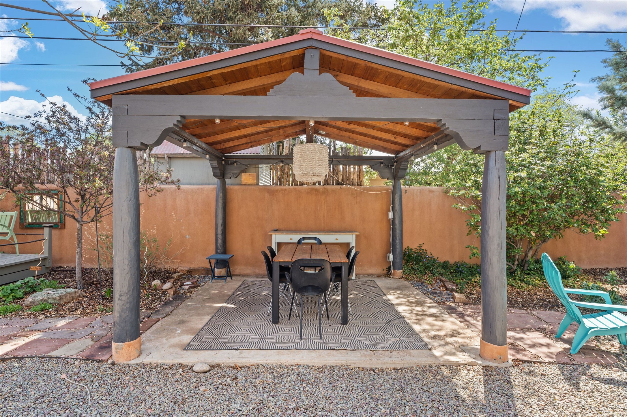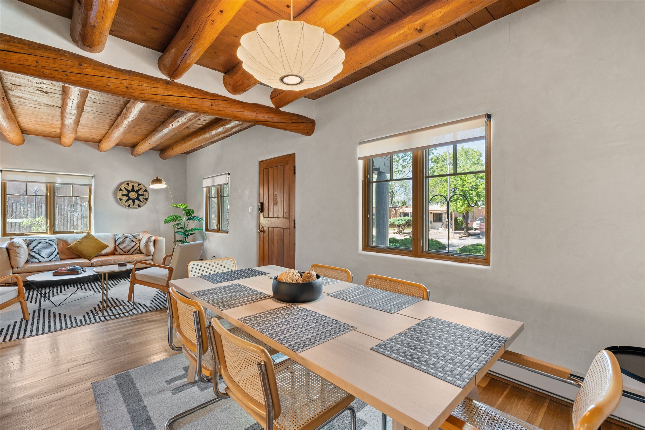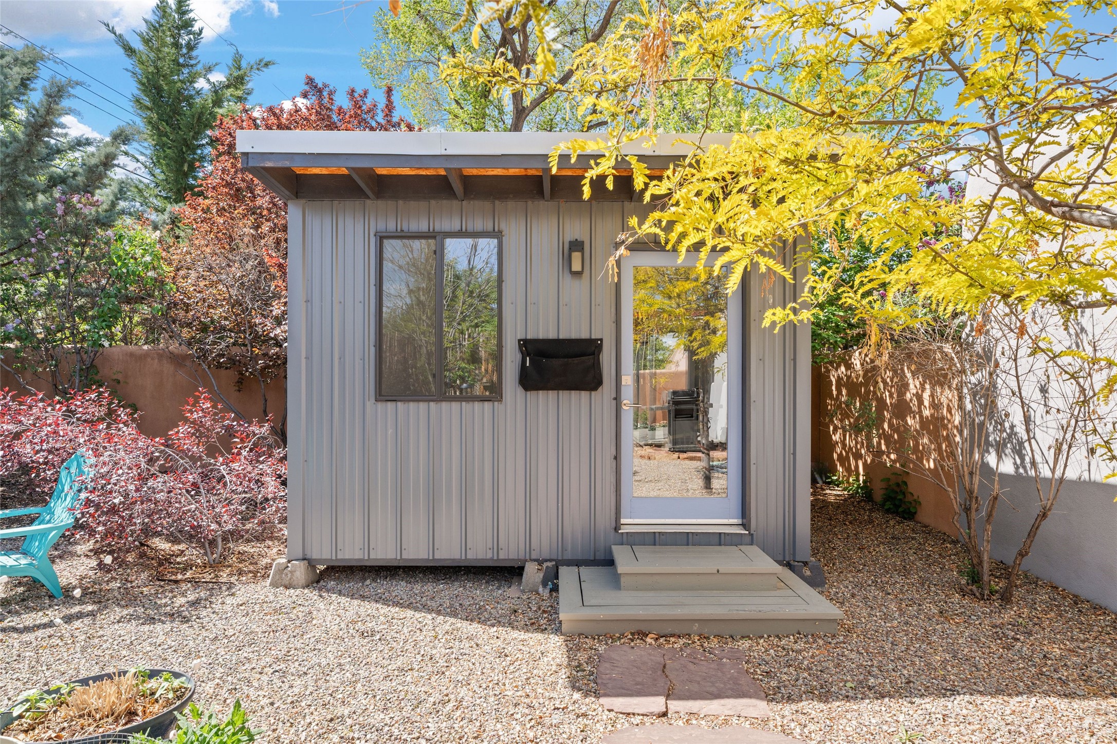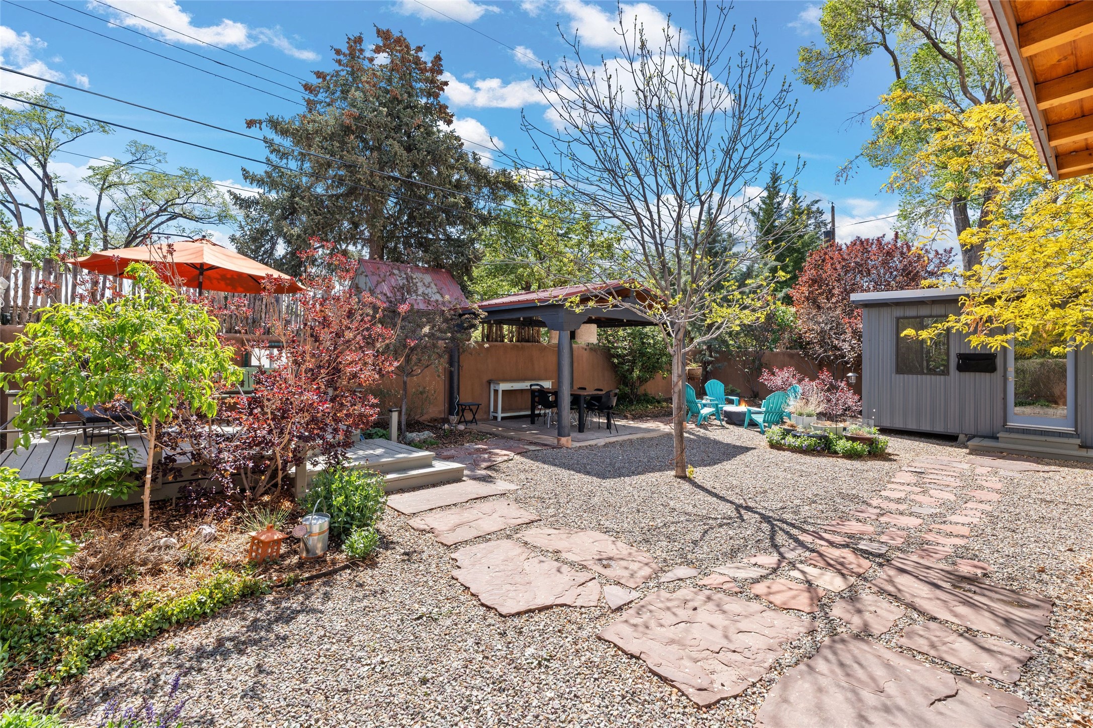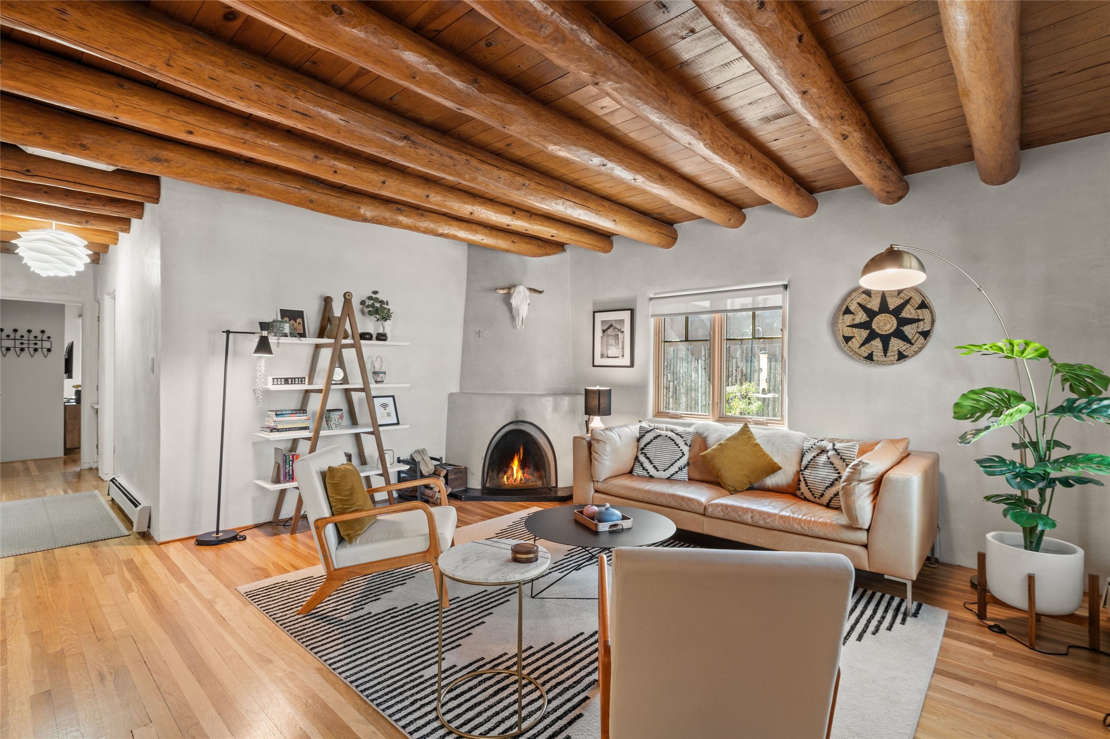 Charming Santa Fe Gem in Prime Walkable LocationNestled in one of Santa Fe's most desirable and walkable neighborhoods, this centrally located single-family residence blends classic charm with modern updates. Tucked away on a quiet street, the home offers peace and privacy while being just moments from the city's vibrant shops, galleries, dining and trails.Step inside to find beautifully preserved original hardwood floors, rustic vigas, and warm plastered walls that speak to true Southwestern character. The recently updated kitchen and bathrooms feature stainless steel appliances, generous cabinet space, and tasteful finishes that complement the home's timeless appeal. Additional functional features include air conditioning, an attached single car garage wired for EV and a cozy den as a second living space.The backyard is a private oasis, ideal for relaxing or entertaining, with mature shade trees, a dining gazebo, and a fully finished, heated "she-shed"--perfect for an office, studio, or creative retreat.This special home offers the perfect blend of Santa Fe charm, walkability, and modern comfort. A rare find that won't last long!