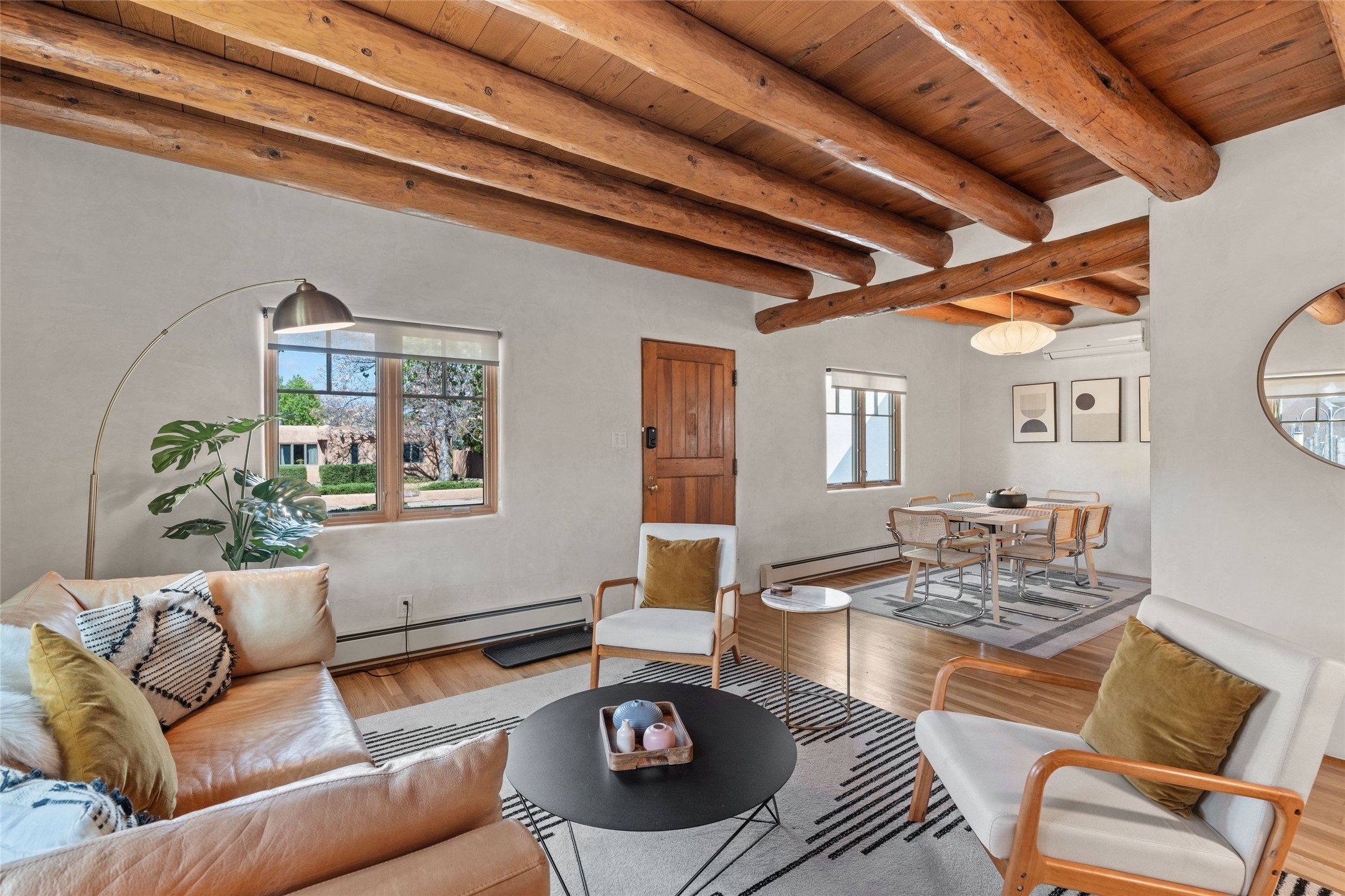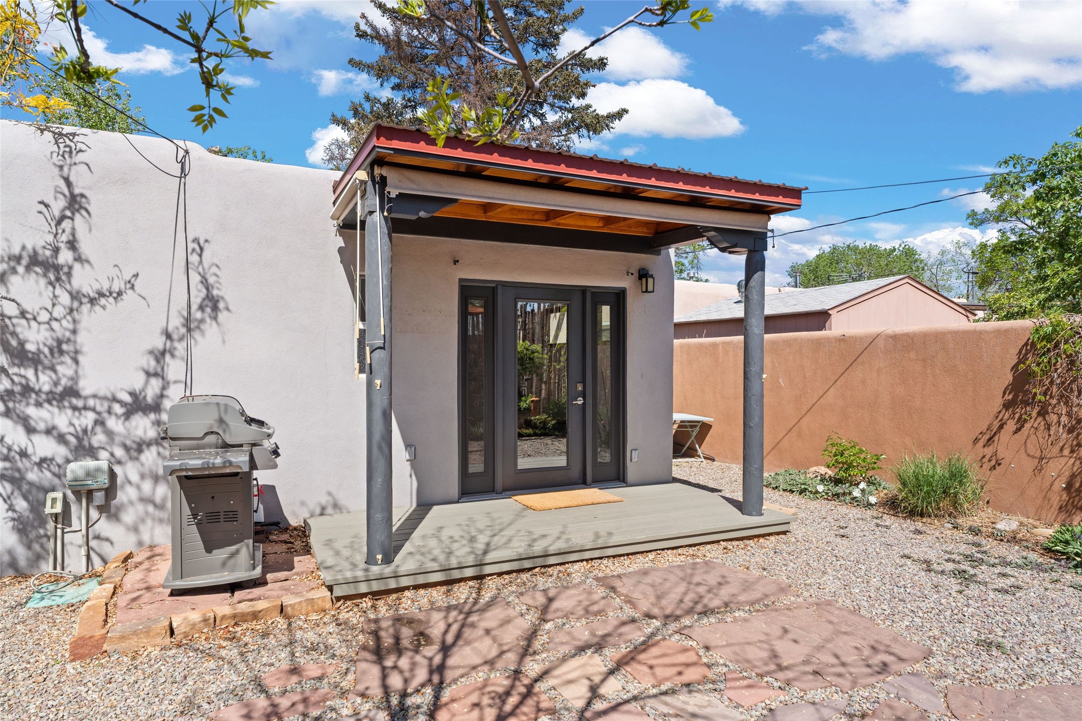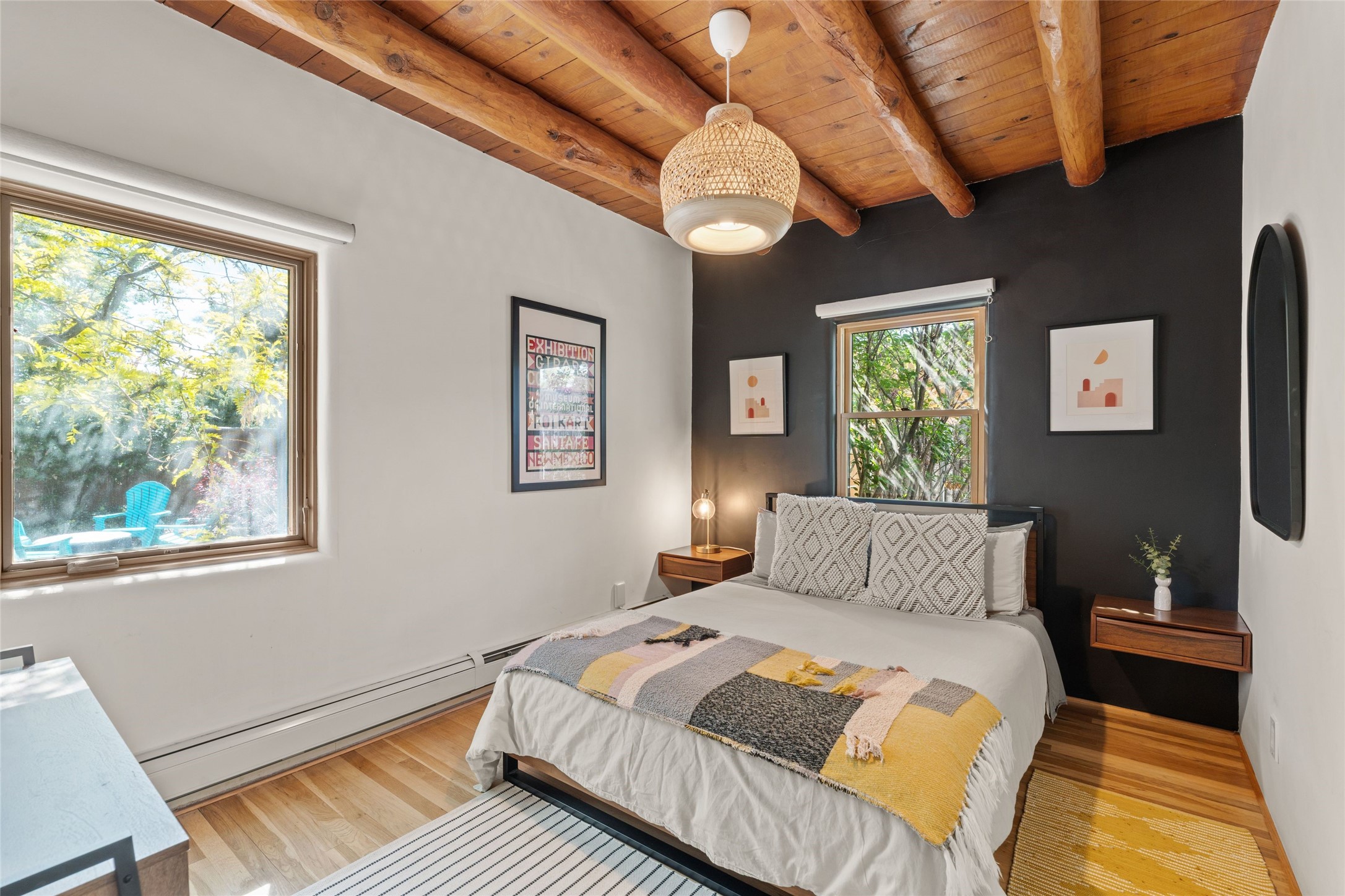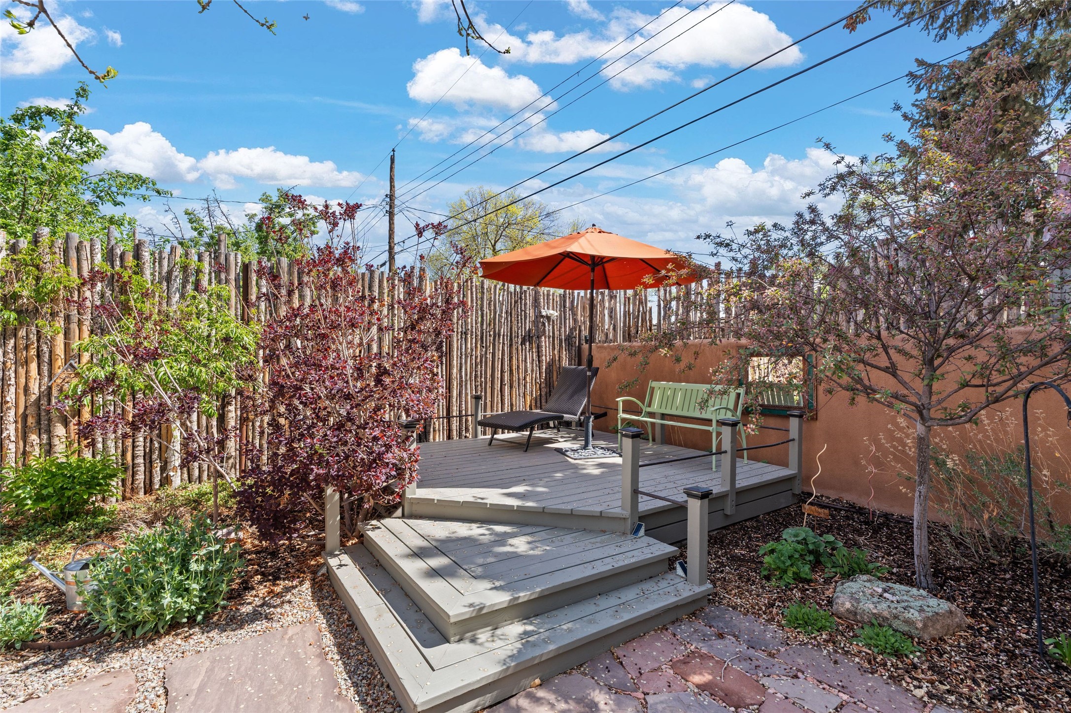 Charming Santa Fe Gem in Prime Walkable LocationNestled in one of Santa Fe's most desirable and walkable neighborhoods, this centrally located single-family residence blends classic charm with modern updates. Tucked away on a quiet street, the home offers peace and privacy while being just moments from the city's vibrant shops, galleries, dining and trails.Step inside to find beautifully preserved original hardwood floors, rustic vigas, and warm plastered walls that speak to true Southwestern character. The recently updated kitchen and bathrooms feature stainless steel appliances, generous cabinet space, and tasteful finishes that complement the home's timeless appeal. Additional functional features include air conditioning, an attached single car garage wired for EV and a cozy den as a second living space.The backyard is a private oasis, ideal for relaxing or entertaining, with mature shade trees, a dining gazebo, and a fully finished, heated "she-shed"--perfect for an office, studio, or creative retreat.This special home offers the perfect blend of Santa Fe charm, walkability, and modern comfort. A rare find that won't last long!