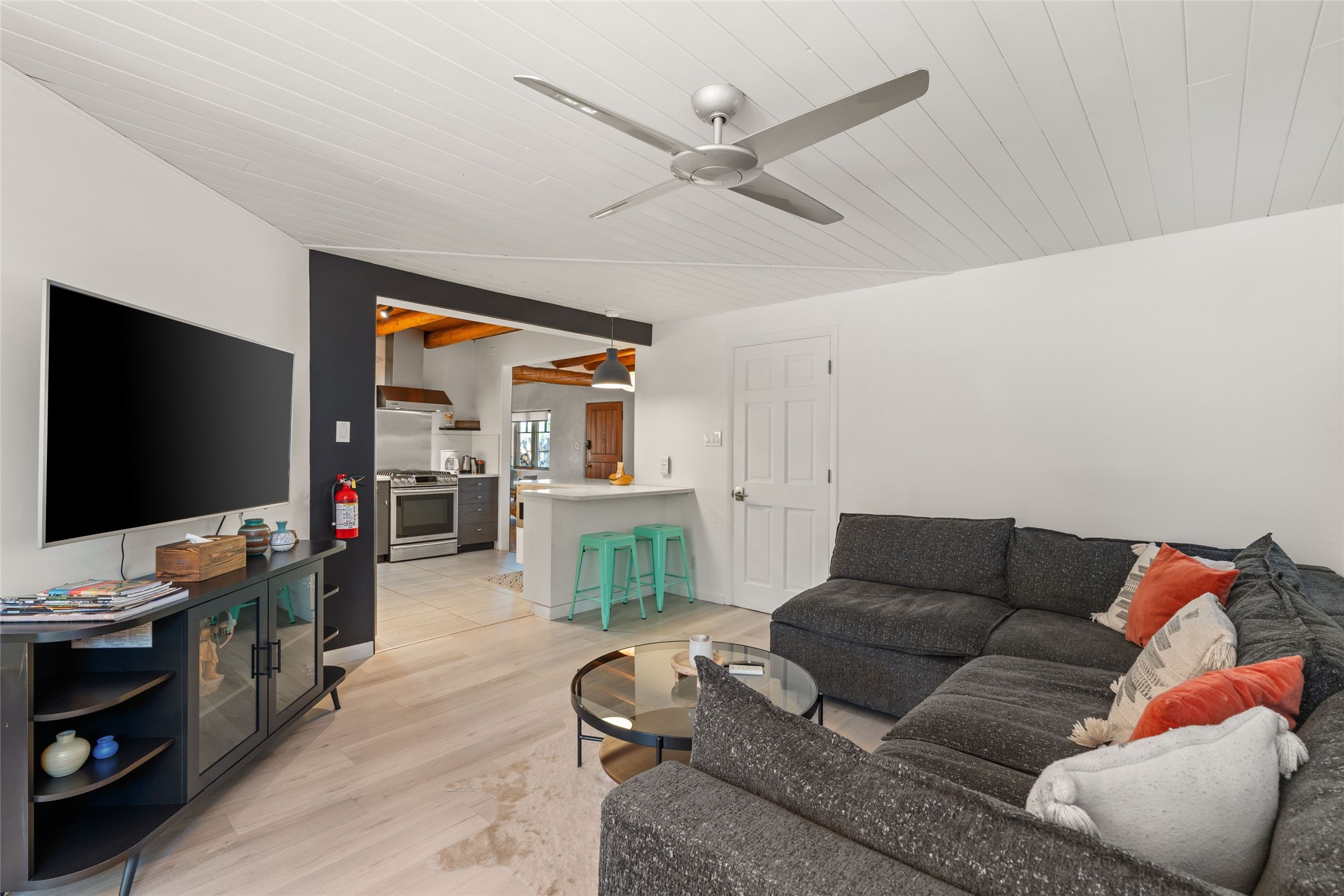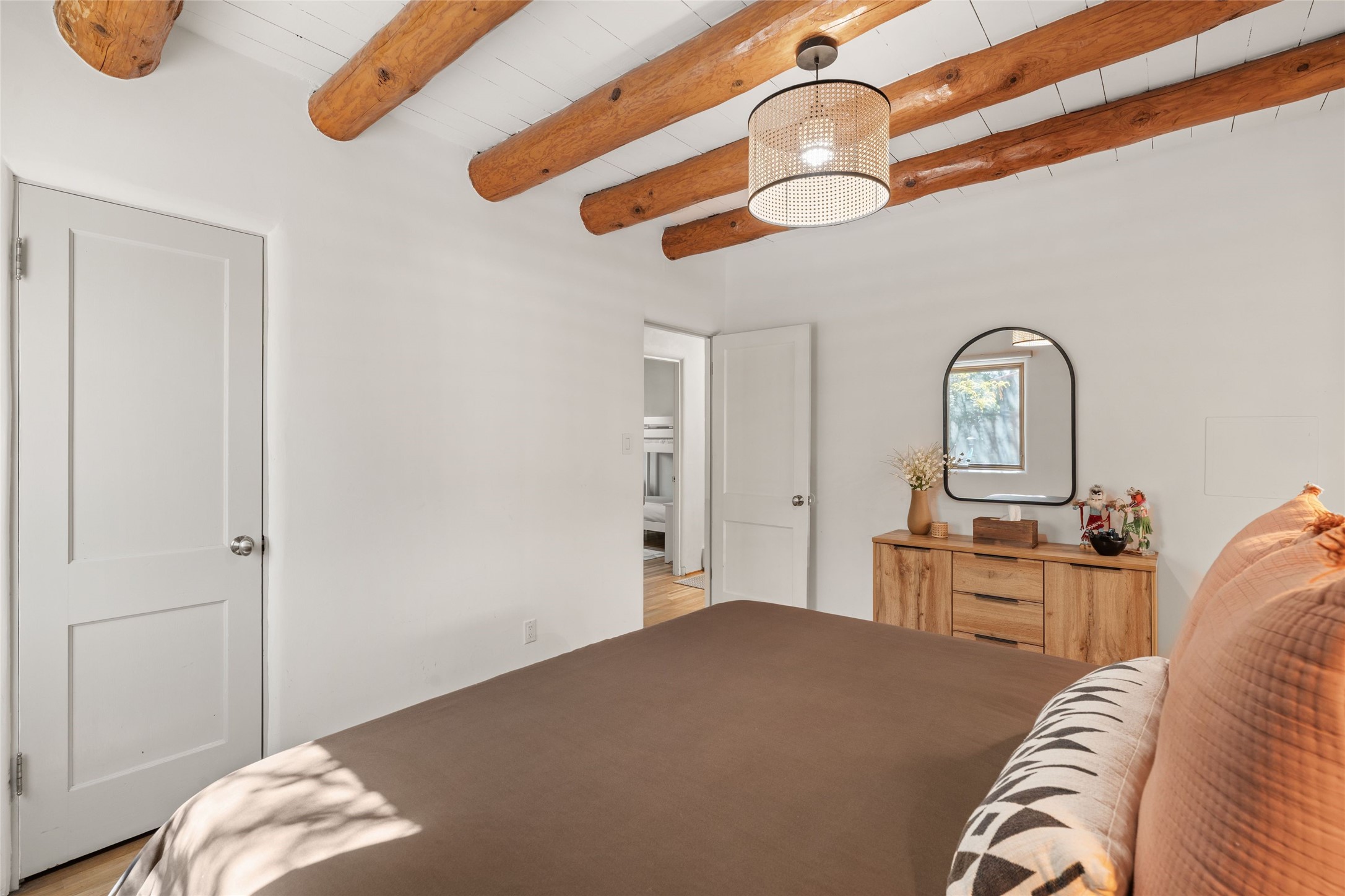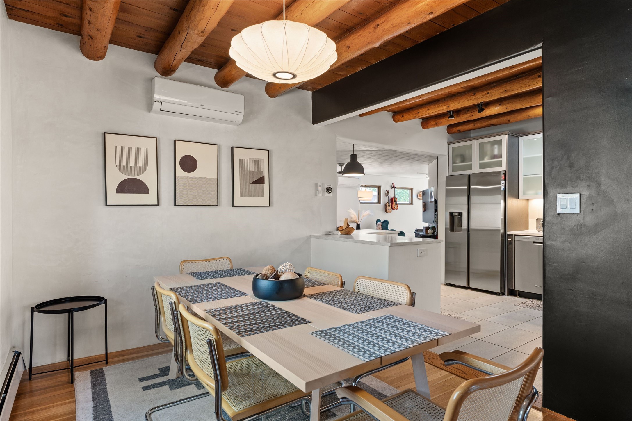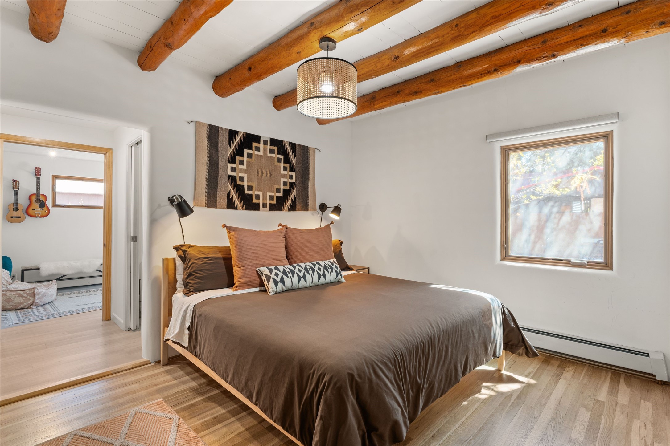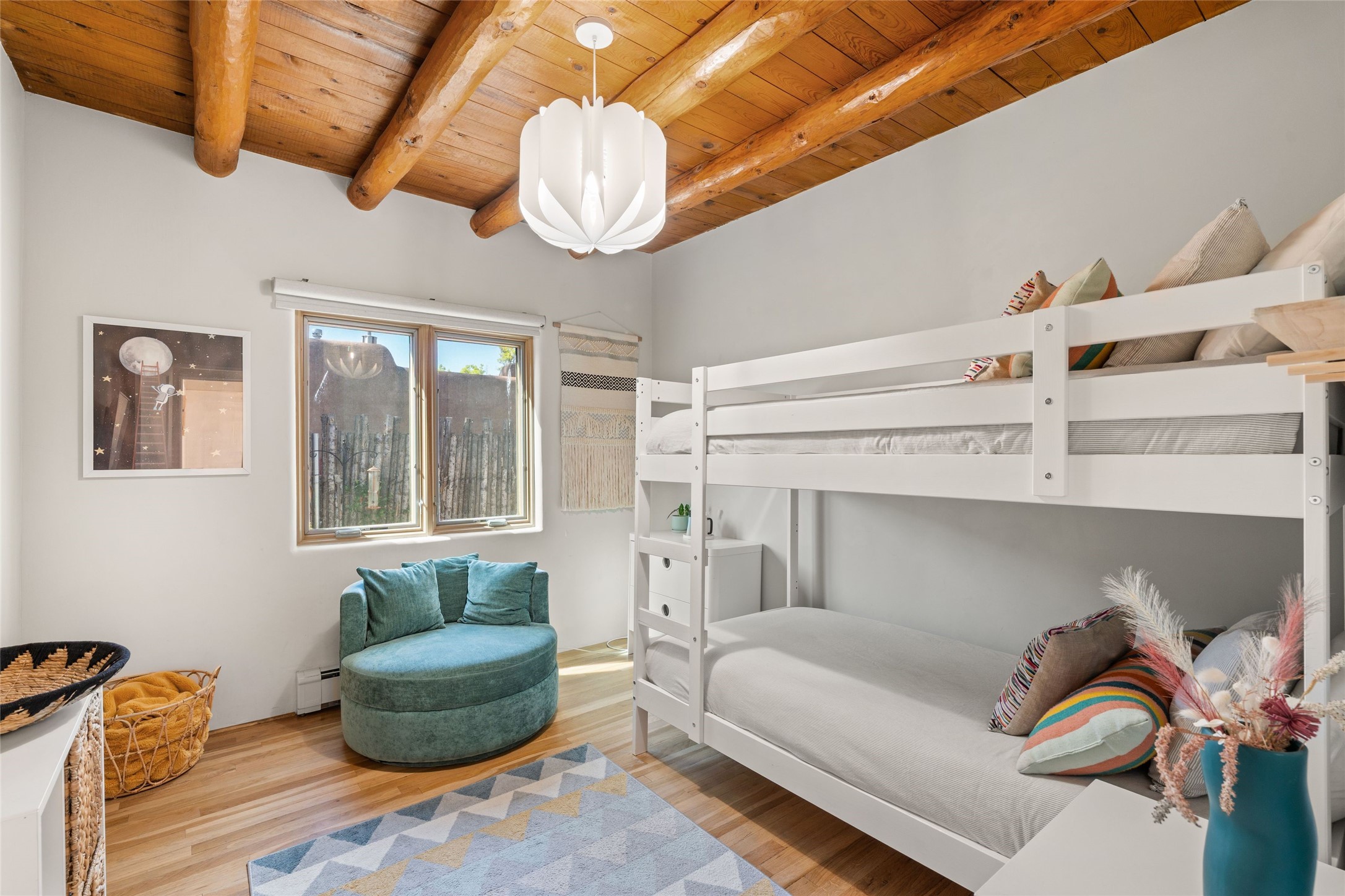 Charming Santa Fe Gem in Prime Walkable LocationNestled in one of Santa Fe's most desirable and walkable neighborhoods, this centrally located single-family residence blends classic charm with modern updates. Tucked away on a quiet street, the home offers peace and privacy while being just moments from the city's vibrant shops, galleries, dining and trails.Step inside to find beautifully preserved original hardwood floors, rustic vigas, and warm plastered walls that speak to true Southwestern character. The recently updated kitchen and bathrooms feature stainless steel appliances, generous cabinet space, and tasteful finishes that complement the home's timeless appeal. Additional functional features include air conditioning, an attached single car garage wired for EV and a cozy den as a second living space.The backyard is a private oasis, ideal for relaxing or entertaining, with mature shade trees, a dining gazebo, and a fully finished, heated "she-shed"--perfect for an office, studio, or creative retreat.This special home offers the perfect blend of Santa Fe charm, walkability, and modern comfort. A rare find that won't last long!