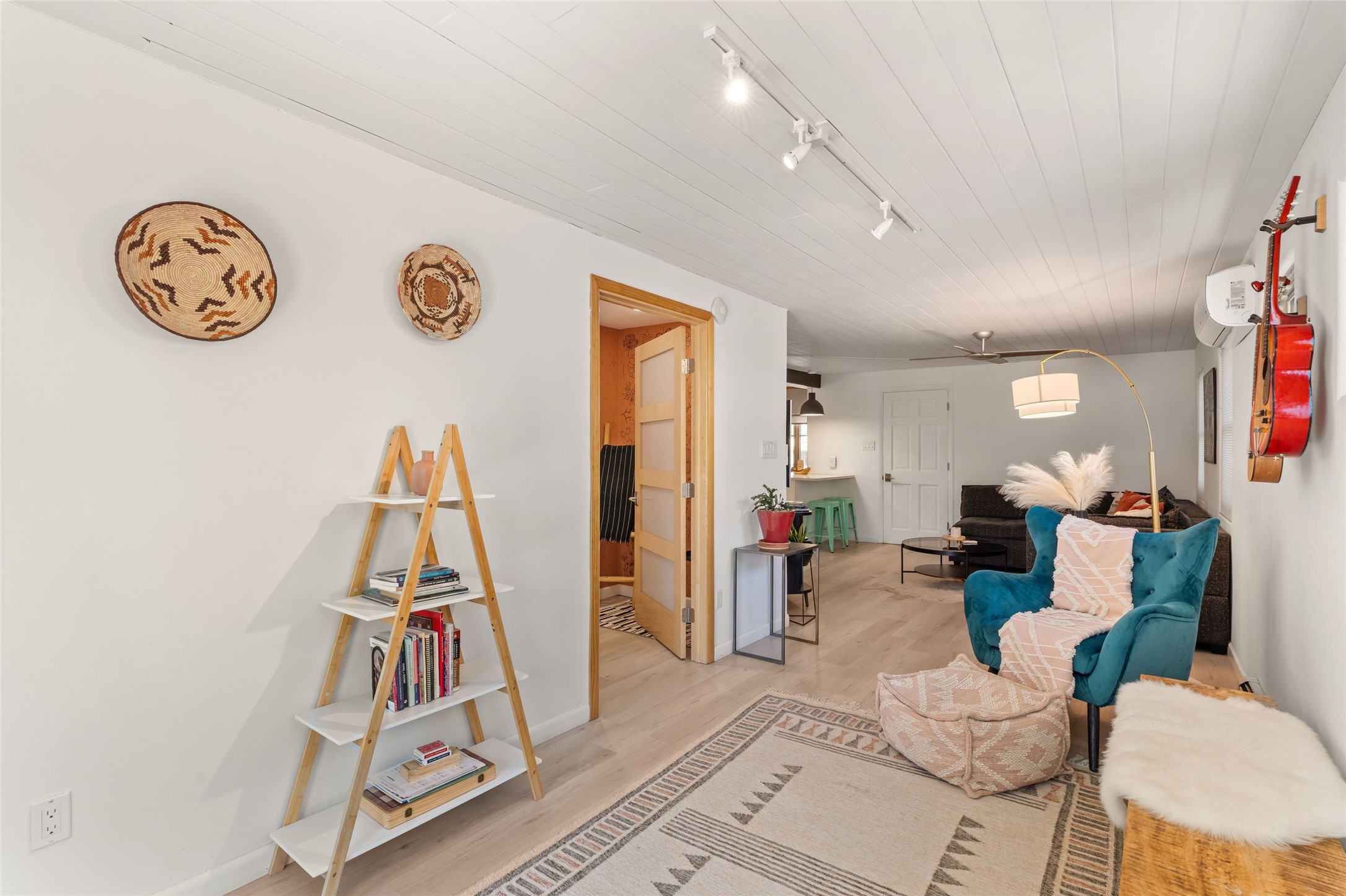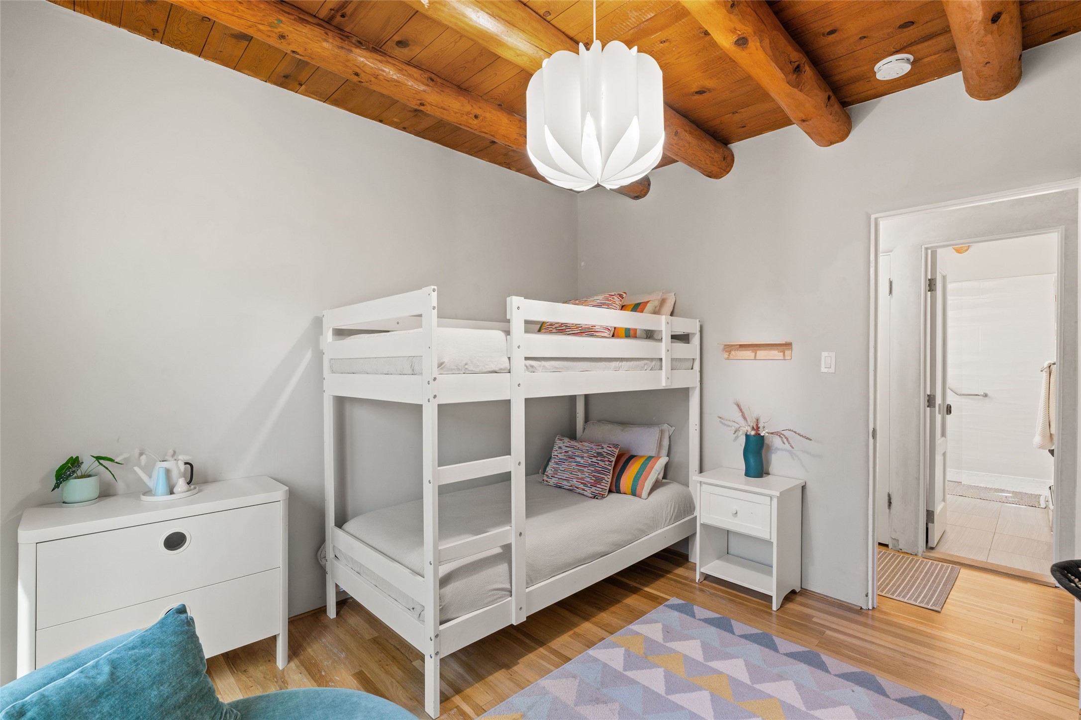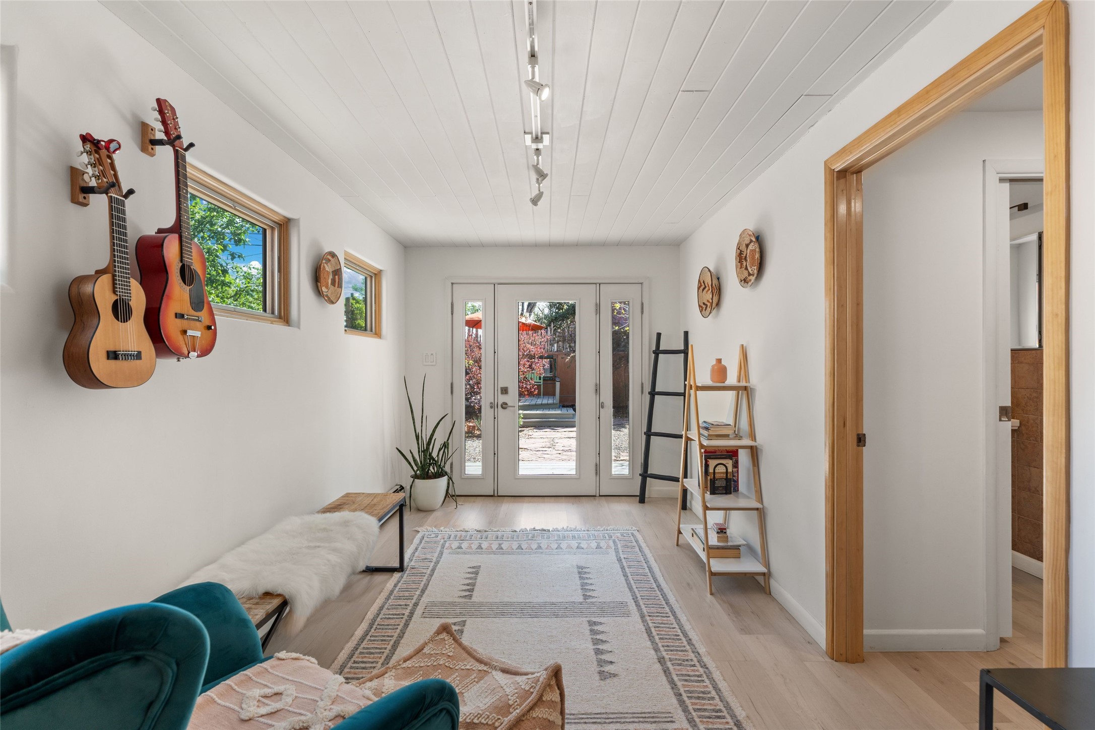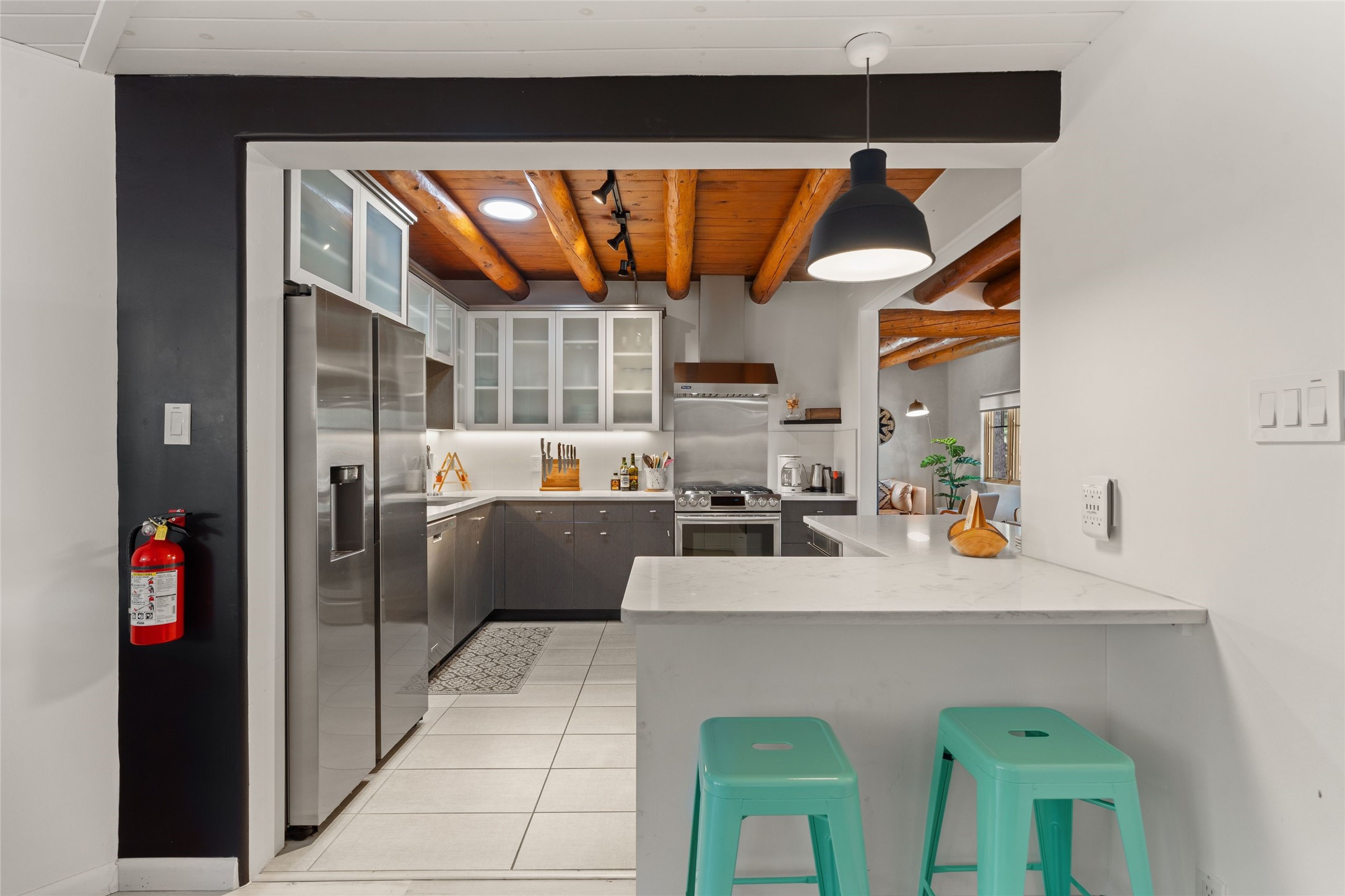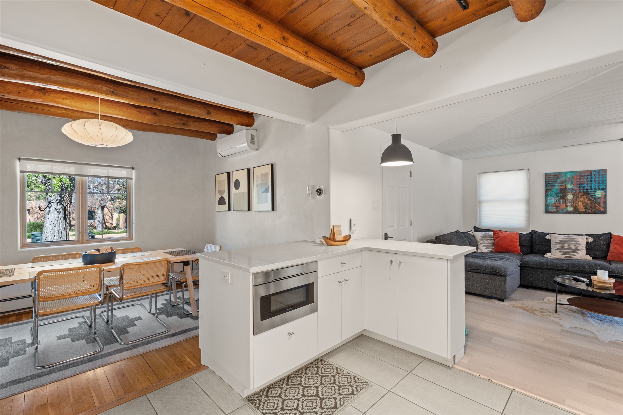 Charming Santa Fe Gem in Prime Walkable LocationNestled in one of Santa Fe's most desirable and walkable neighborhoods, this centrally located single-family residence blends classic charm with modern updates. Tucked away on a quiet street, the home offers peace and privacy while being just moments from the city's vibrant shops, galleries, dining and trails.Step inside to find beautifully preserved original hardwood floors, rustic vigas, and warm plastered walls that speak to true Southwestern character. The recently updated kitchen and bathrooms feature stainless steel appliances, generous cabinet space, and tasteful finishes that complement the home's timeless appeal. Additional functional features include air conditioning, an attached single car garage wired for EV and a cozy den as a second living space.The backyard is a private oasis, ideal for relaxing or entertaining, with mature shade trees, a dining gazebo, and a fully finished, heated "she-shed"--perfect for an office, studio, or creative retreat.This special home offers the perfect blend of Santa Fe charm, walkability, and modern comfort. A rare find that won't last long!