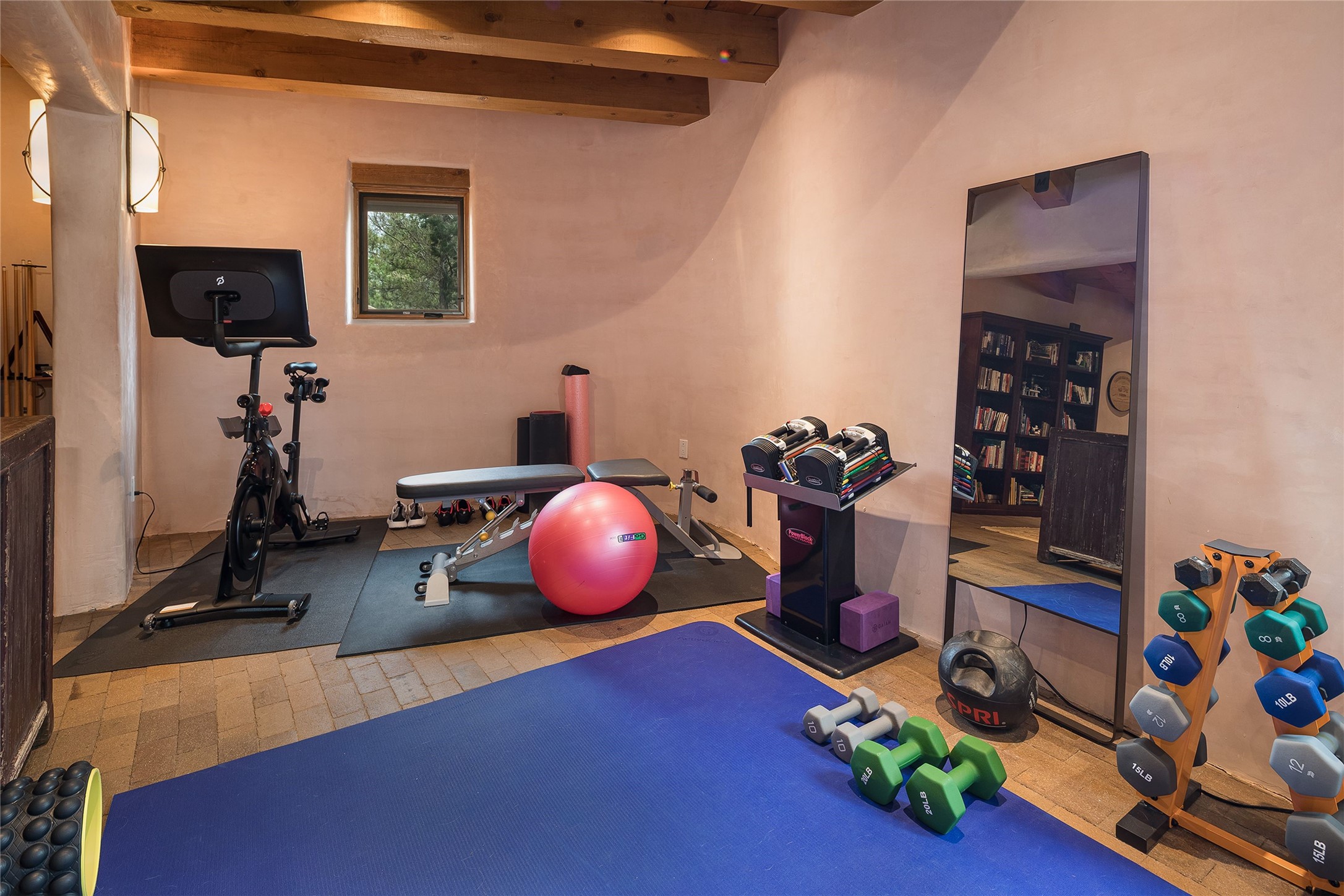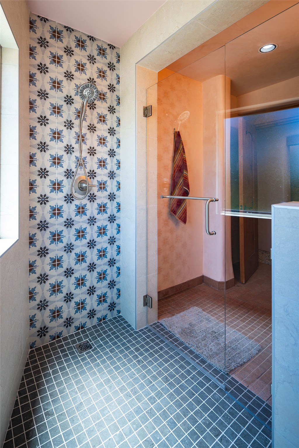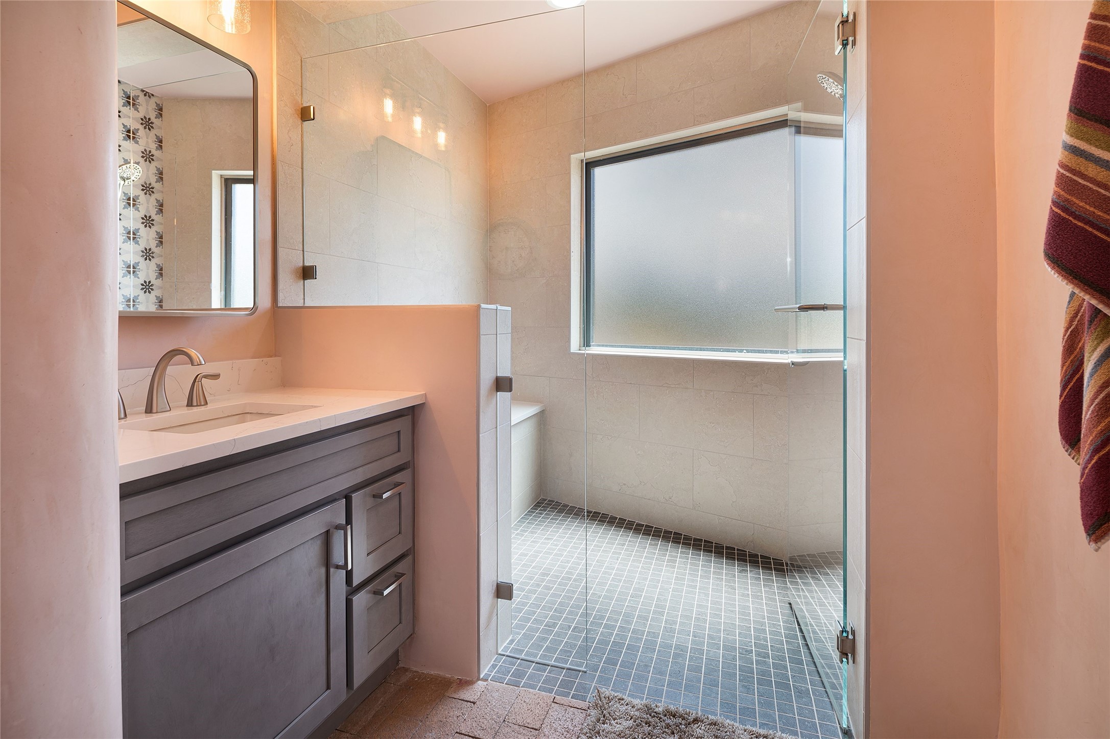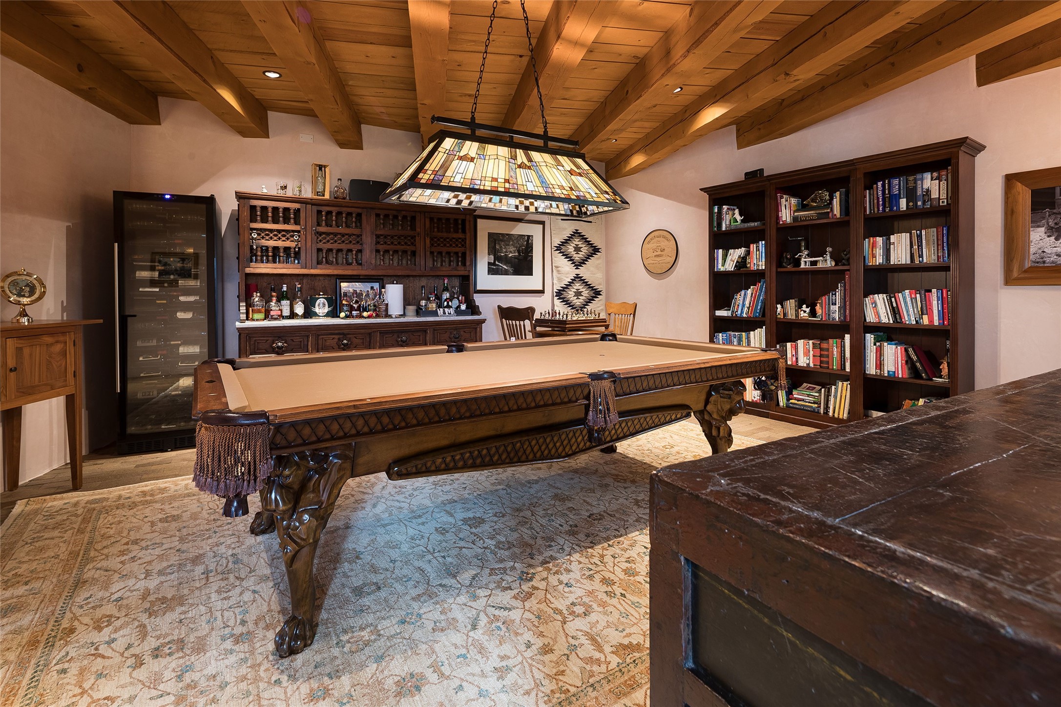 Welcome to 1233 North Summit Drive. One of the most extraordinary homes in all of Santa Fe, this captivating residence stuns with powerful architecture and majestic mountain views, and celebrates the ultimate Santa Fe lifestyle. Located within the coveted, private gates of the Santa Fe Summit, this 7,200 sq. ft. adobe residence is one of architect/builder Mike Fischer's most exceptional works. Built with uncompromising craftsmanship, the home blends timeless Santa Fe style with thoughtful modern updates--showcasing curved plaster walls, viga and beam ceilings, handcrafted fireplaces, and luxury finishes throughout. The main level is designed for entertaining, with spacious living and dining areas, while the upper floor is devoted to a private primary suite, complete with a luxurious bath, sitting room or office, and a rooftop deck that captures sweeping mountain views. Thoughtful updates include a 2018 kitchen renovation and a 2020 spa-like bath remodel, bringing modern elegance to traditional adobe design. The lower level offers excellent guest accommodations, with two bedrooms, two baths, and a large media/game room. A rare 4-car garage adds convenience and storage, while recent upgrades impress, such as new Pella windows, a TPO roof, and newly designed hardscape and lush, vibrant, surrounding landscape.From its perch at one of the highest residential elevations in Santa Fe, the home enjoys awe-inspiring panoramas of the Sangre de Cristo and Jemez ranges, the dramatic north face of Atalaya Mountain, and the north side of Picacho Peak. Multiple view decks and patios maximize the setting, while direct access to the Dale Ball Trail system makes outdoor adventure effortless. Just steps away from the world-class 10,000 Waves resort and spa, and only 3.5 miles from the Plaza, this incredible residence, sited in a tranquil, park-like setting, offers an unmatched blend of mountain living, privacy, and convenience, combined with architectural pedigree and modern upgrades.