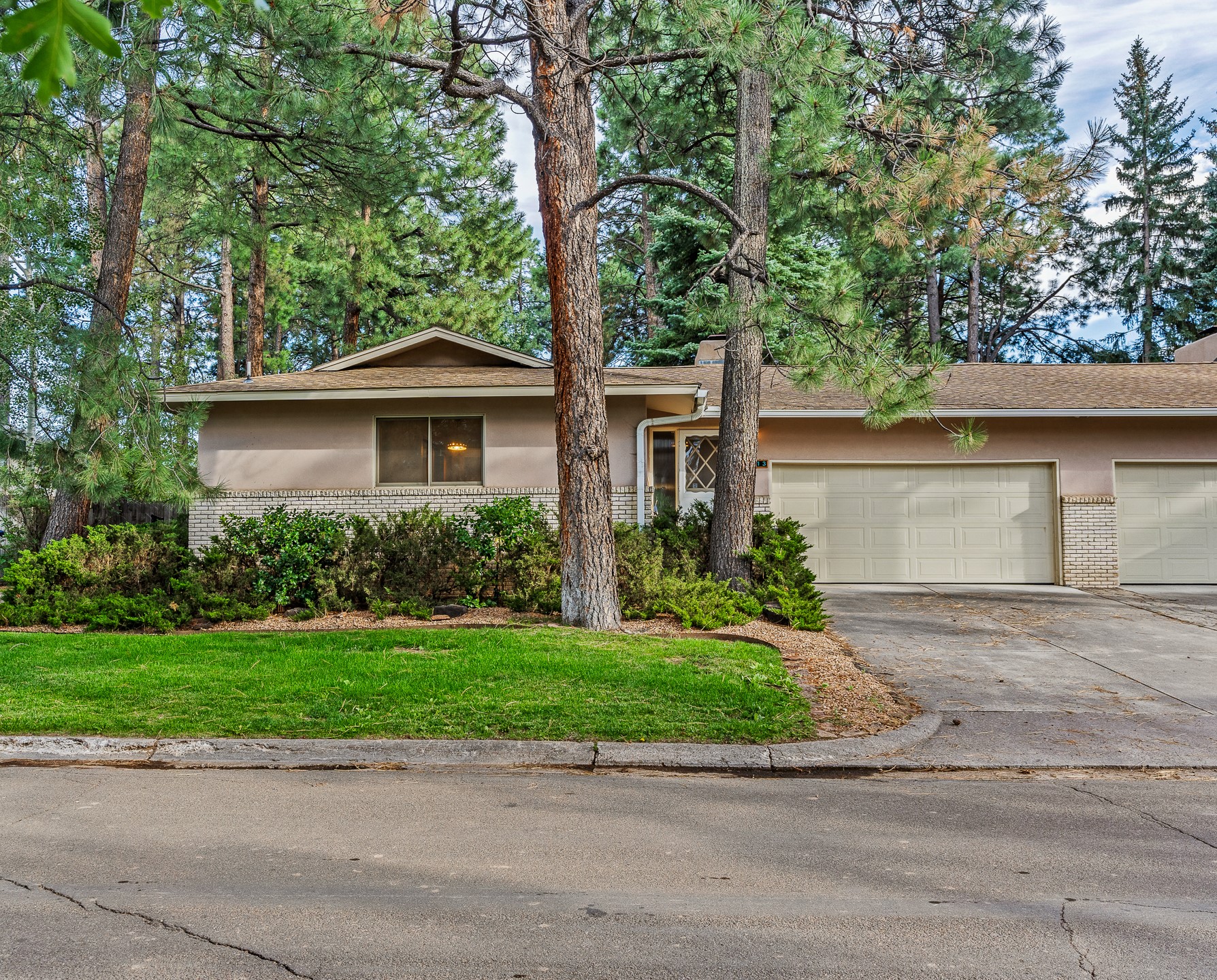 Charming Single-Level Townhouse in Downtown Los Alamos, Access to the Hidden Park, 3 Bed / 3 Bath, 2 Living Areas, 2-Car Garage, Central Air Conditioning, and More! Welcome to 1913 Spruce! This beautifully maintained home is located in Ponderosa Manor, home to a private, hidden park accessible through the residents' back yards! The location is highly desirable, as the complex sits adjacent to the soccer field across from Bathtub Row Brewery and just a short distance away from all the downtown restaurants and brew pubs! As you enter you are greeted by updated hardwood flooring that flow into the main living area that serves as the hub of this house. The main living area includes a brick, wood-burning fireplace that will keep you warm on those crisp fall evenings. The kitchen features natural wood cabinets and includes an island with barstool seating and a prep-sink that makes preparing meals a breeze. The dining area has south-facing windows and flows into a second living area filled with natural light from the three skylights above and opens onto the stone patio surrounded by pine trees. A built-in office space is ideal for your work-from-home days.The east wing of the home includes two bedrooms, including the primary bedroom with an en-suite bathroom. A full guest bathroom is conveniently located for the guest bedroom. A second guest bedroom with an en-suite bathroom is located in the west wing addition. A two-car garage and large laundry room round out the interior of the house.The back yard patio features garden beds and a beautiful stone walkway that winds around to the side of the house. A gate leads to the hidden park maintained by the homeowner's association, providing you with a beautiful, carefree sanctuary in the middle of downtown Los Alamos.Homes in Ponderosa Manor do not frequently hit the market, so this is your opportunity to own one of these gems. The seller plans to review offers on Tuesday, September 16, so schedule your showing today!
