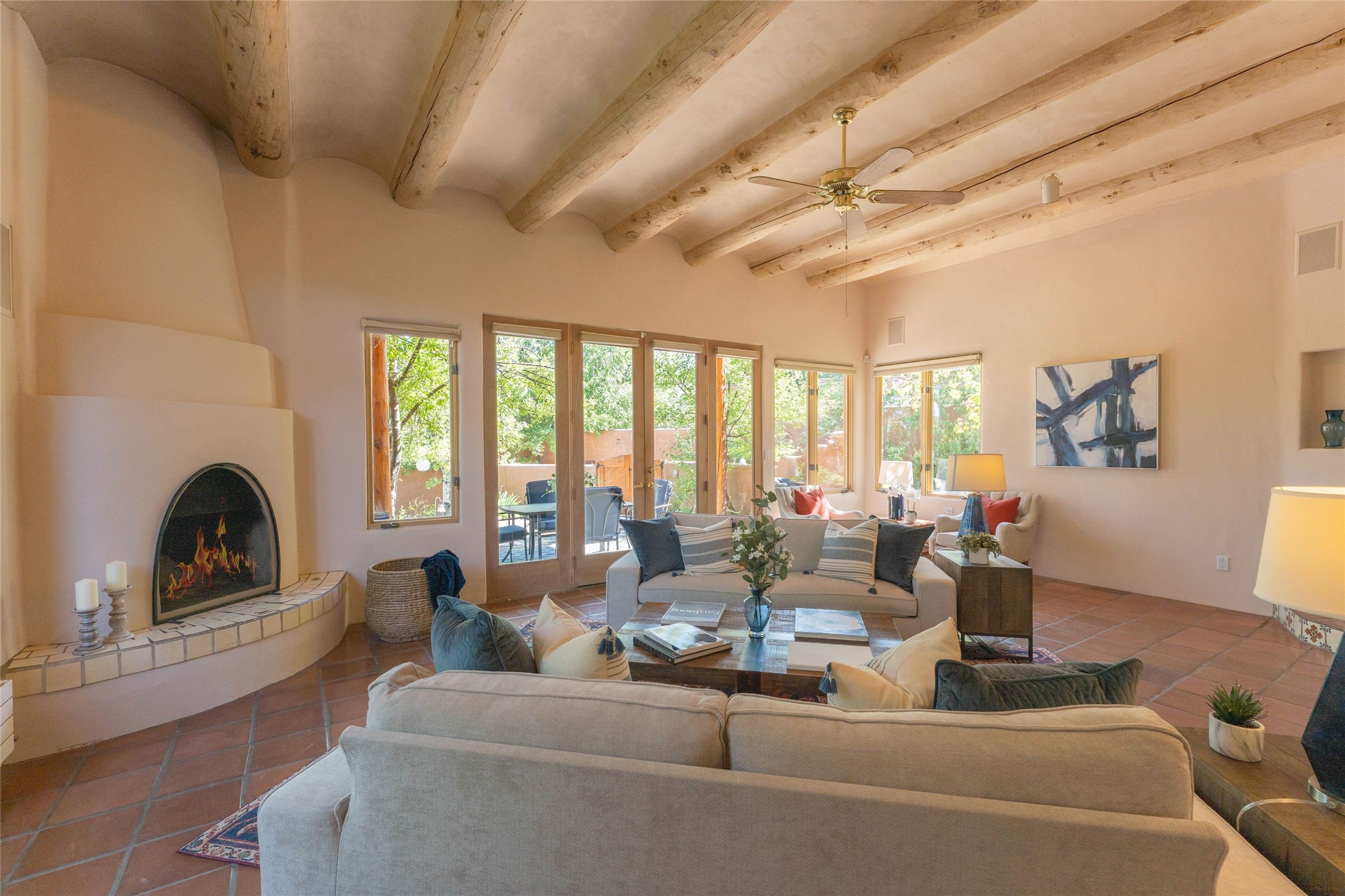 At a new price and beautifully staged, this 2,837 sq. ft. Historic Eastside residence blends timeless Southwestern architecture with warm, inviting living spaces. Classic vigas, multiple fireplaces, and abundant natural light highlight a layout designed for both gathering and retreat.The spacious kitchen with bold cabinetry and breakfast nook flows into formal and informal dining areas, while outdoor courtyards and shaded portals extend the living experience under Santa Fe's skies. The main suite offers a fireplace, sitting area, built-ins, and a private balcony, creating a true retreat within the home. With three bedrooms and three baths, there is ample flexibility for an artist's studio, library, or serene guest quarters.Tucked away on a private lane yet just steps from Canyon Road and the Plaza, this home offers both privacy and proximity to Santa Fe's cultural heartbeat. For collectors, creatives, and connoisseurs alike, 103 Victoria Street is more than a residence it is a canvas for inspired living.